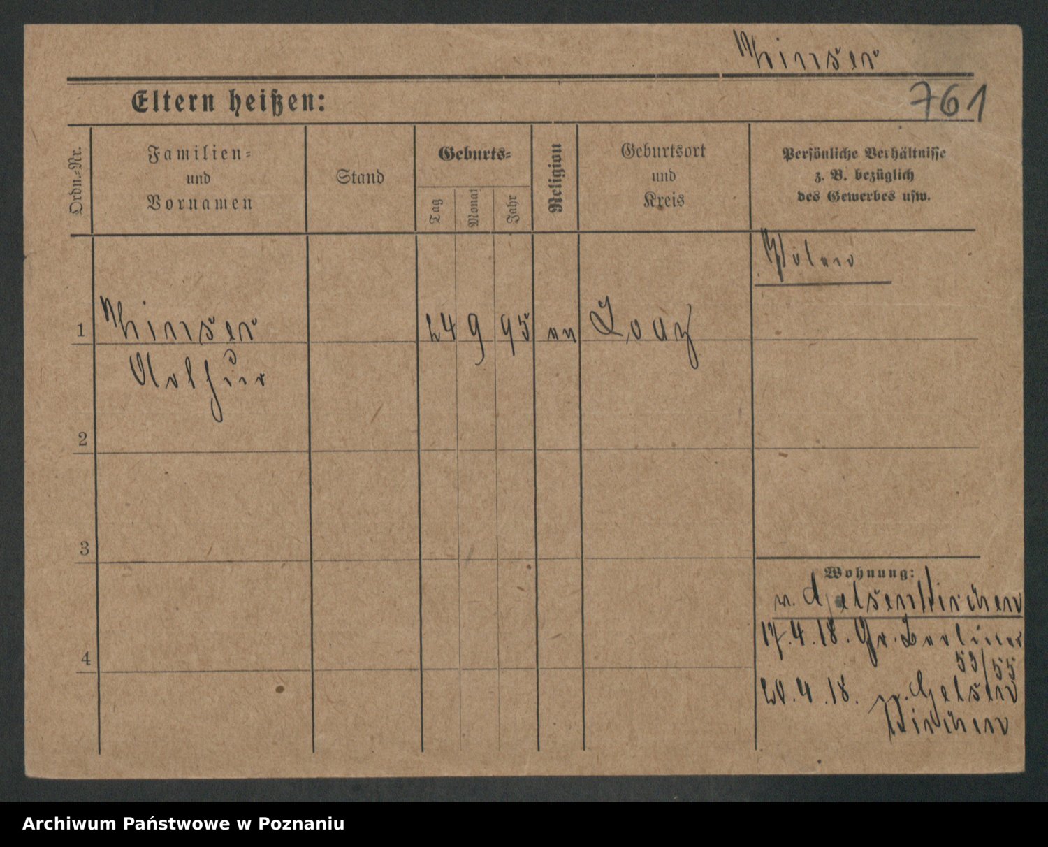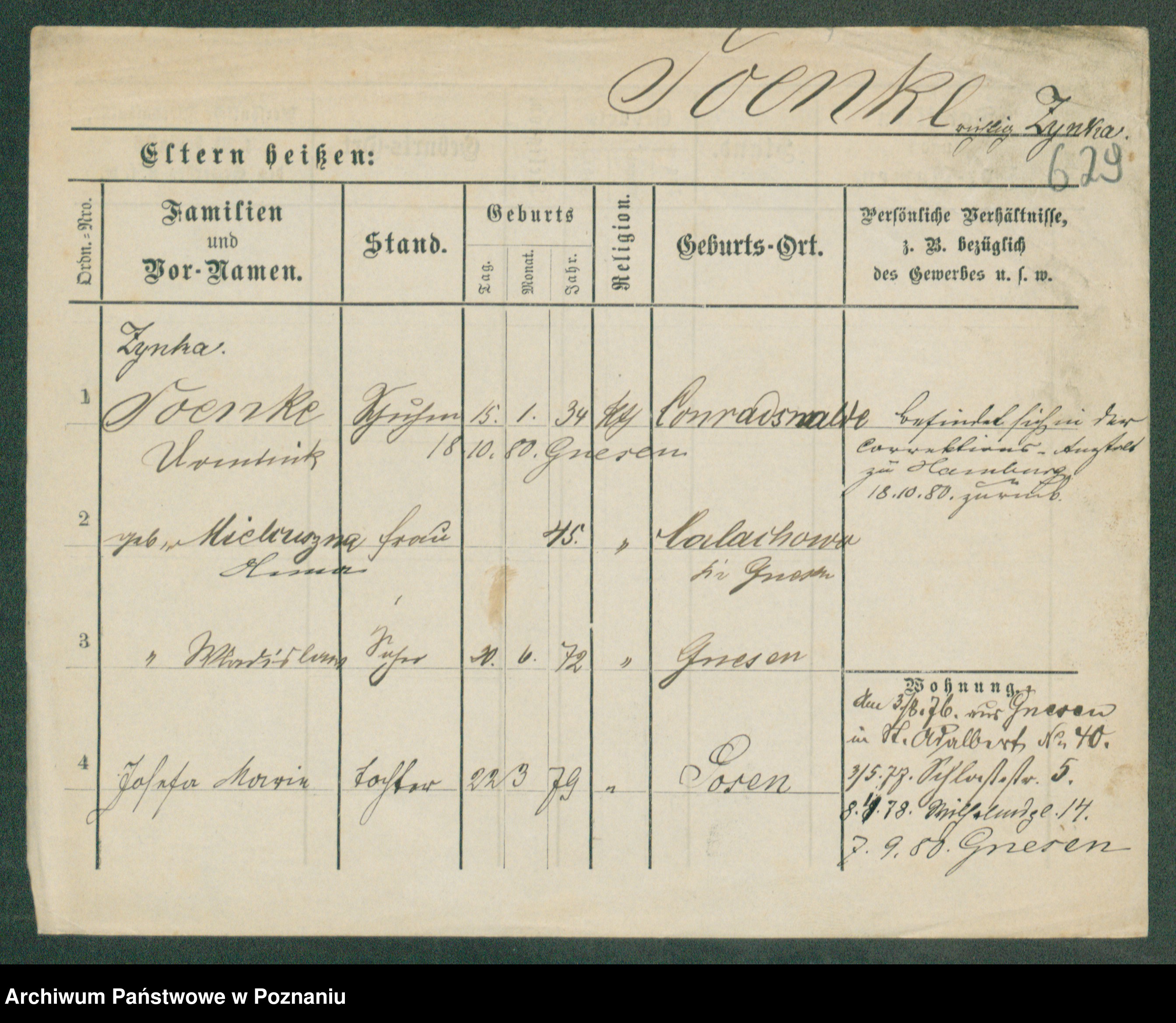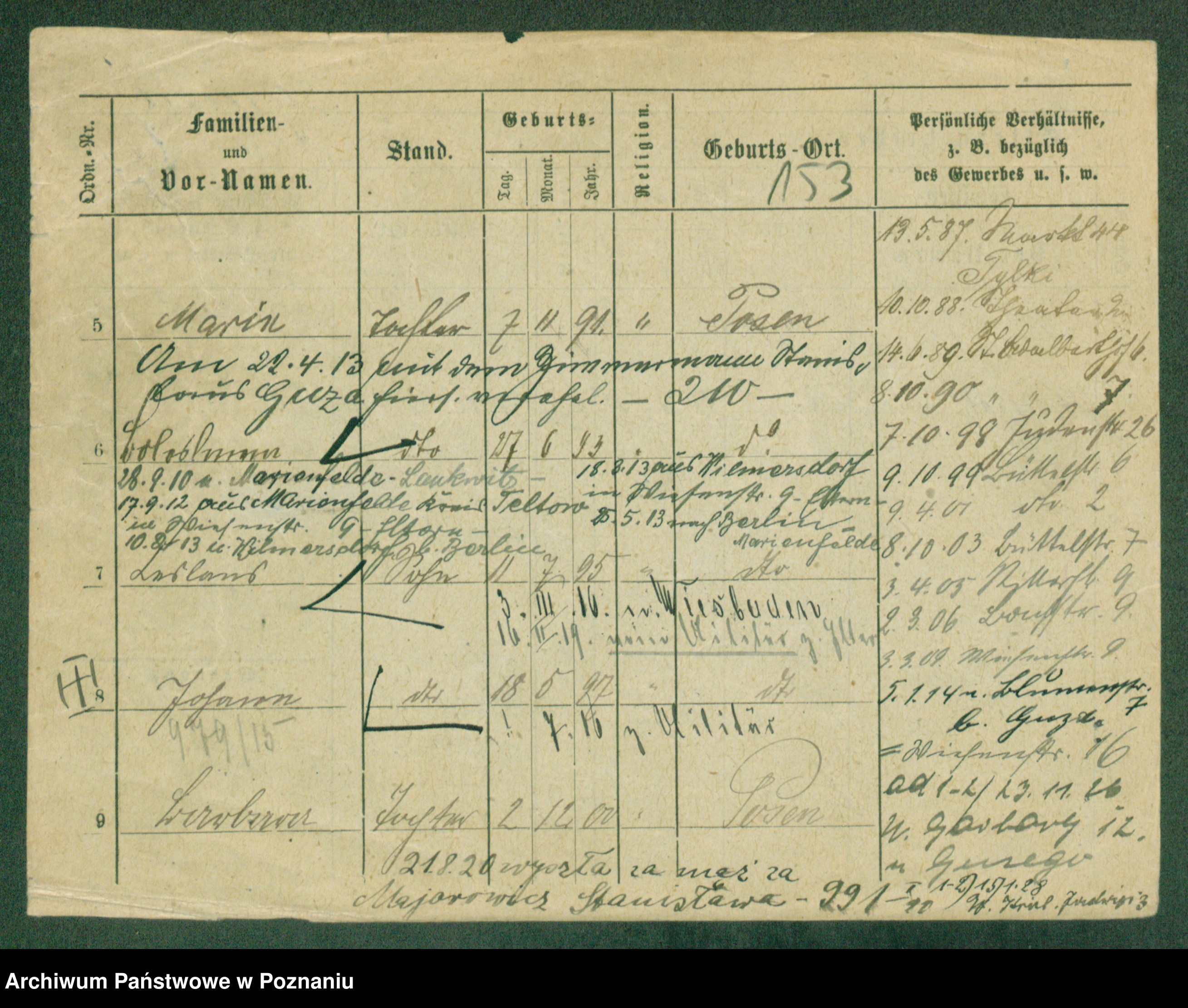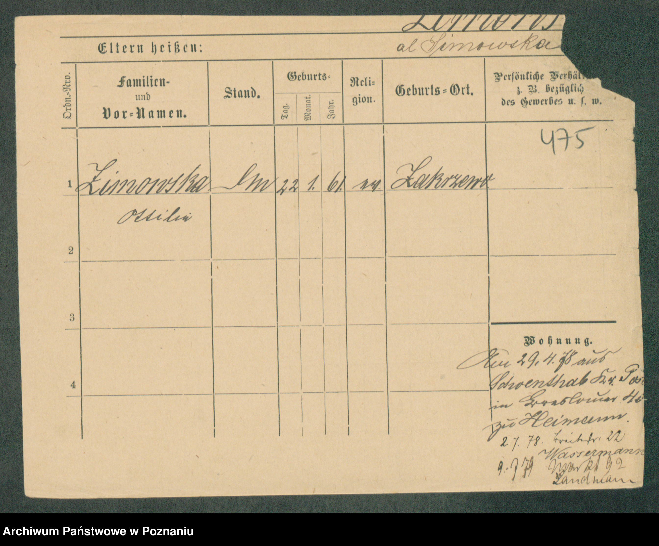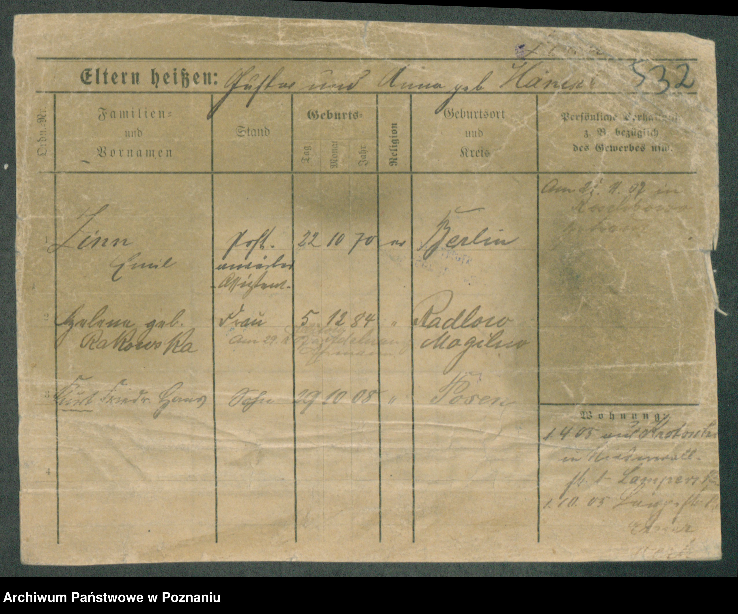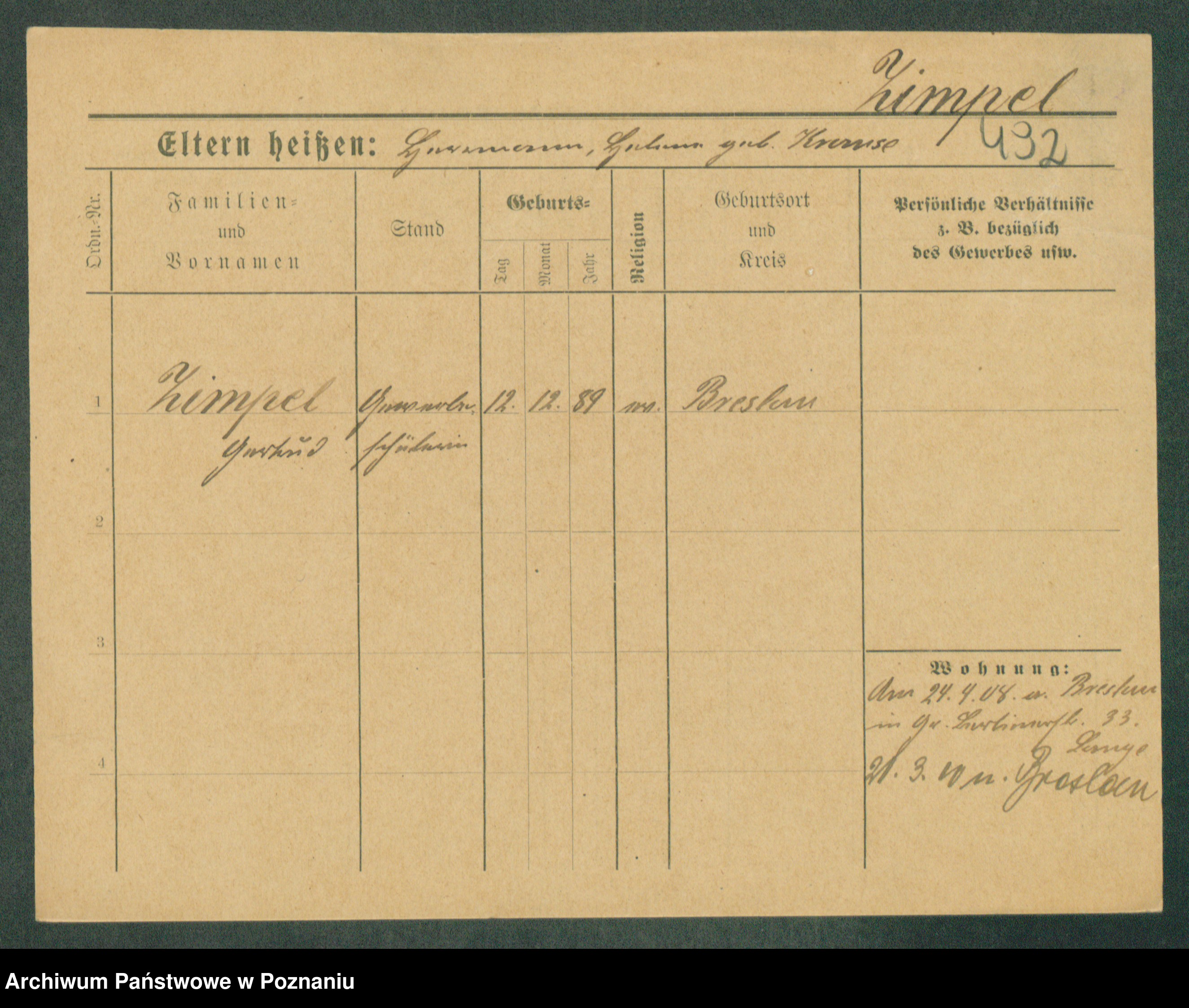 Podgląd karty osobowej dostępny jest po kliknięciu na nazwisko lub ikonkę karty. Można dokonywać powiększenia (ikony na górze) lub przechodzić między kolejnymi skanami (strzałki po bokach).