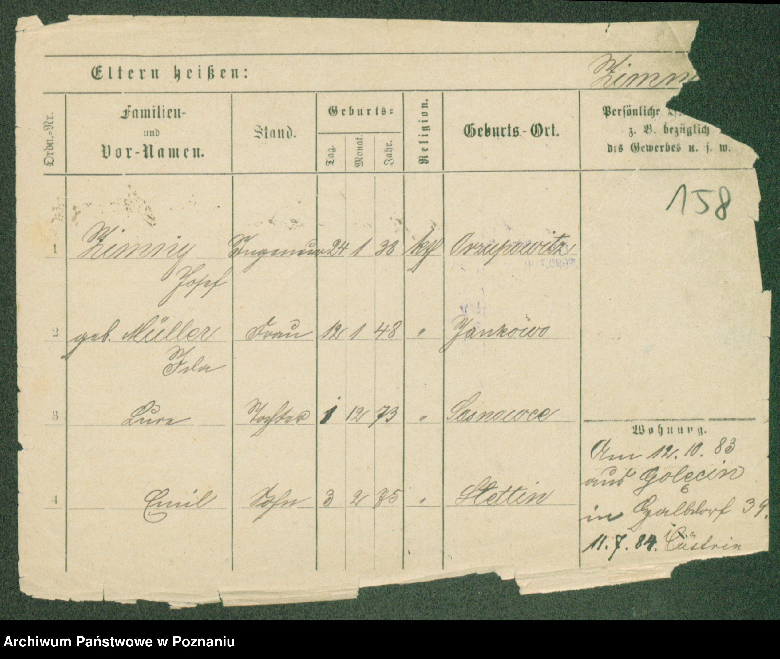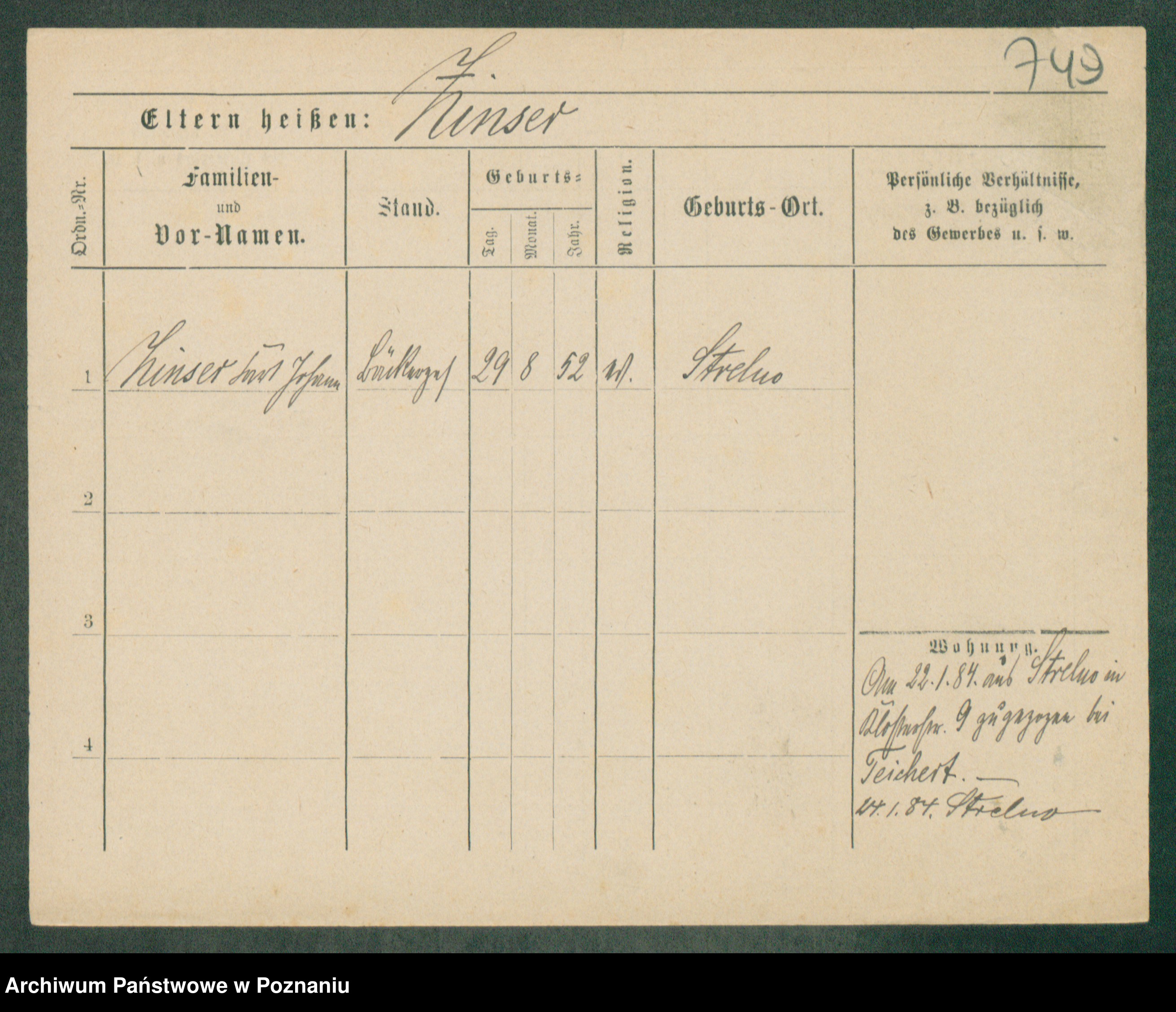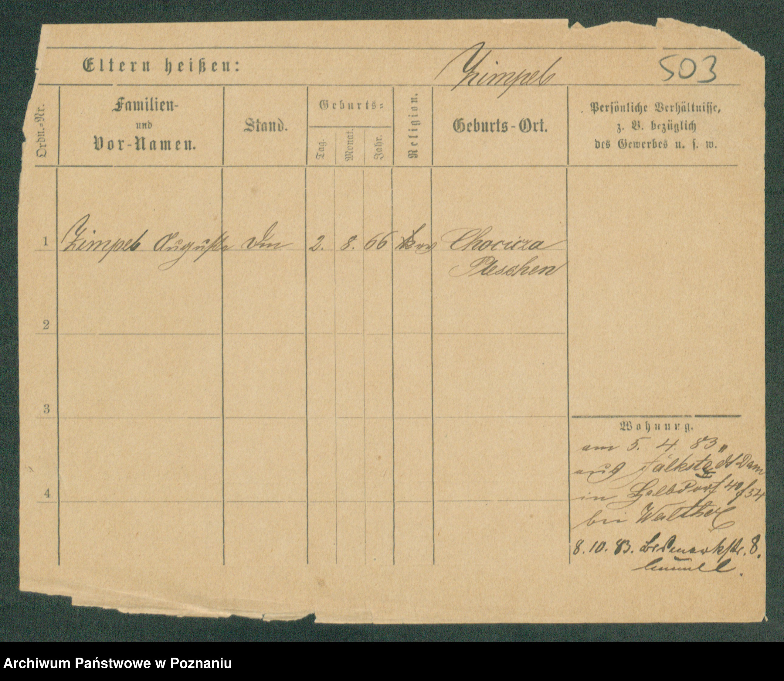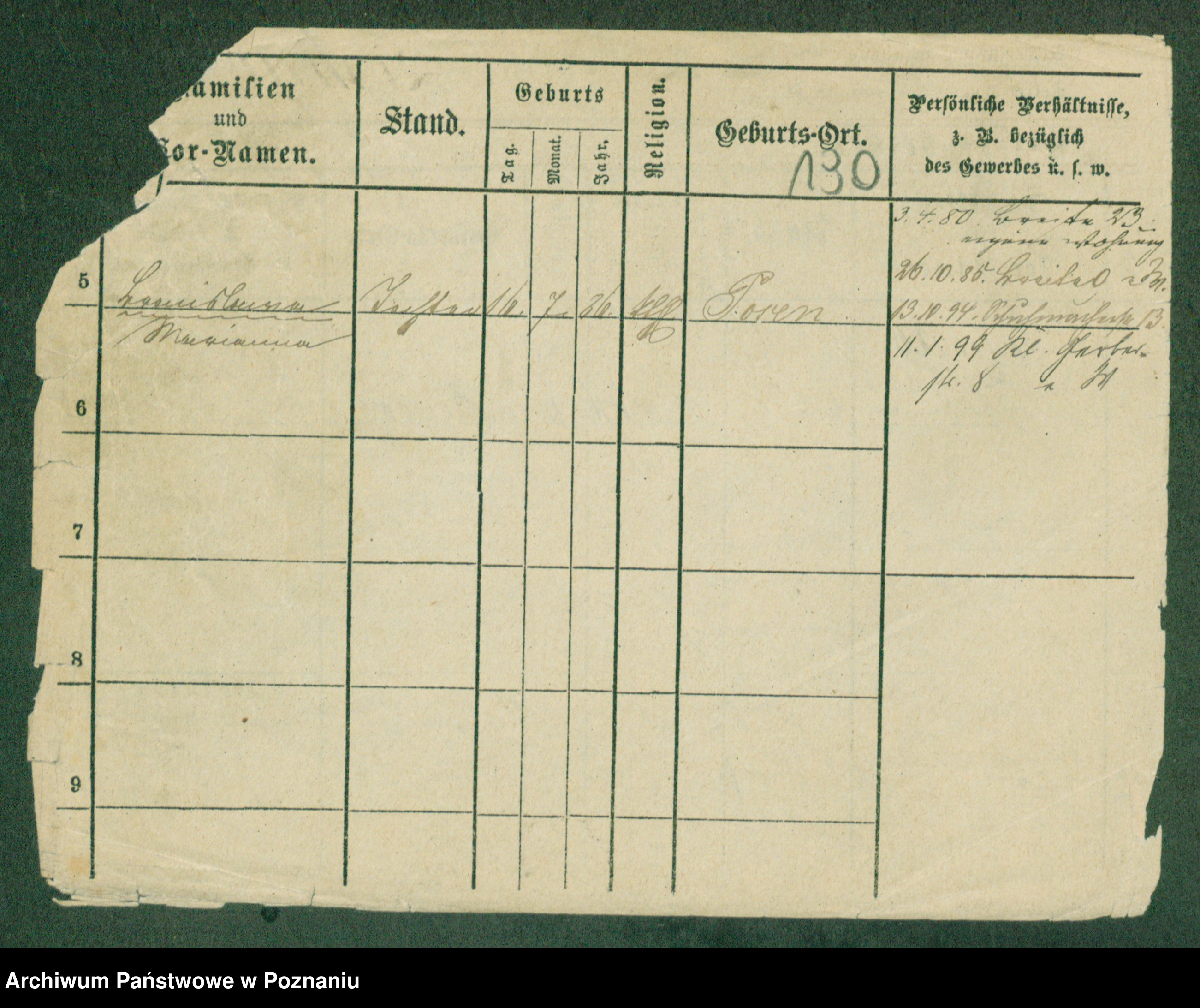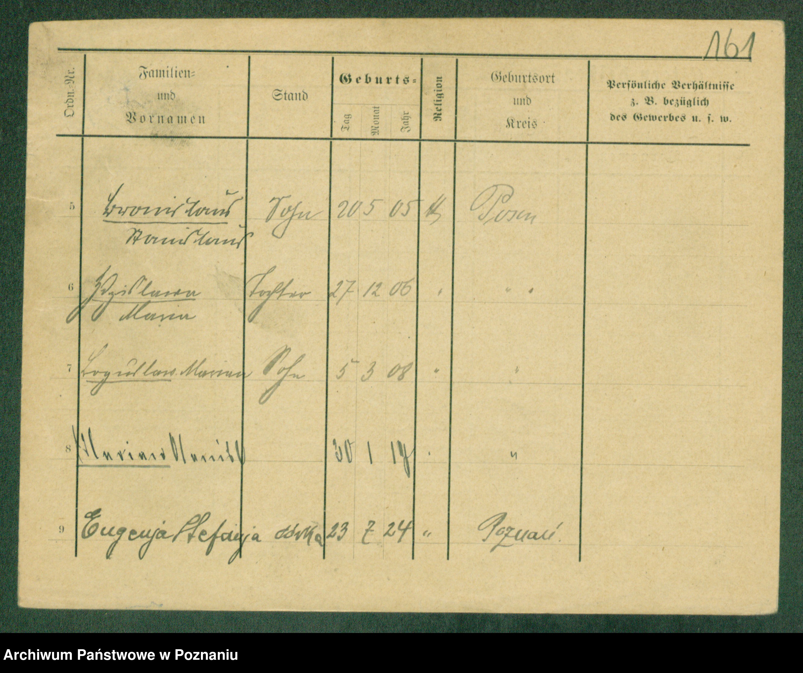 Podgląd karty osobowej dostępny jest po kliknięciu na nazwisko lub ikonkę karty. Można dokonywać powiększenia (ikony na górze) lub przechodzić między kolejnymi skanami (strzałki po bokach).