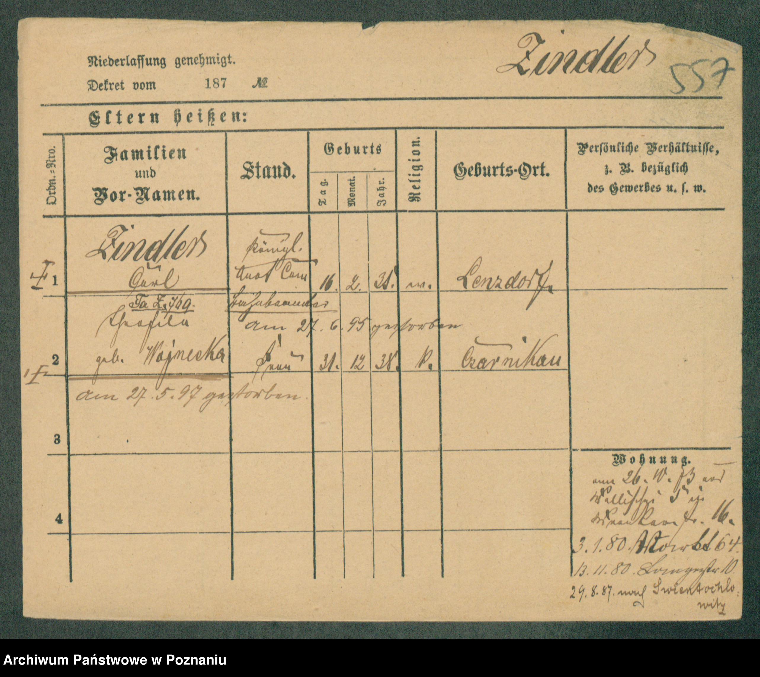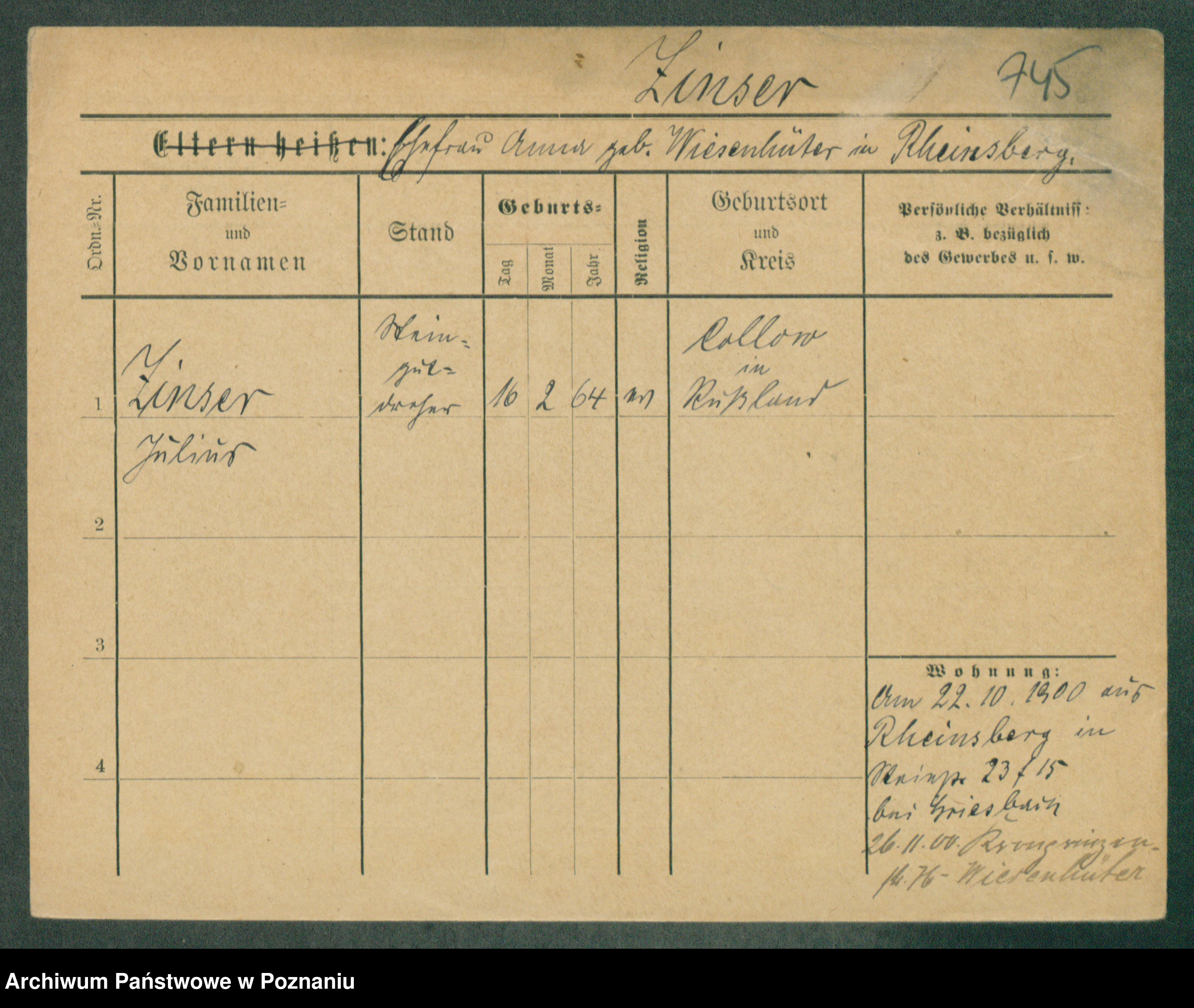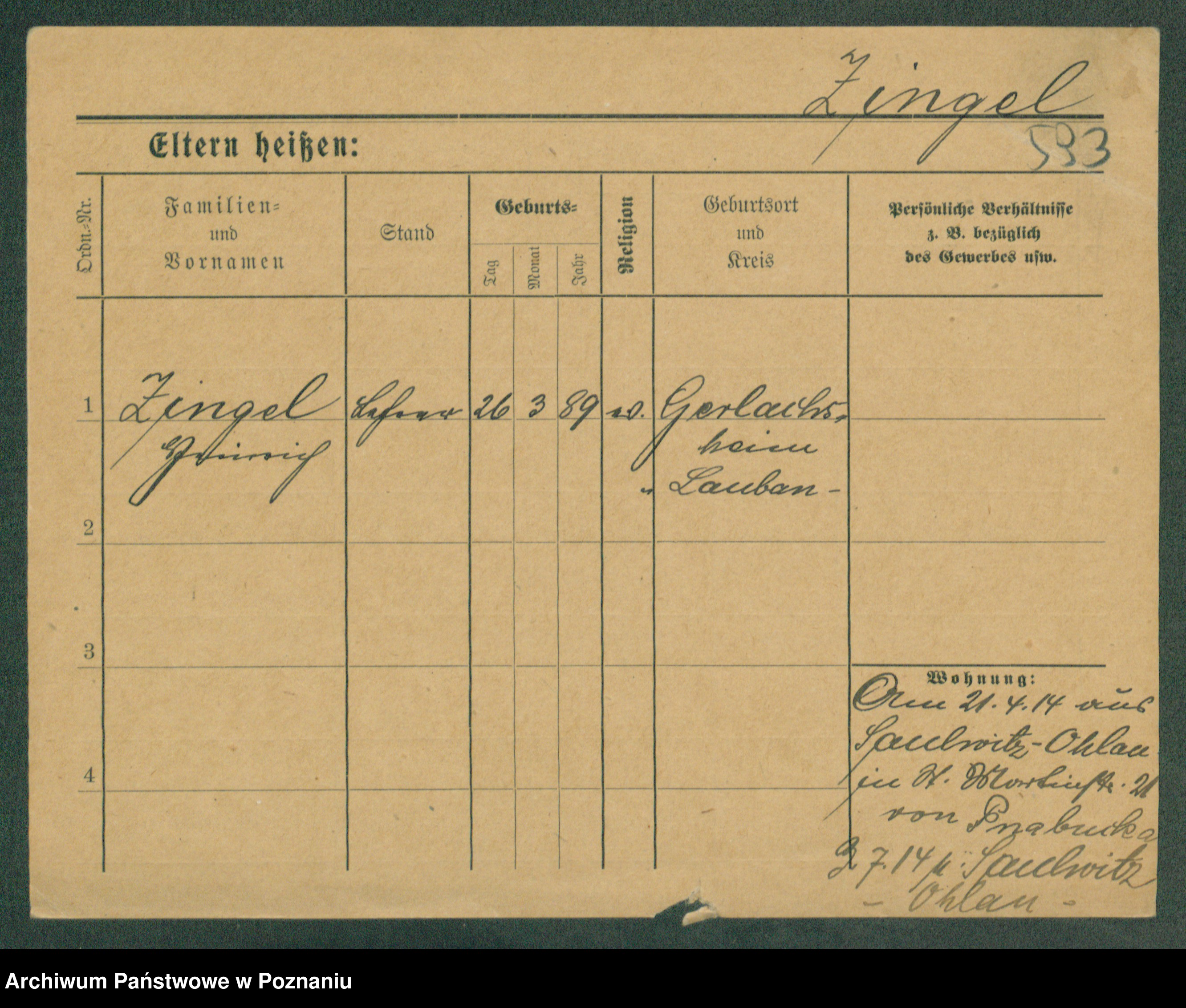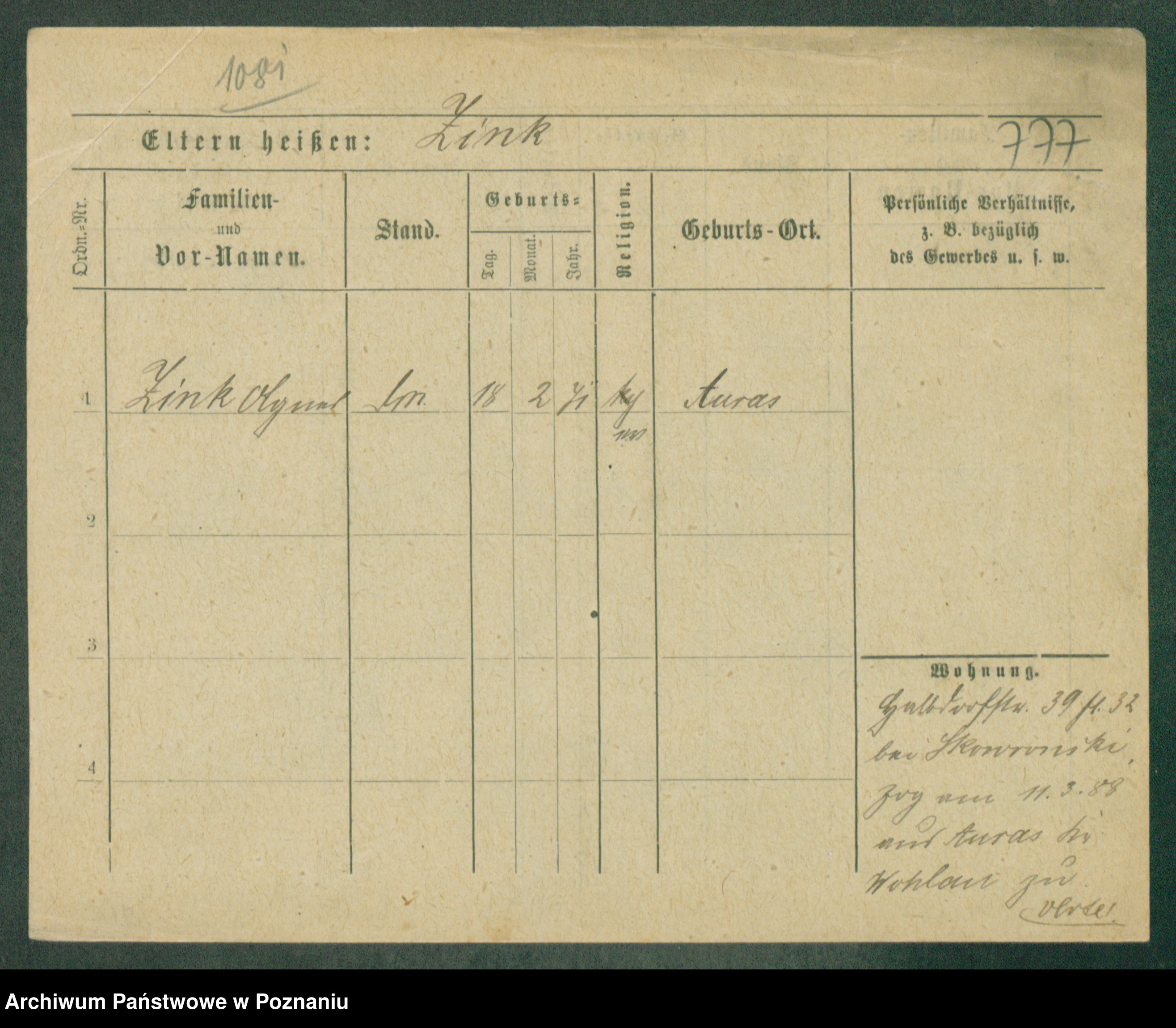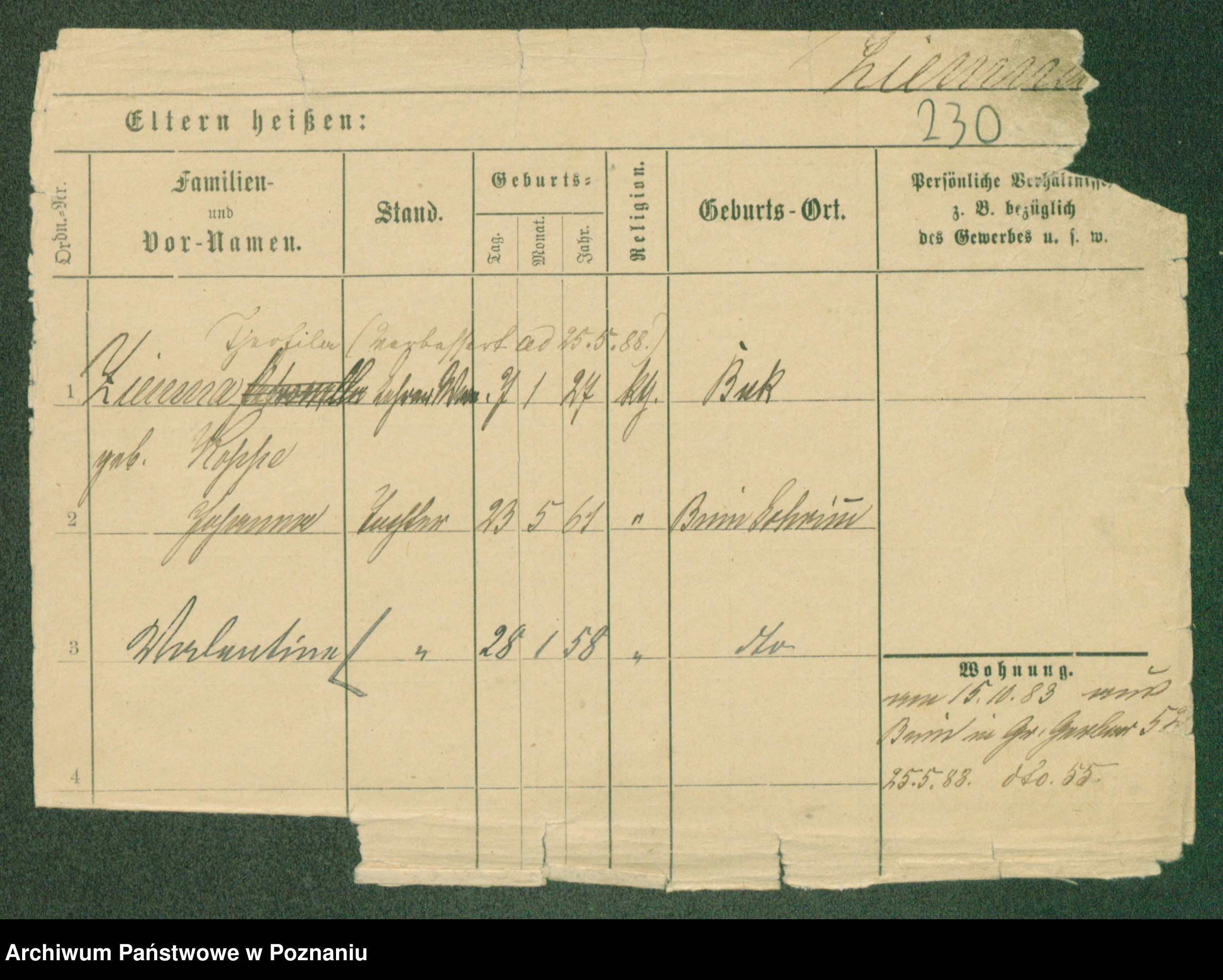 Podgląd karty osobowej dostępny jest po kliknięciu na nazwisko lub ikonkę karty. Można dokonywać powiększenia (ikony na górze) lub przechodzić między kolejnymi skanami (strzałki po bokach).
