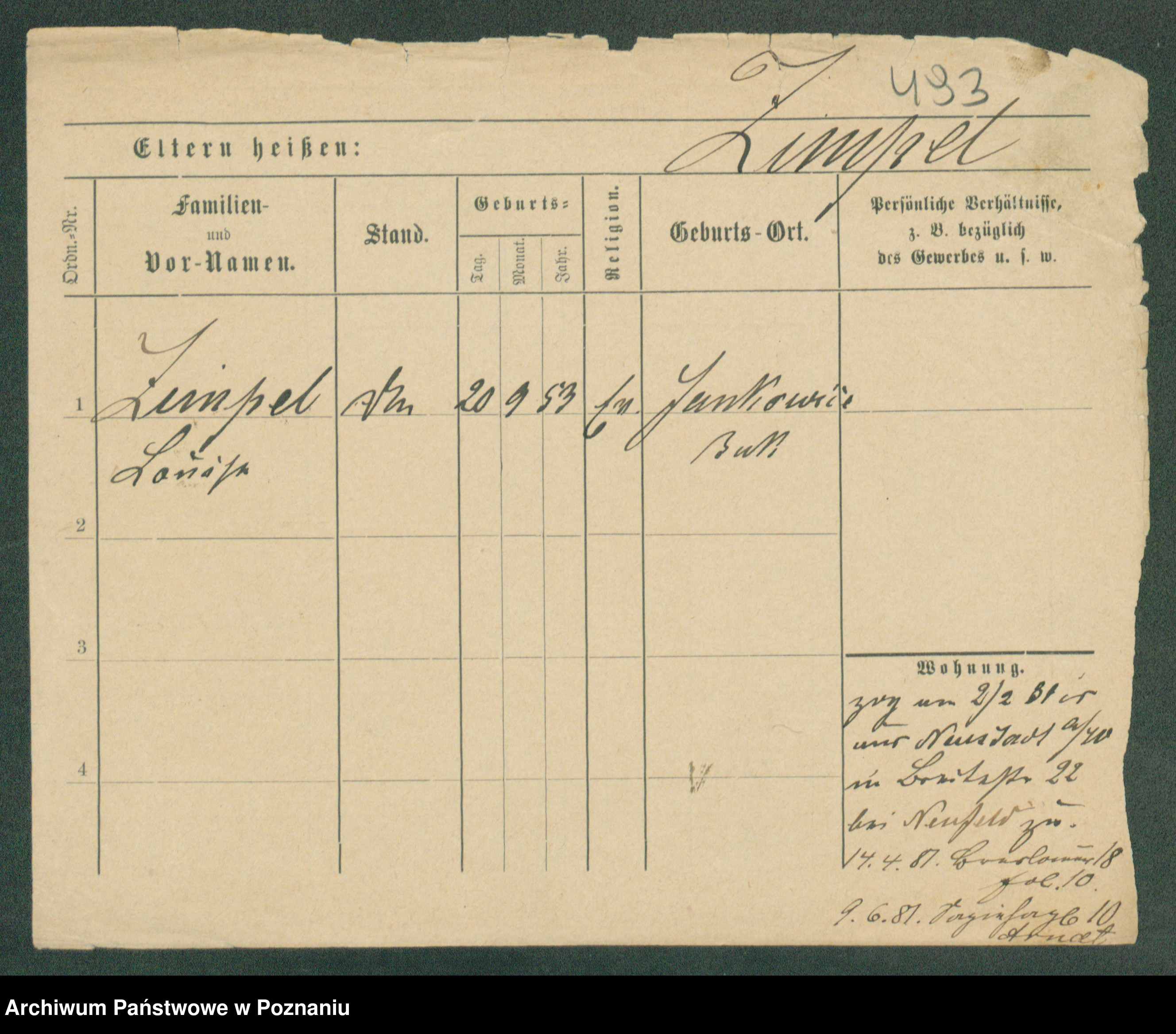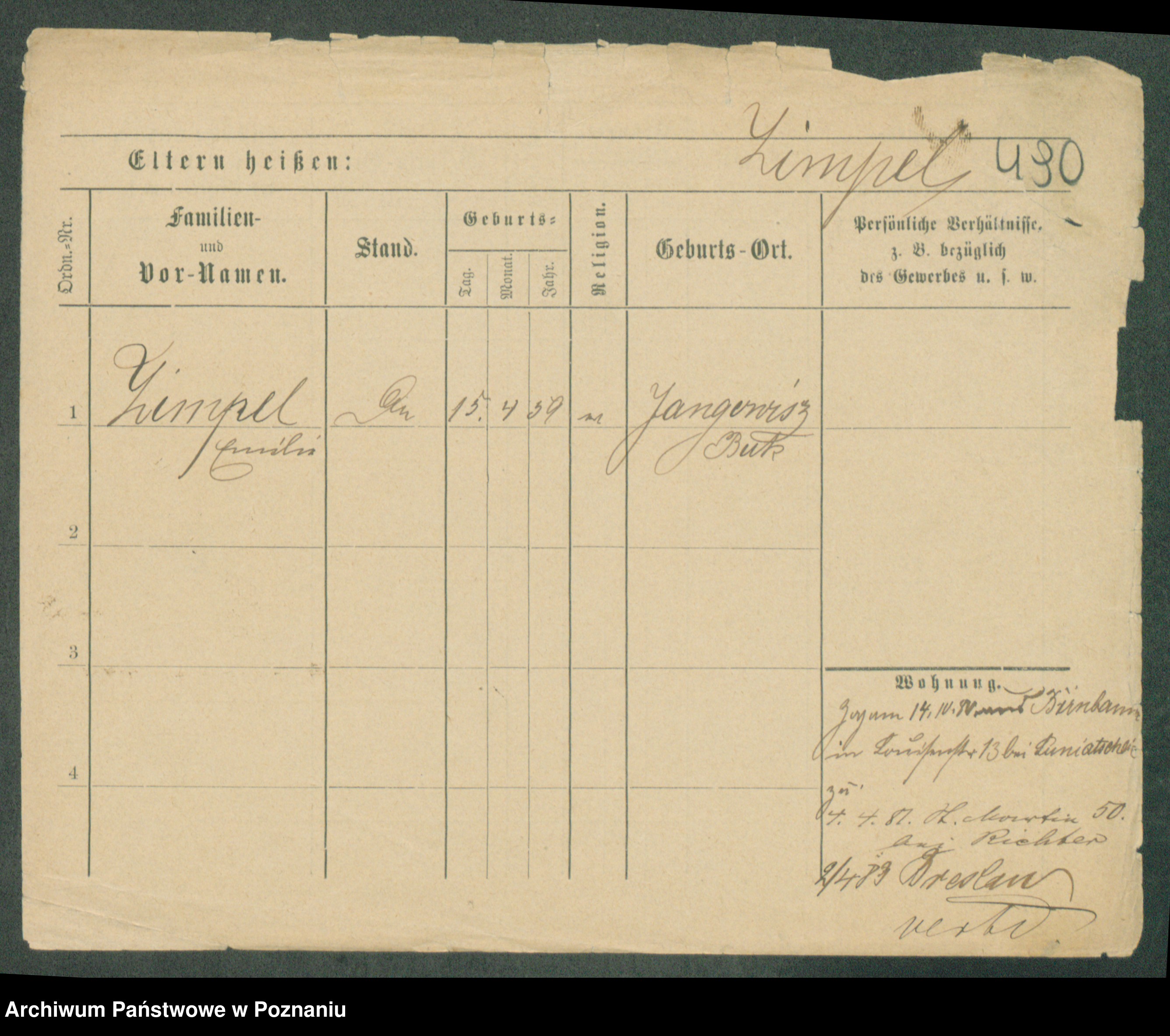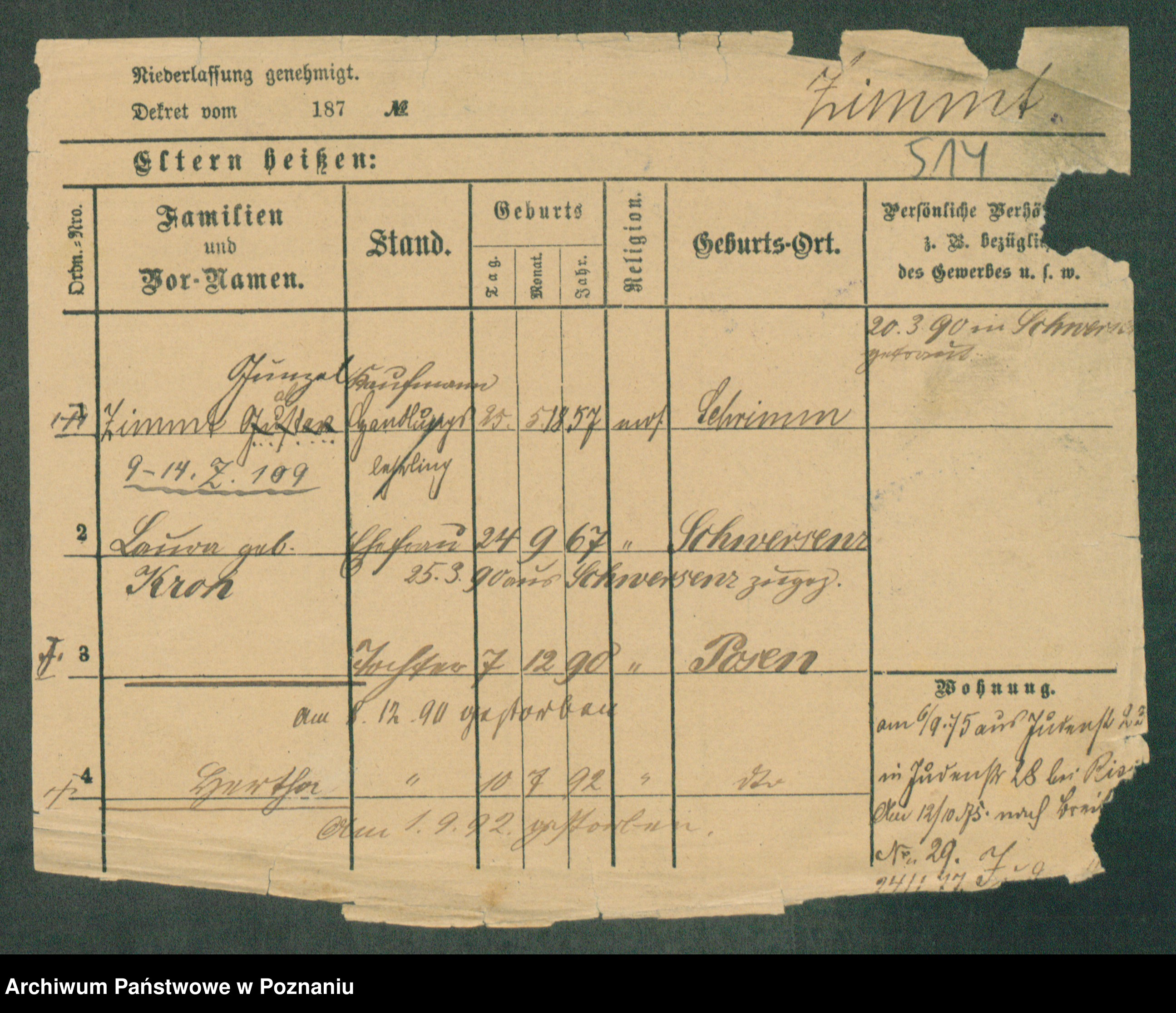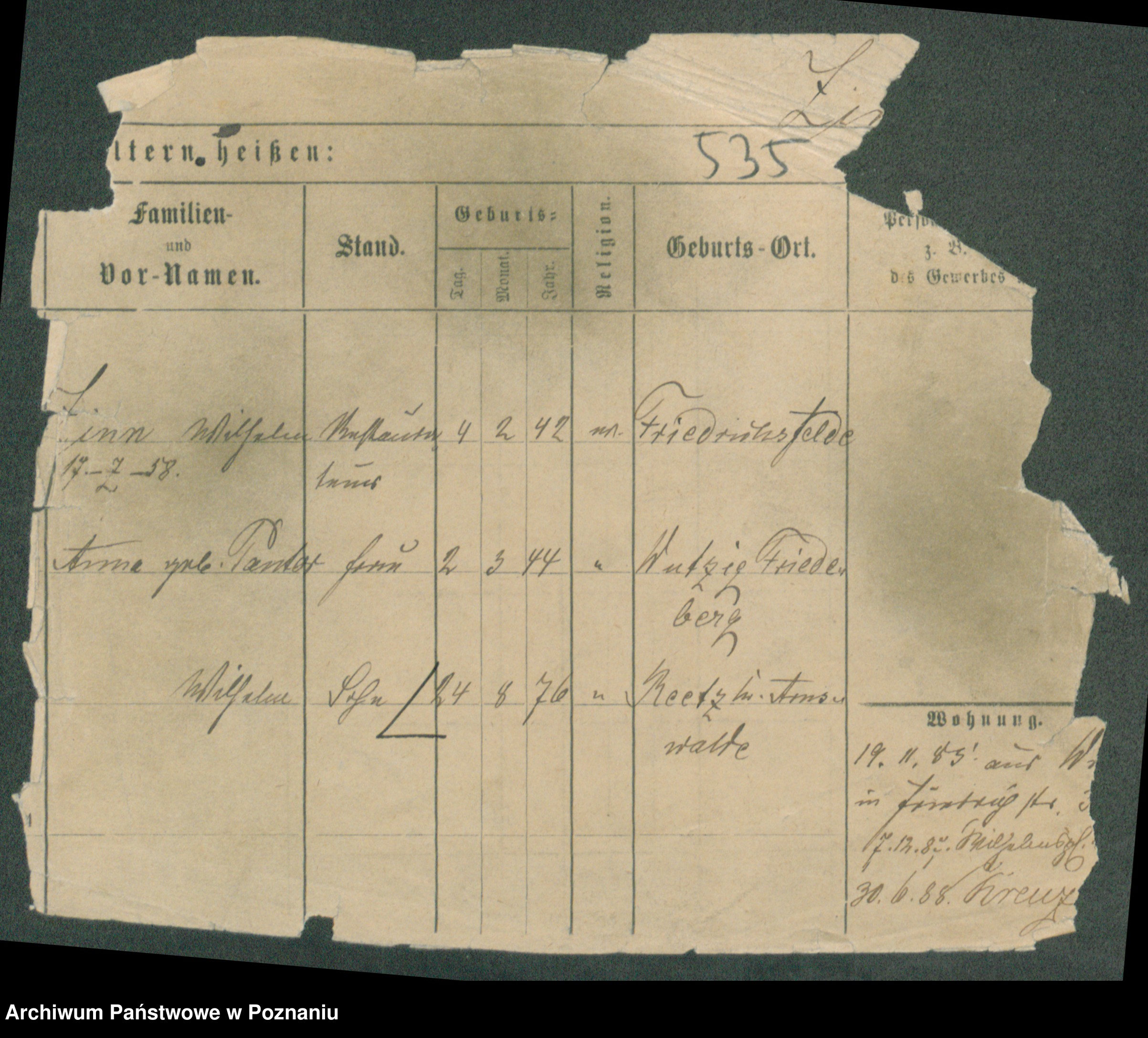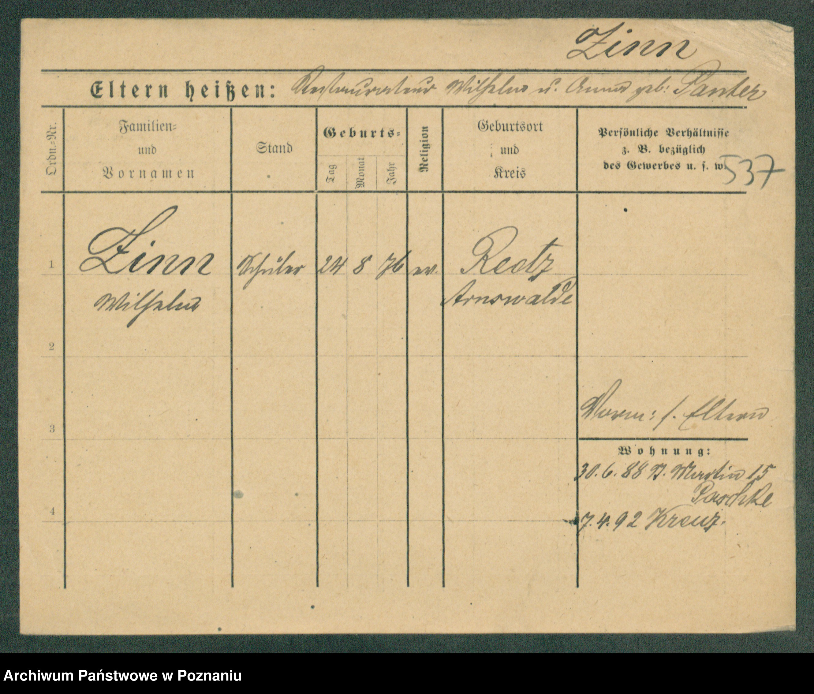 Podgląd karty osobowej dostępny jest po kliknięciu na nazwisko lub ikonkę karty. Można dokonywać powiększenia (ikony na górze) lub przechodzić między kolejnymi skanami (strzałki po bokach).