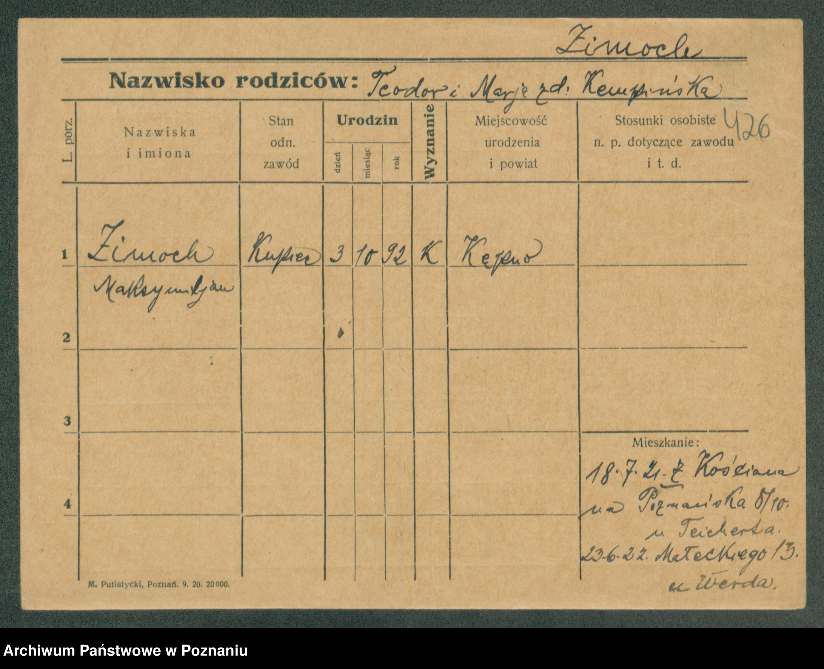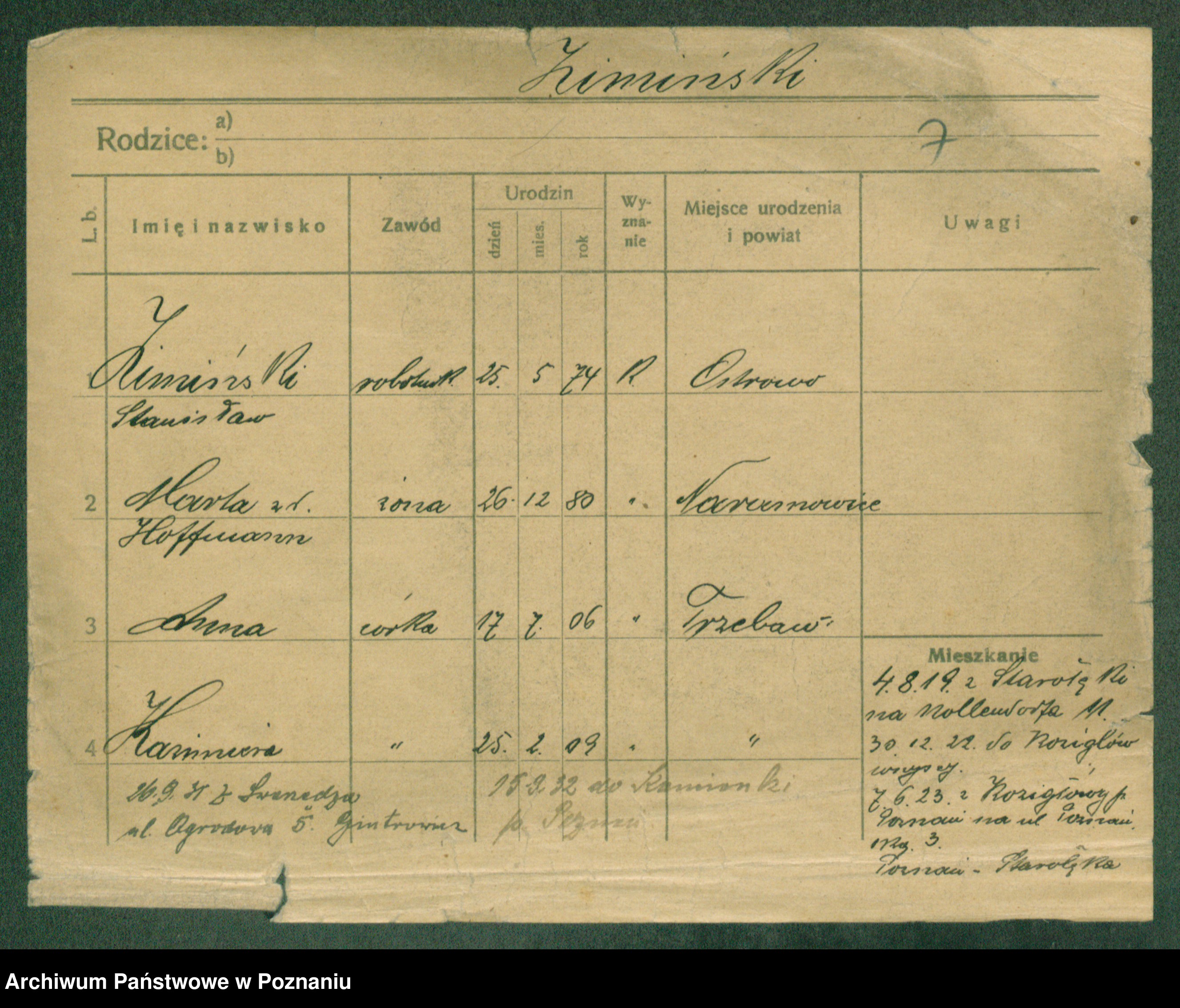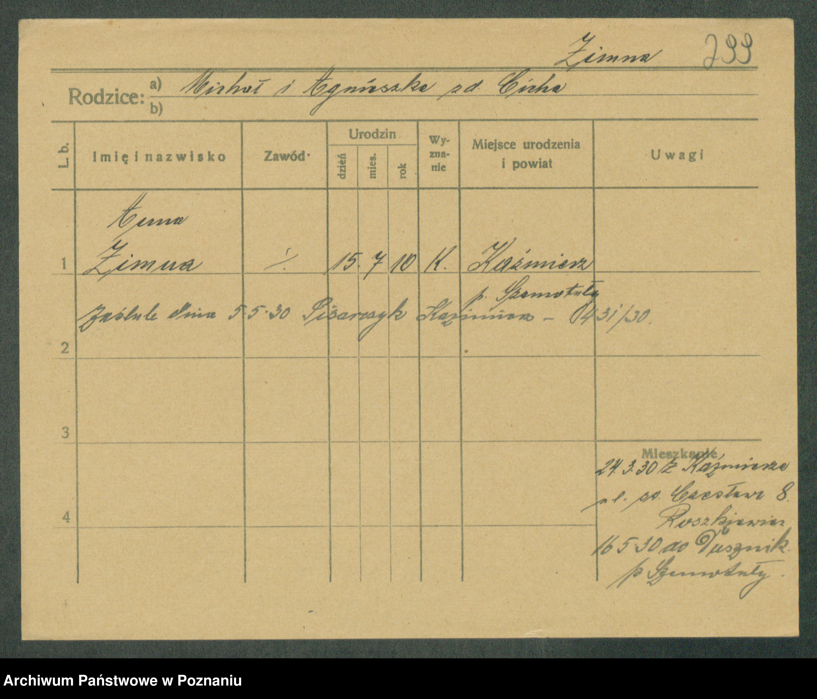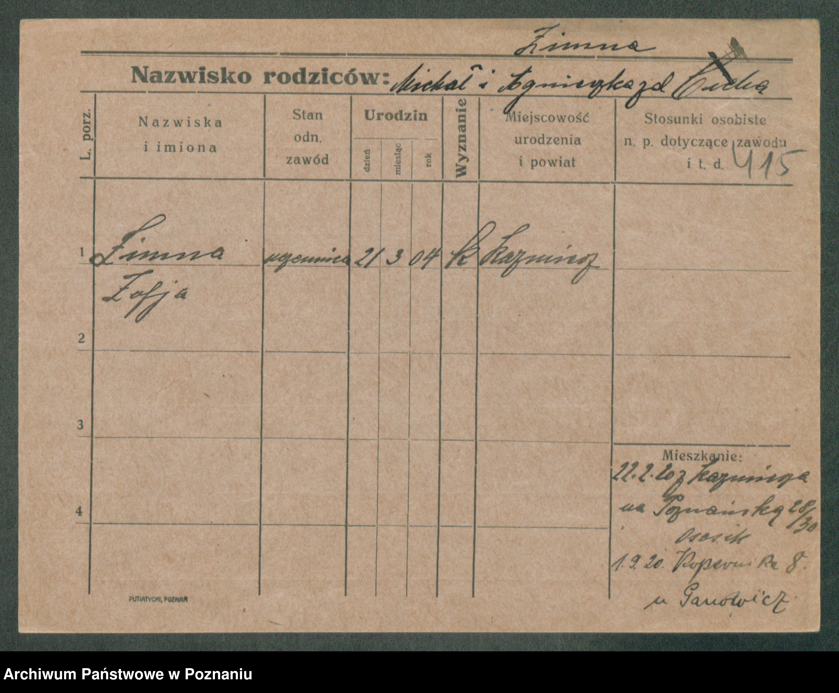 Zimiński, Kazimiera