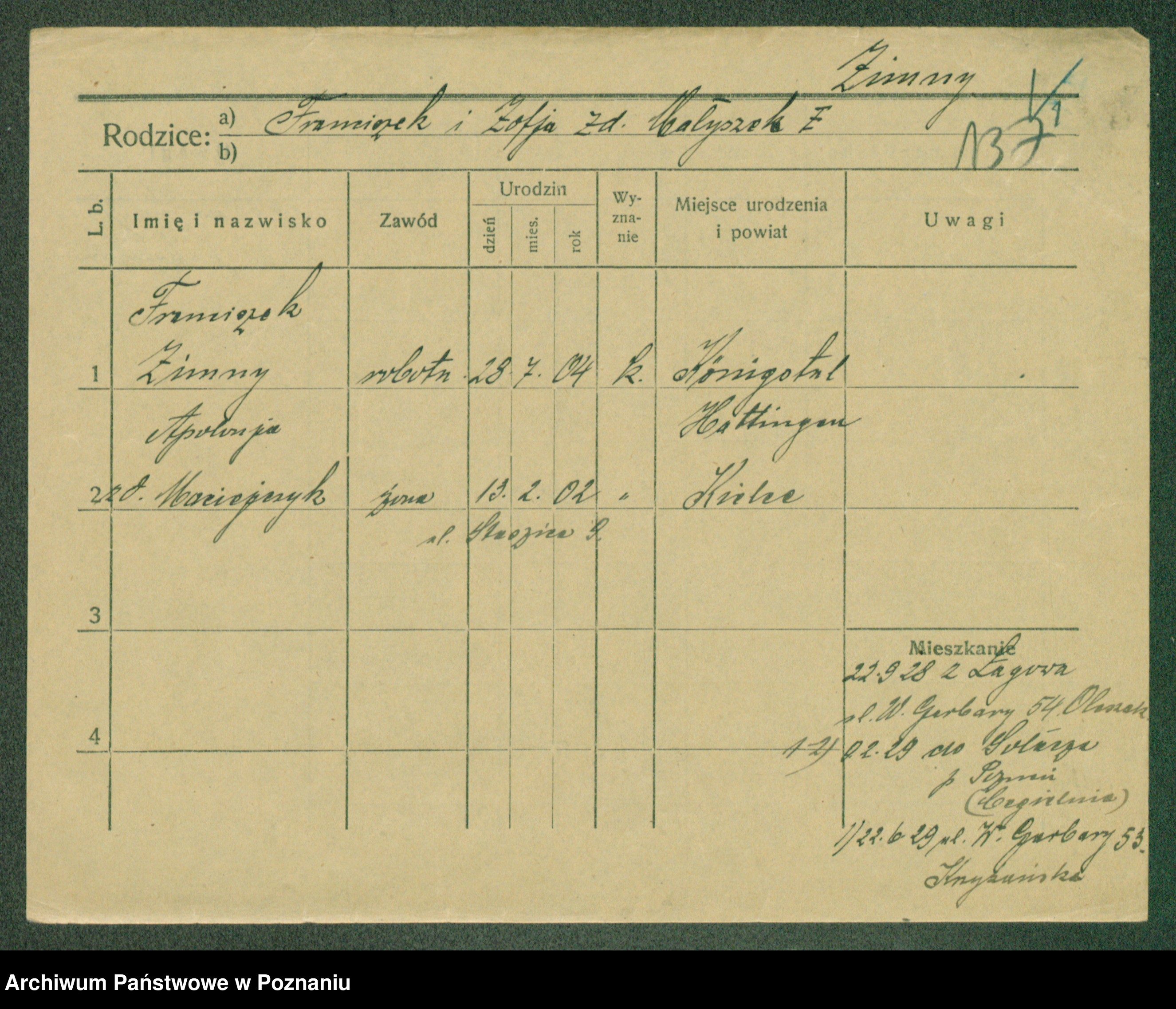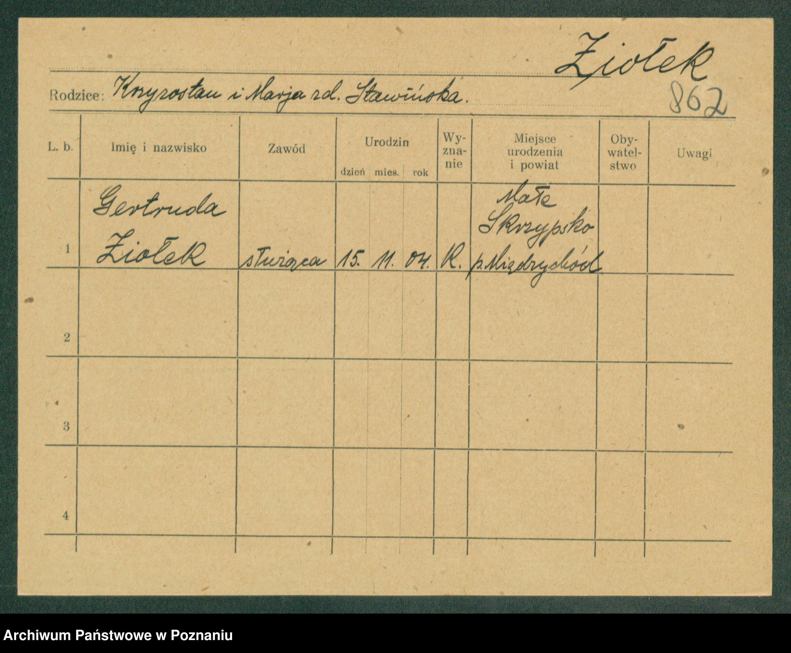 Ziolkiewicz z.d. Majchrzak, Stanislawa