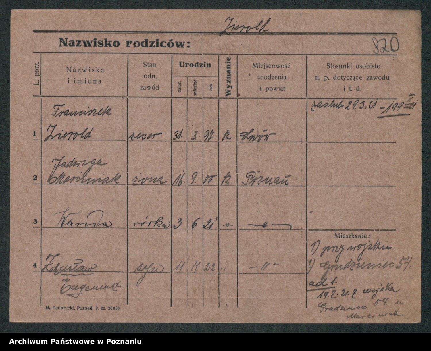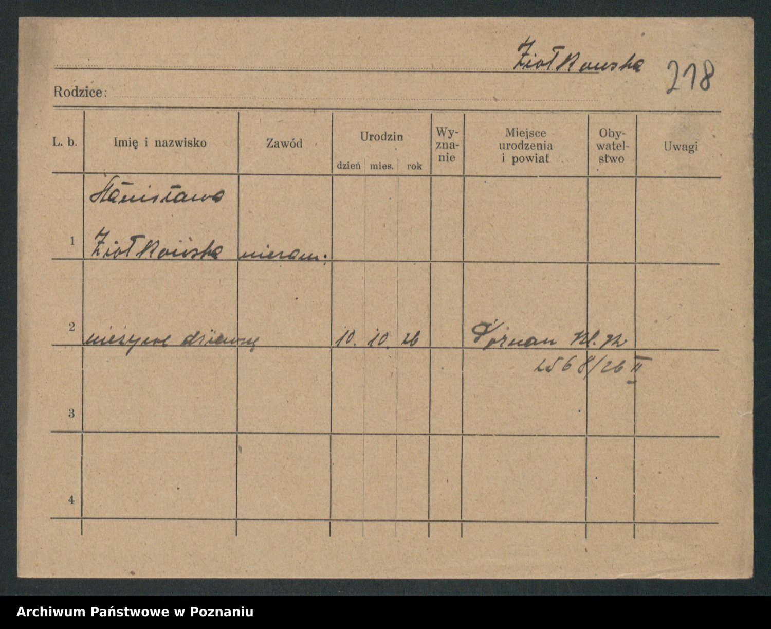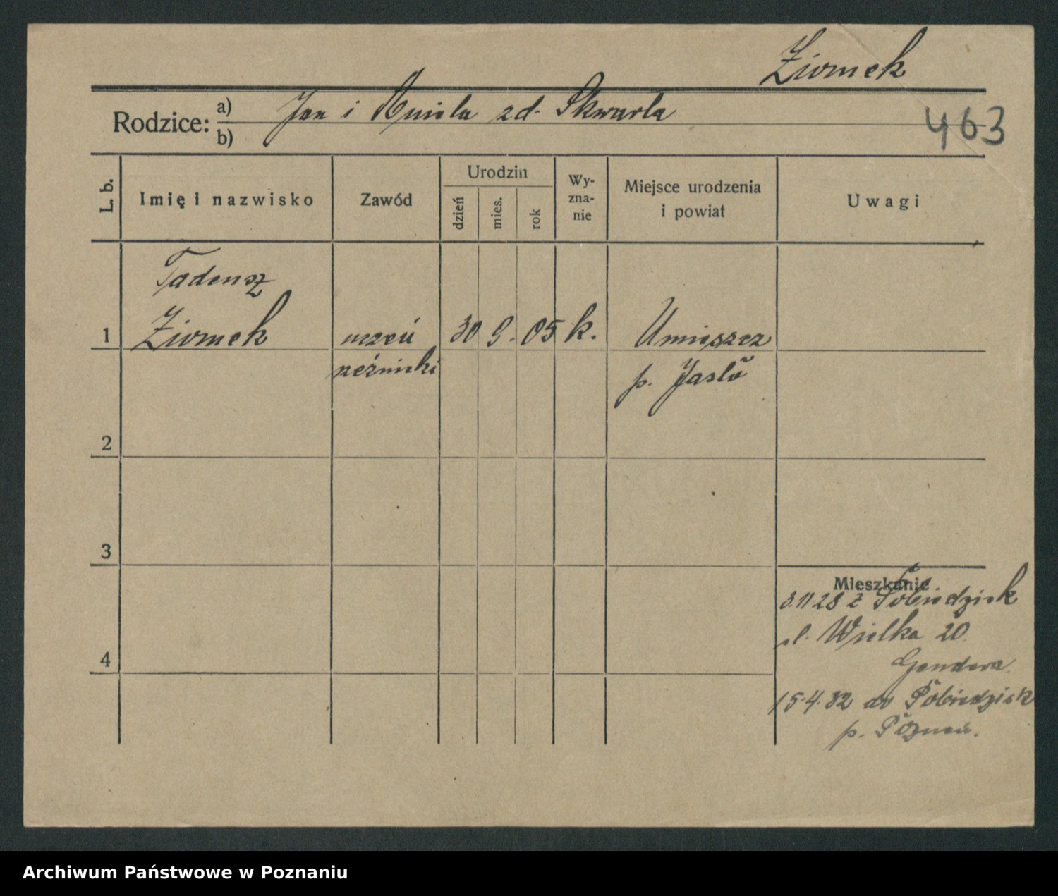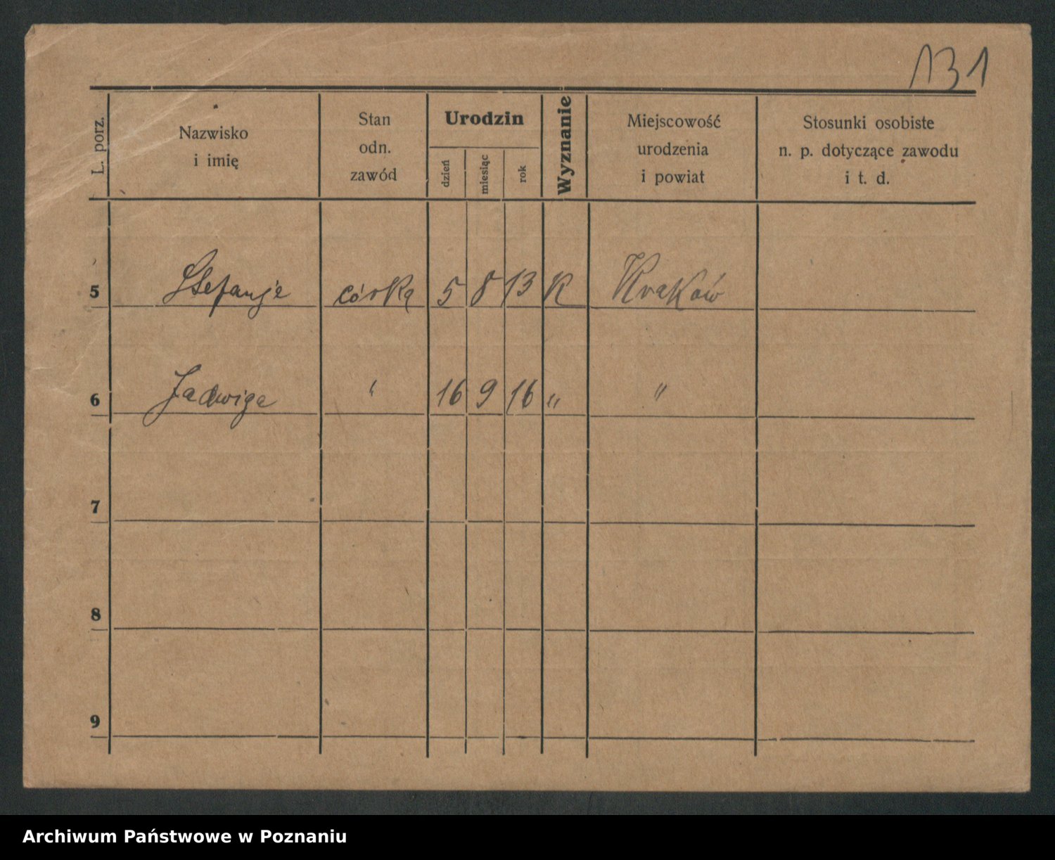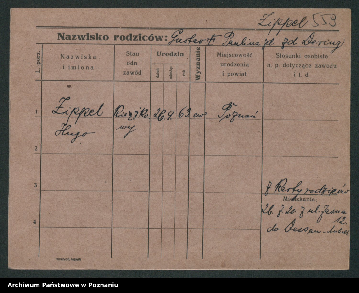 Podgląd karty osobowej dostępny jest po kliknięciu na nazwisko lub ikonkę karty. Można dokonywać powiększenia (ikony na górze) lub przechodzić między kolejnymi skanami (strzałki po bokach).