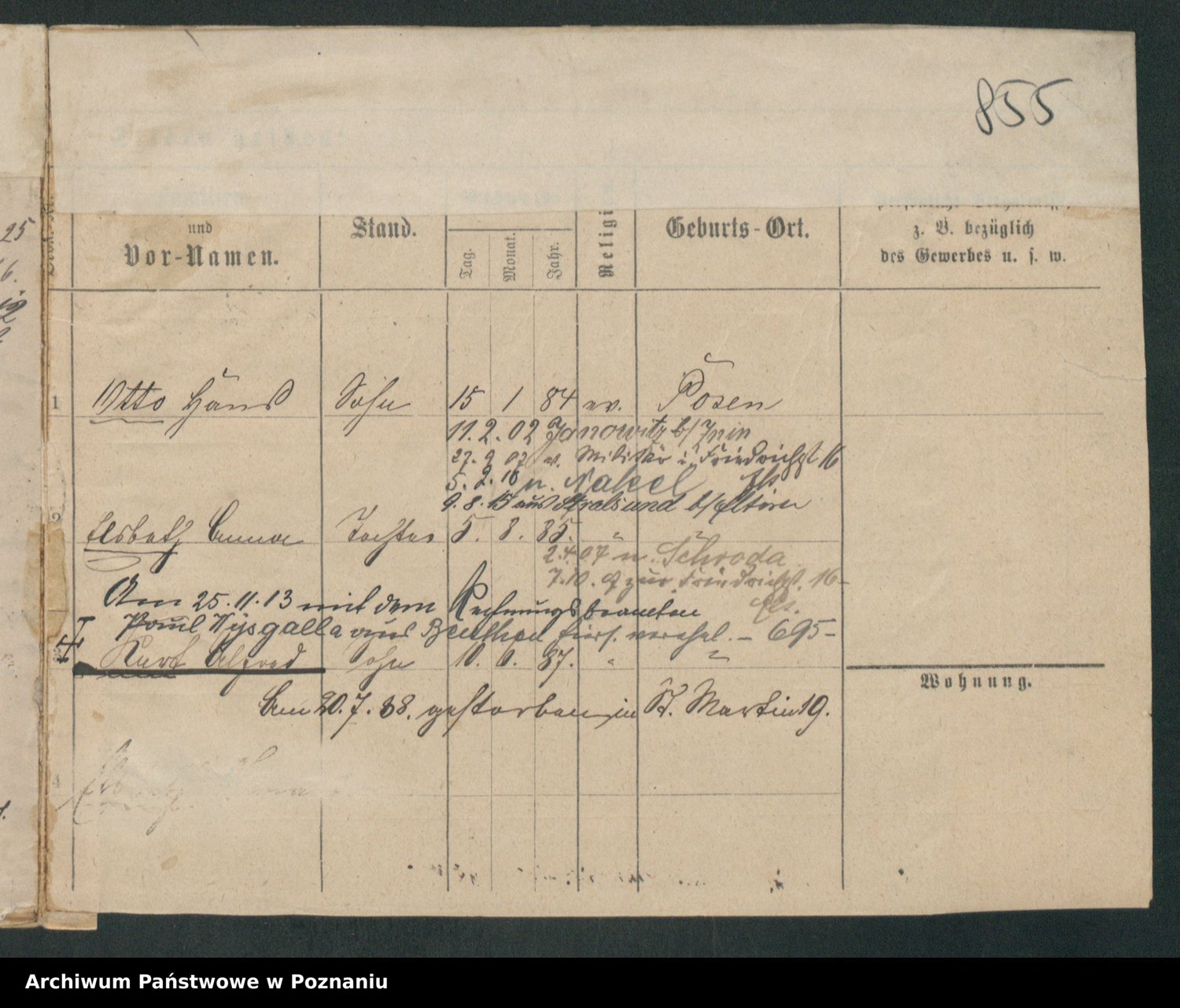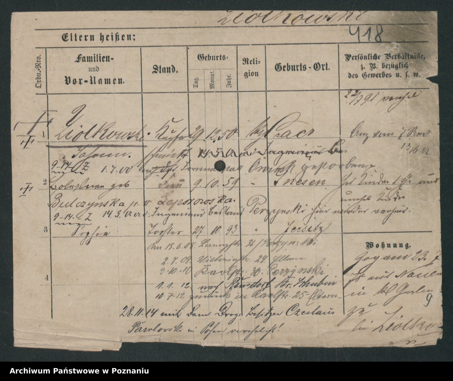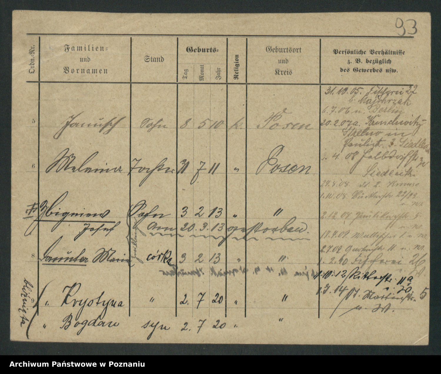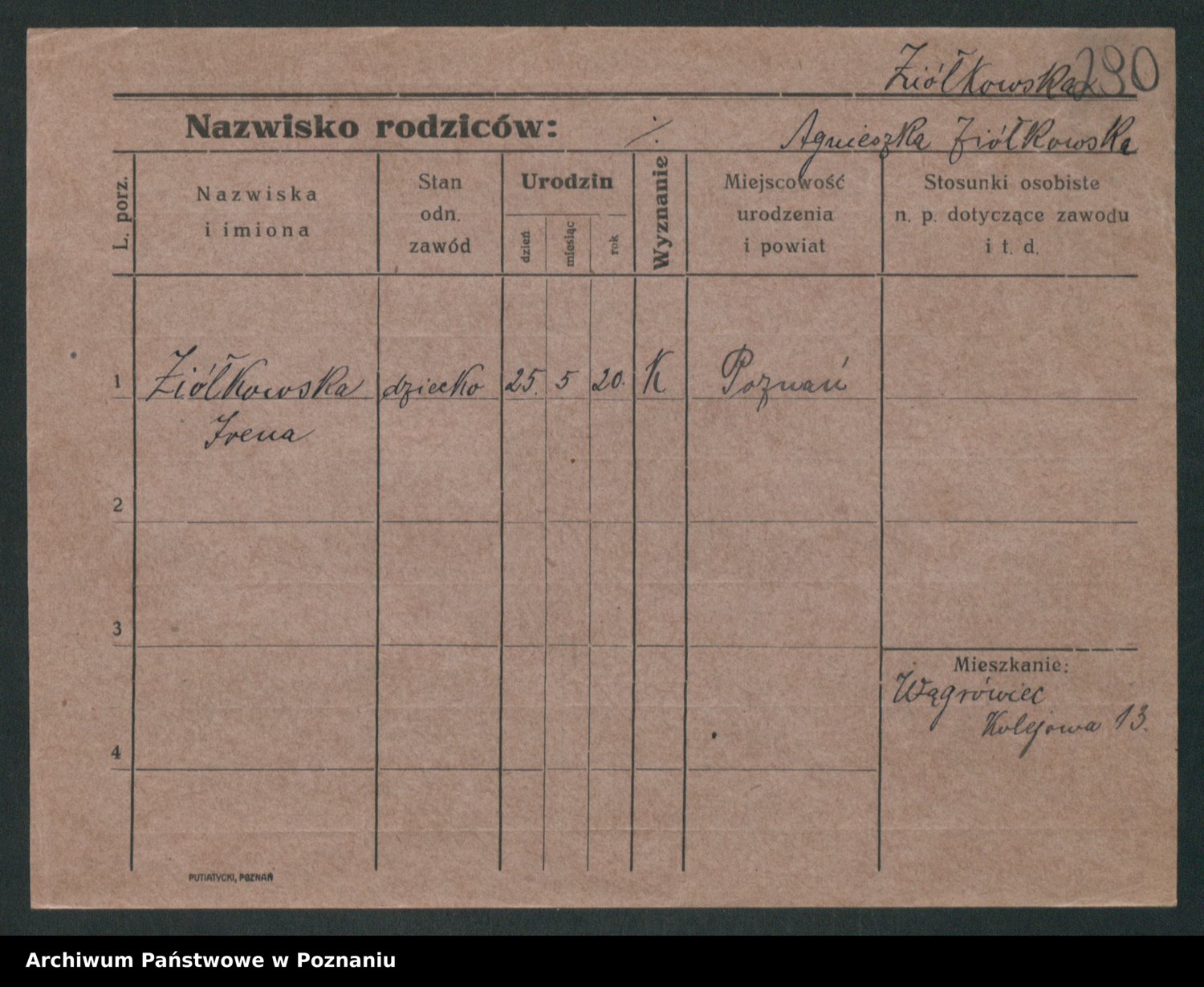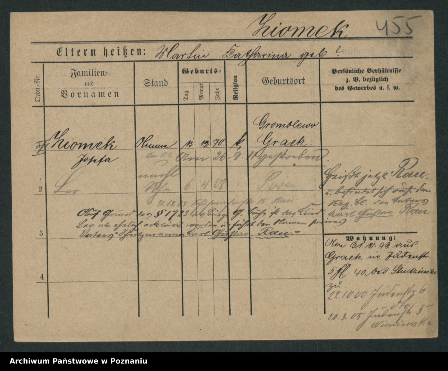 Podgląd karty osobowej dostępny jest po kliknięciu na nazwisko lub ikonkę karty. Można dokonywać powiększenia (ikony na górze) lub przechodzić między kolejnymi skanami (strzałki po bokach).
