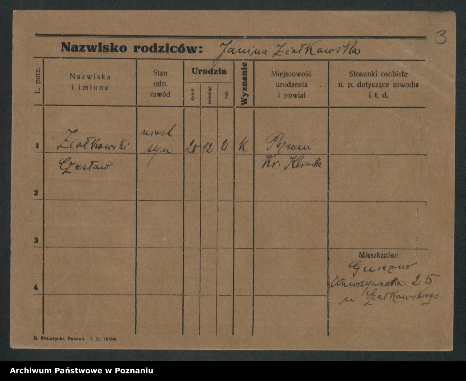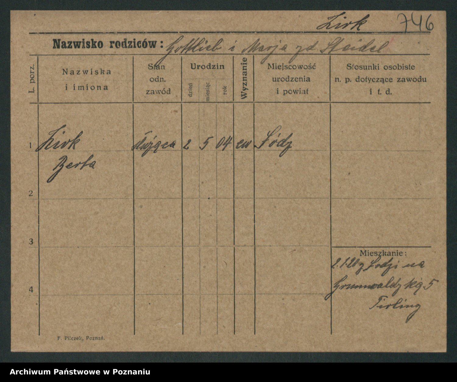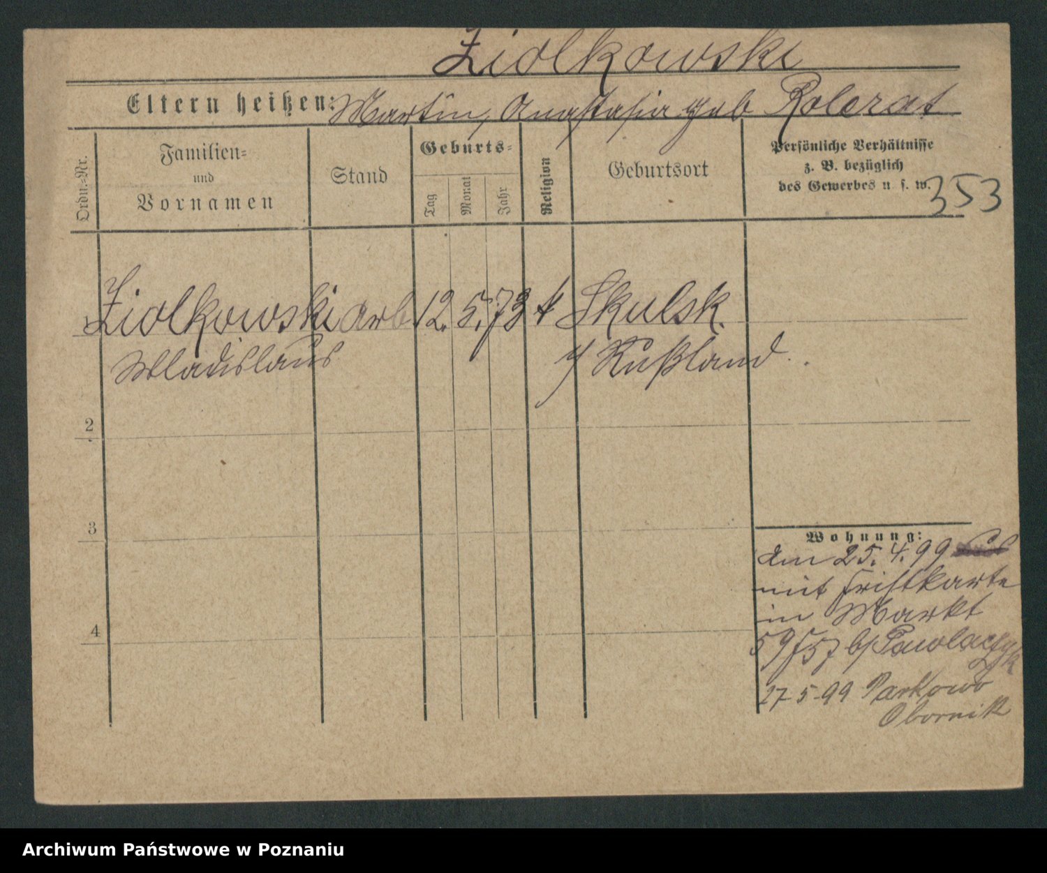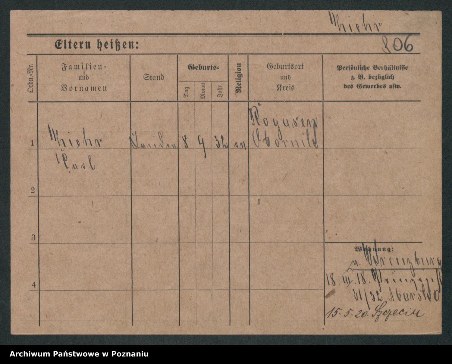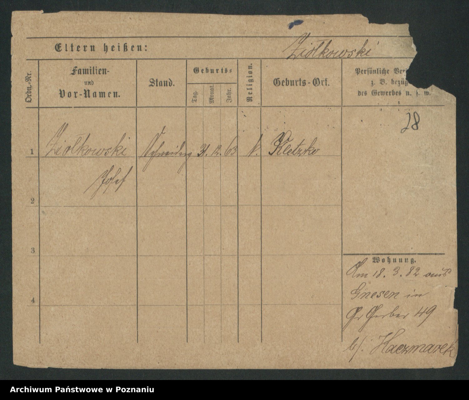 Podgląd karty osobowej dostępny jest po kliknięciu na nazwisko lub ikonkę karty. Można dokonywać powiększenia (ikony na górze) lub przechodzić między kolejnymi skanami (strzałki po bokach).
