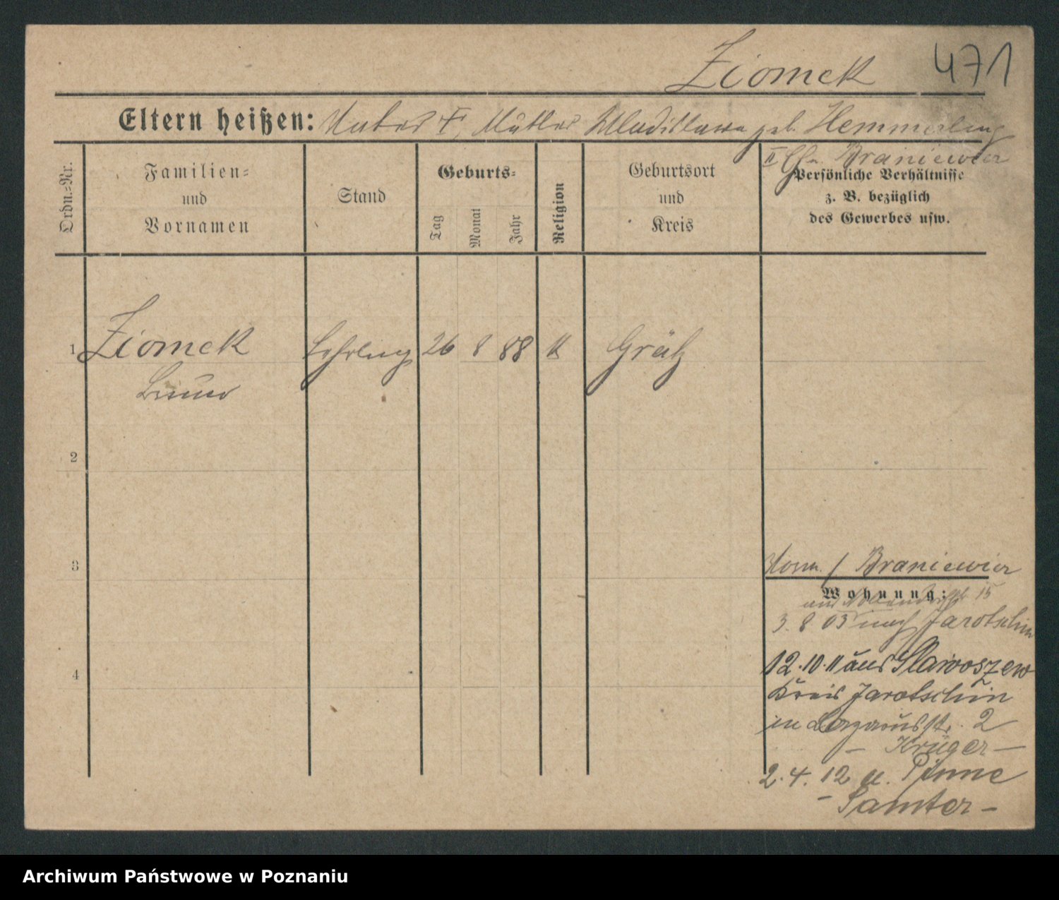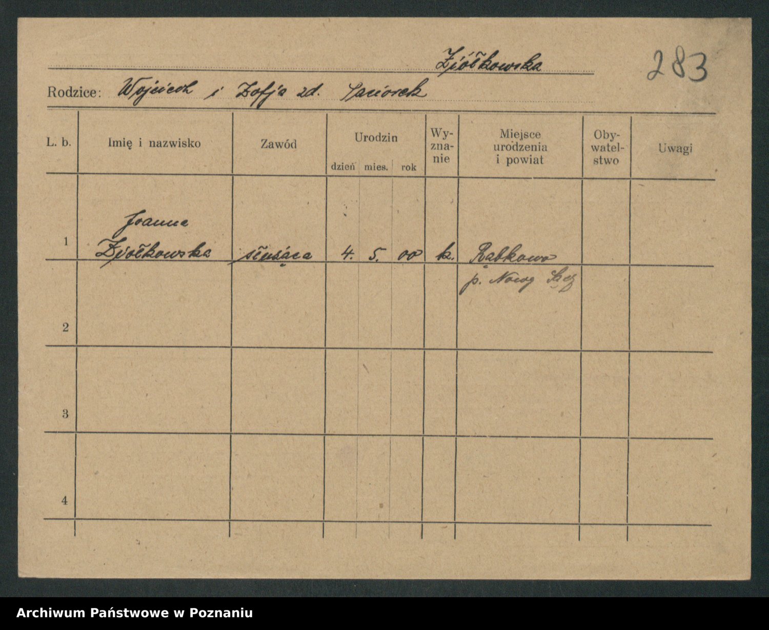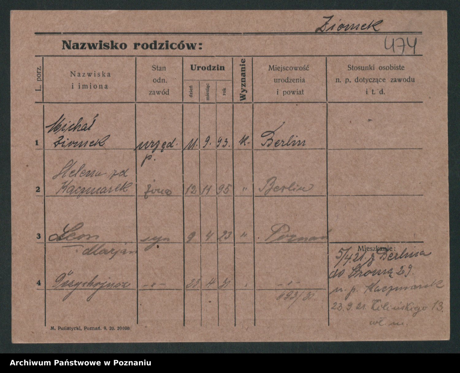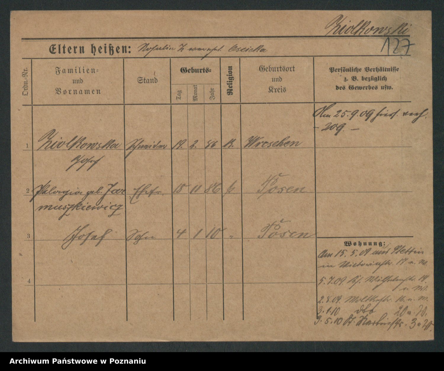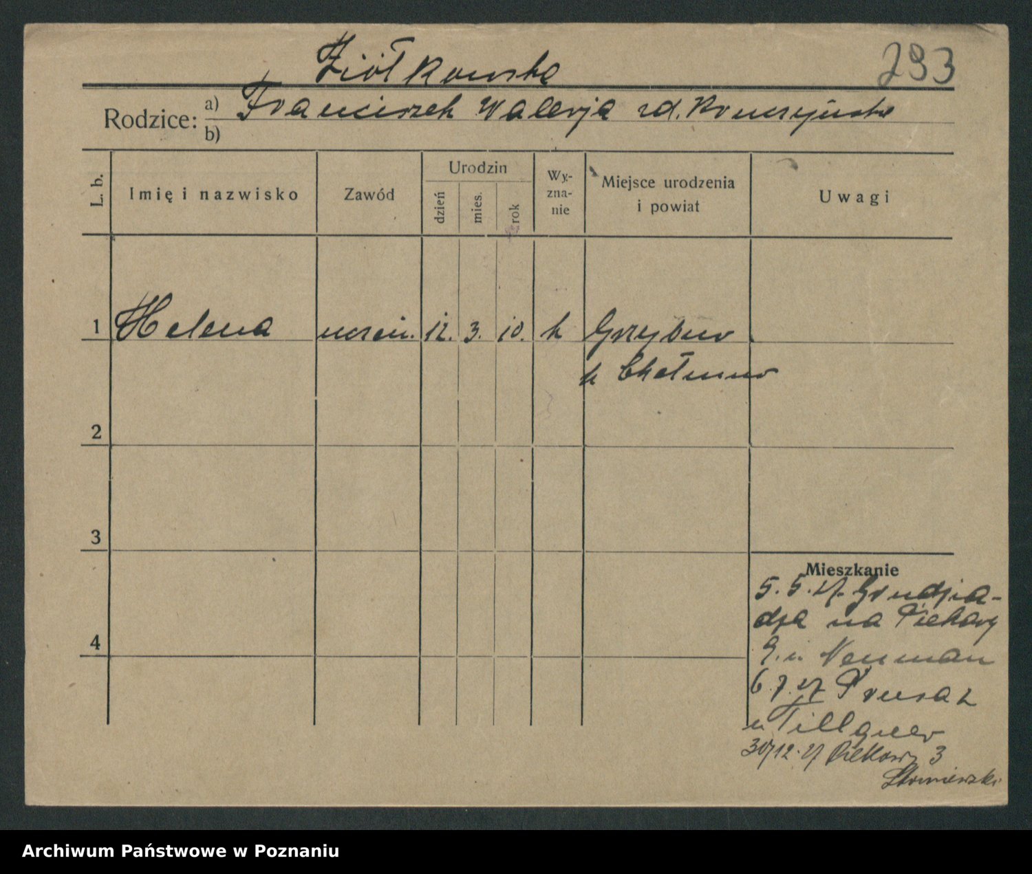 Podgląd karty osobowej dostępny jest po kliknięciu na nazwisko lub ikonkę karty. Można dokonywać powiększenia (ikony na górze) lub przechodzić między kolejnymi skanami (strzałki po bokach).