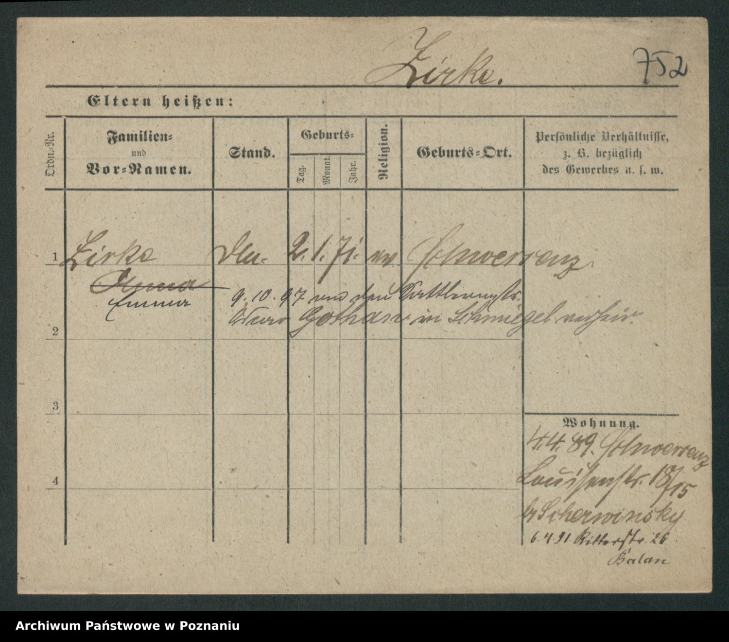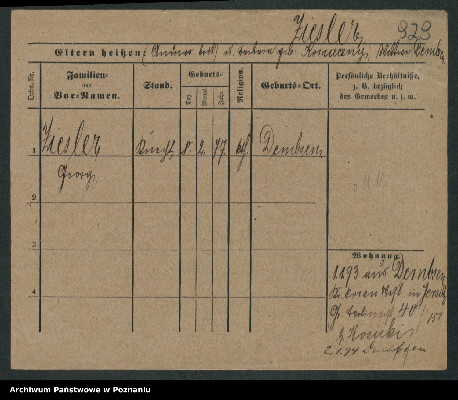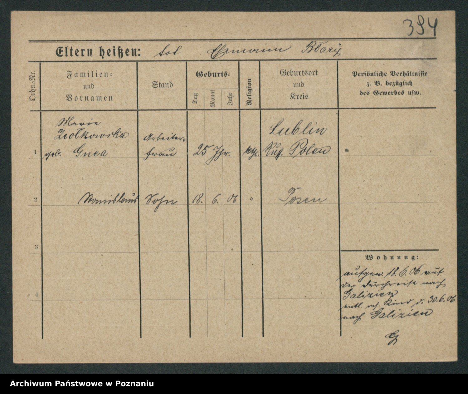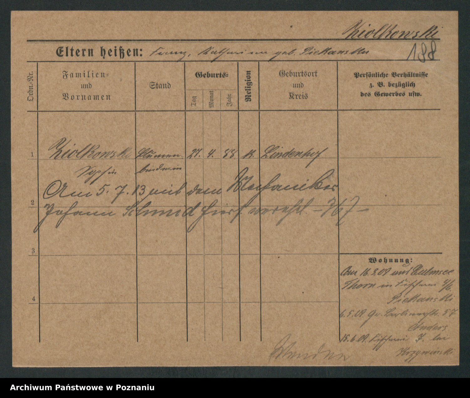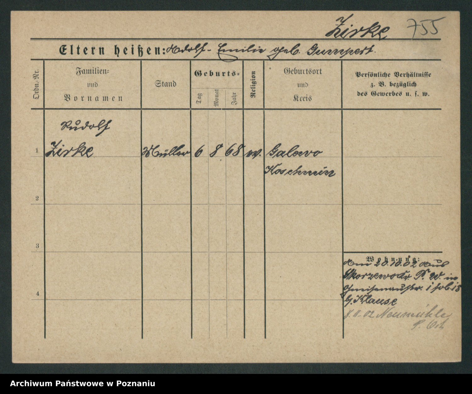 Podgląd karty osobowej dostępny jest po kliknięciu na nazwisko lub ikonkę karty. Można dokonywać powiększenia (ikony na górze) lub przechodzić między kolejnymi skanami (strzałki po bokach).