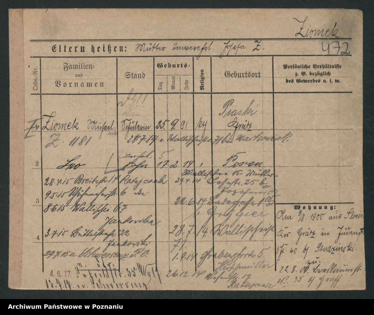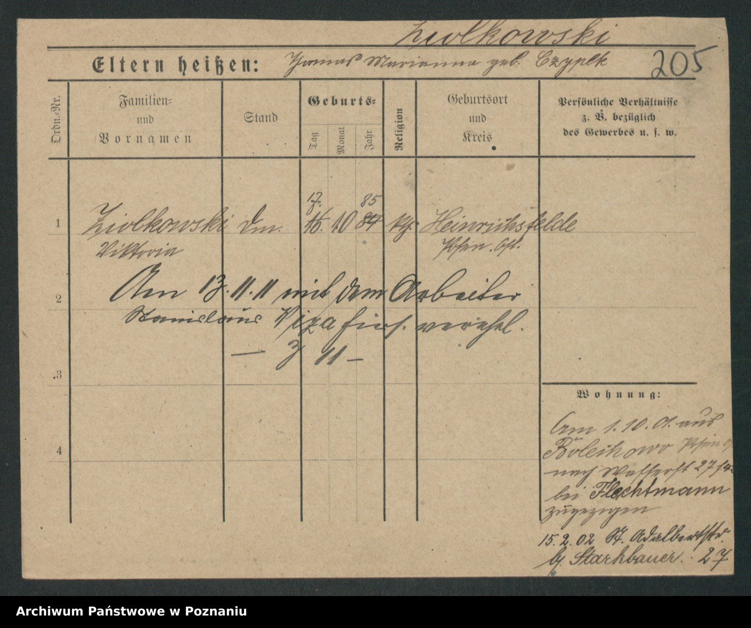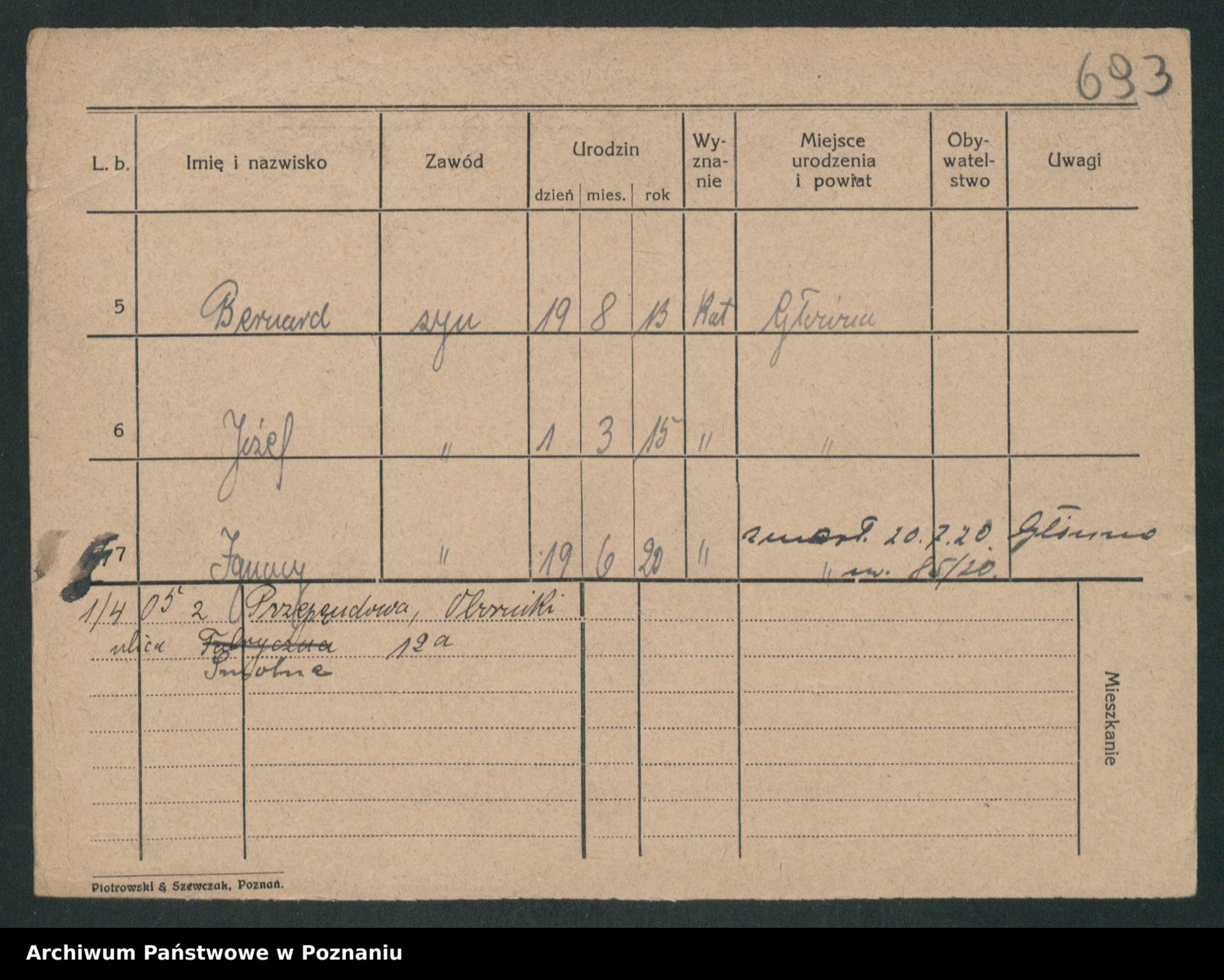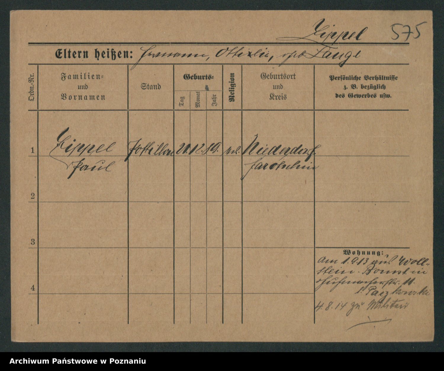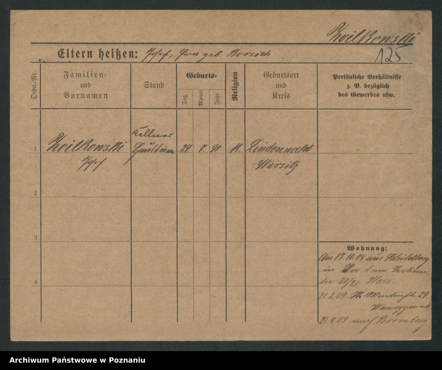 Podgląd karty osobowej dostępny jest po kliknięciu na nazwisko lub ikonkę karty. Można dokonywać powiększenia (ikony na górze) lub przechodzić między kolejnymi skanami (strzałki po bokach).