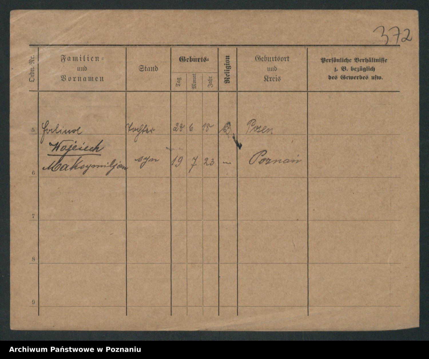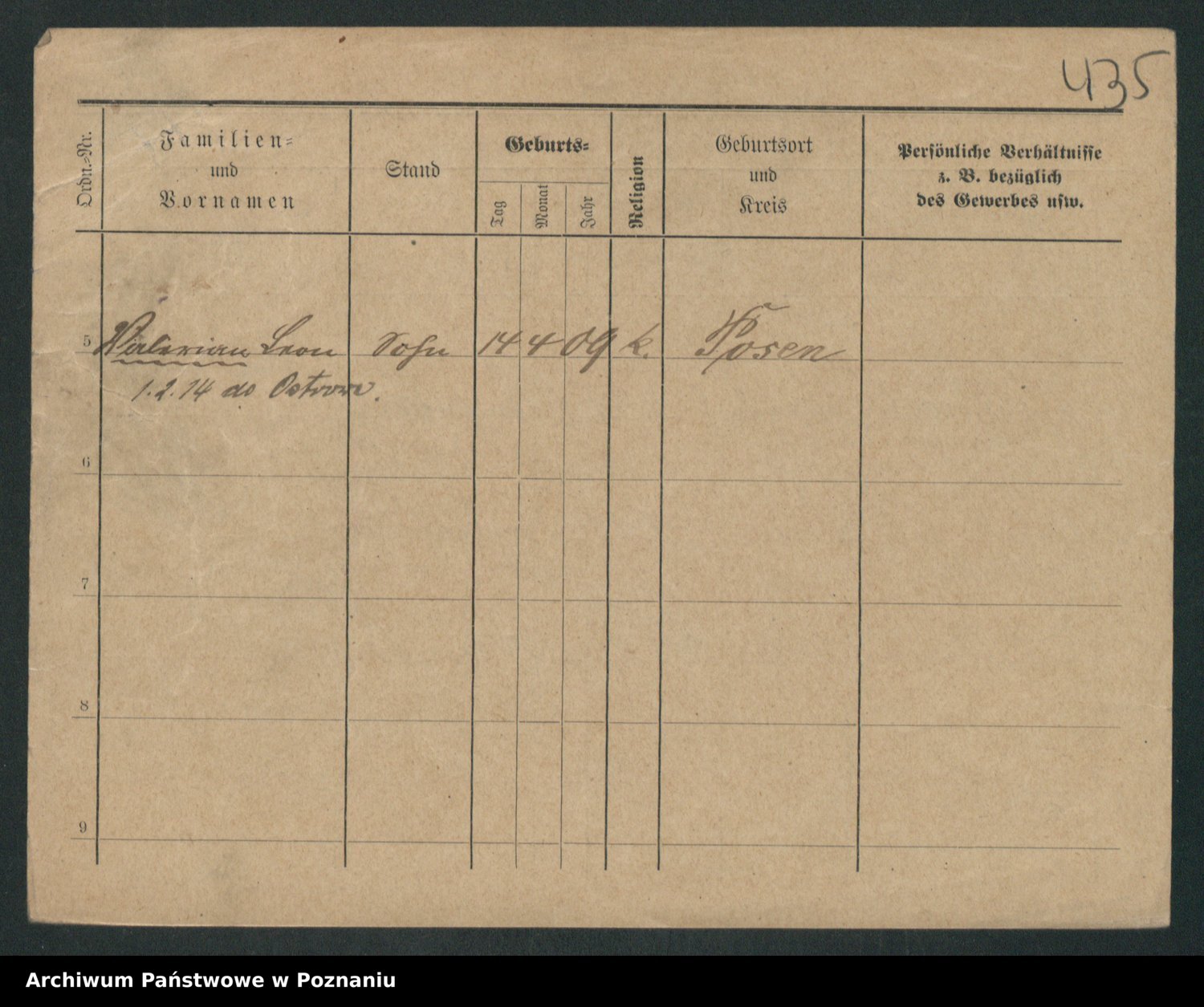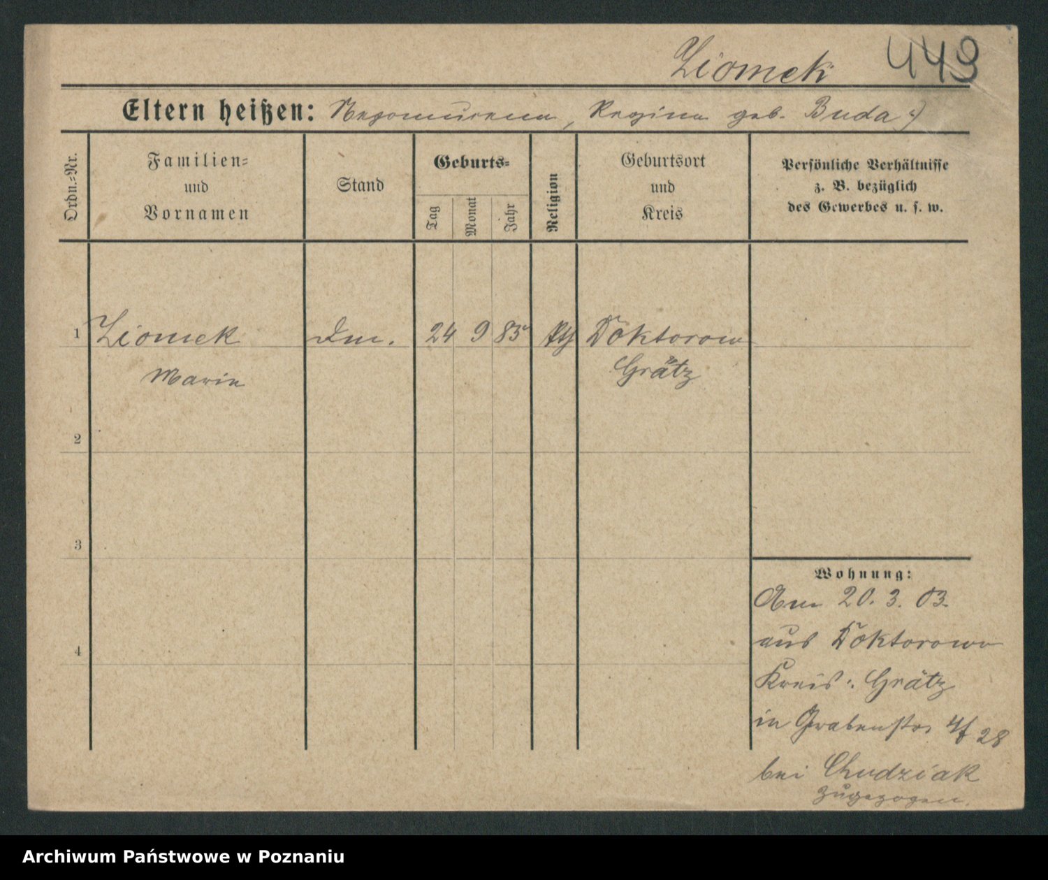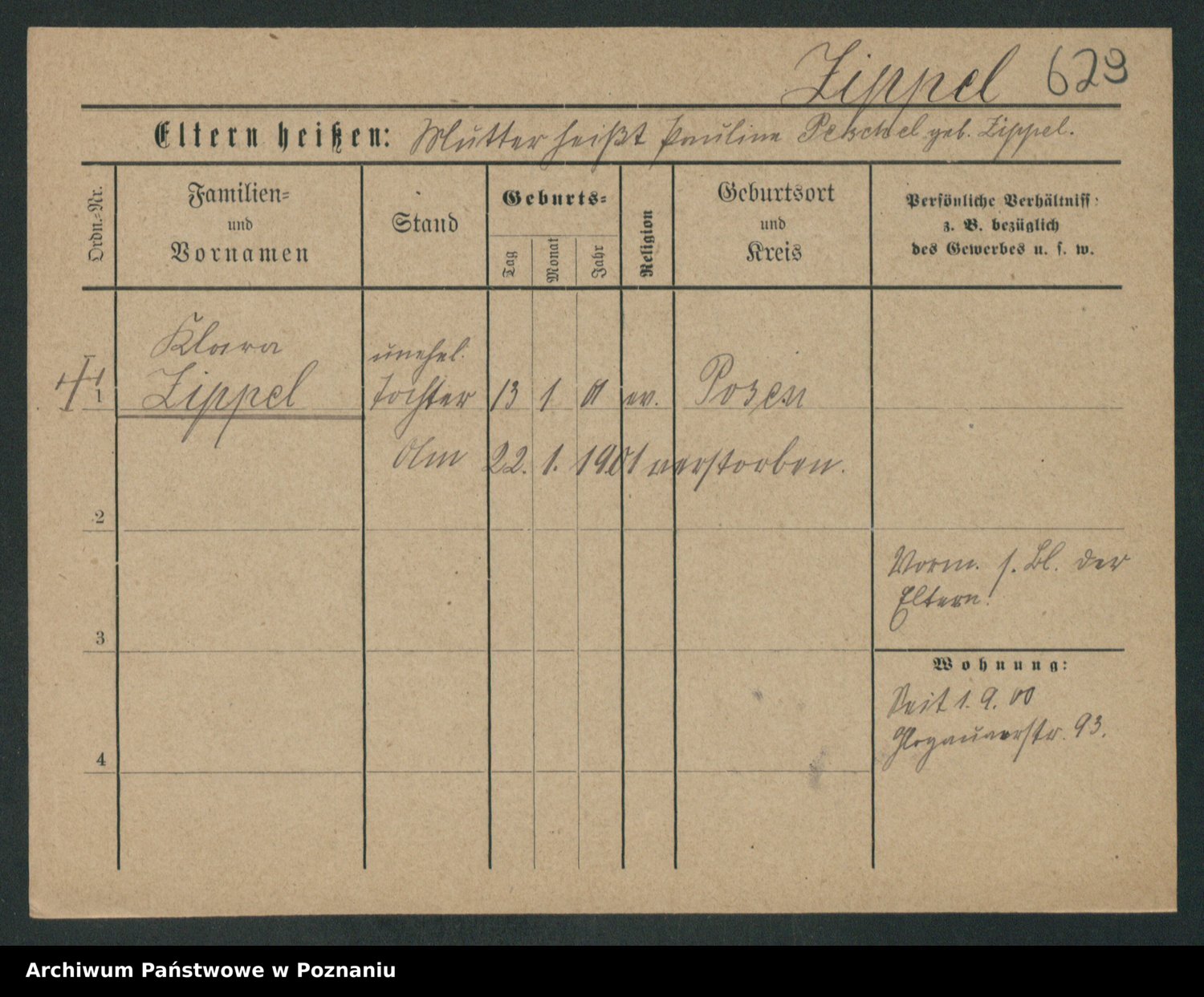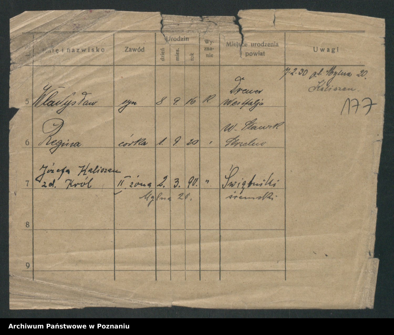Podgląd karty osobowej dostępny jest po kliknięciu na nazwisko lub ikonkę karty. Można dokonywać powiększenia (ikony na górze) lub przechodzić między kolejnymi skanami (strzałki po bokach).