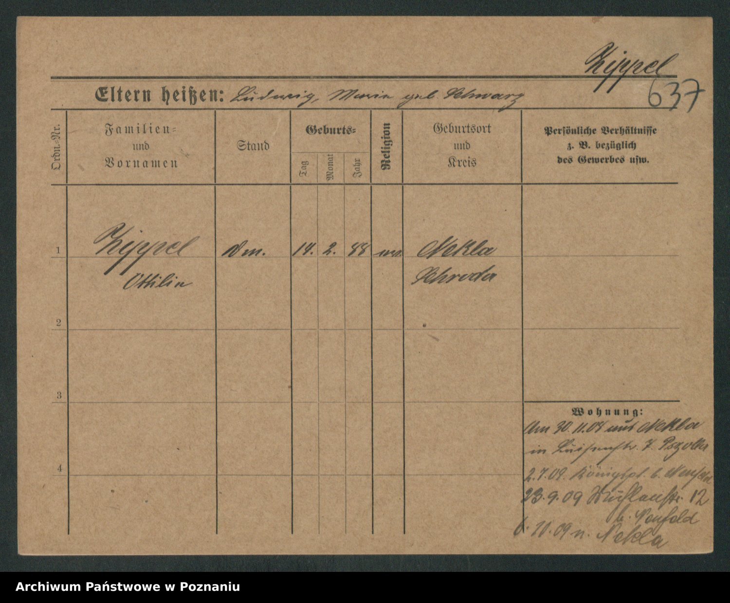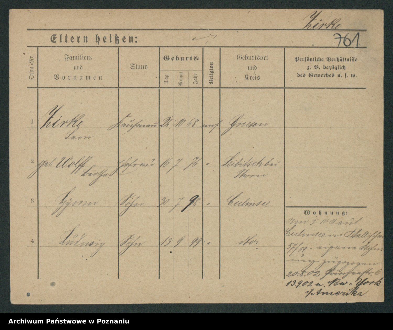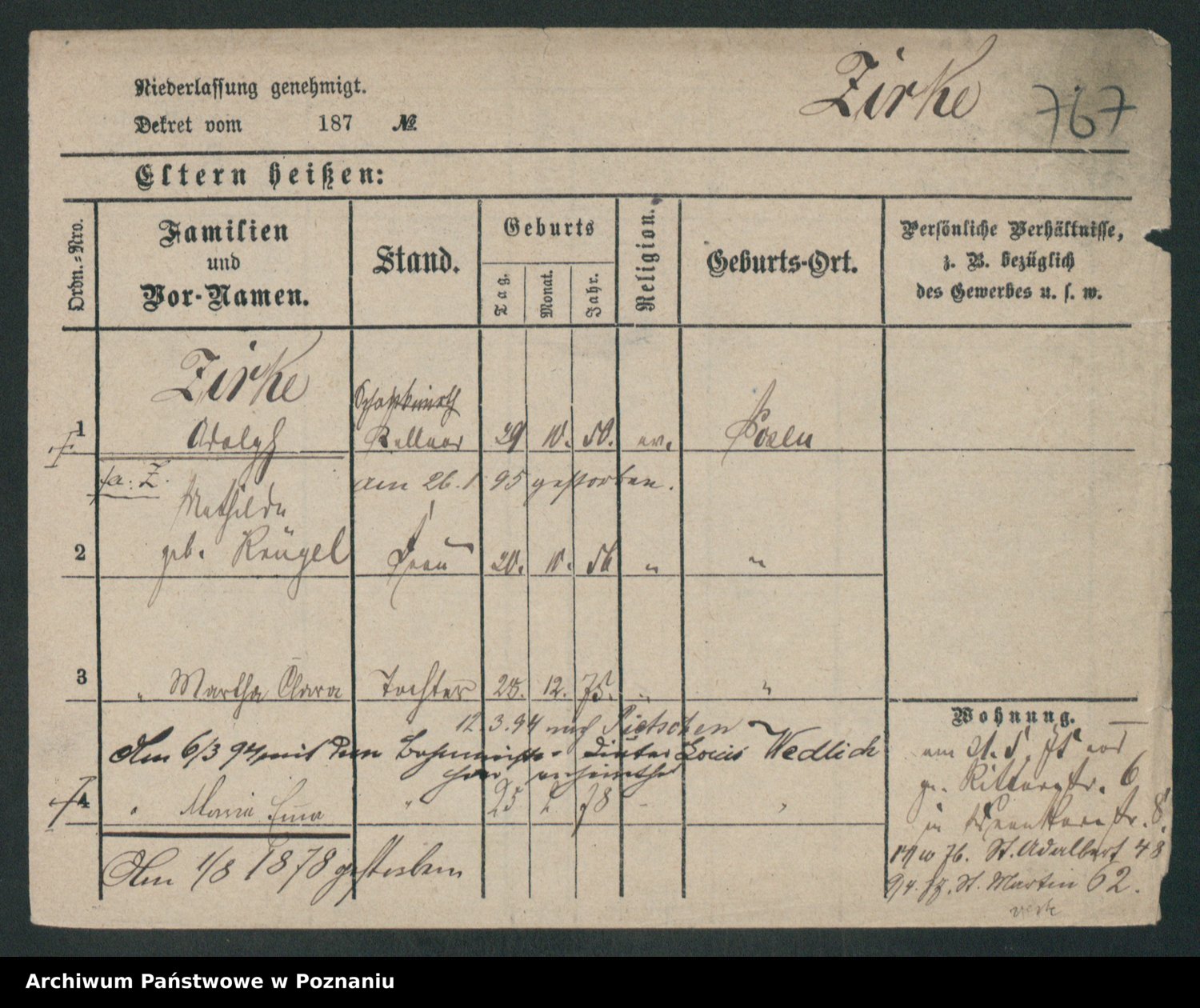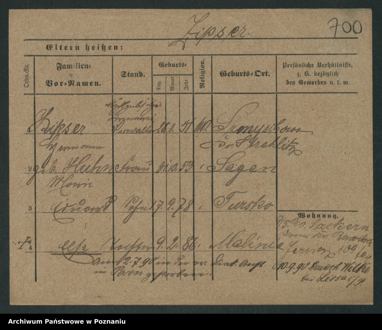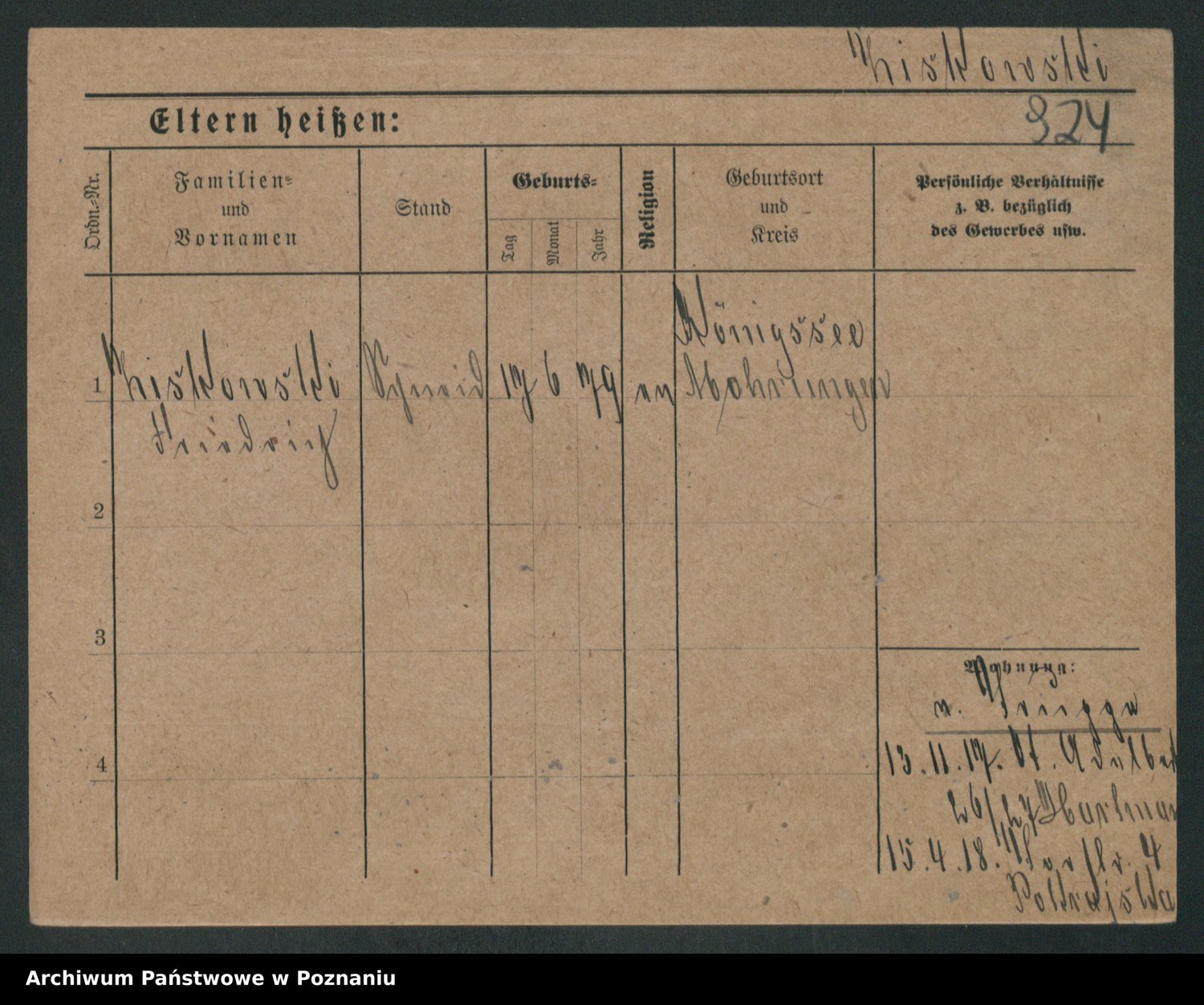 Podgląd karty osobowej dostępny jest po kliknięciu na nazwisko lub ikonkę karty. Można dokonywać powiększenia (ikony na górze) lub przechodzić między kolejnymi skanami (strzałki po bokach).
