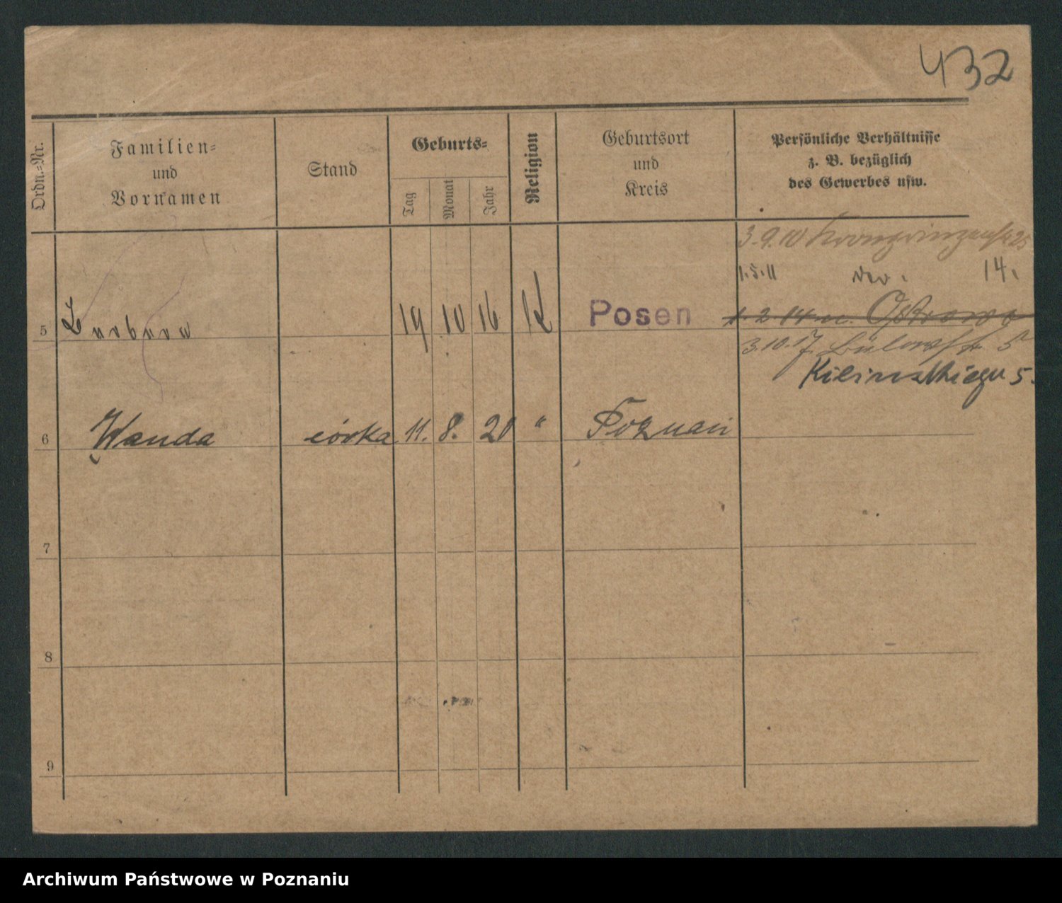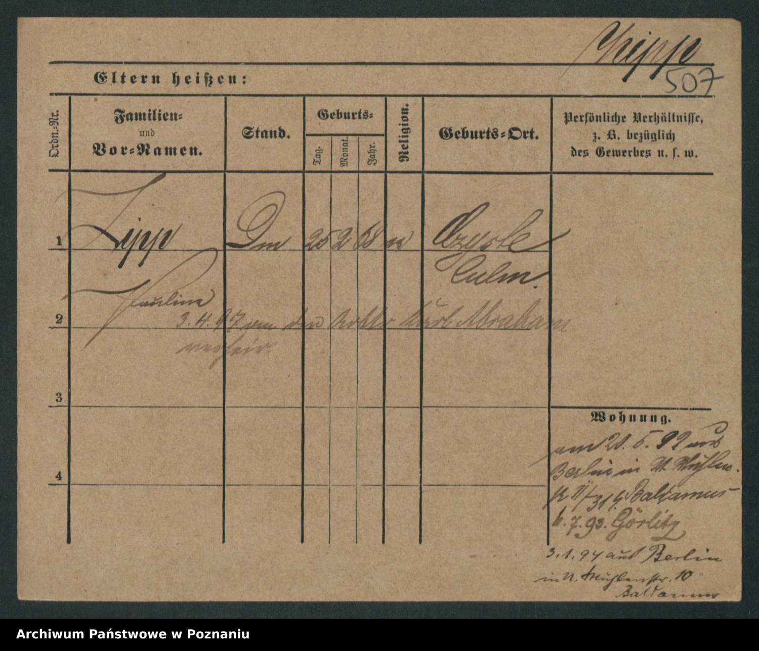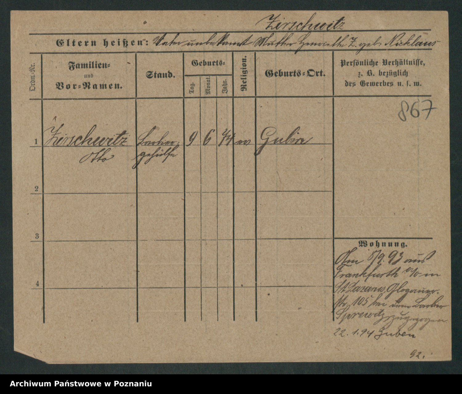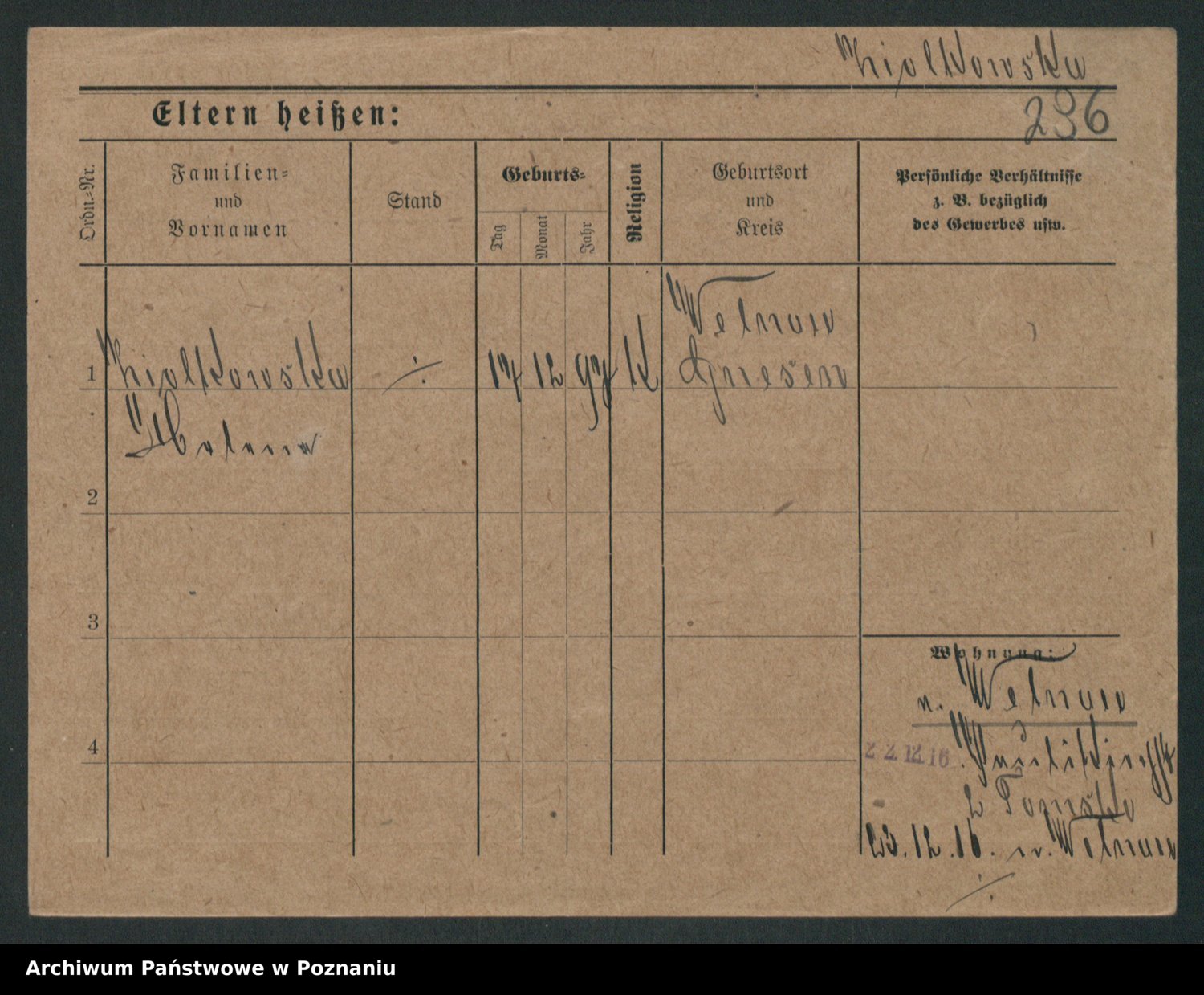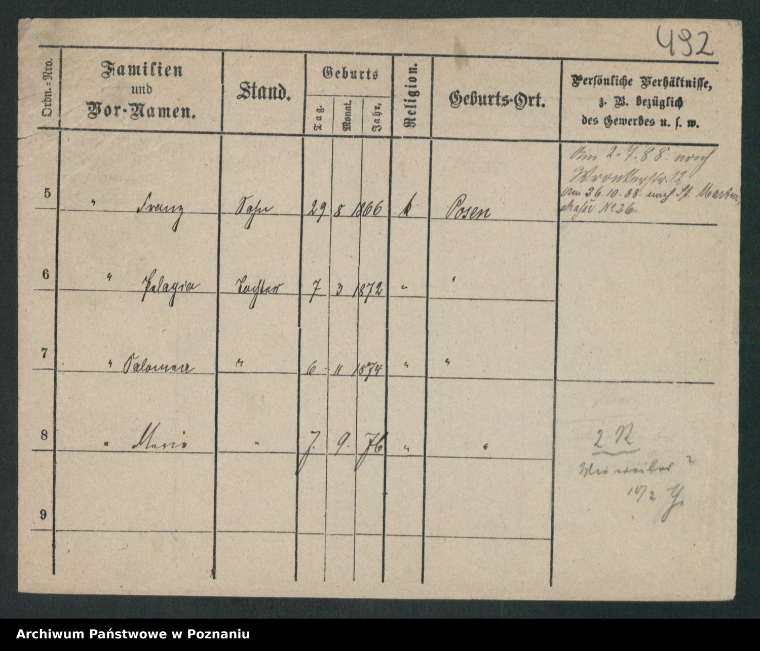 Podgląd karty osobowej dostępny jest po kliknięciu na nazwisko lub ikonkę karty. Można dokonywać powiększenia (ikony na górze) lub przechodzić między kolejnymi skanami (strzałki po bokach).
