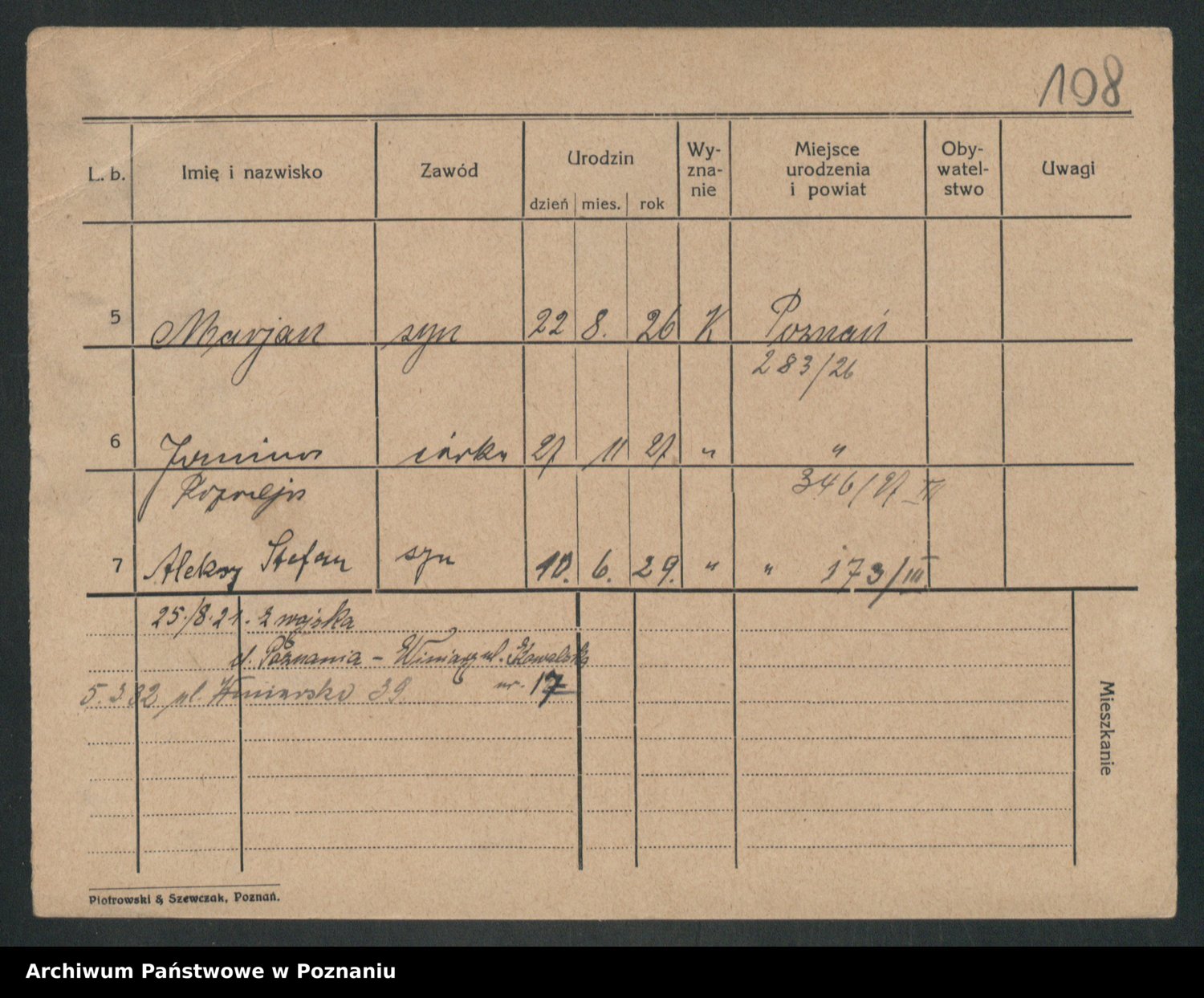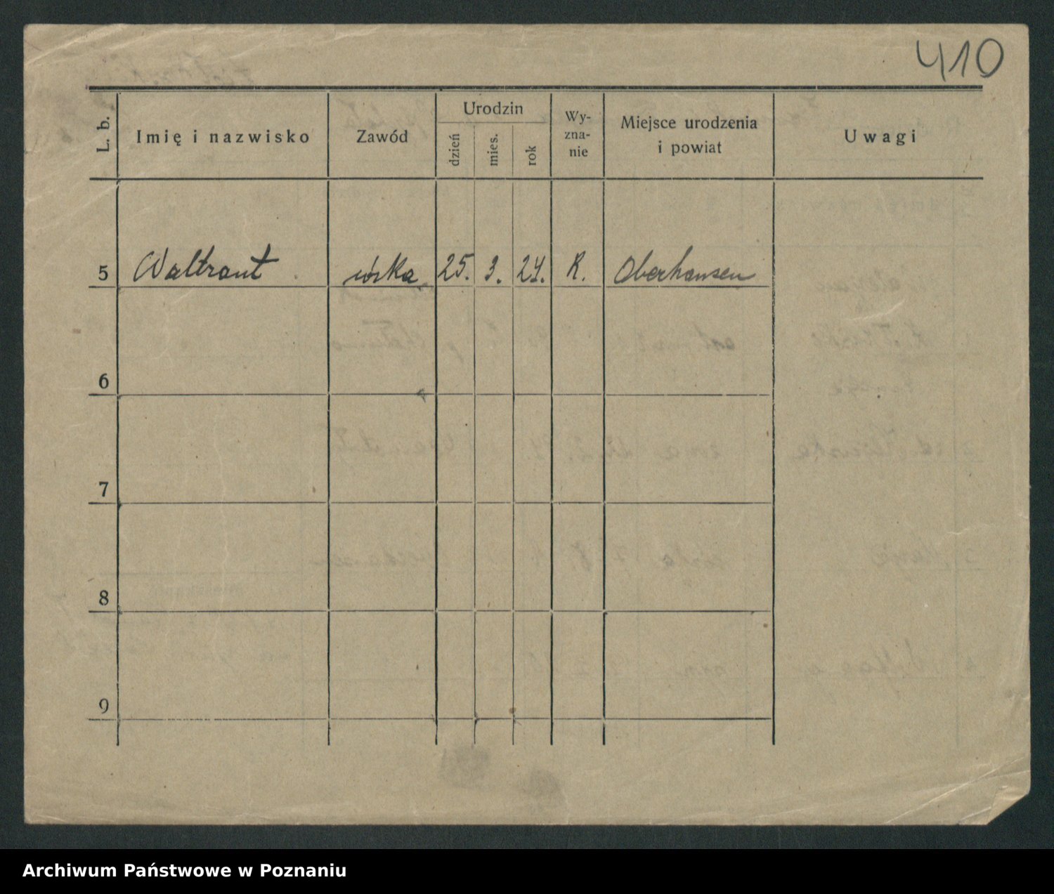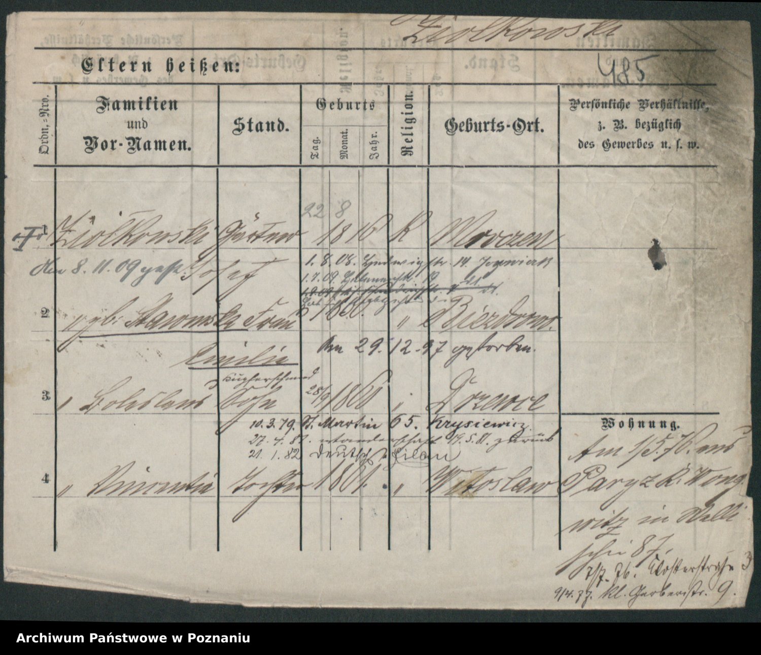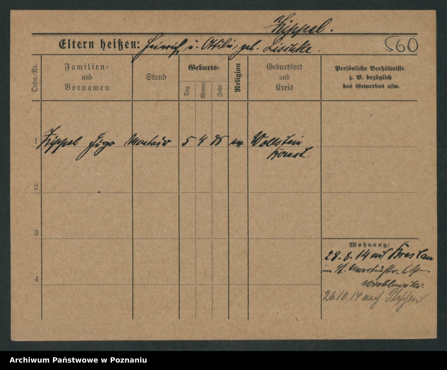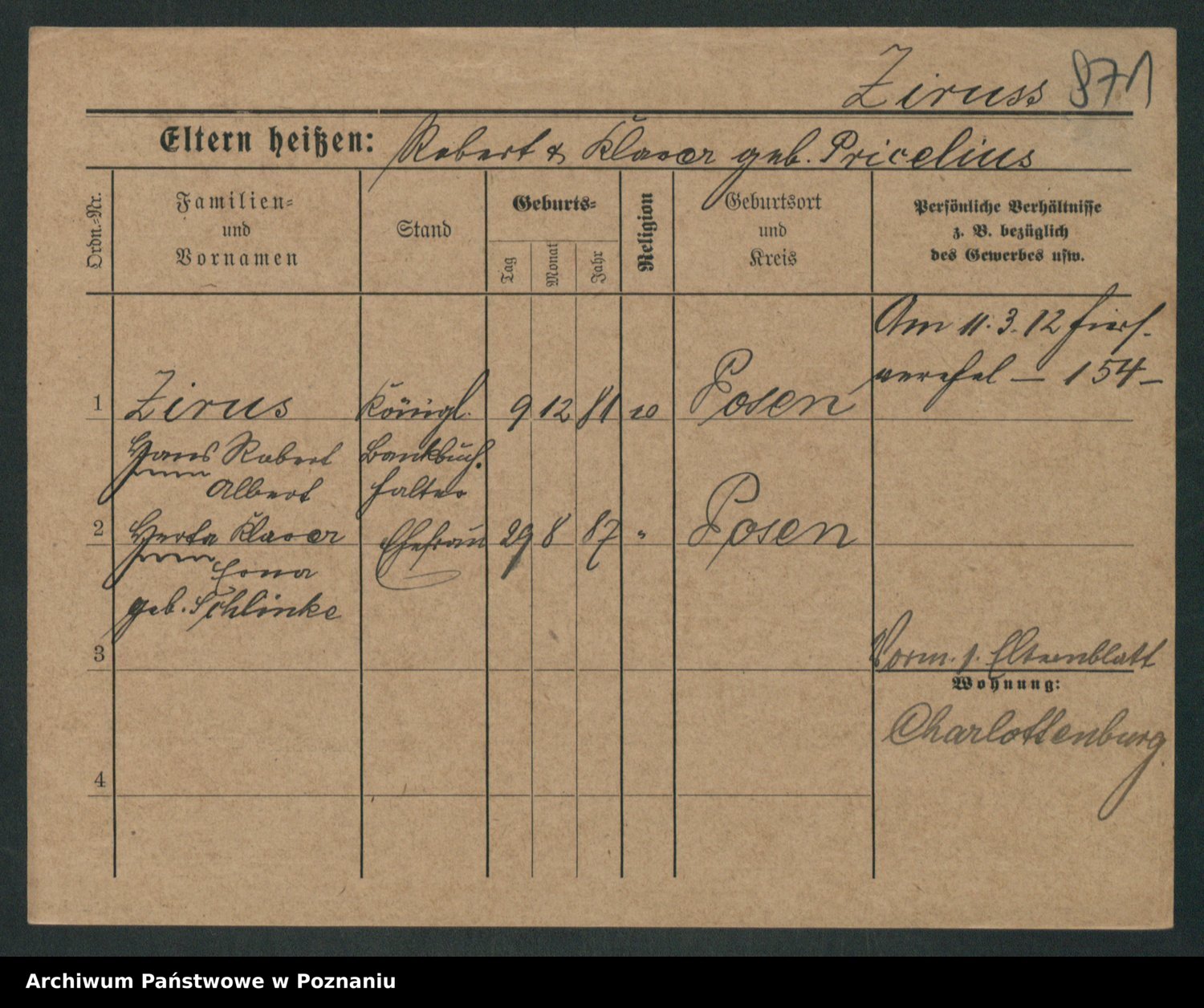 Podgląd karty osobowej dostępny jest po kliknięciu na nazwisko lub ikonkę karty. Można dokonywać powiększenia (ikony na górze) lub przechodzić między kolejnymi skanami (strzałki po bokach).