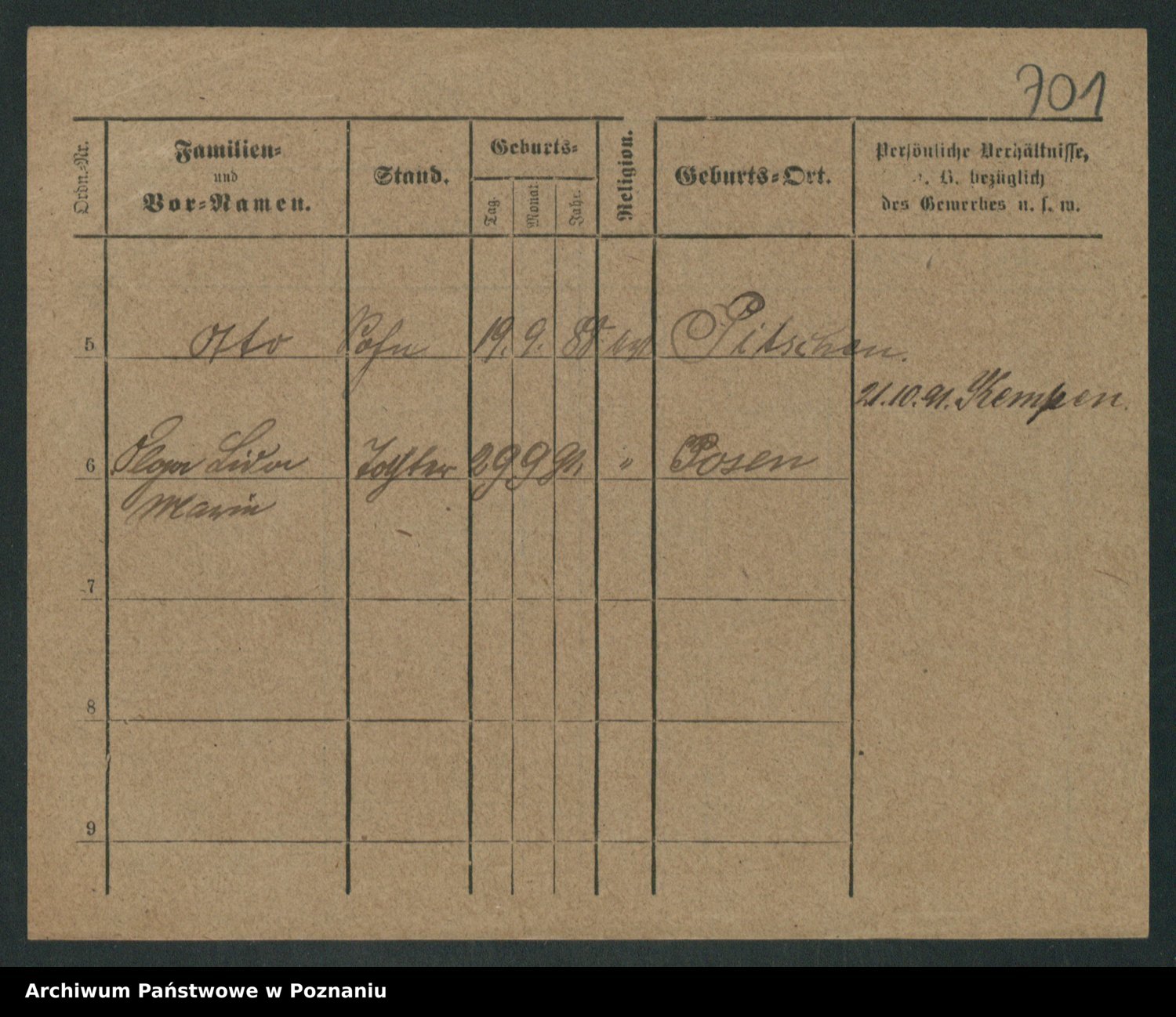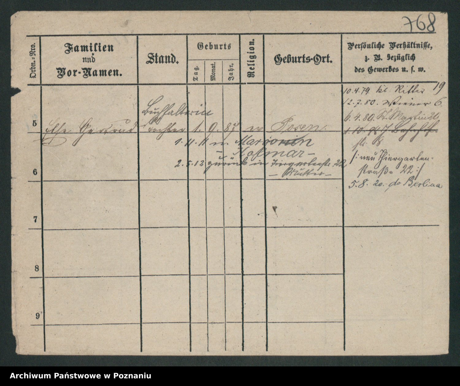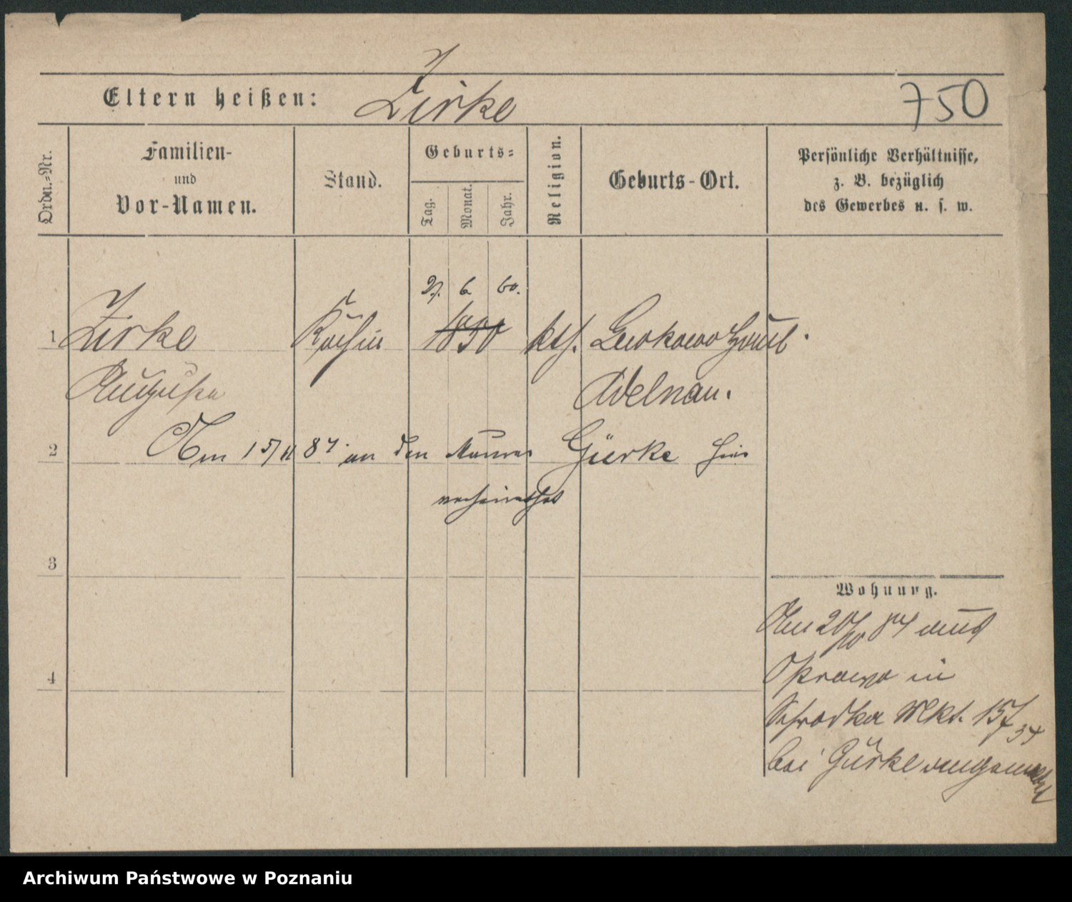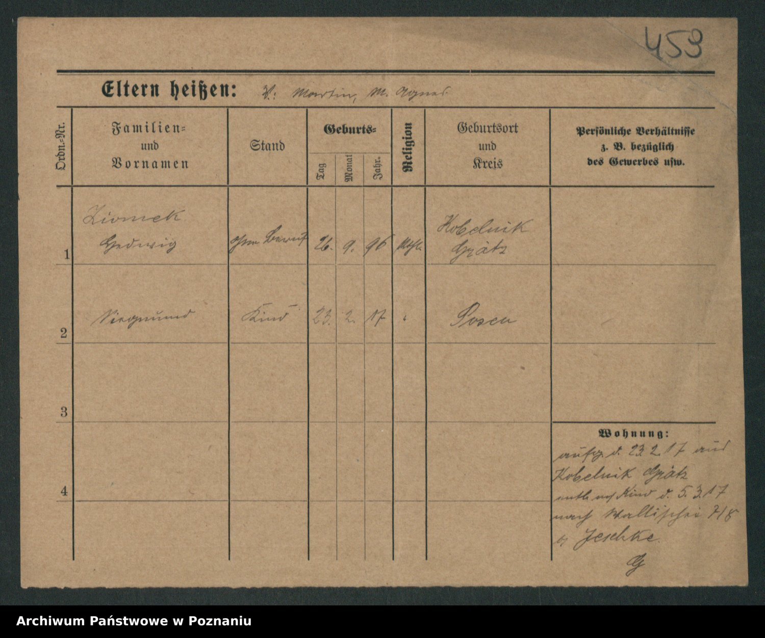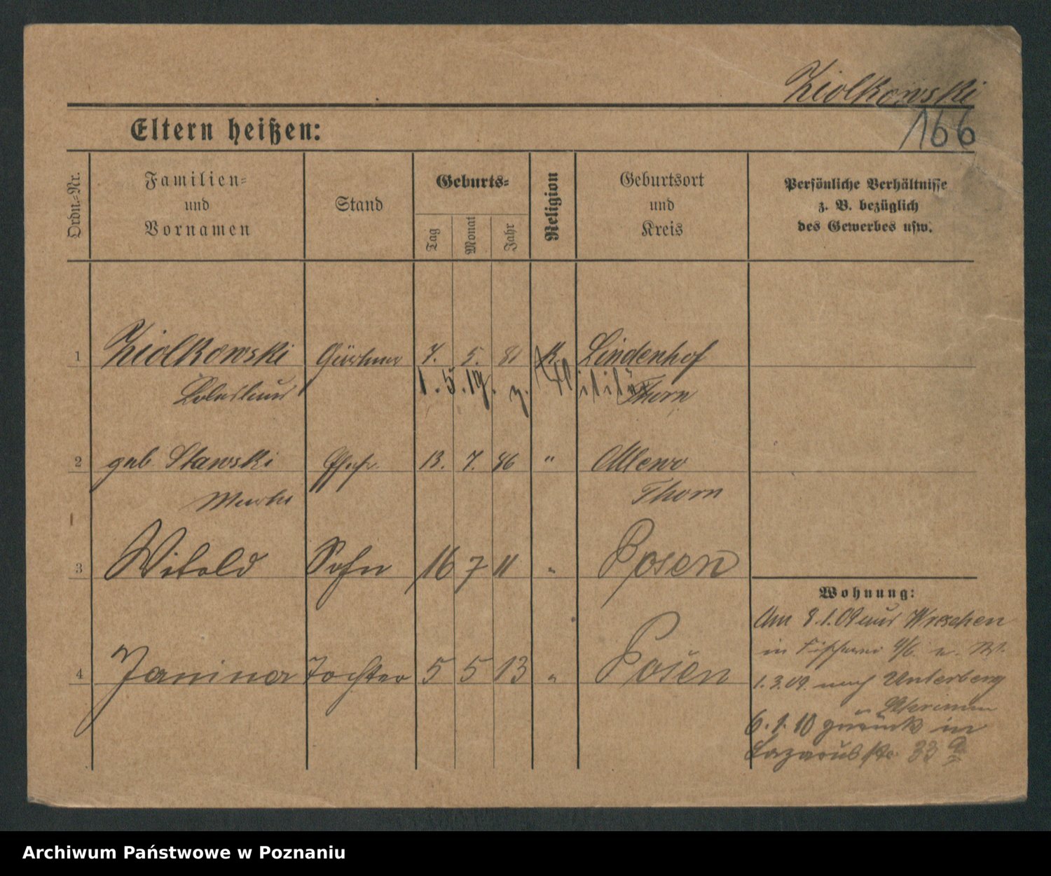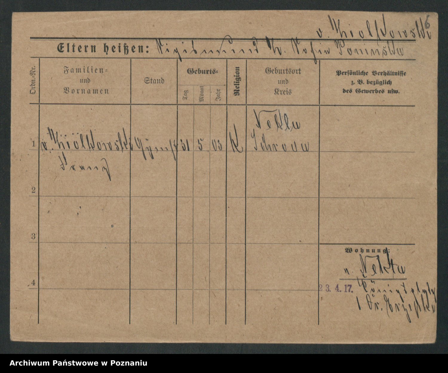 Podgląd karty osobowej dostępny jest po kliknięciu na nazwisko lub ikonkę karty. Można dokonywać powiększenia (ikony na górze) lub przechodzić między kolejnymi skanami (strzałki po bokach).