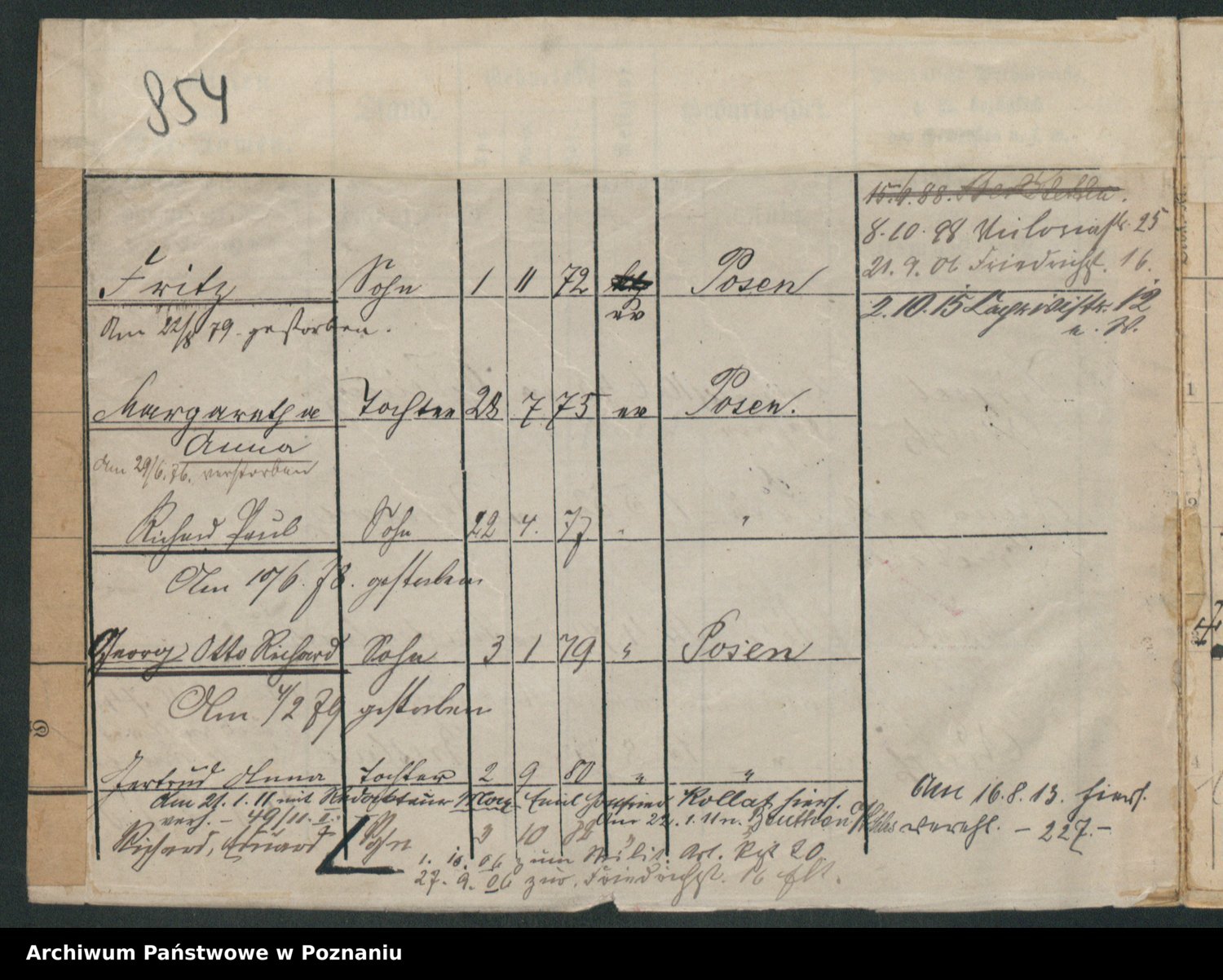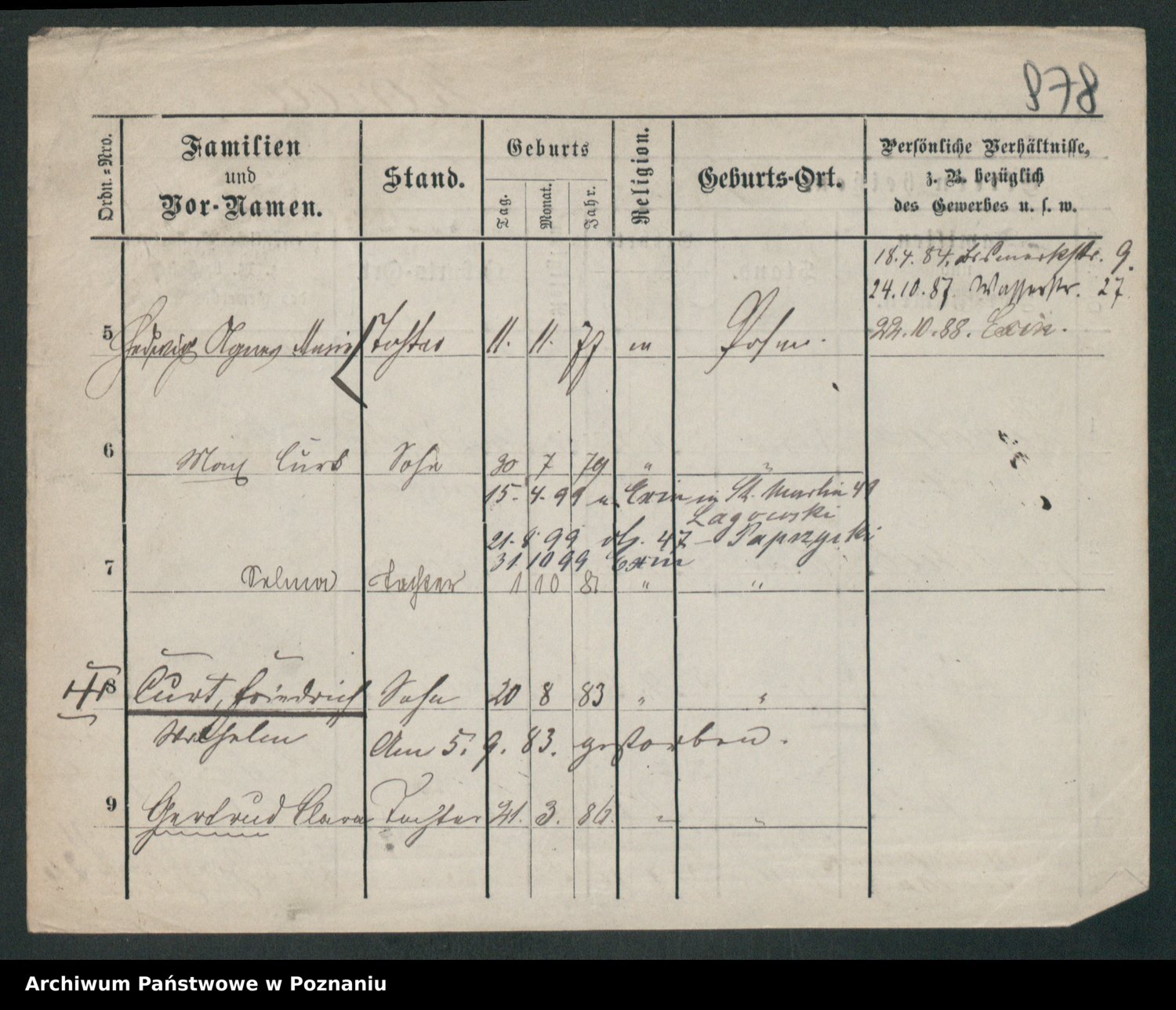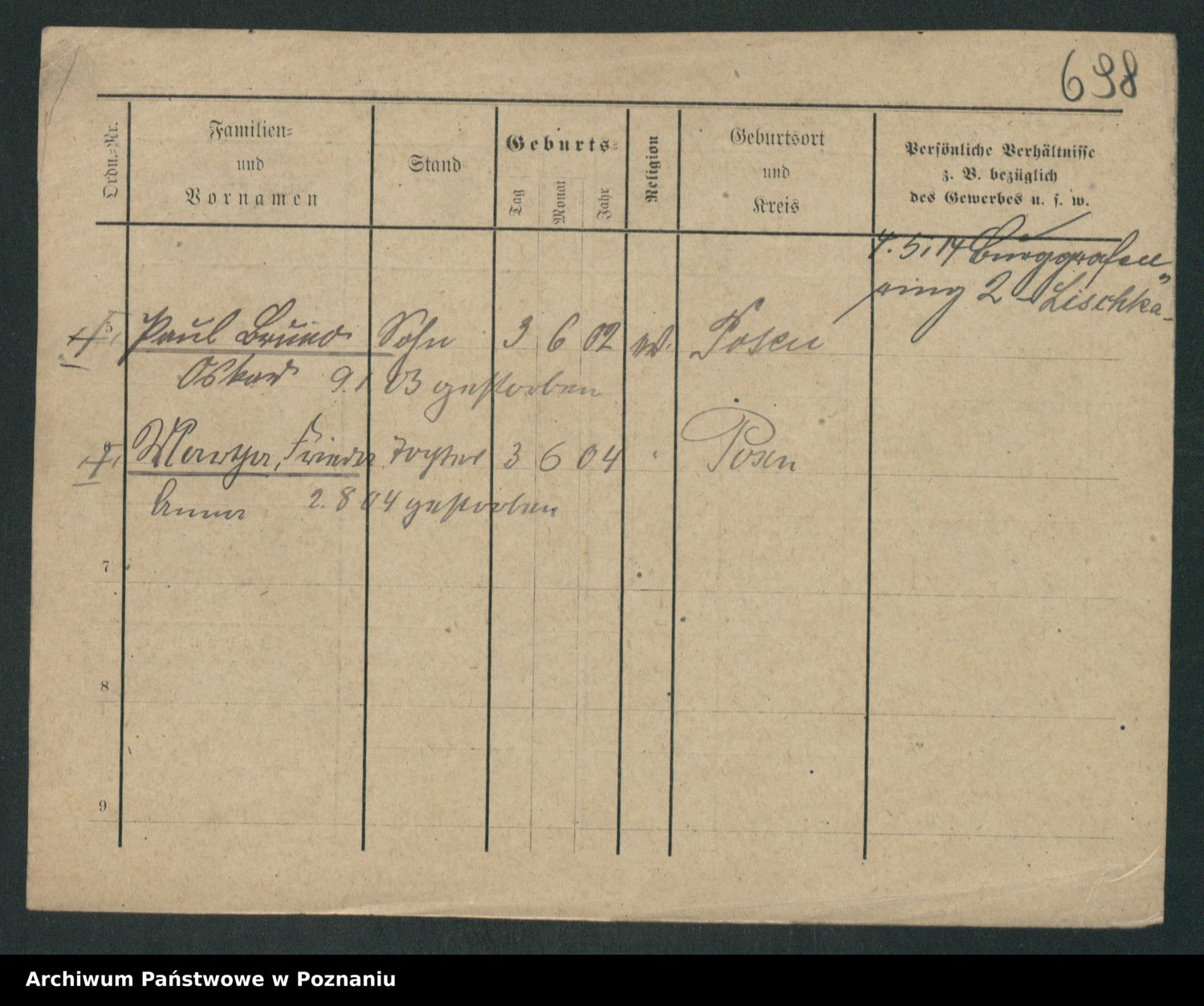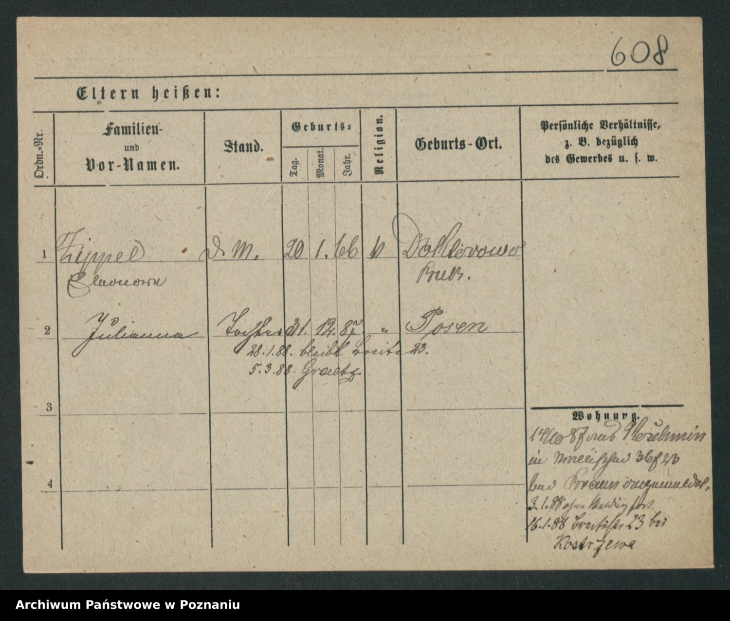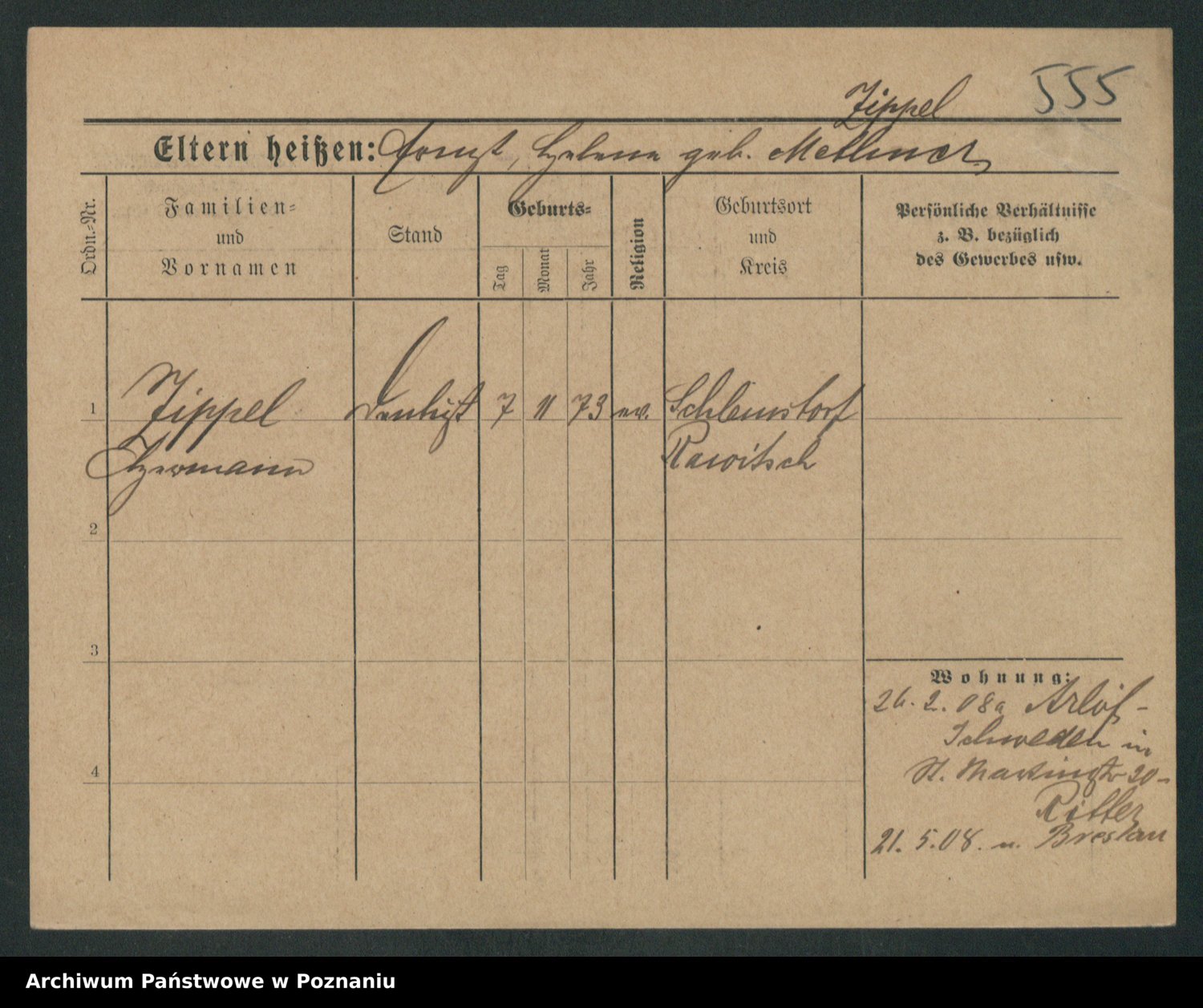 Podgląd karty osobowej dostępny jest po kliknięciu na nazwisko lub ikonkę karty. Można dokonywać powiększenia (ikony na górze) lub przechodzić między kolejnymi skanami (strzałki po bokach).