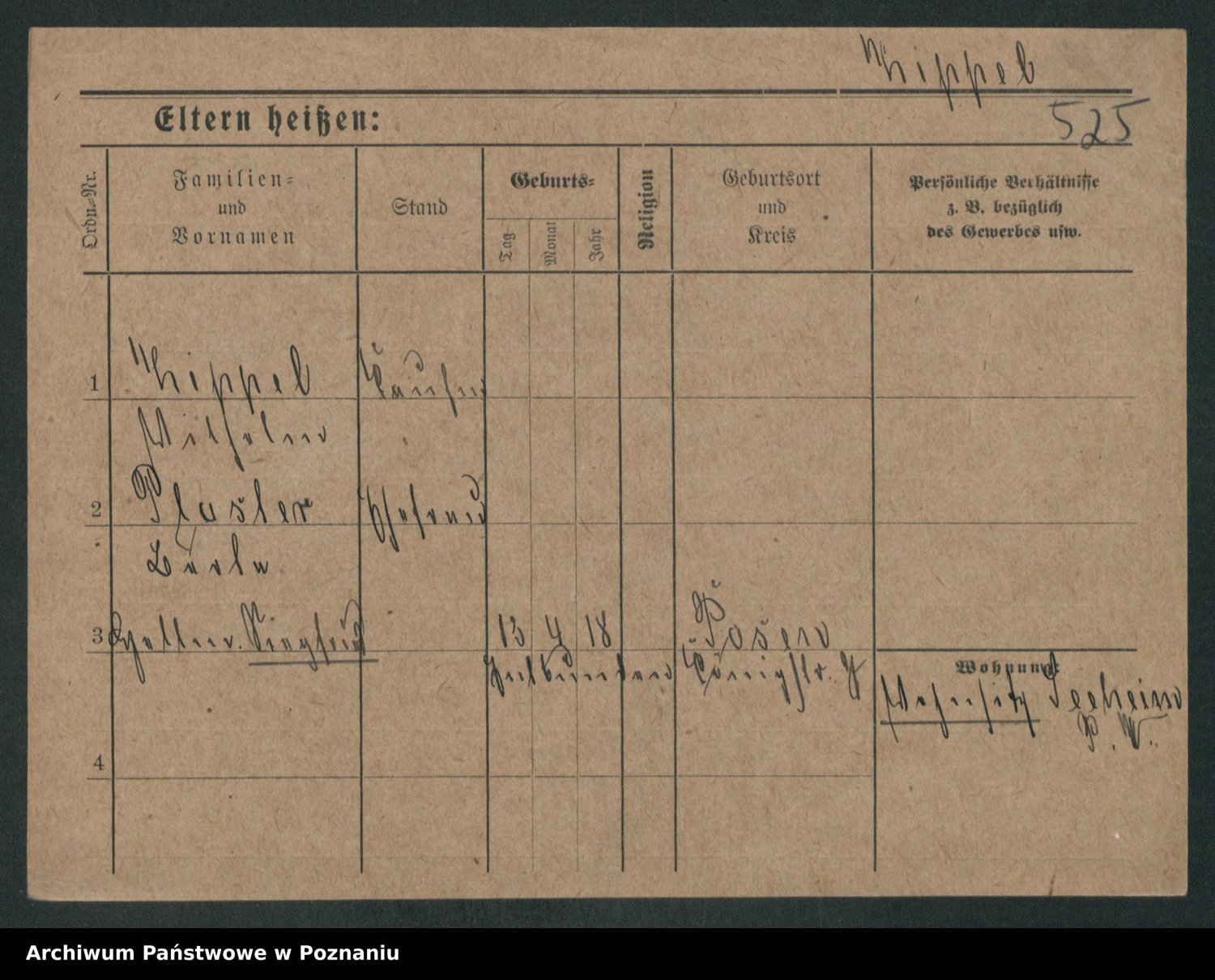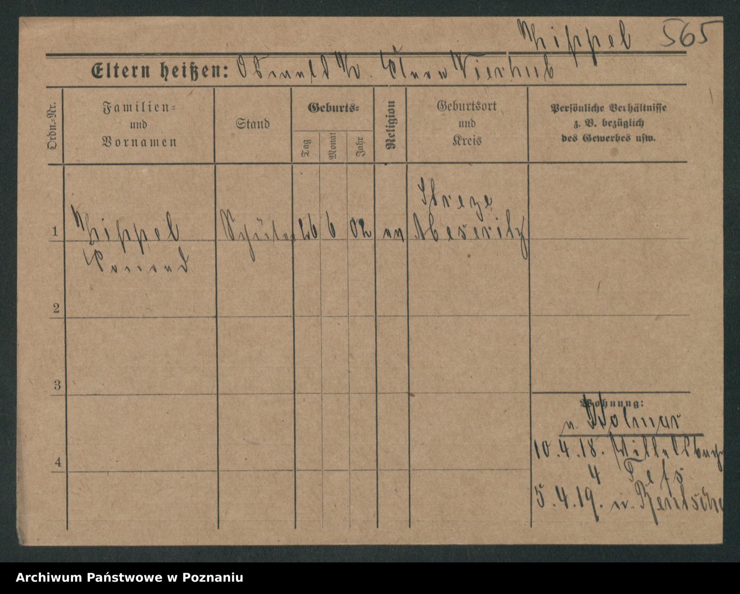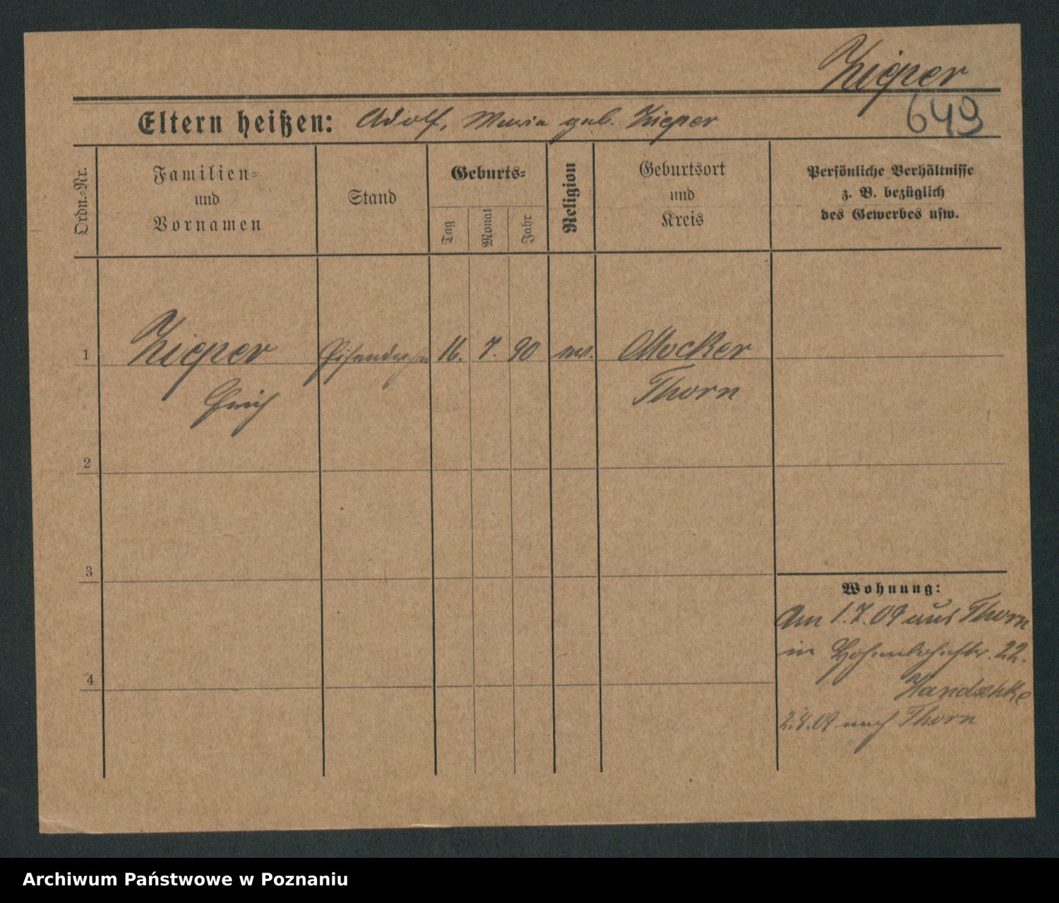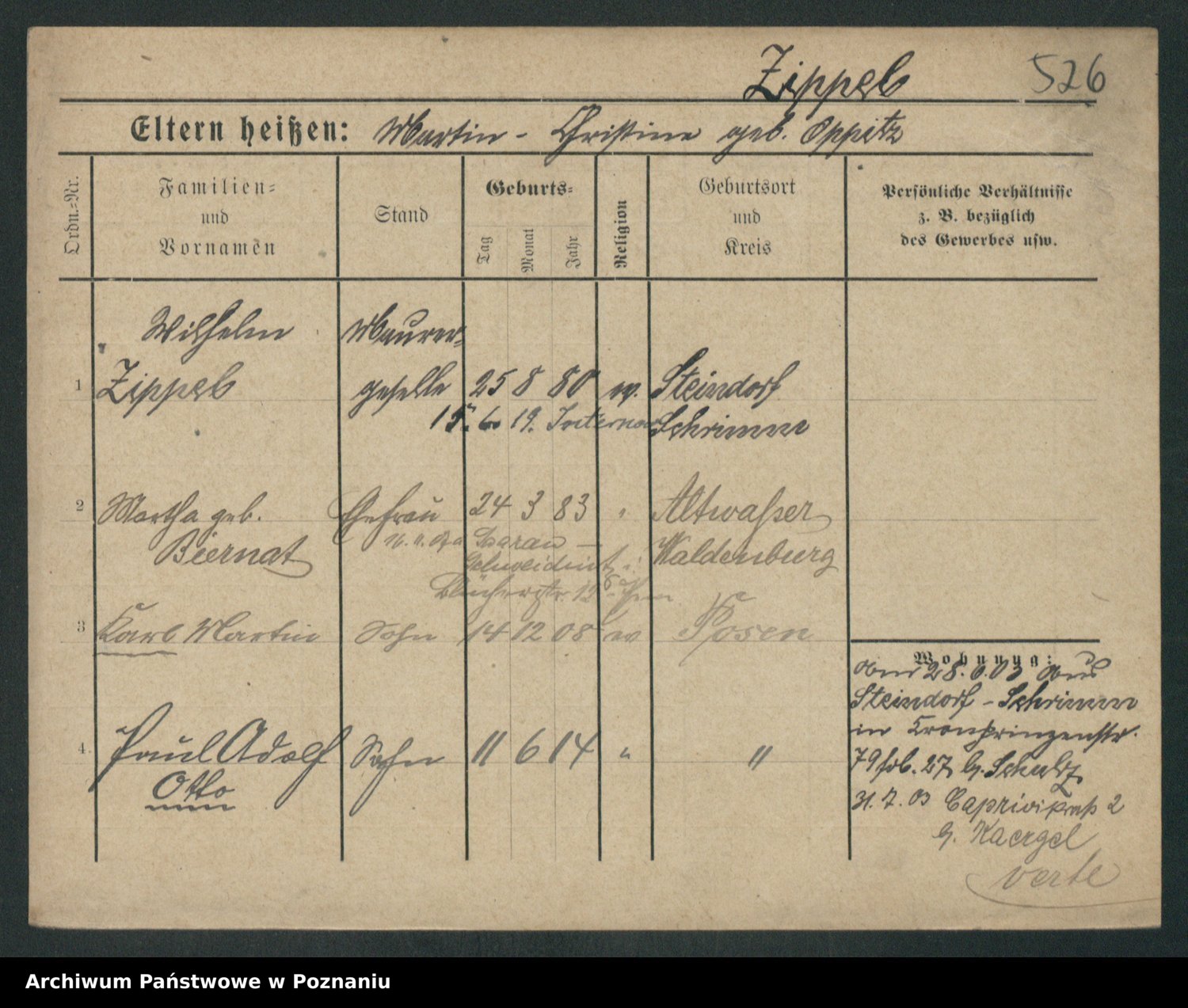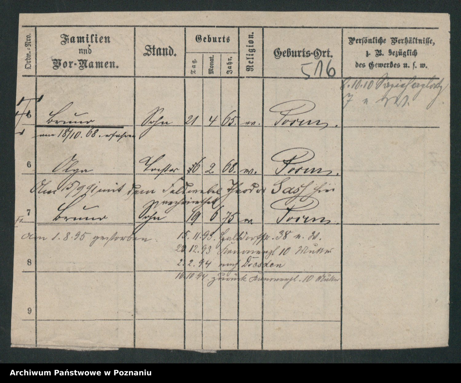 Podgląd karty osobowej dostępny jest po kliknięciu na nazwisko lub ikonkę karty. Można dokonywać powiększenia (ikony na górze) lub przechodzić między kolejnymi skanami (strzałki po bokach).