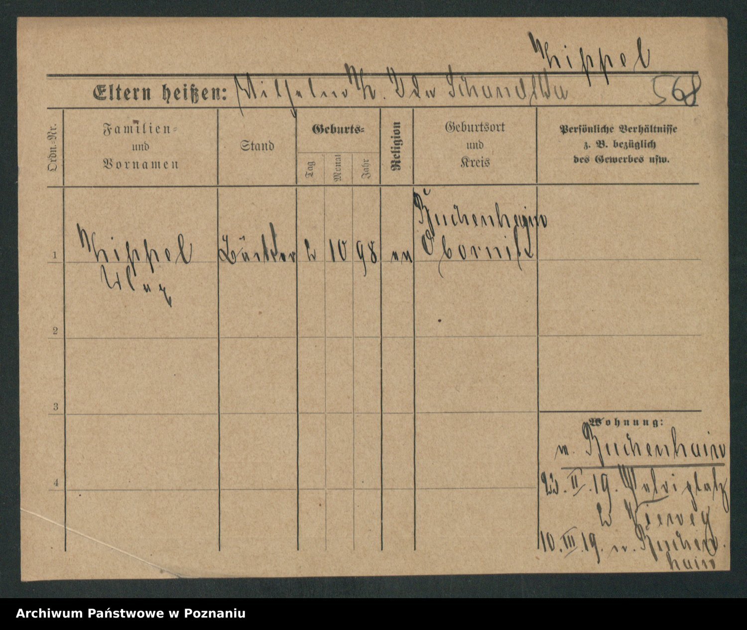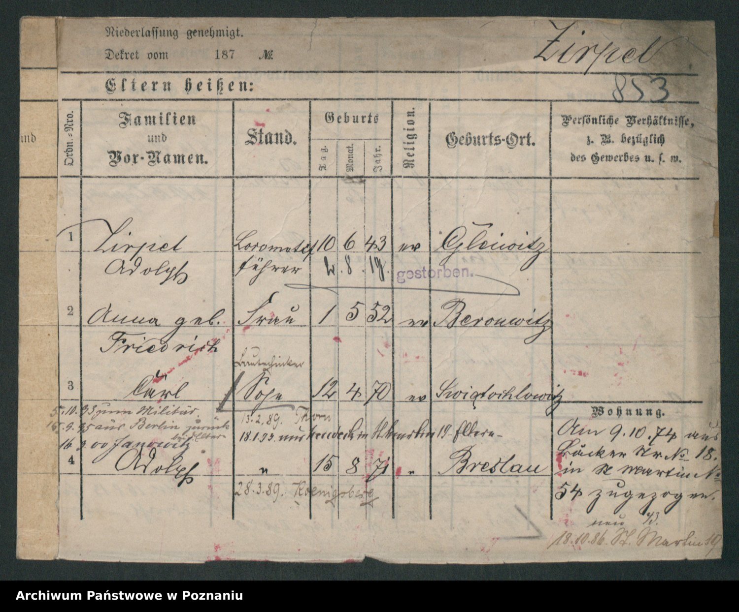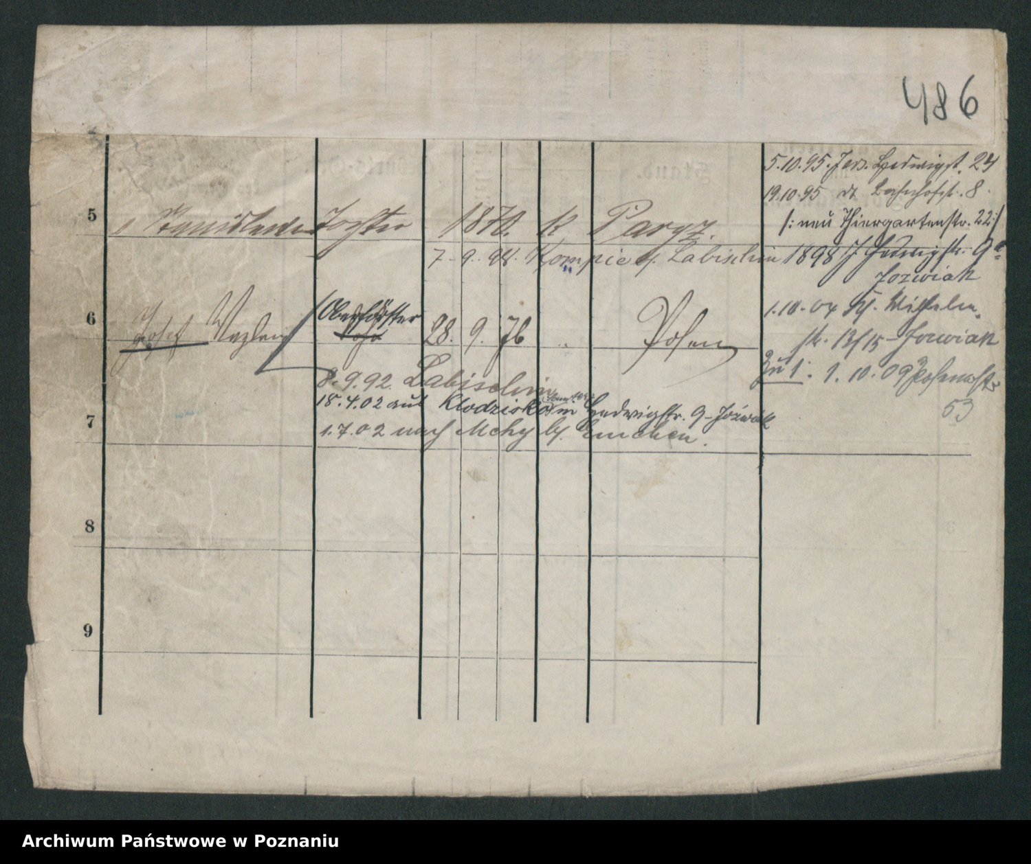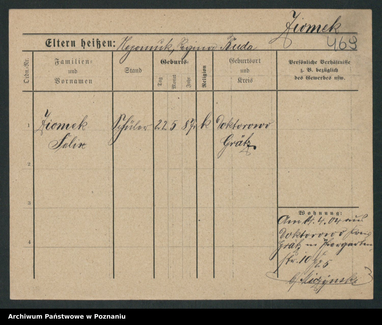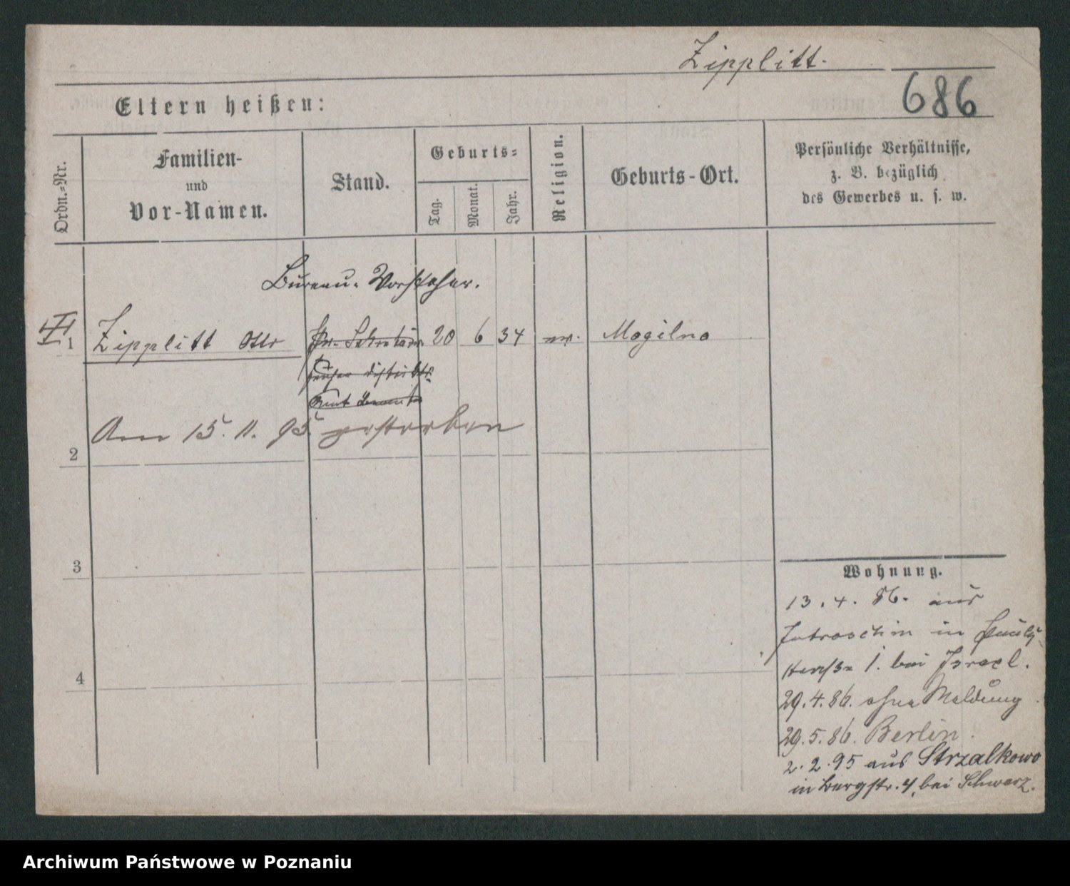 Podgląd karty osobowej dostępny jest po kliknięciu na nazwisko lub ikonkę karty. Można dokonywać powiększenia (ikony na górze) lub przechodzić między kolejnymi skanami (strzałki po bokach).
