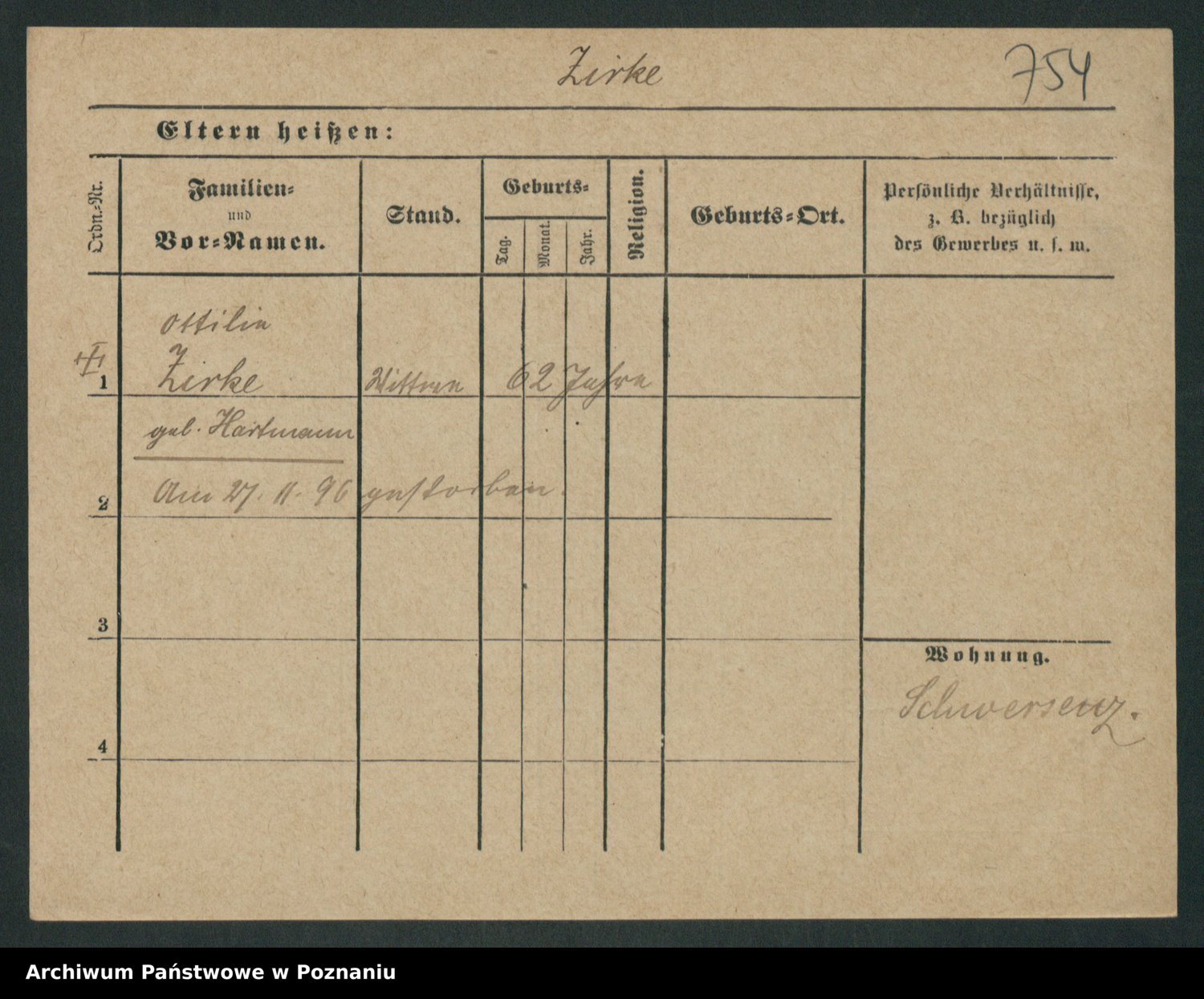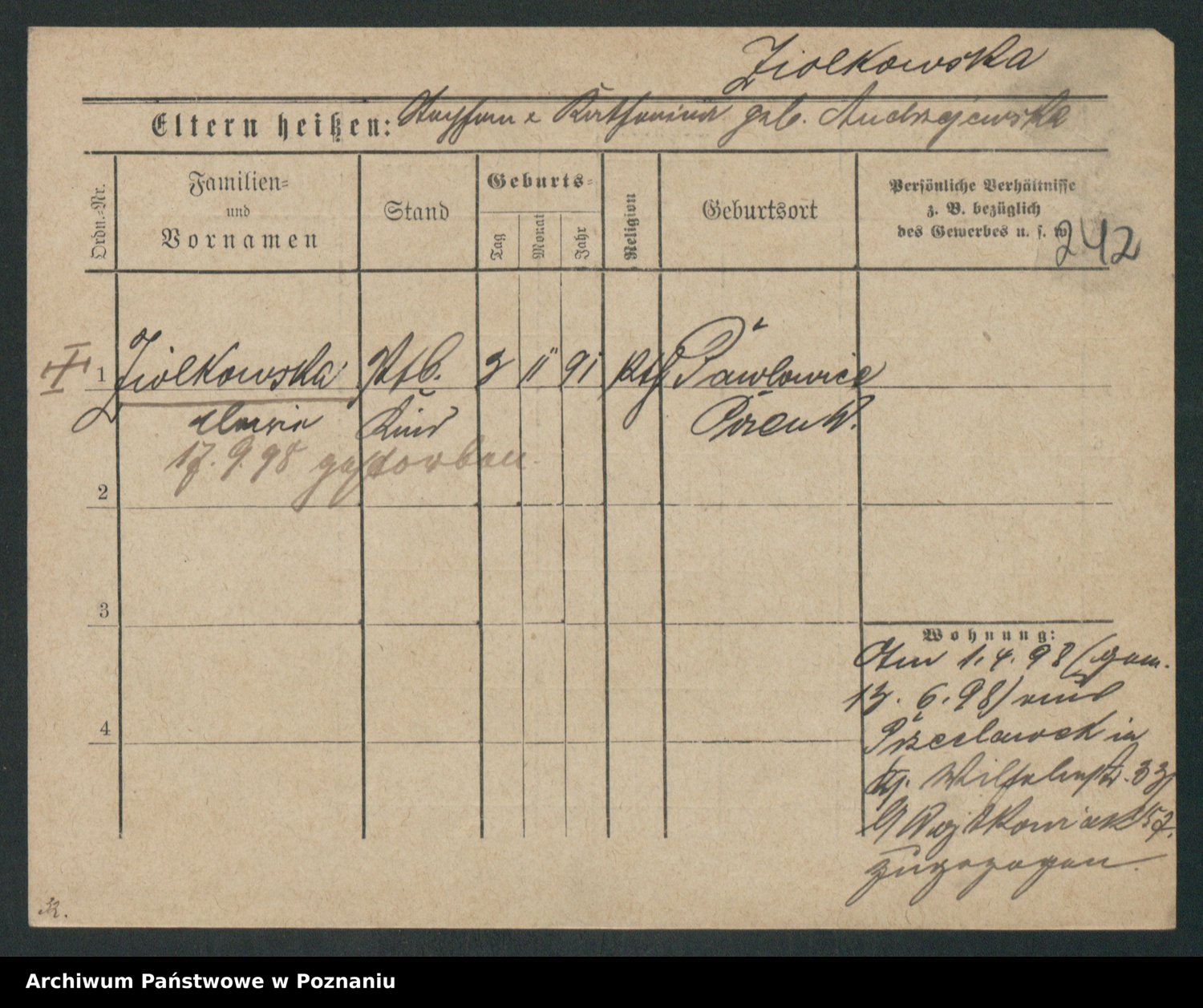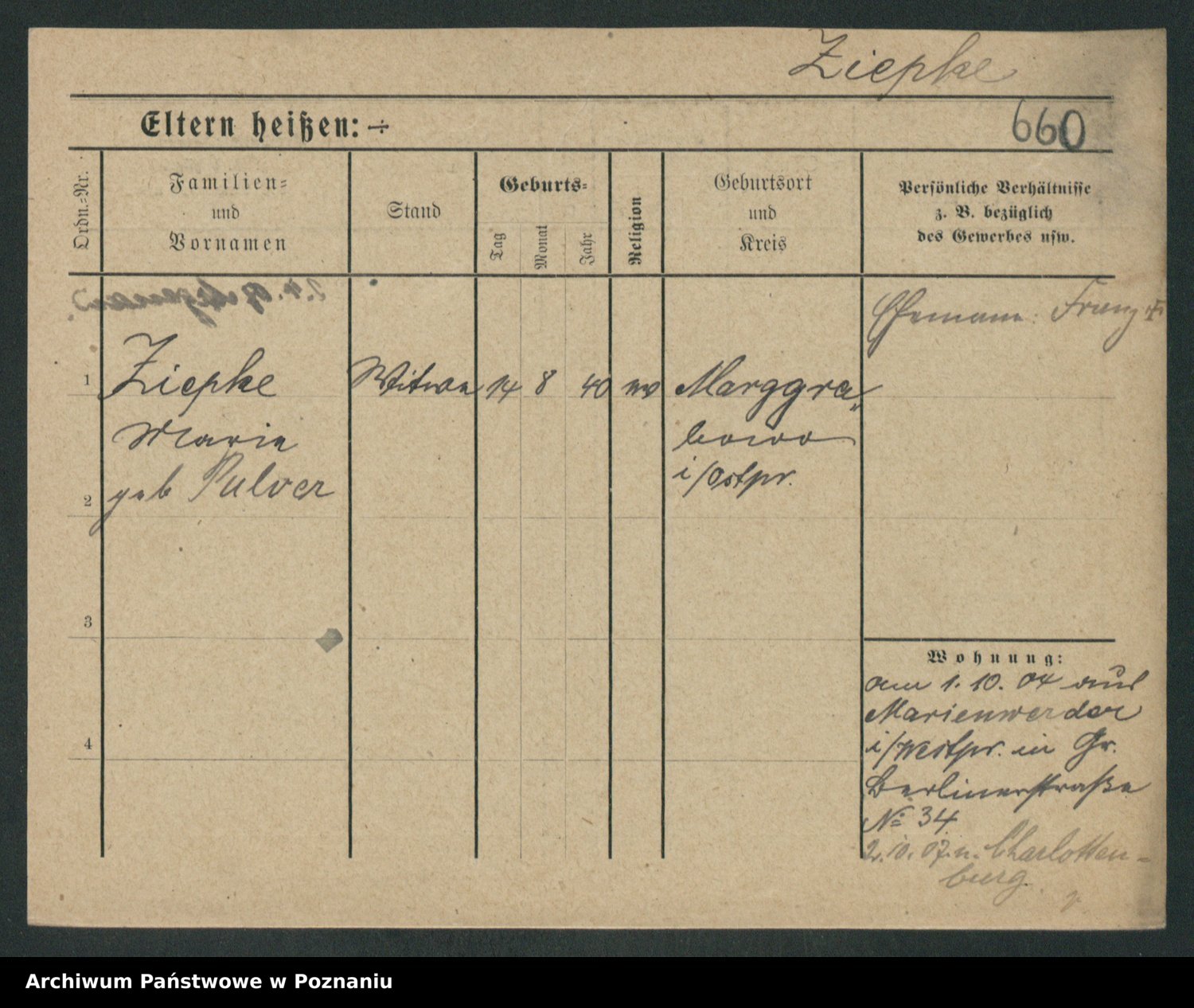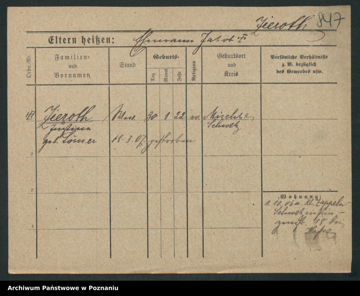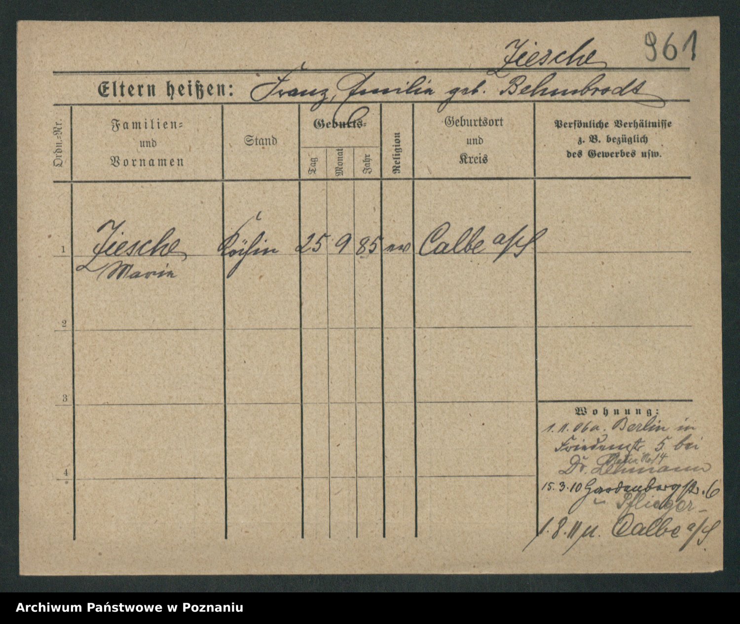 Zieske z.d. Altmann I voto Franzke, Vilhelmine Ida Cäzilie