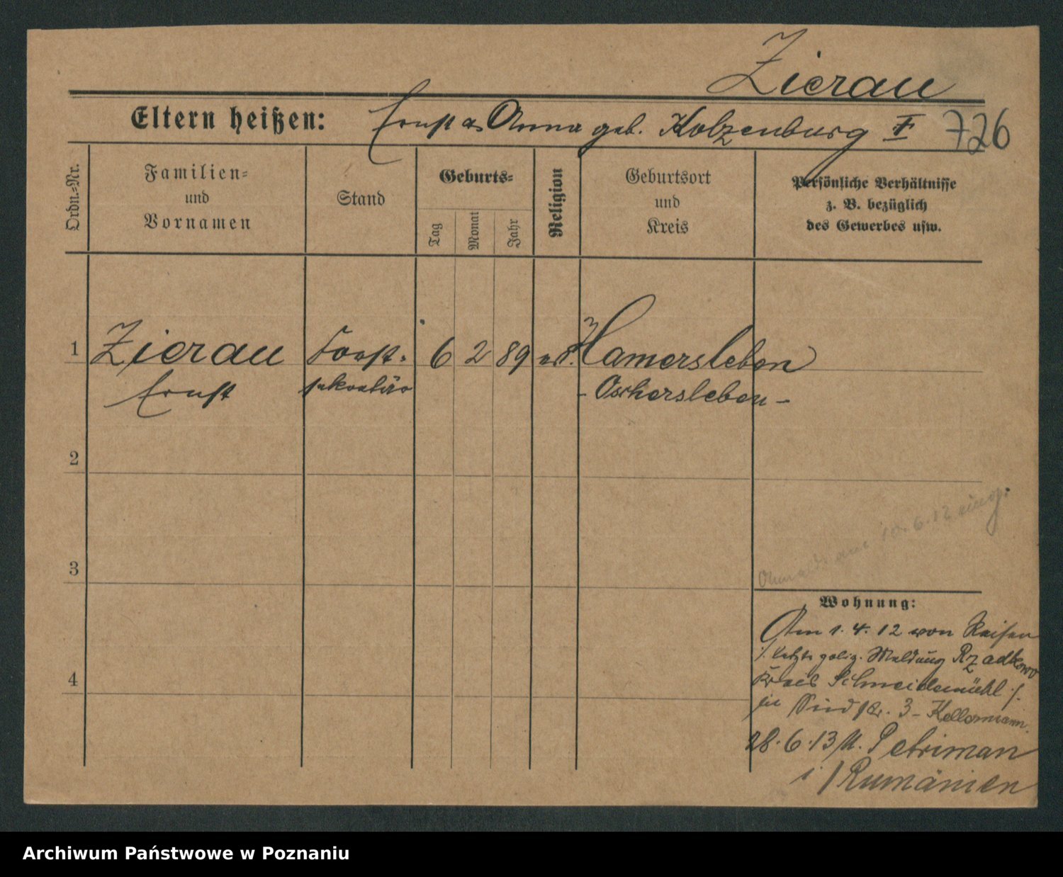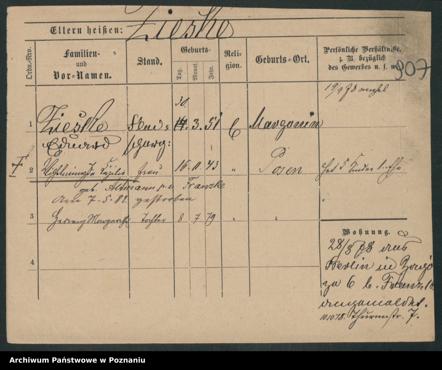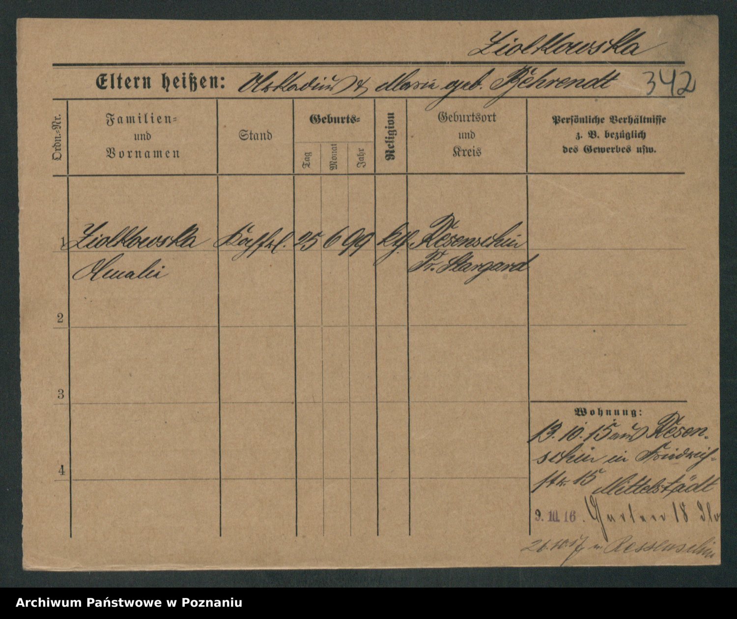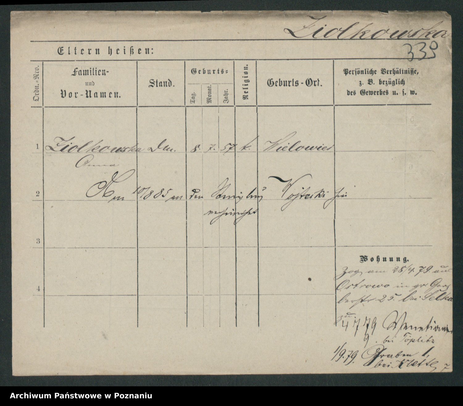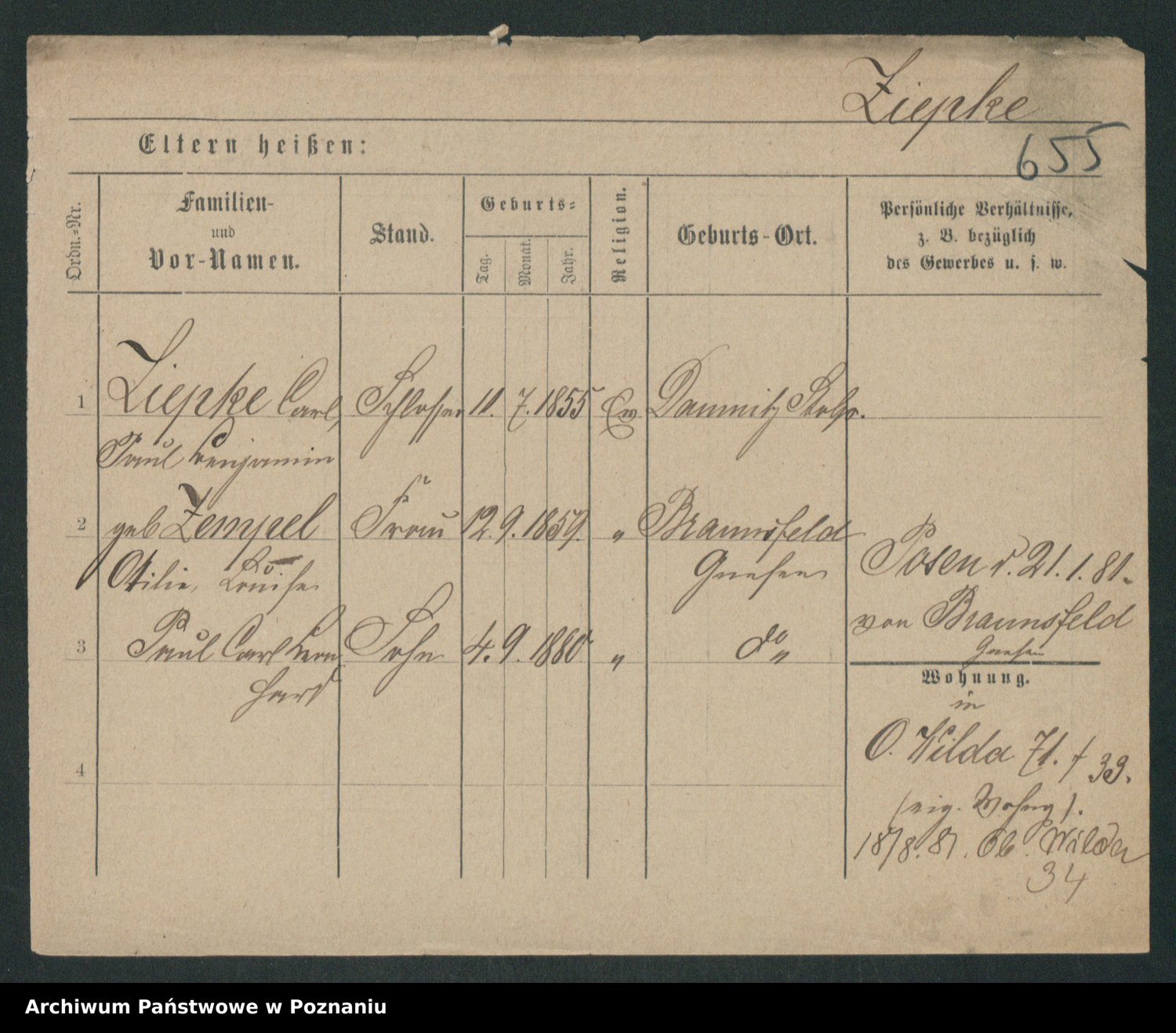 Zieske z.d. Altmann I voto Franzke, Vilhelmine Ida Cäzilie