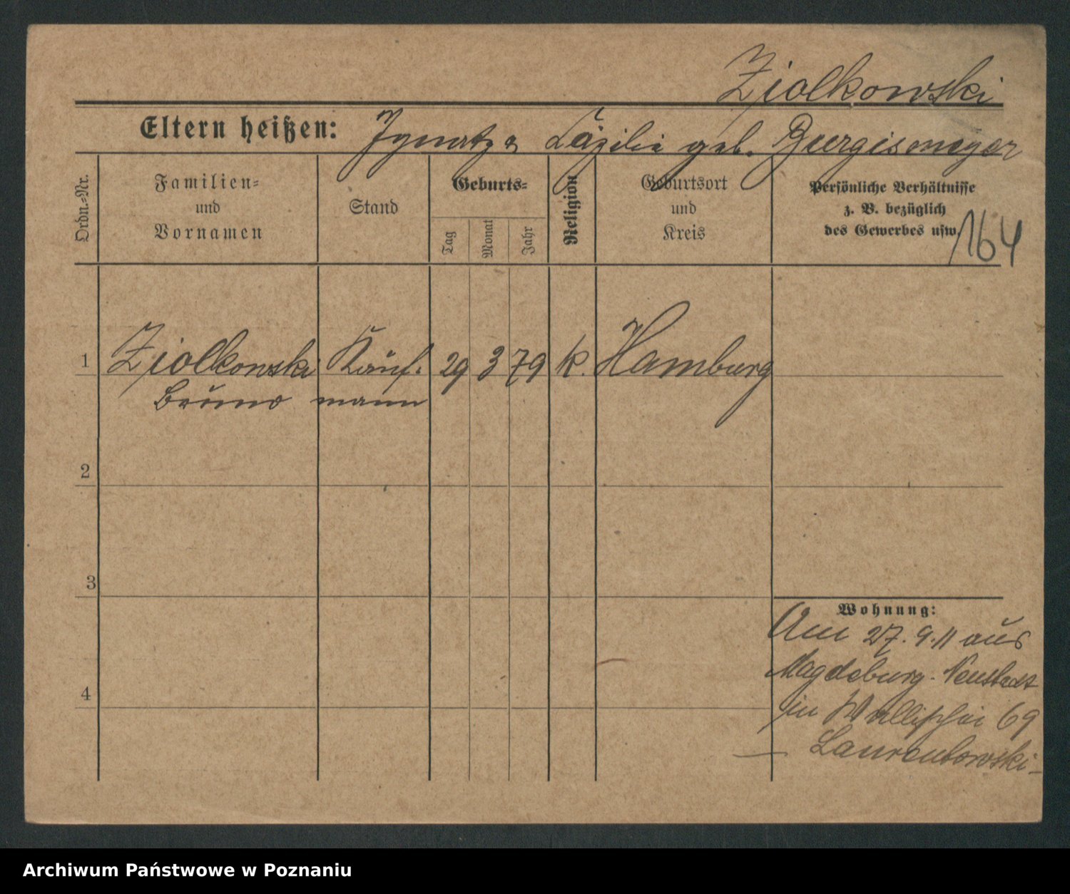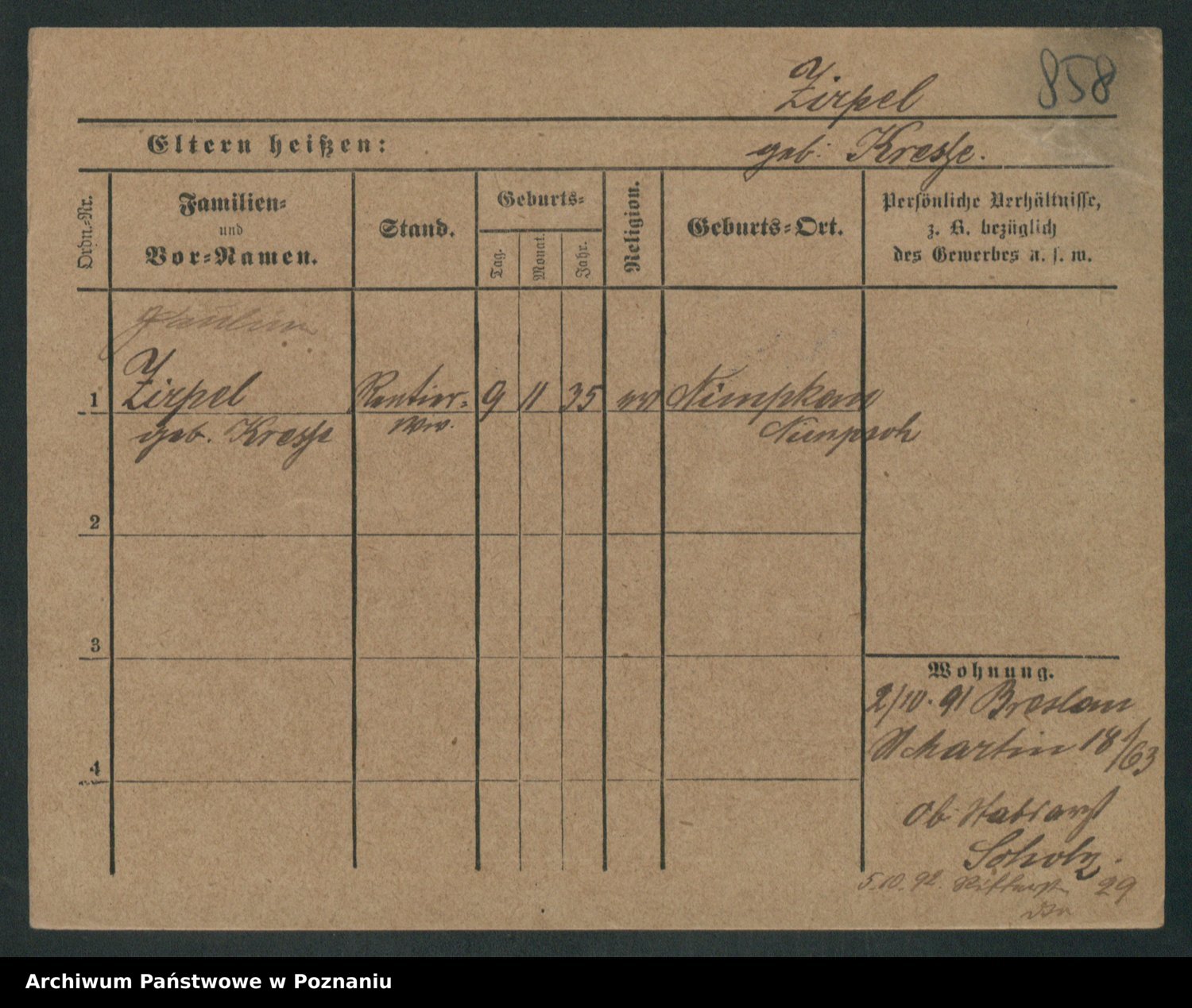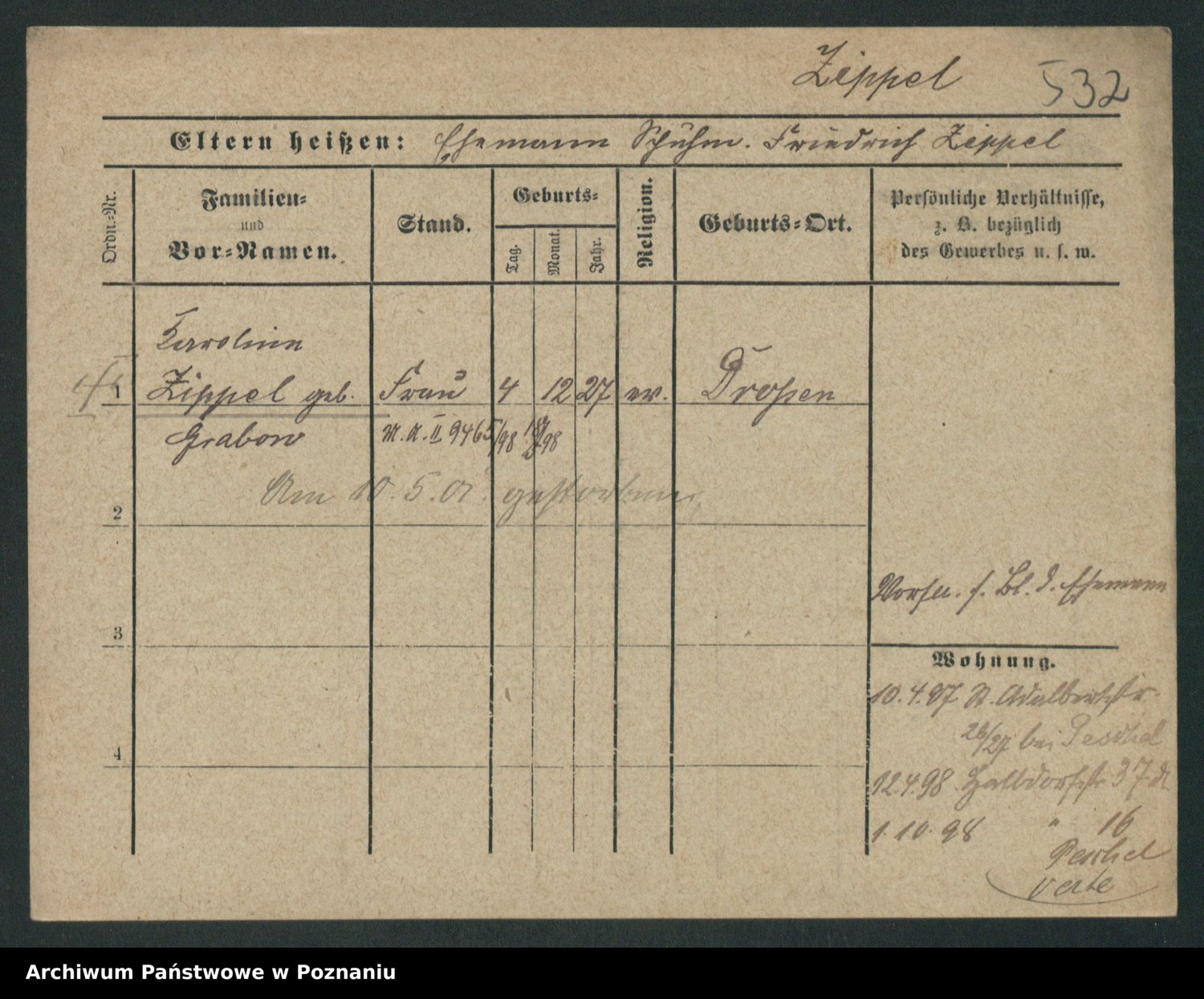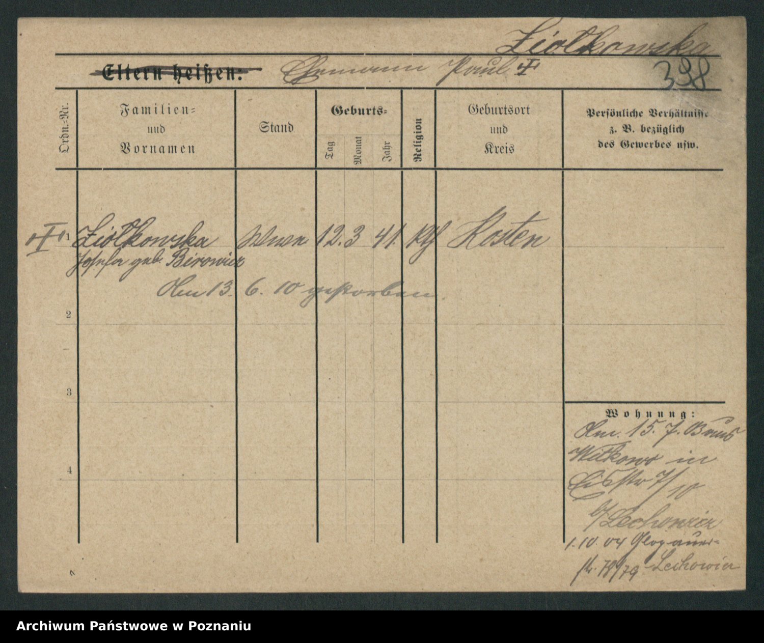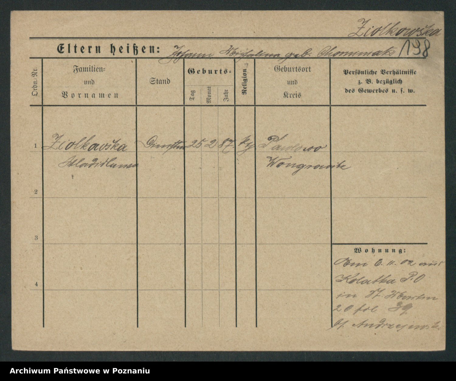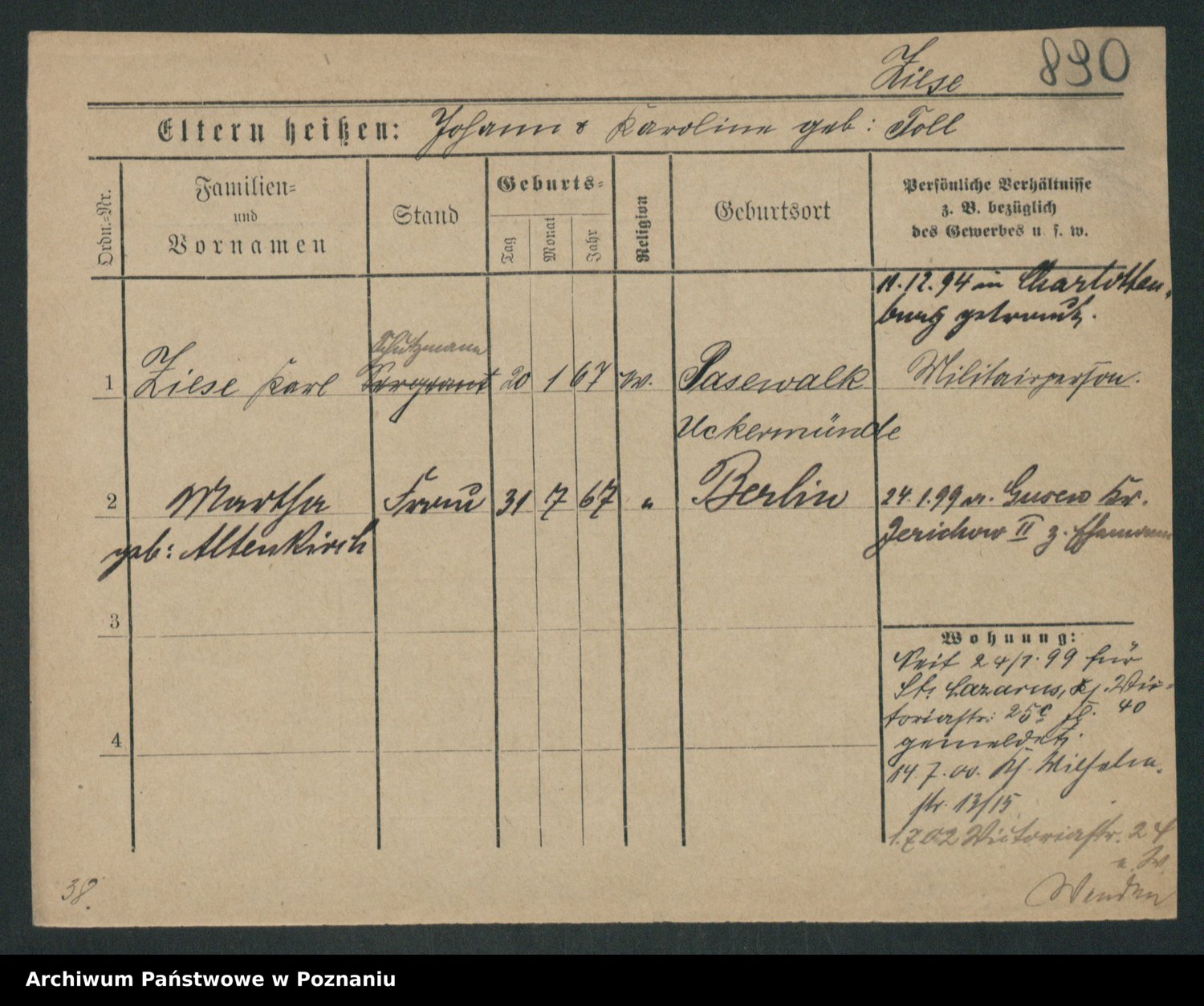 Zieske z.d. Altmann I voto Franzke, Vilhelmine Ida Cäzilie