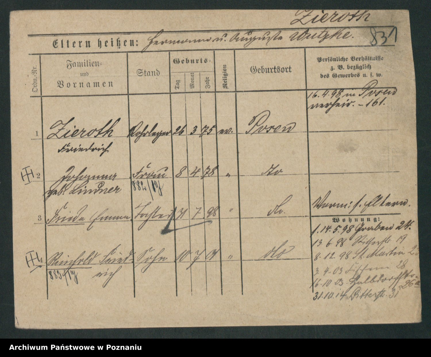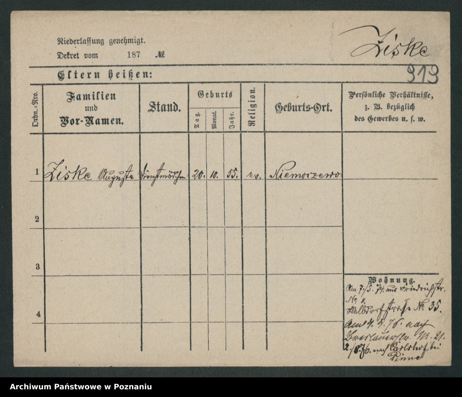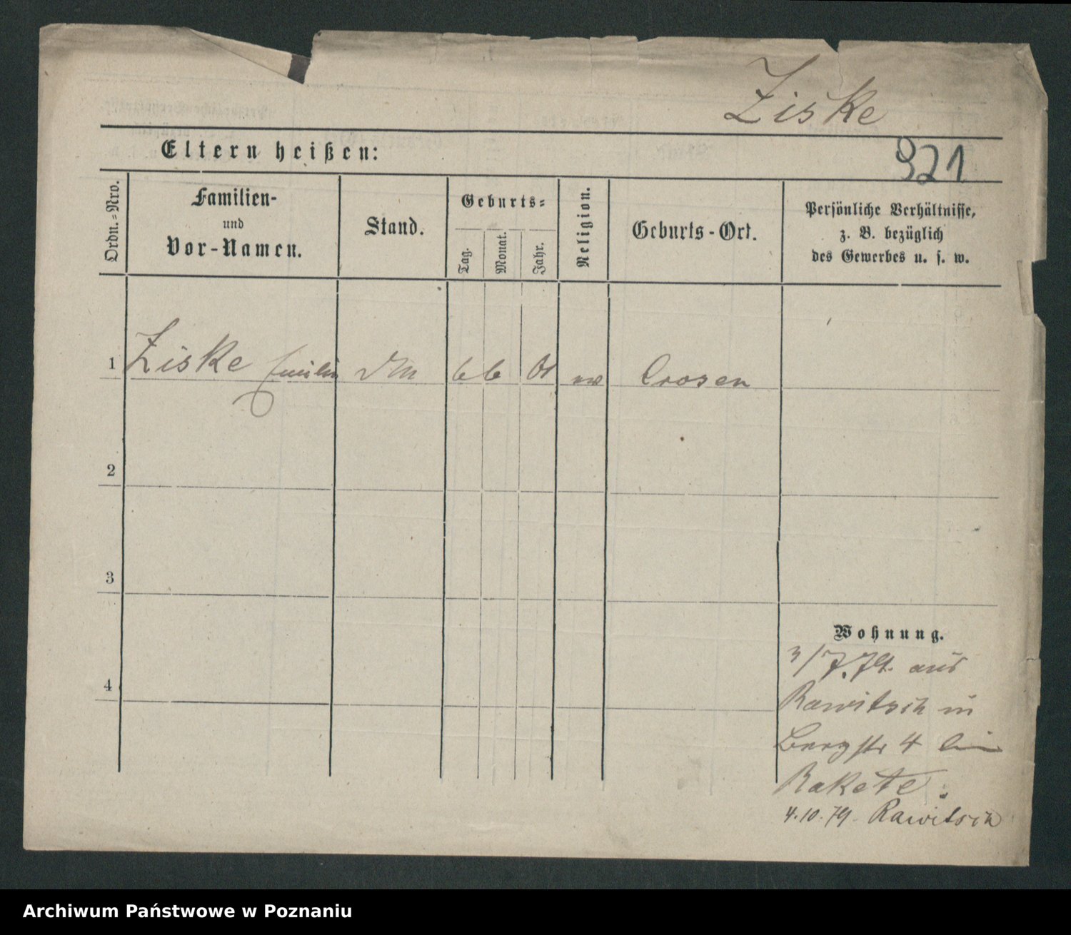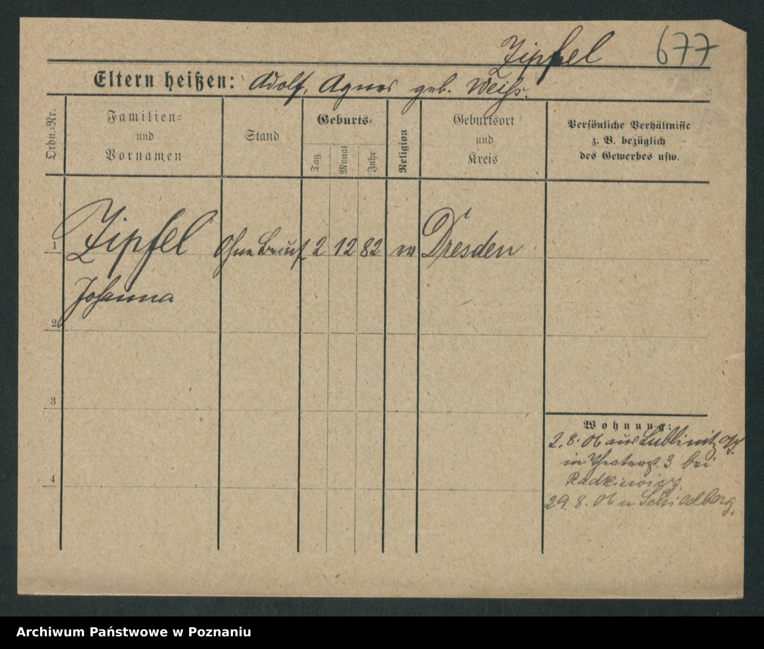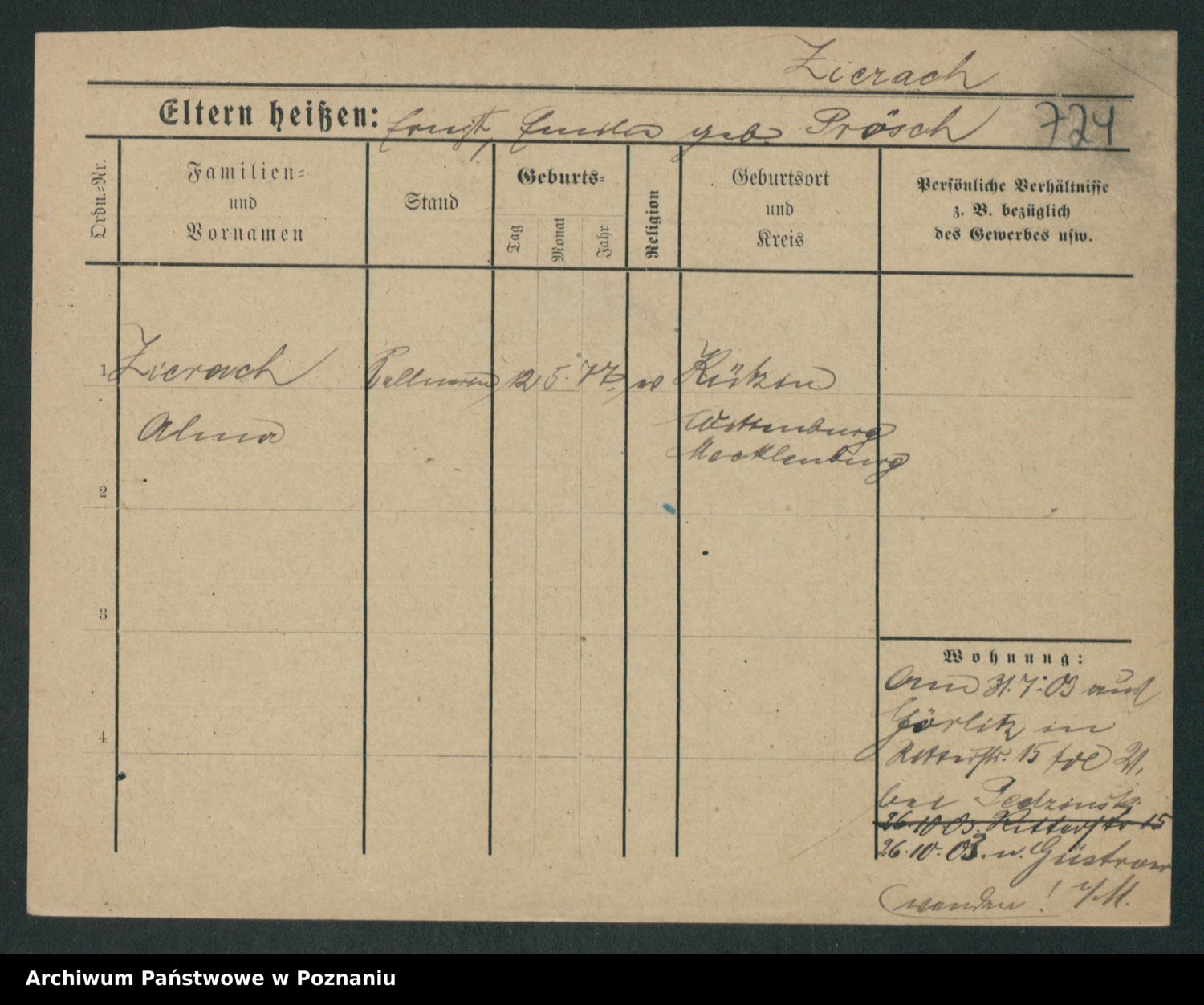 Zieske z.d. Altmann I voto Franzke, Vilhelmine Ida Cäzilie