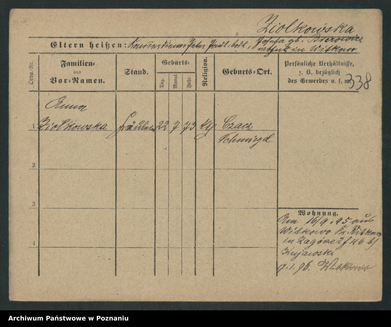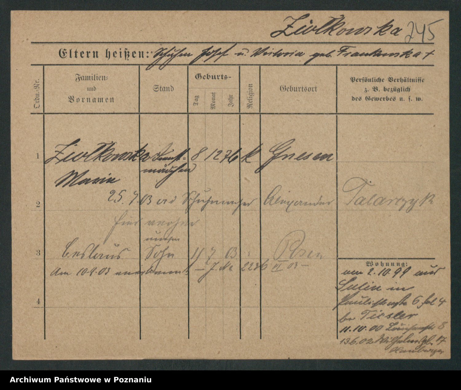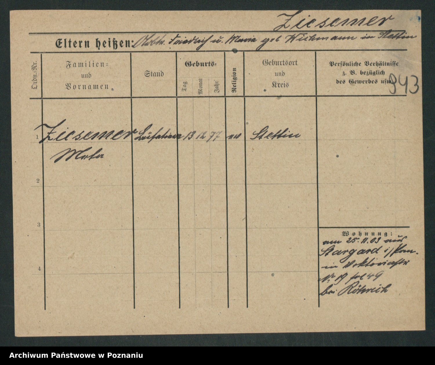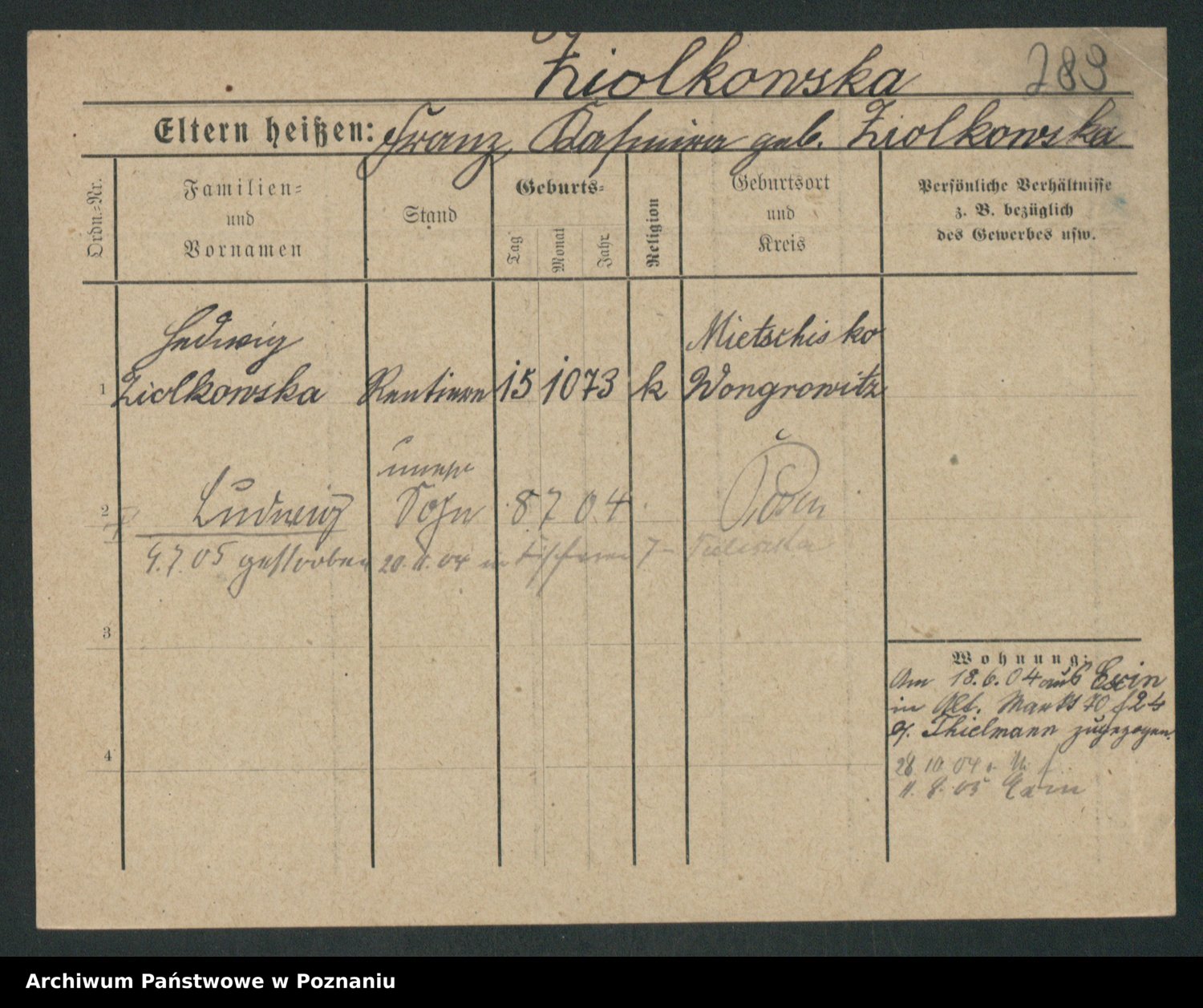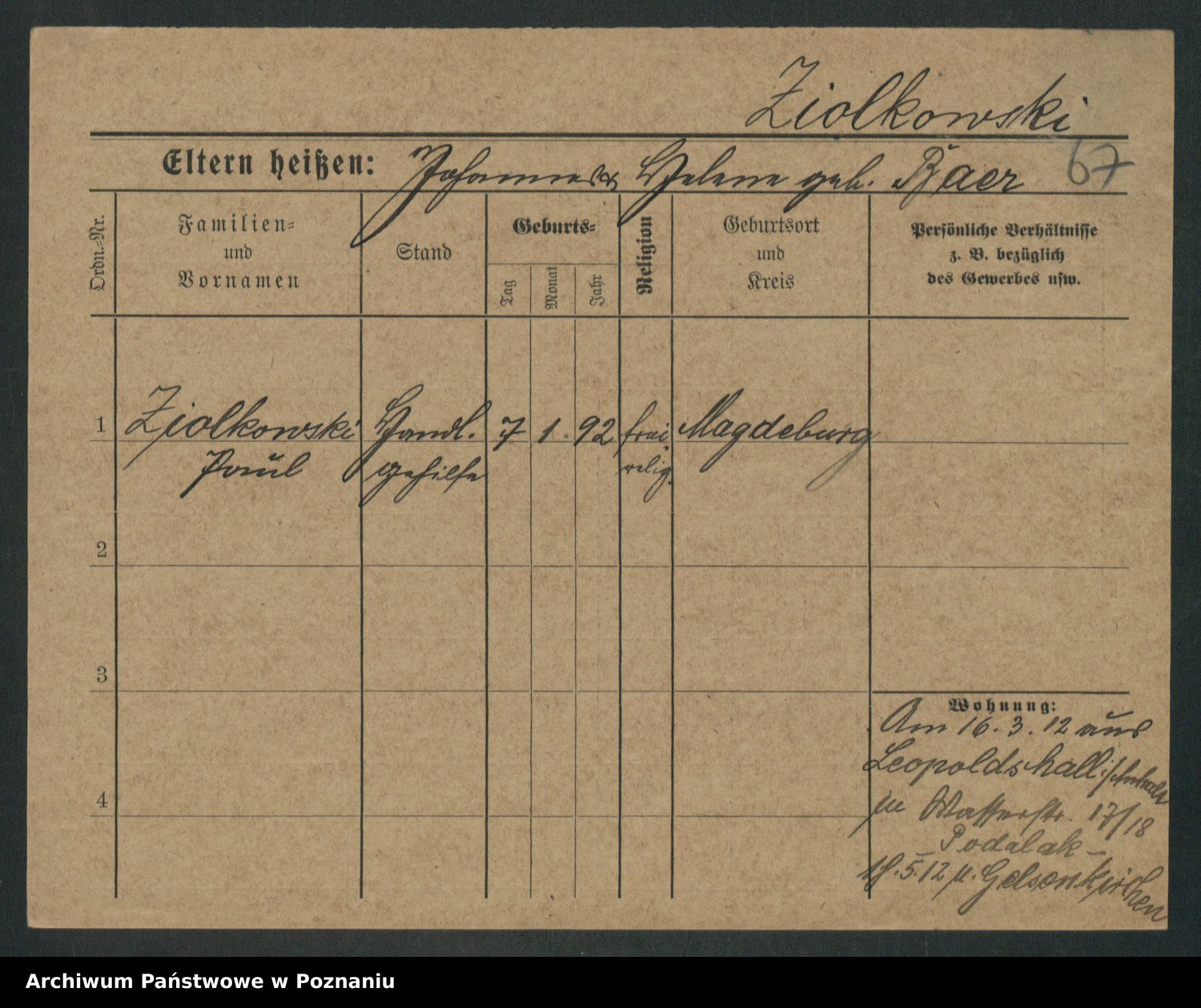 Zieske z.d. Altmann I voto Franzke, Vilhelmine Ida Cäzilie