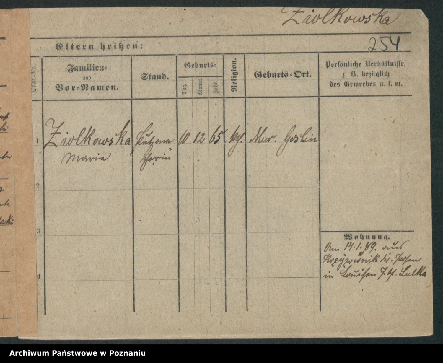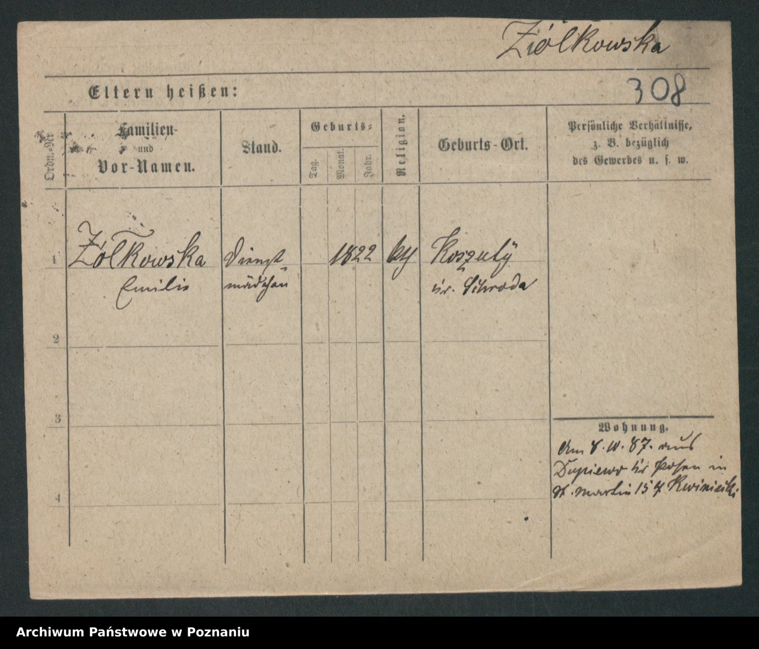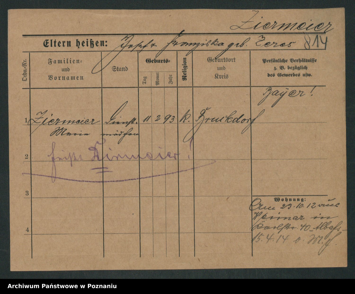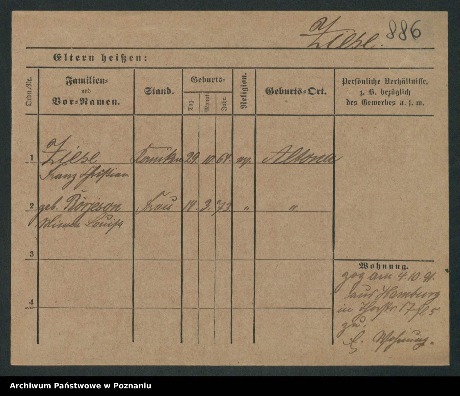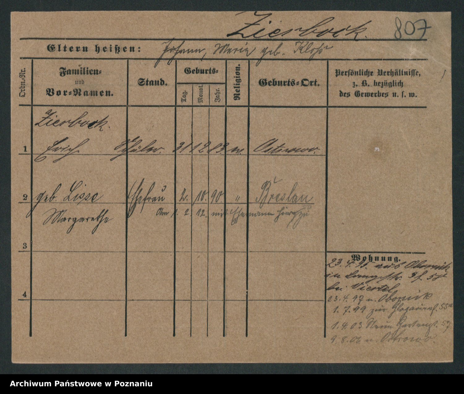 Zieske z.d. Altmann I voto Franzke, Vilhelmine Ida Cäzilie