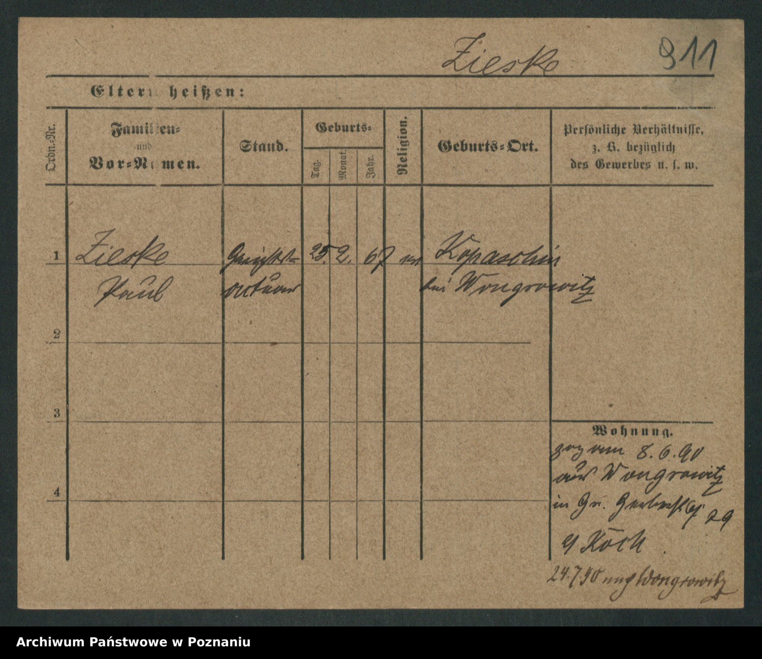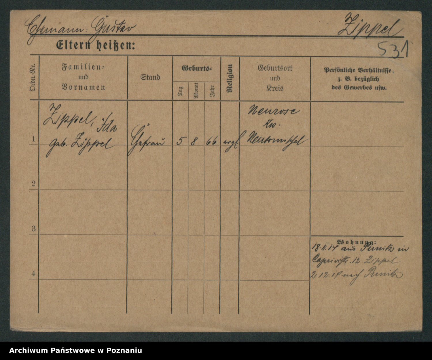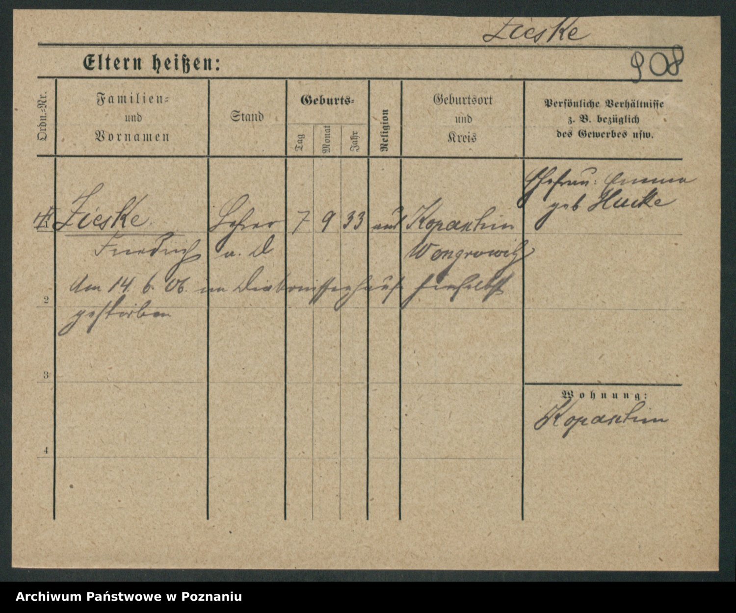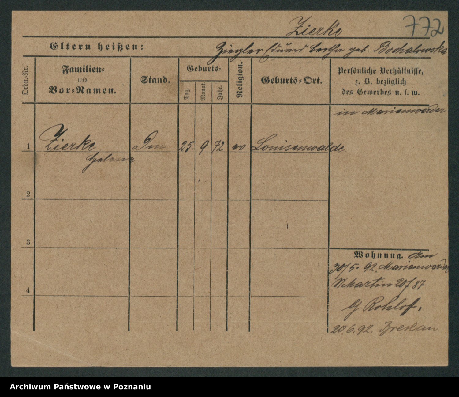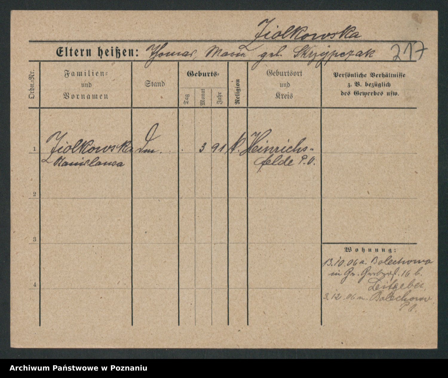 Zieske z.d. Altmann I voto Franzke, Vilhelmine Ida Cäzilie