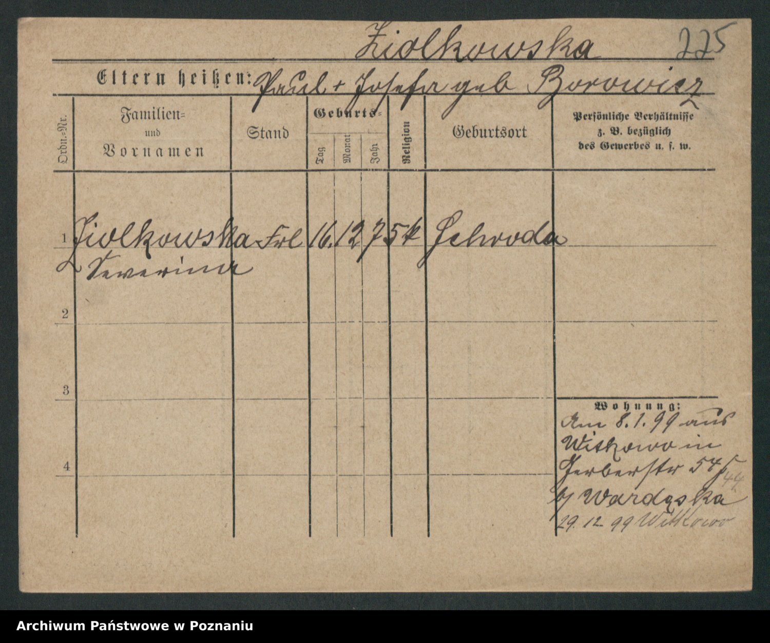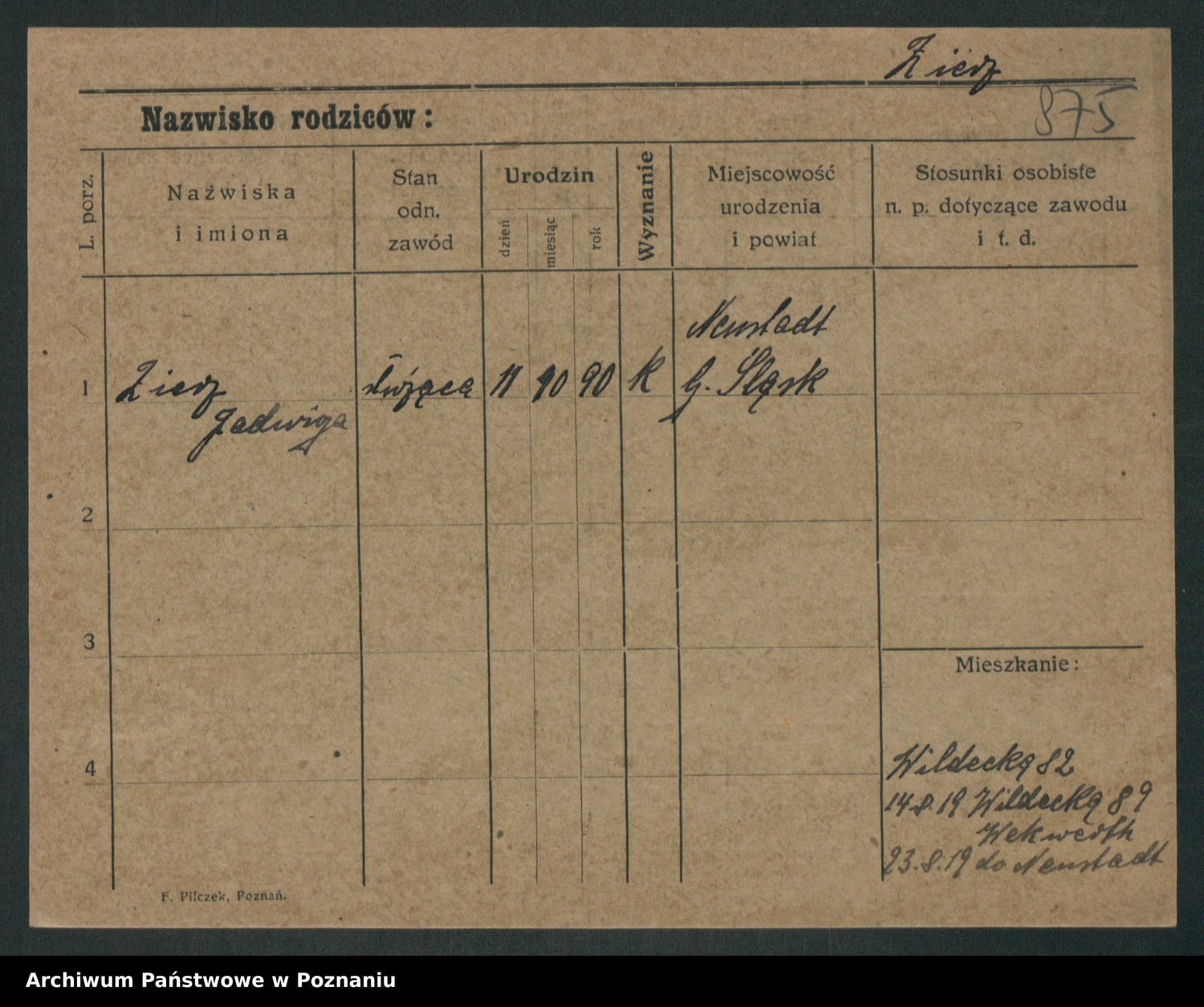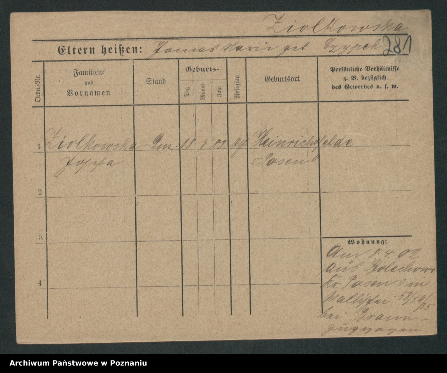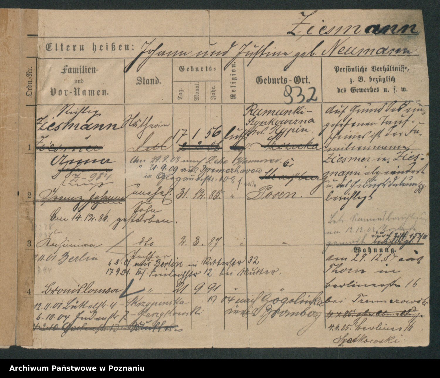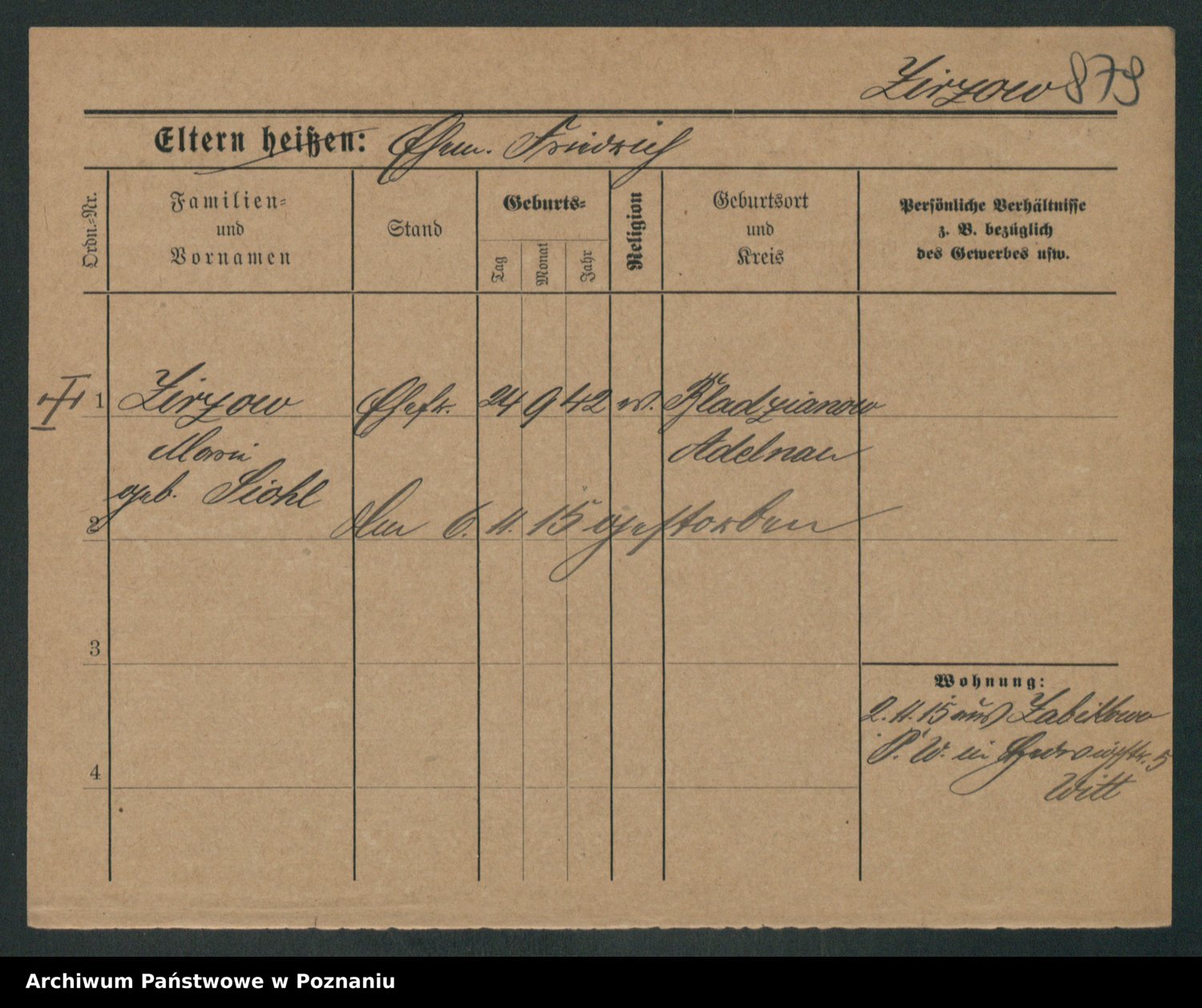 Zieske z.d. Altmann I voto Franzke, Vilhelmine Ida Cäzilie