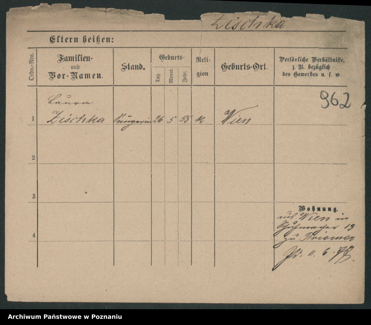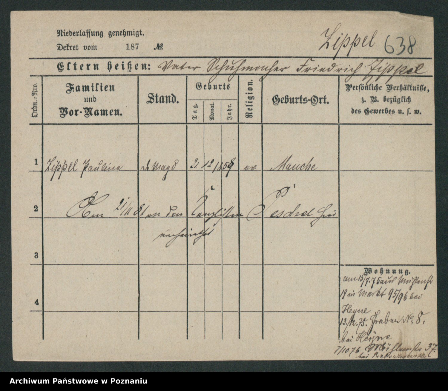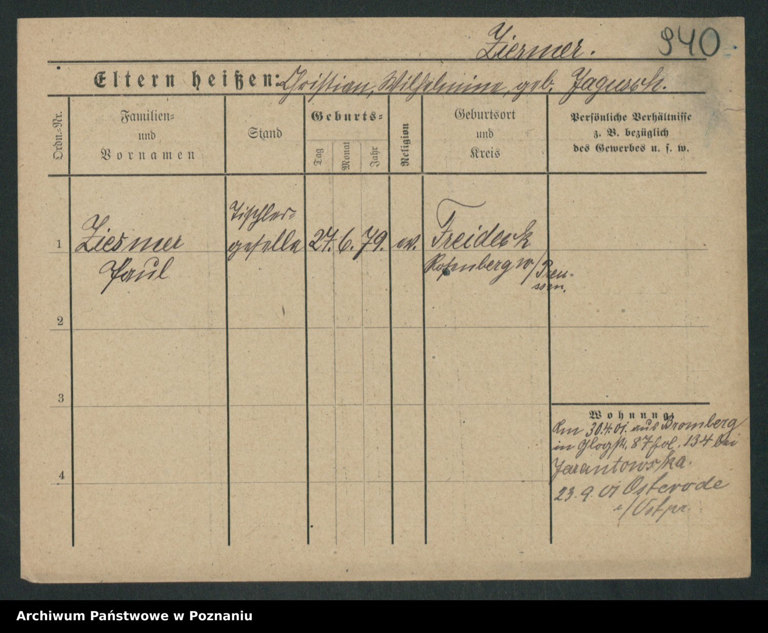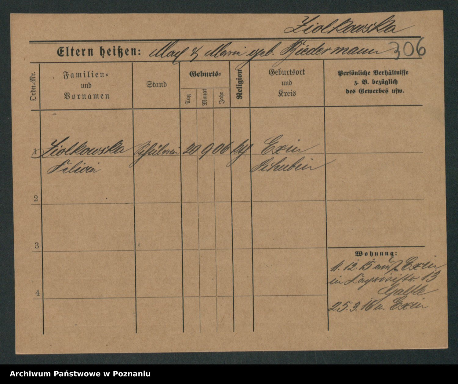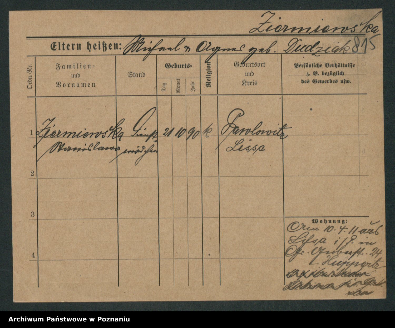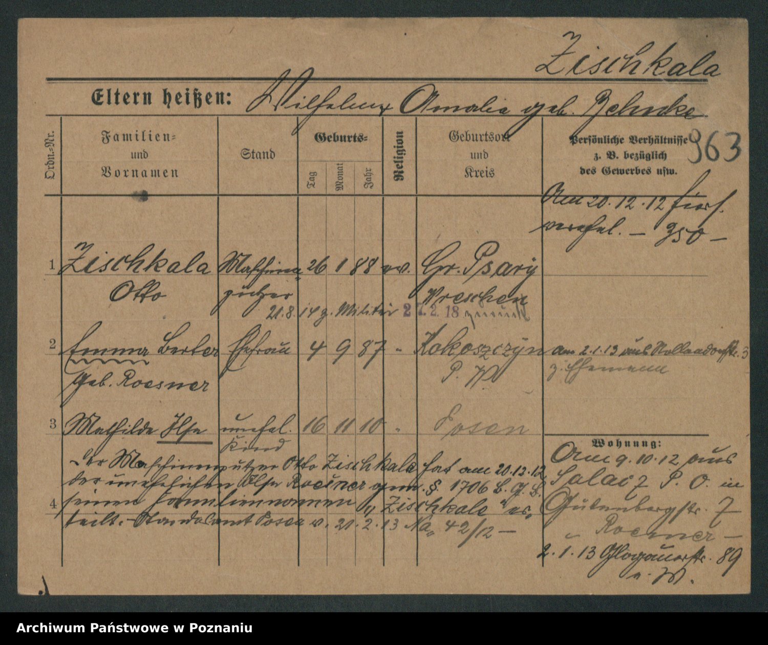 Zieske z.d. Altmann I voto Franzke, Vilhelmine Ida Cäzilie