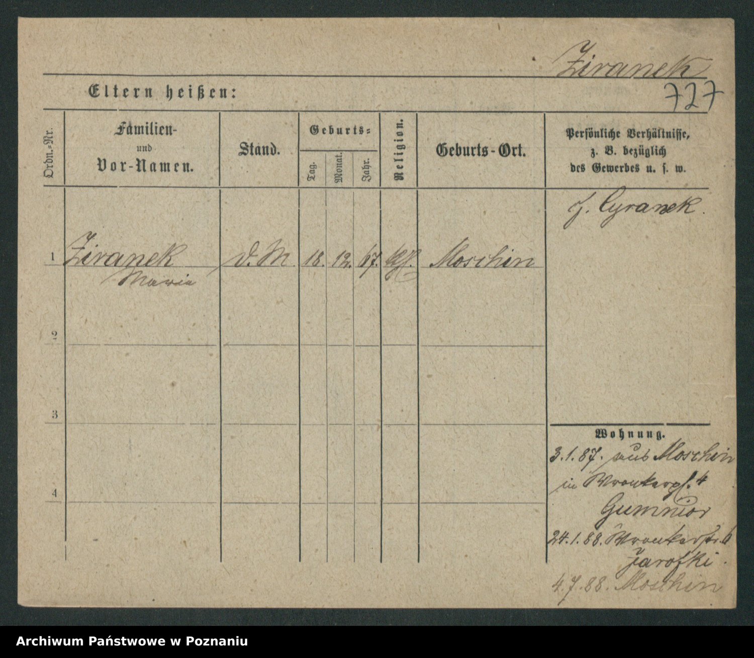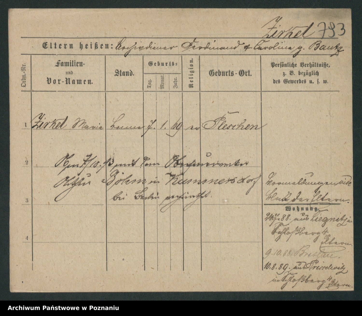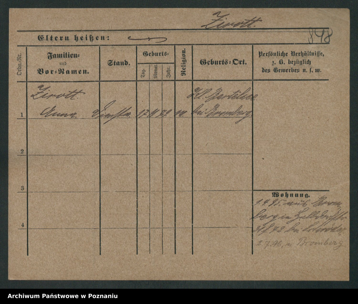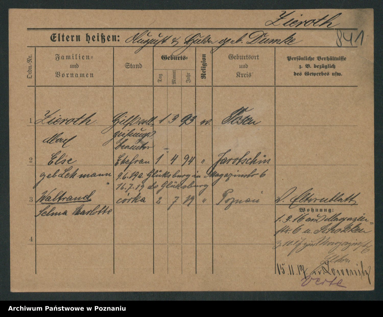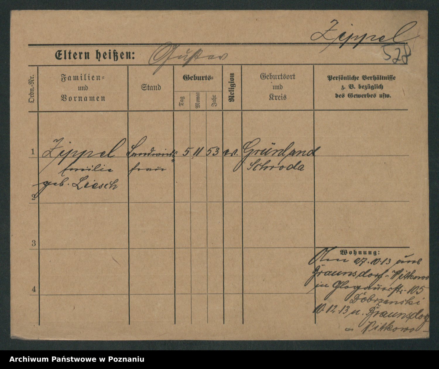 Zieske z.d. Altmann I voto Franzke, Vilhelmine Ida Cäzilie