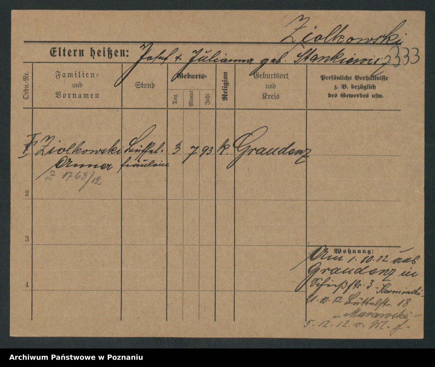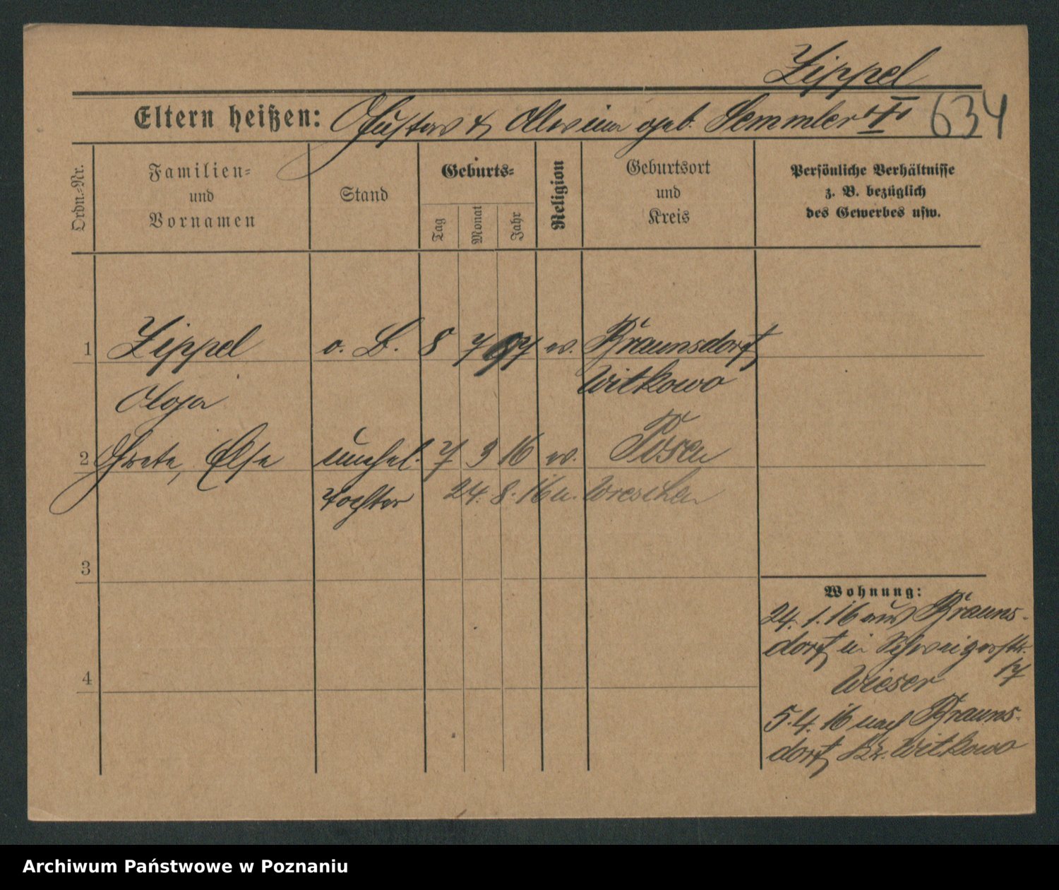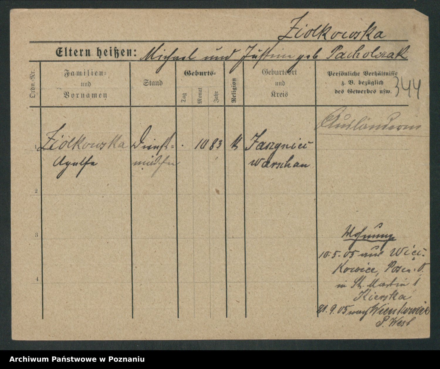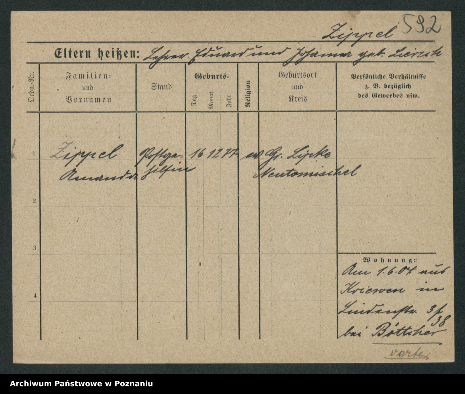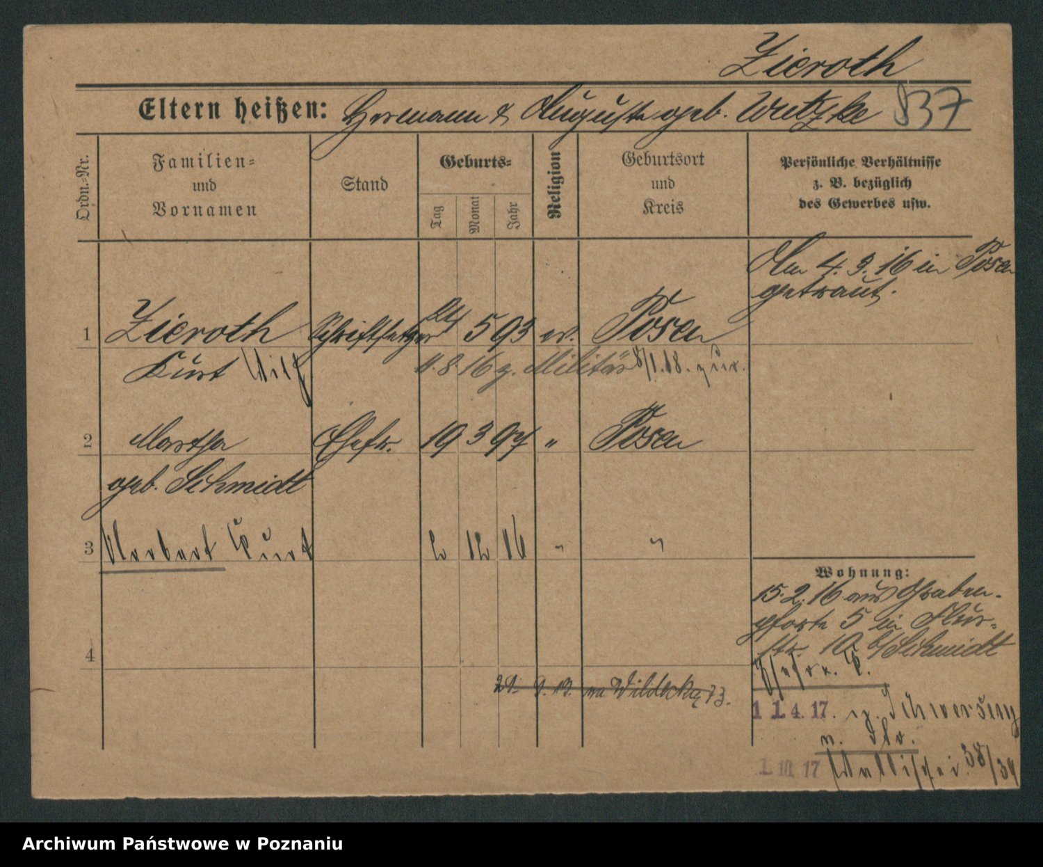 Zieske z.d. Altmann I voto Franzke, Vilhelmine Ida Cäzilie