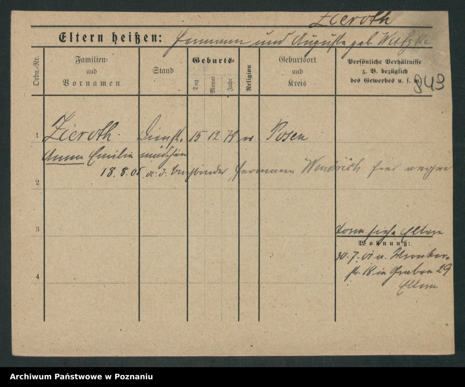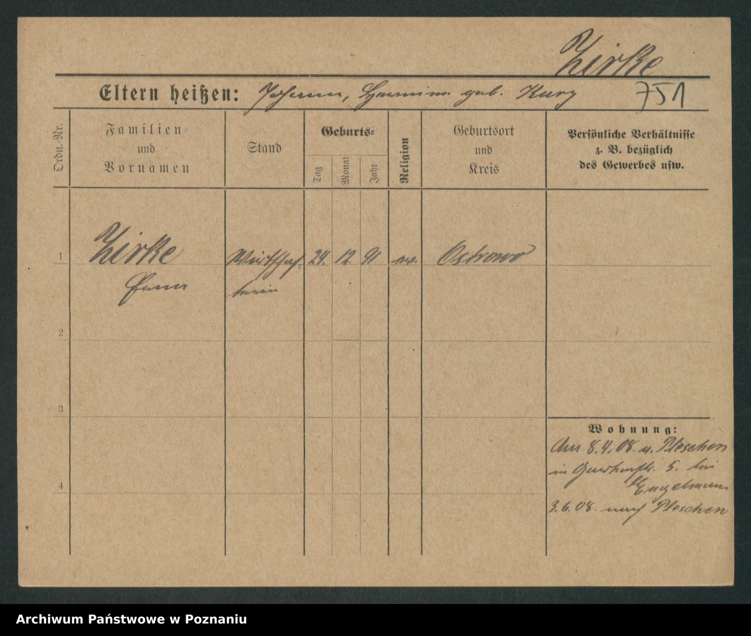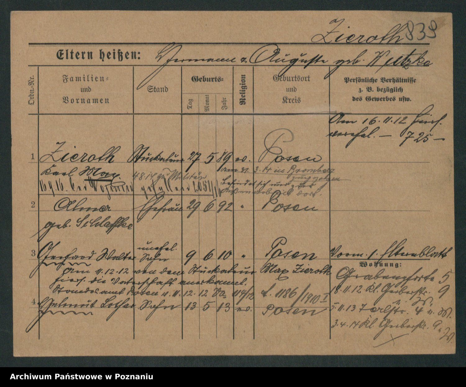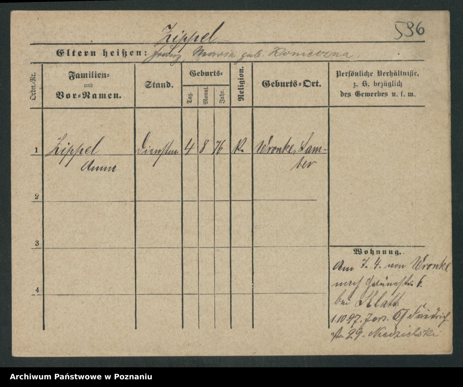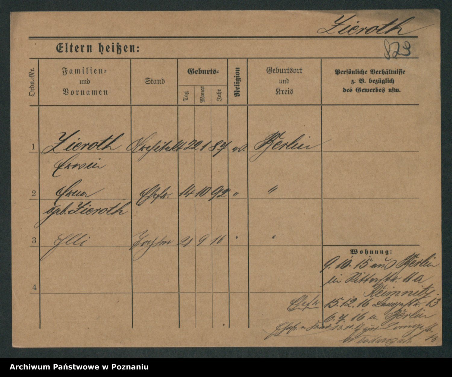 Zieske z.d. Altmann I voto Franzke, Vilhelmine Ida Cäzilie