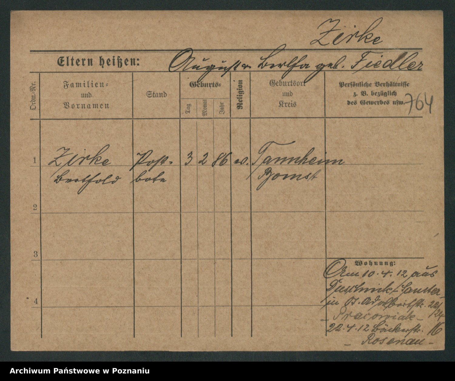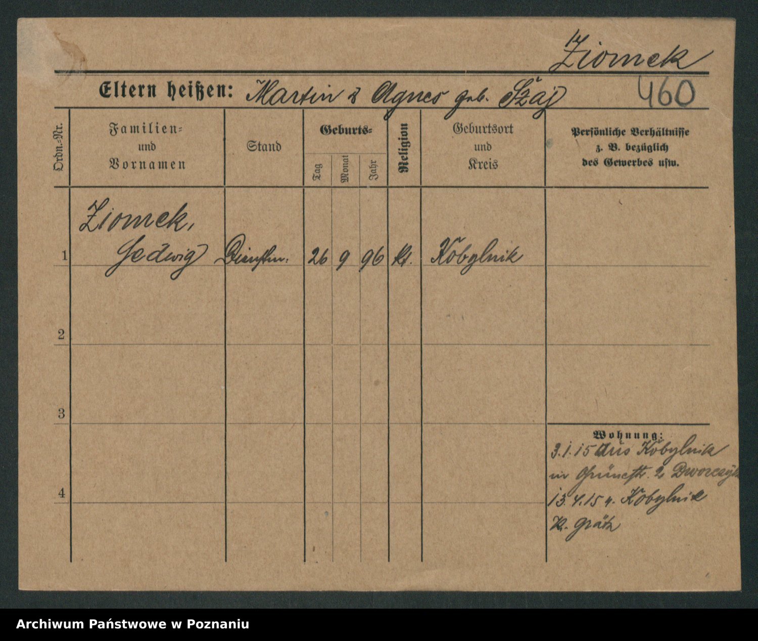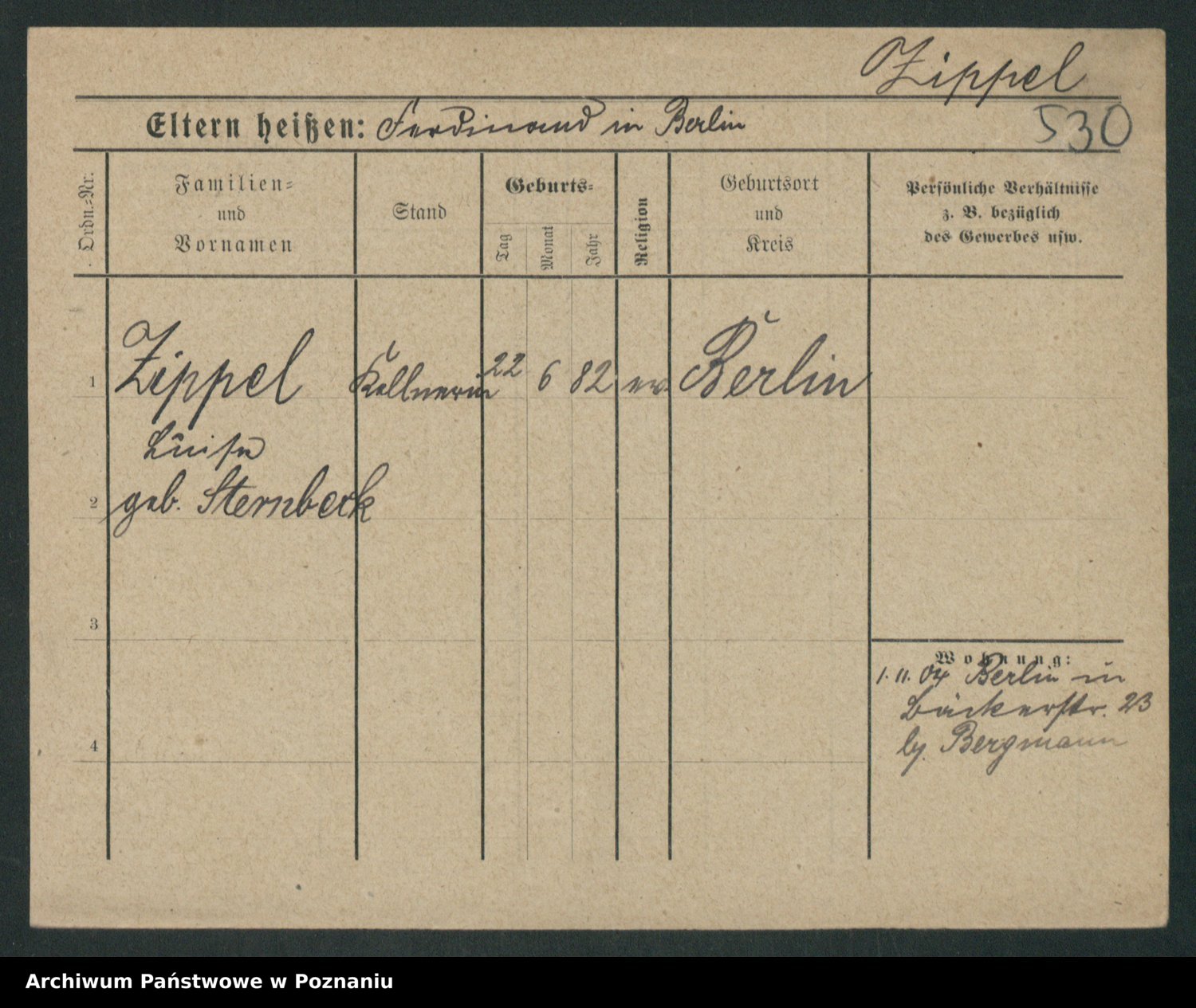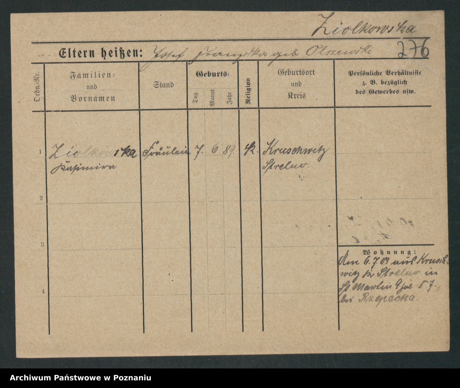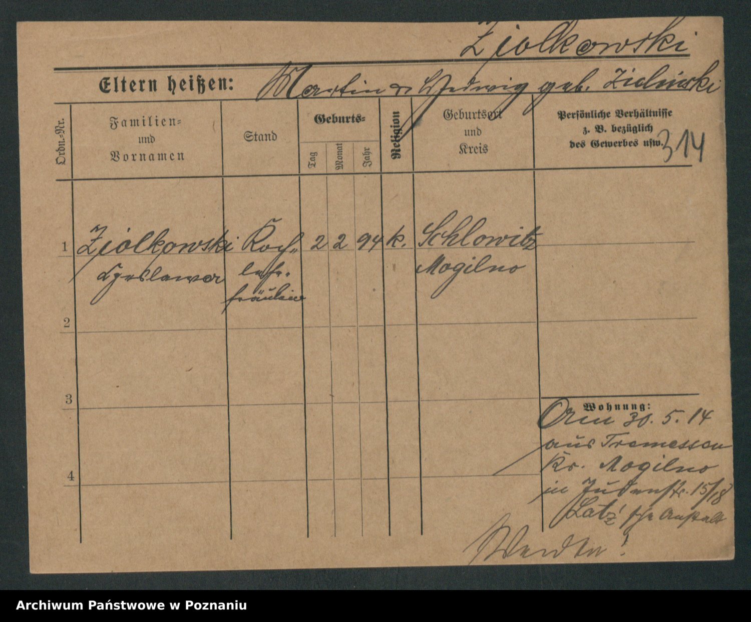 Zieske z.d. Altmann I voto Franzke, Vilhelmine Ida Cäzilie