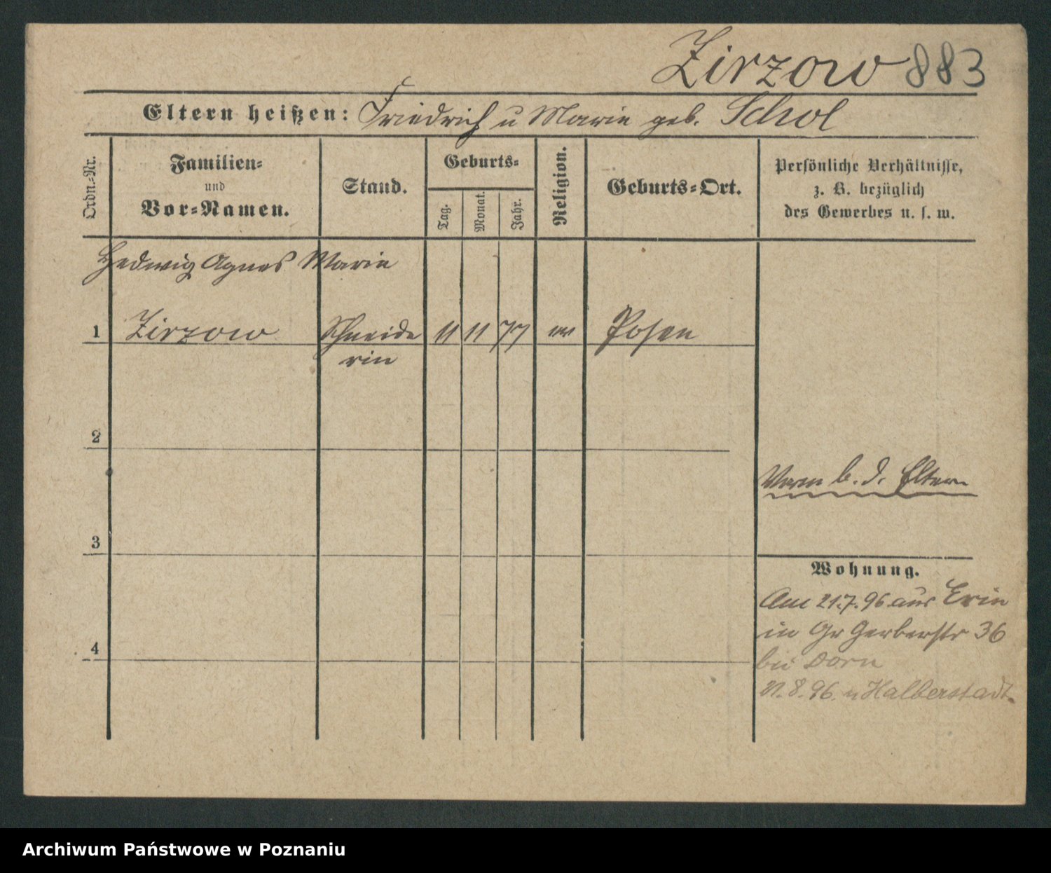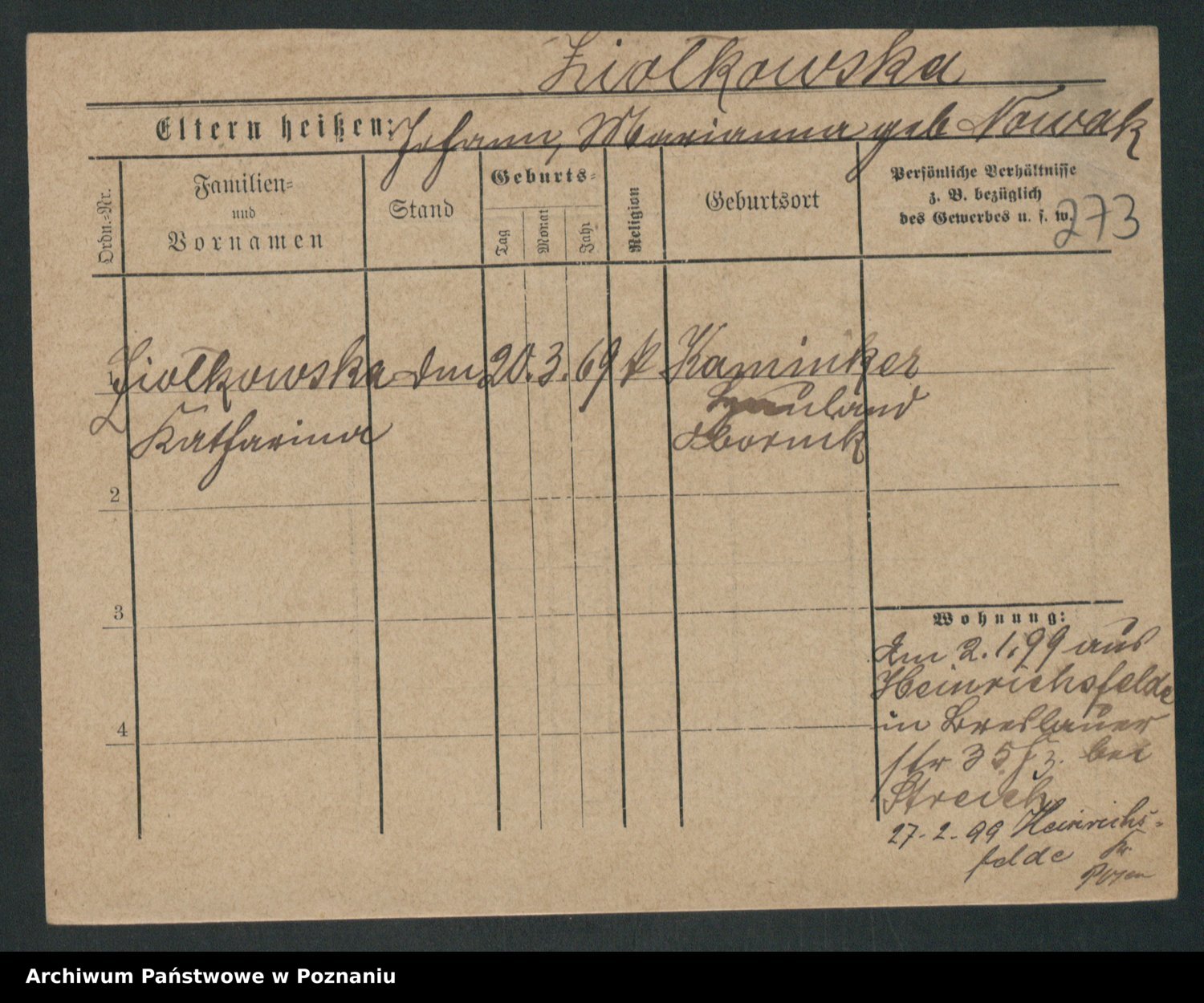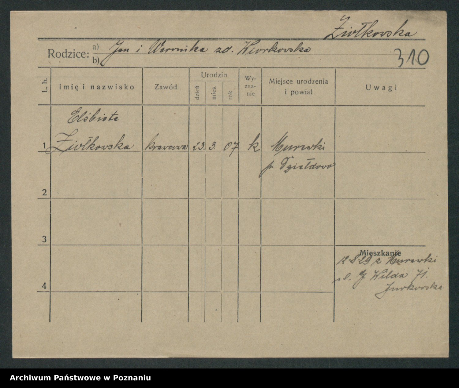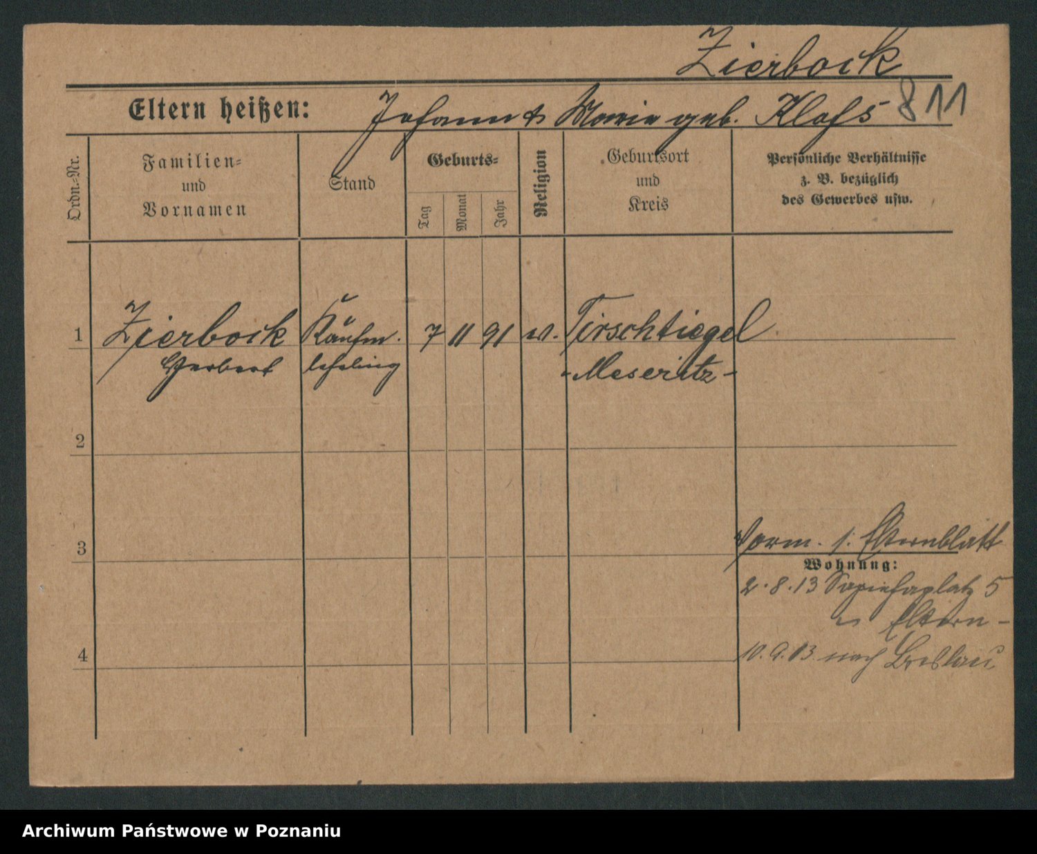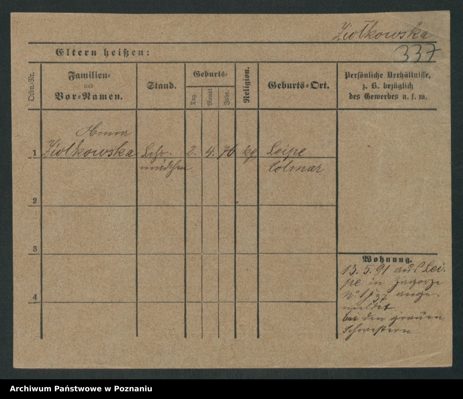 Zieske z.d. Altmann I voto Franzke, Vilhelmine Ida Cäzilie