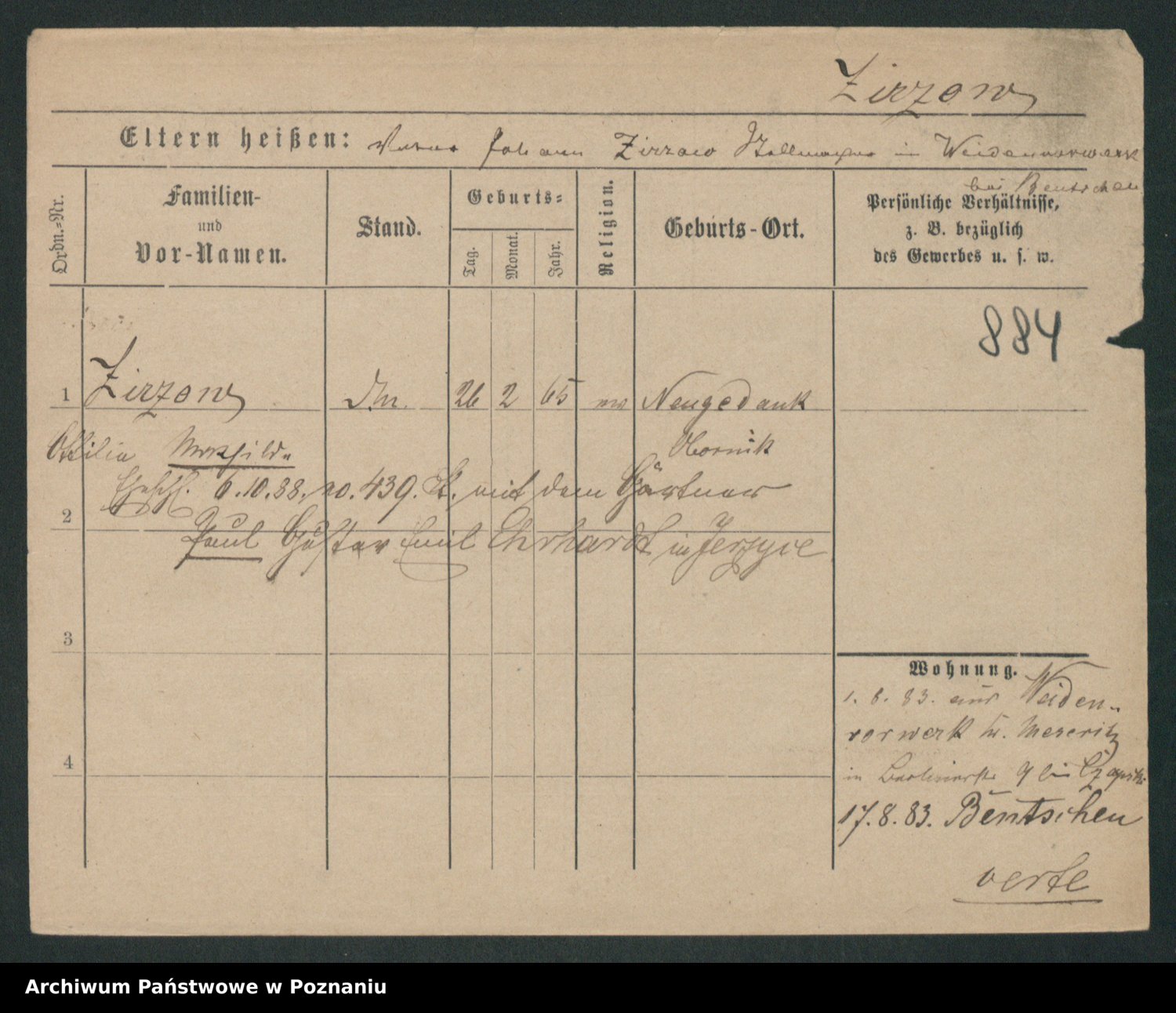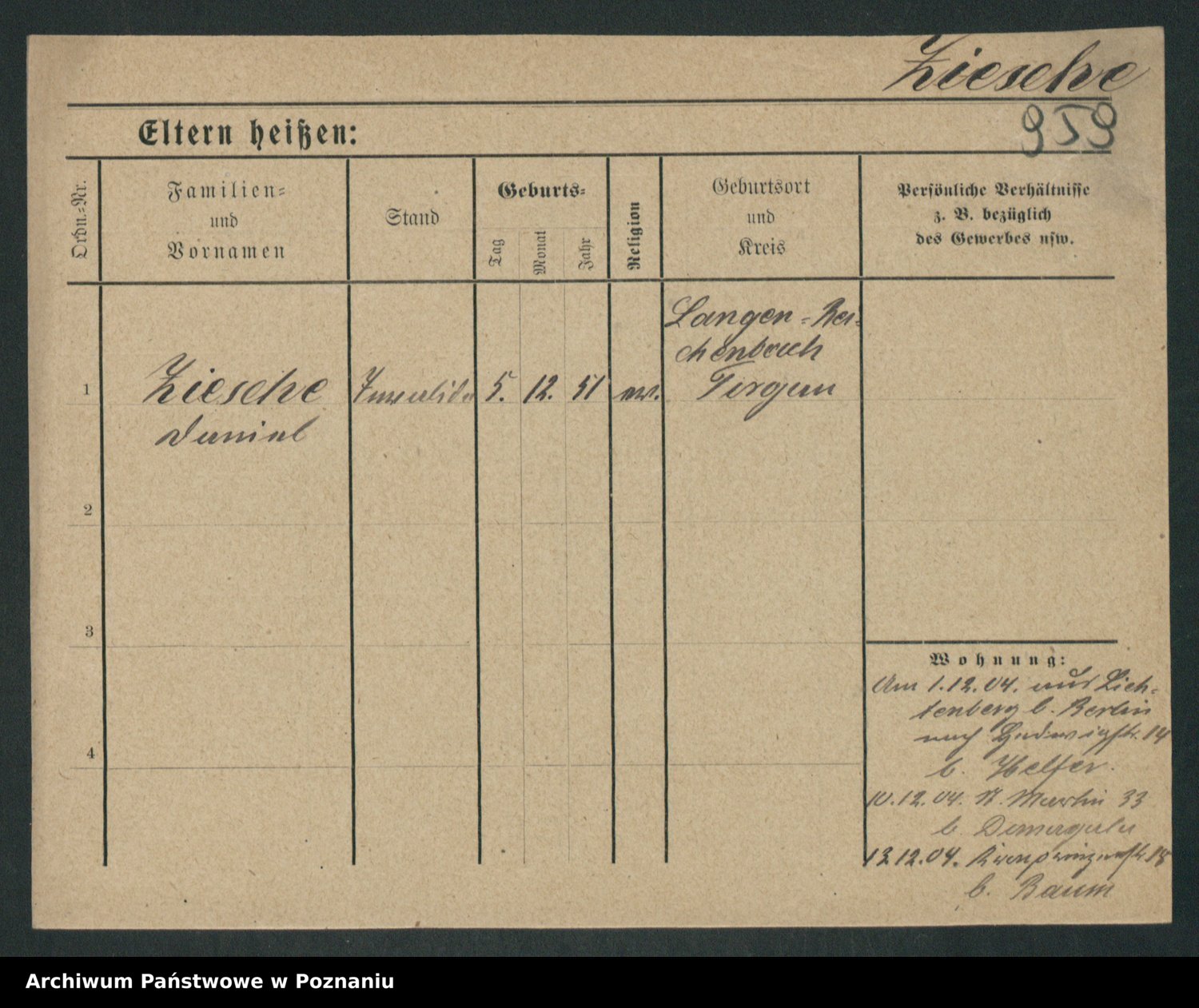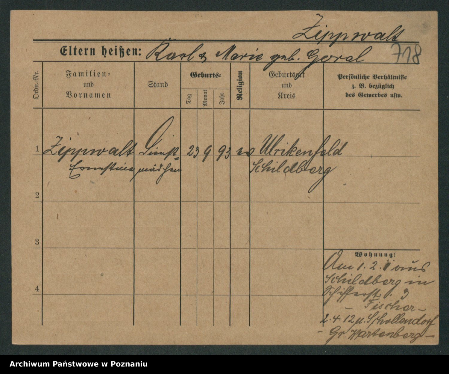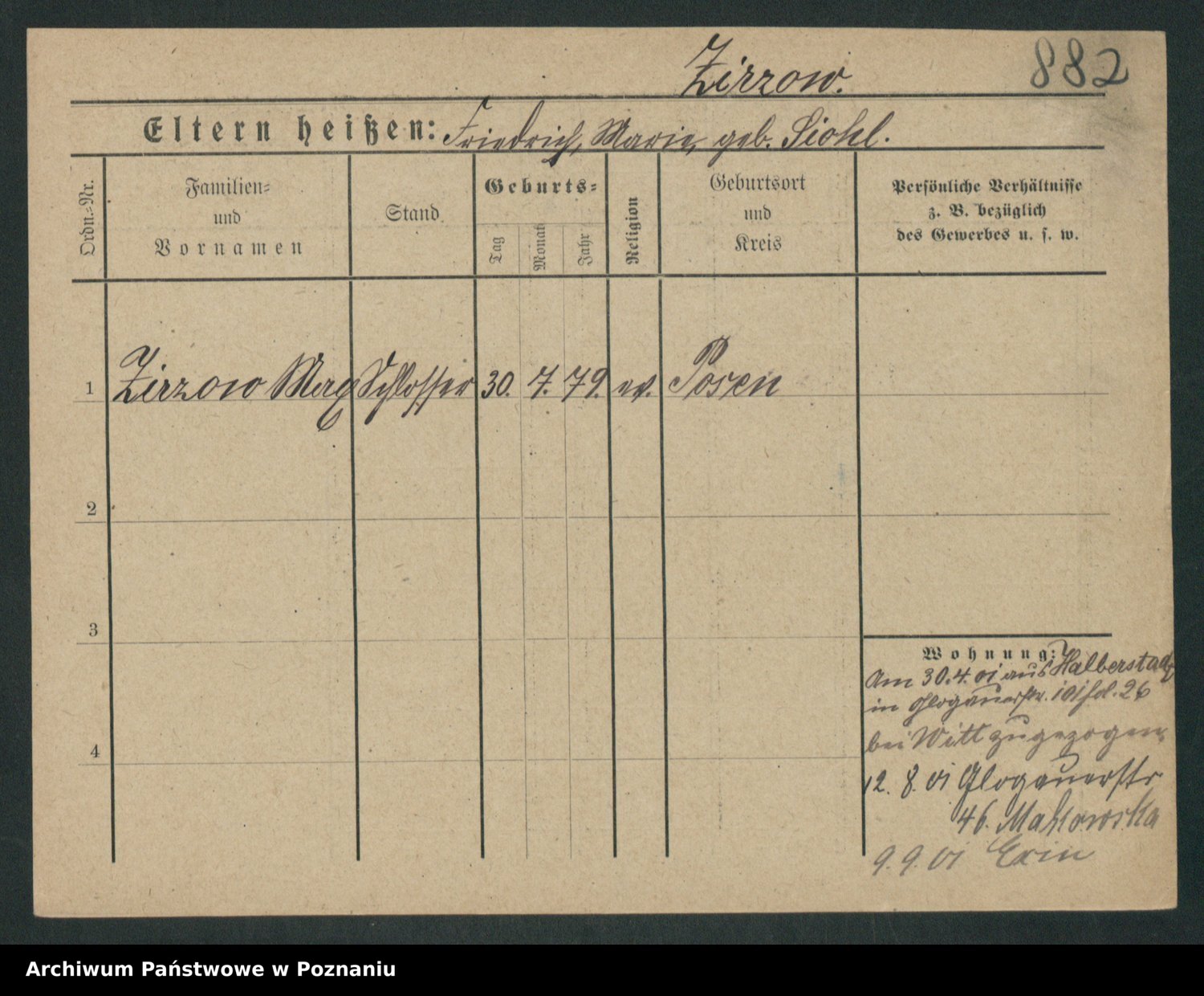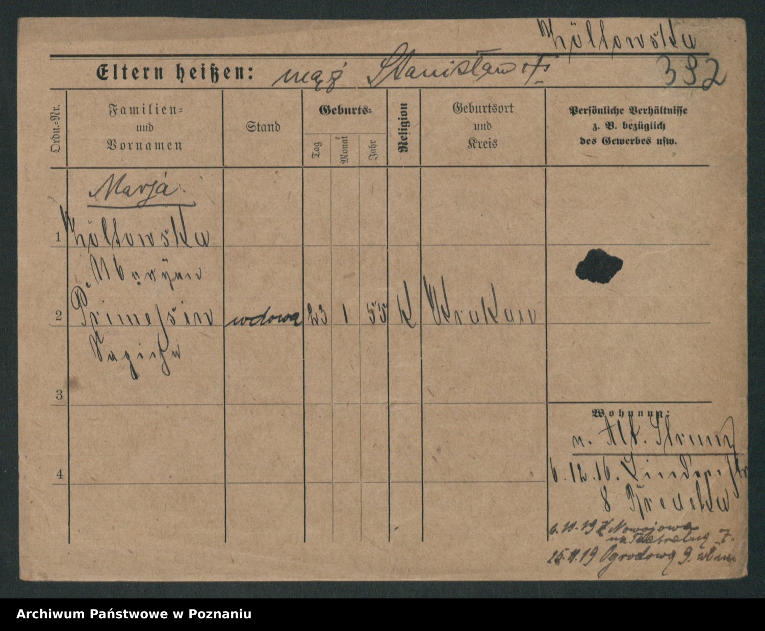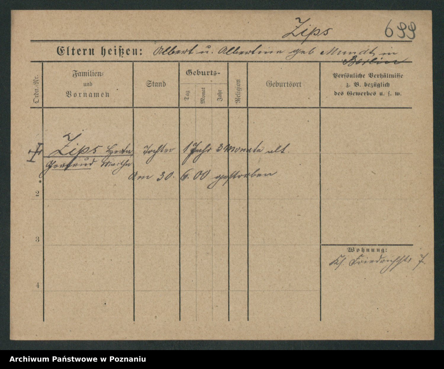 Zieske z.d. Altmann I voto Franzke, Vilhelmine Ida Cäzilie