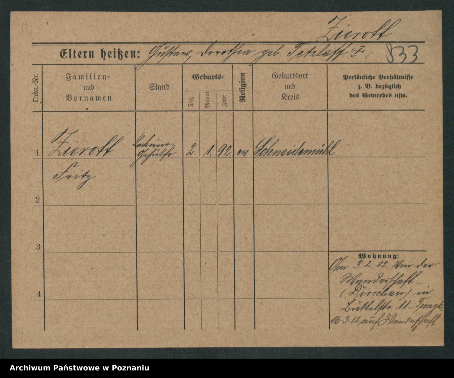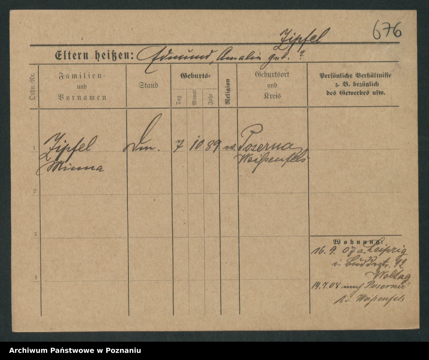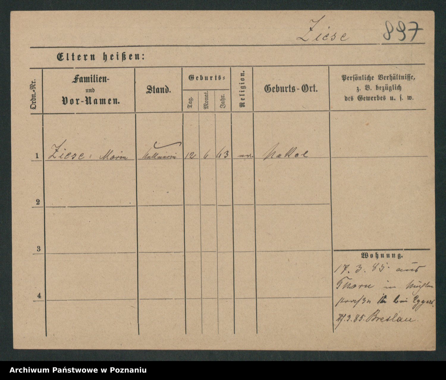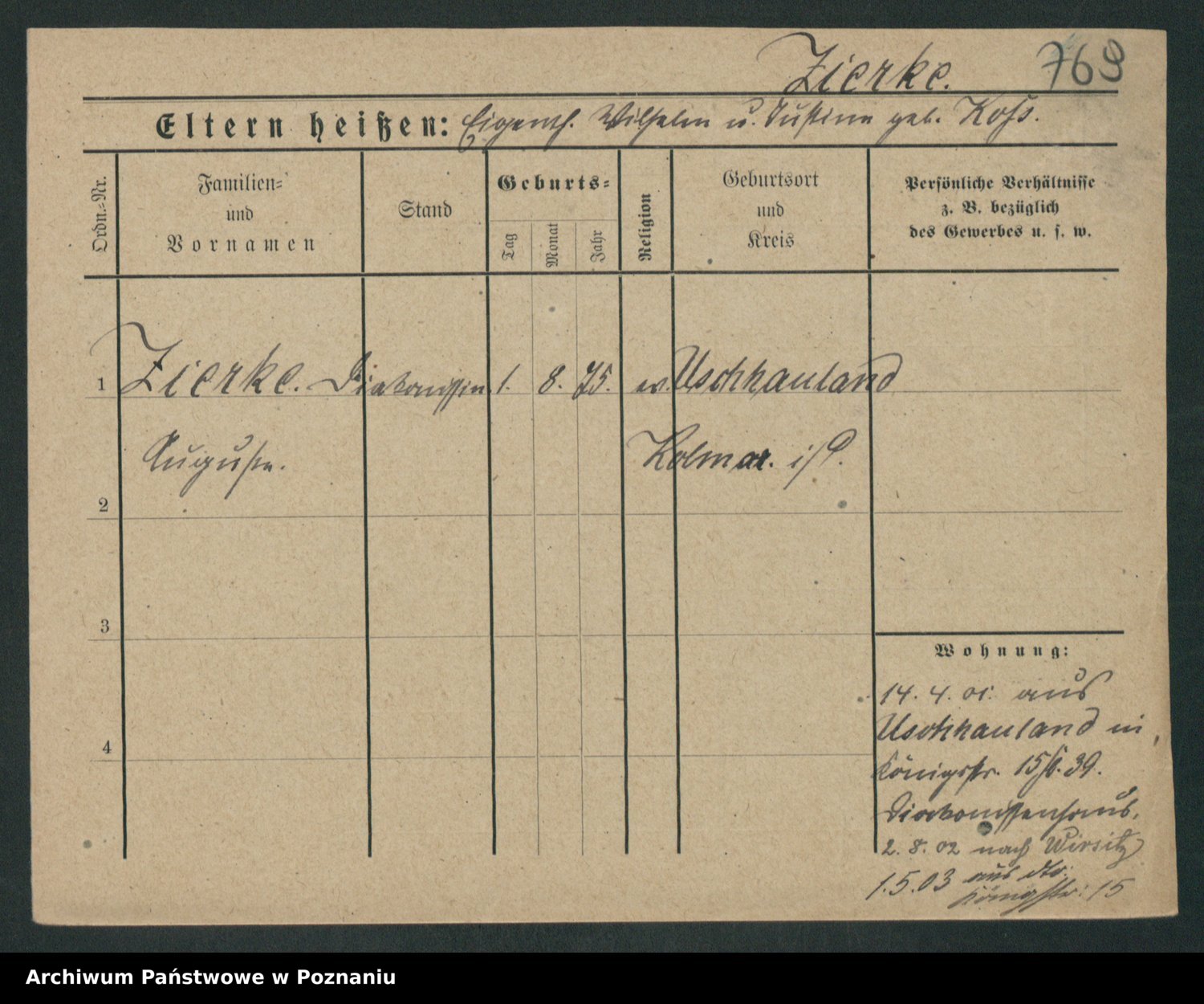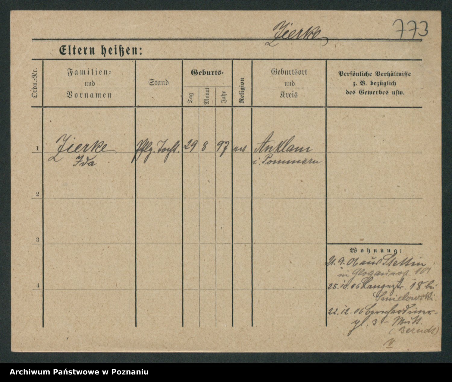 Zieske z.d. Altmann I voto Franzke, Vilhelmine Ida Cäzilie
