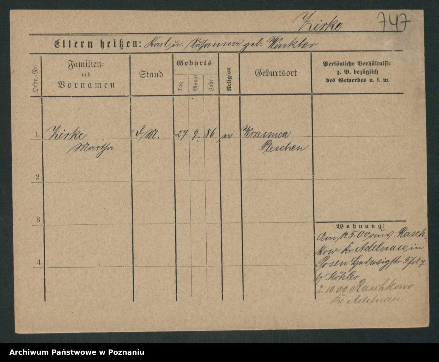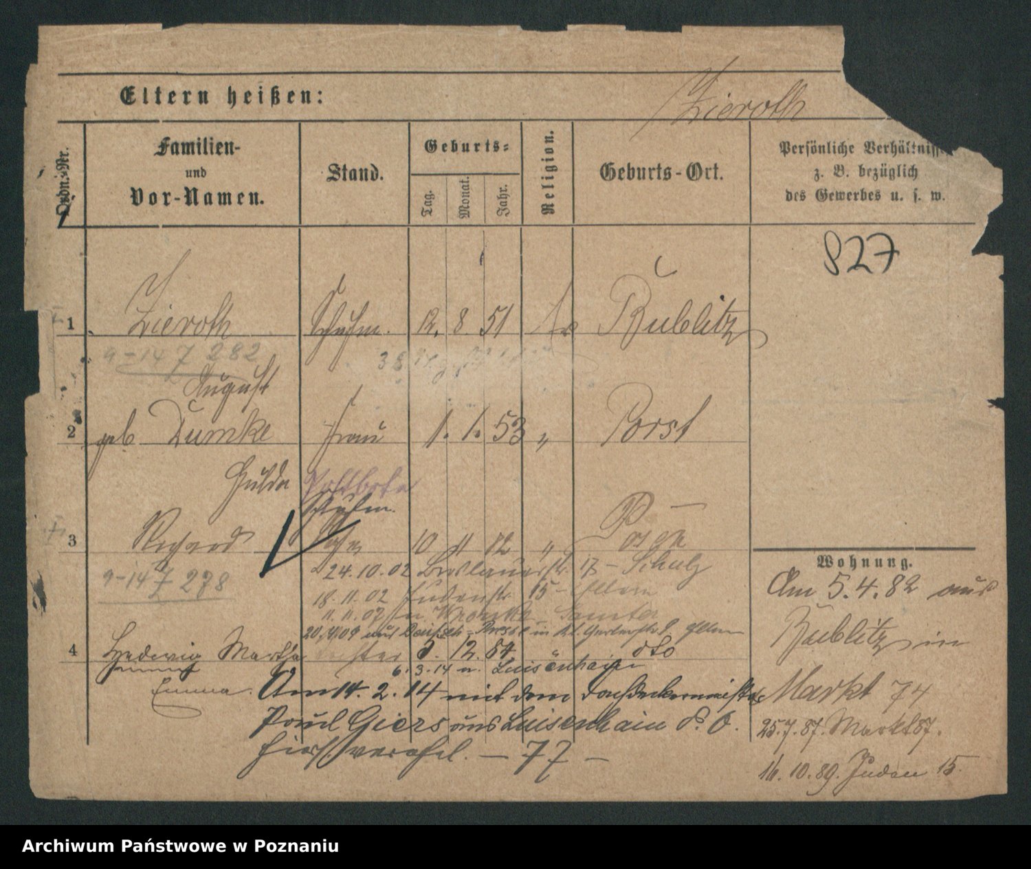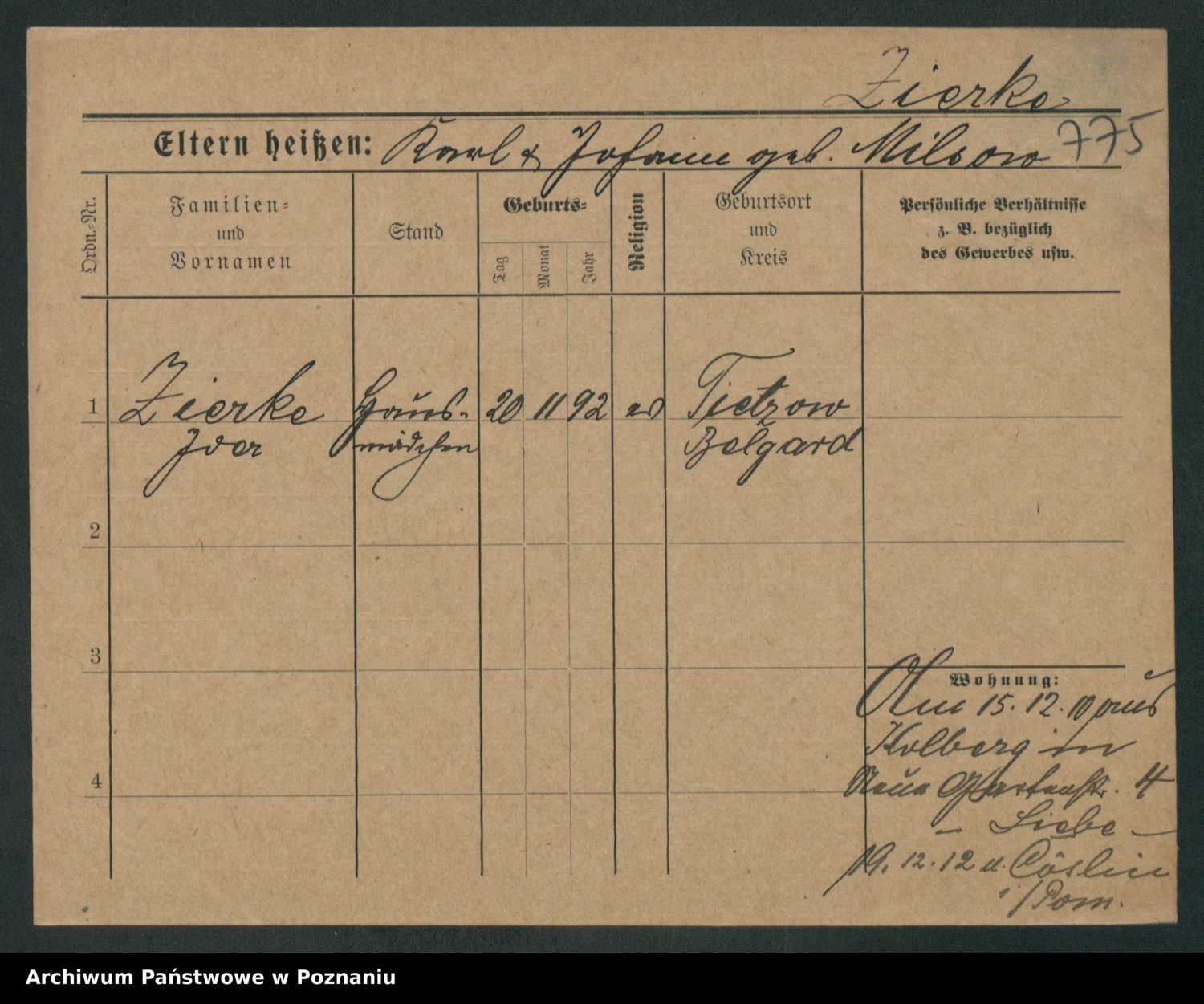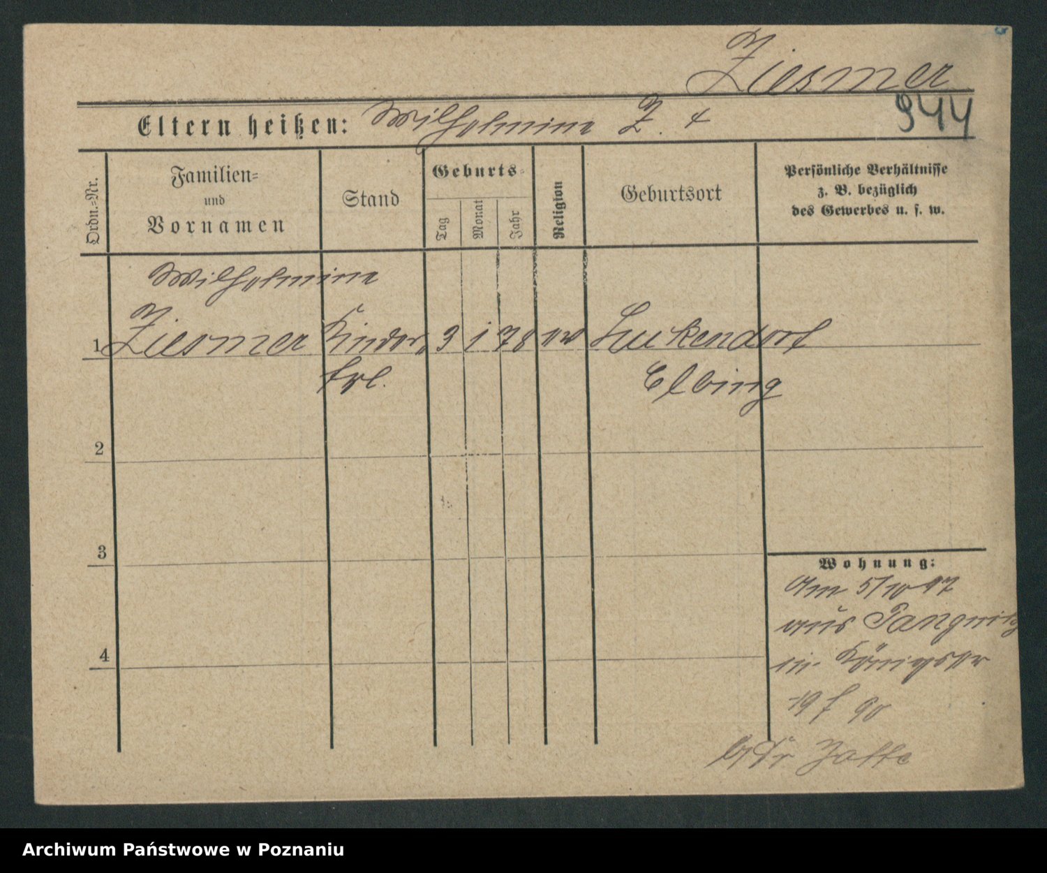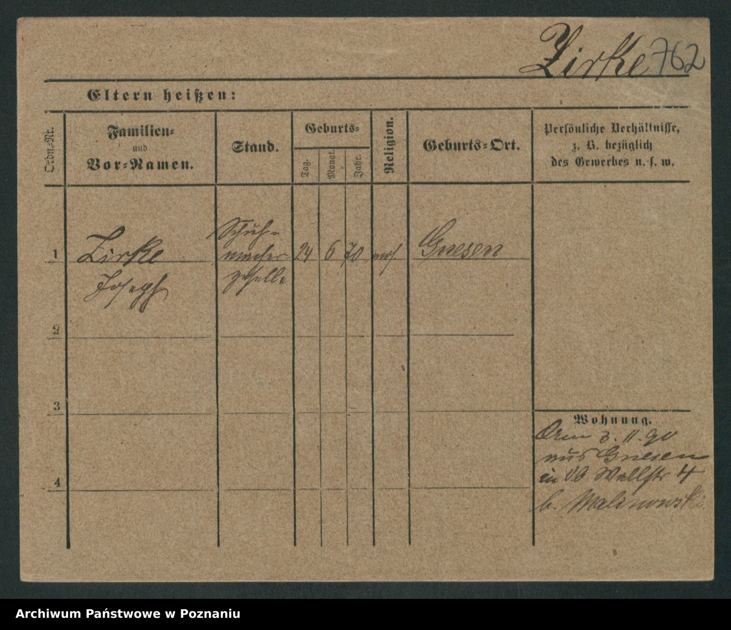 Zieske z.d. Altmann I voto Franzke, Vilhelmine Ida Cäzilie