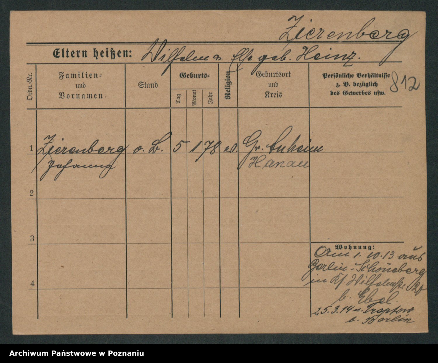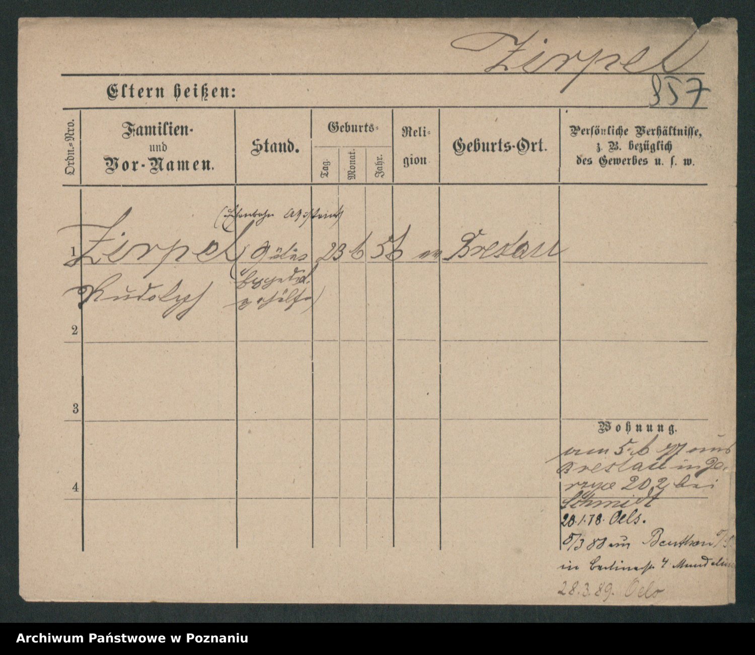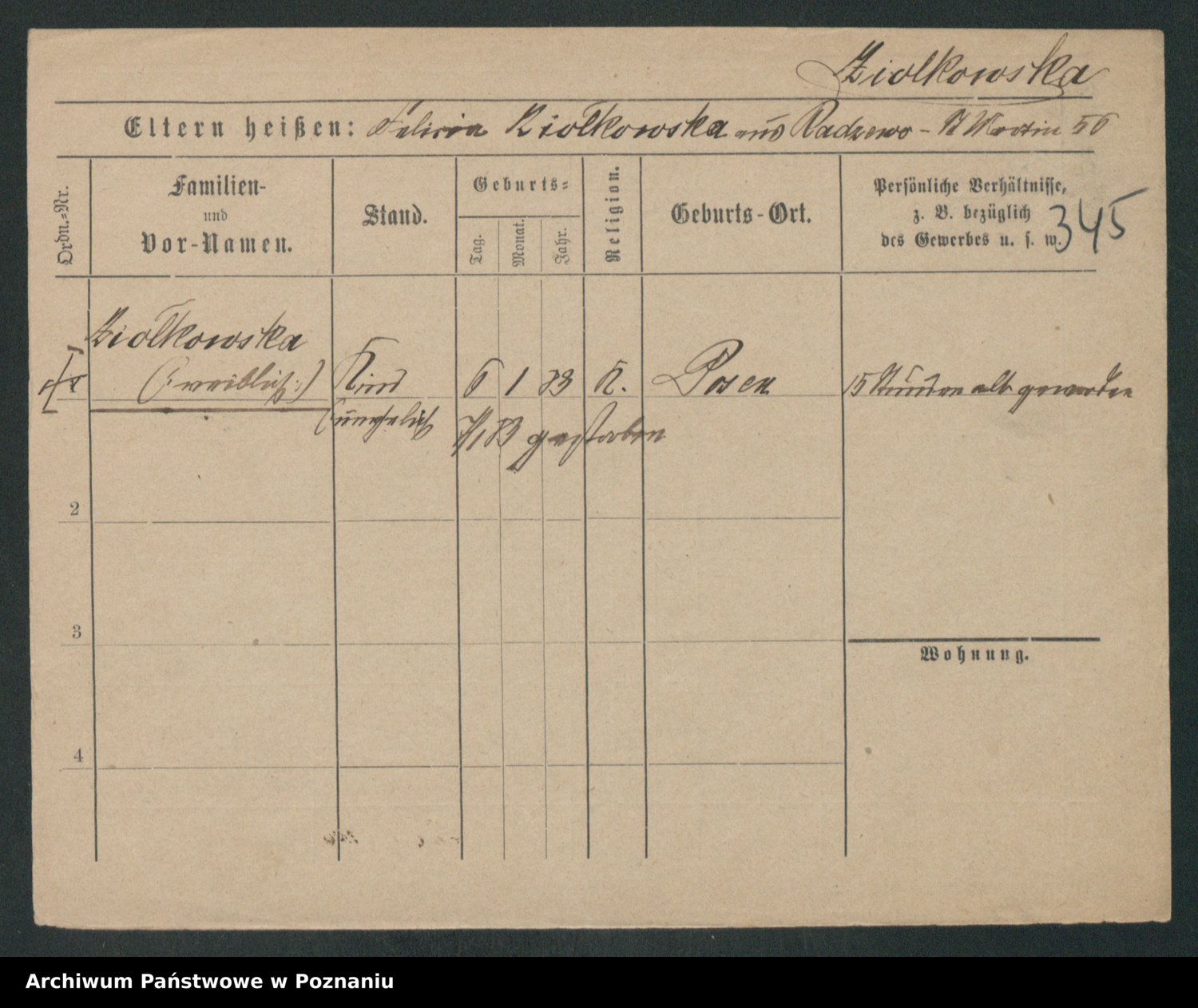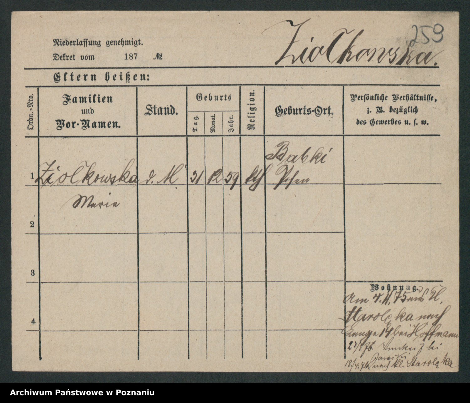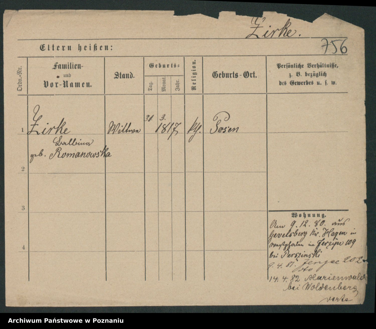 Zieske z.d. Altmann I voto Franzke, Vilhelmine Ida Cäzilie