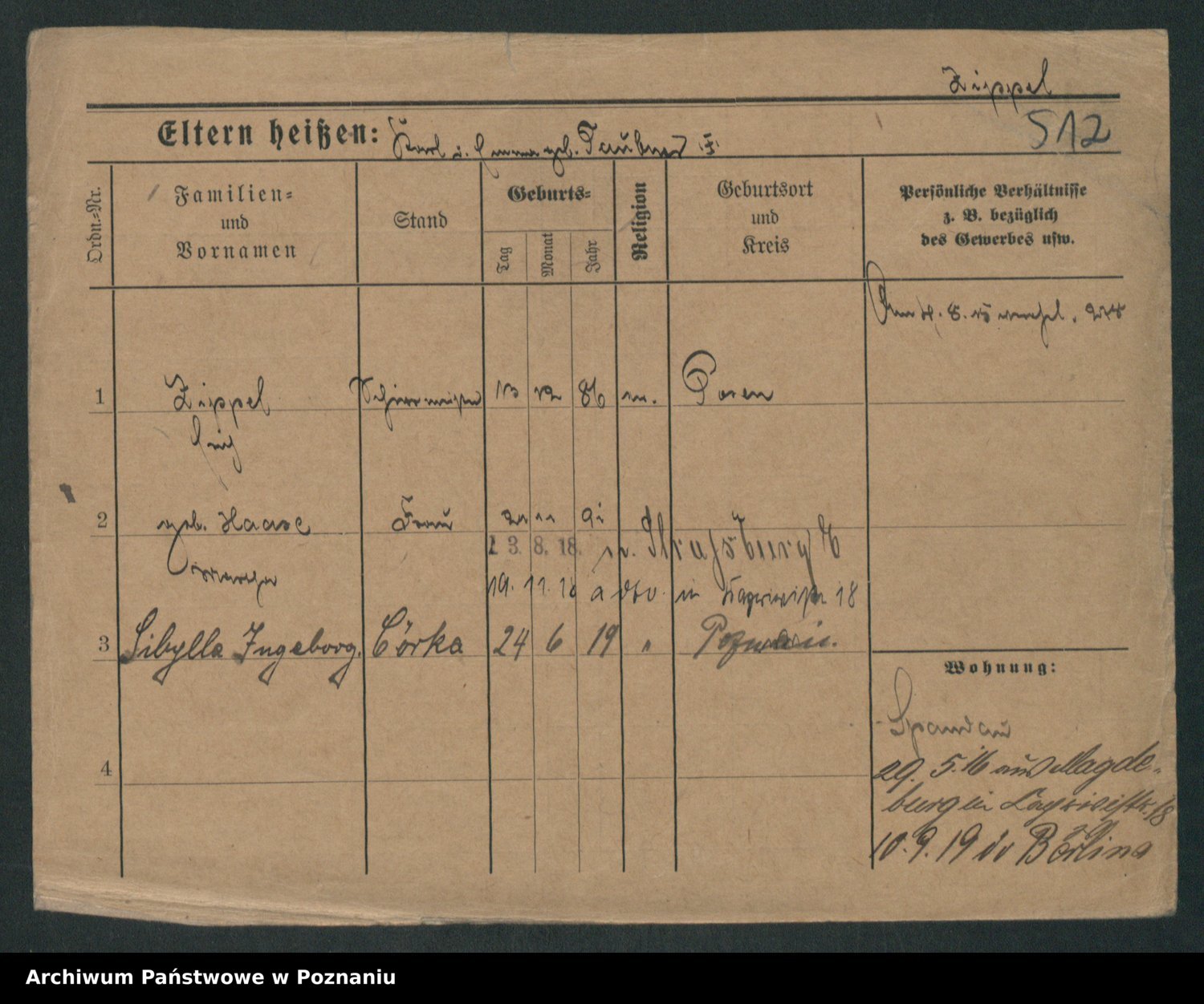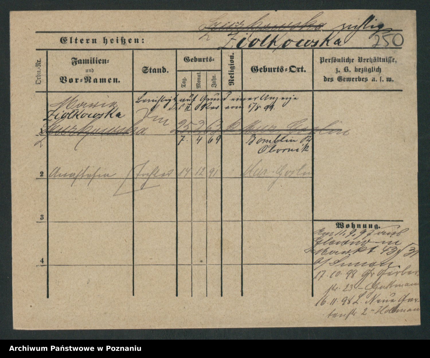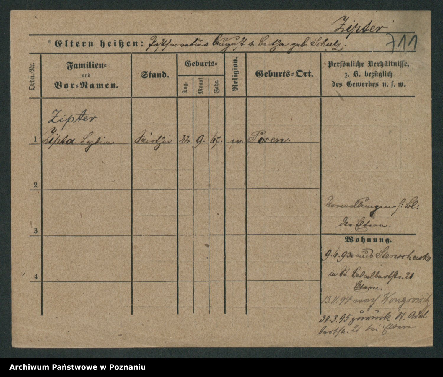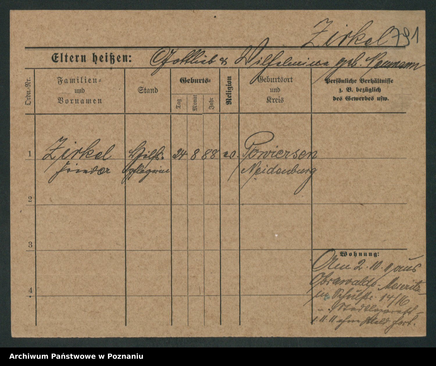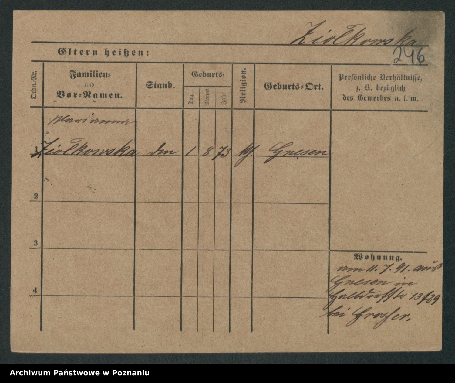 Zieske z.d. Altmann I voto Franzke, Vilhelmine Ida Cäzilie