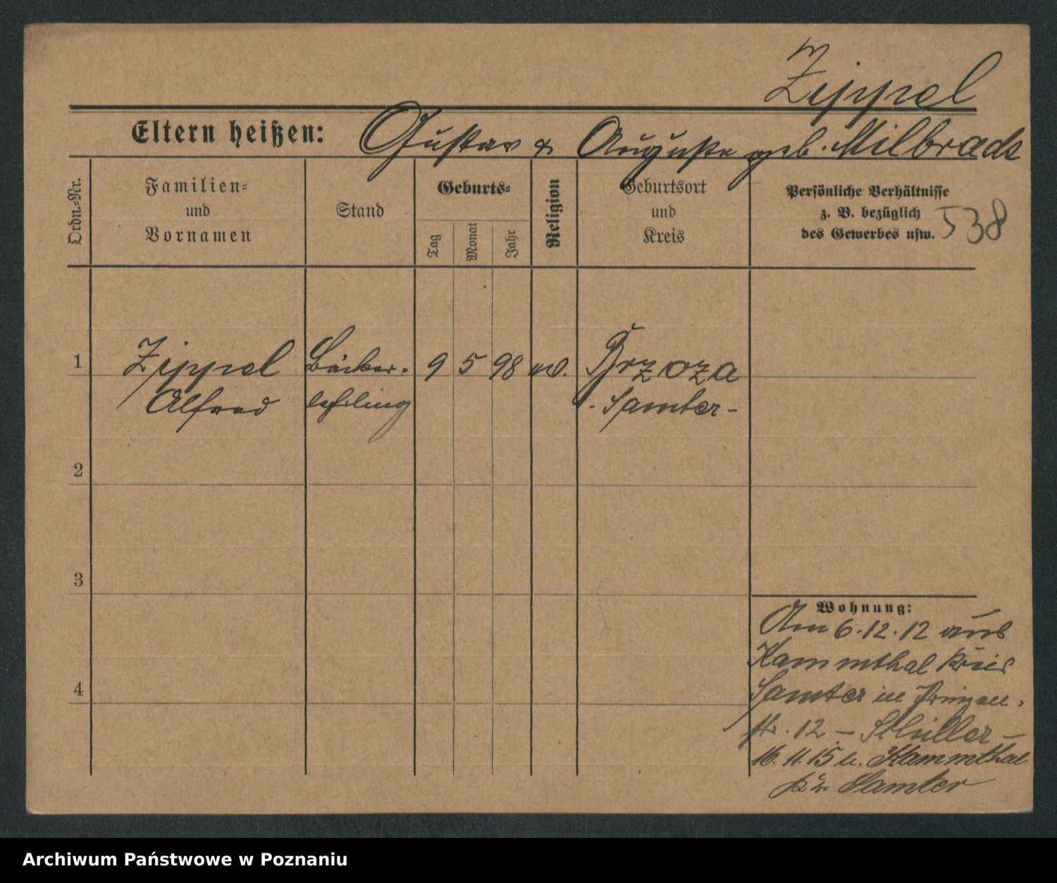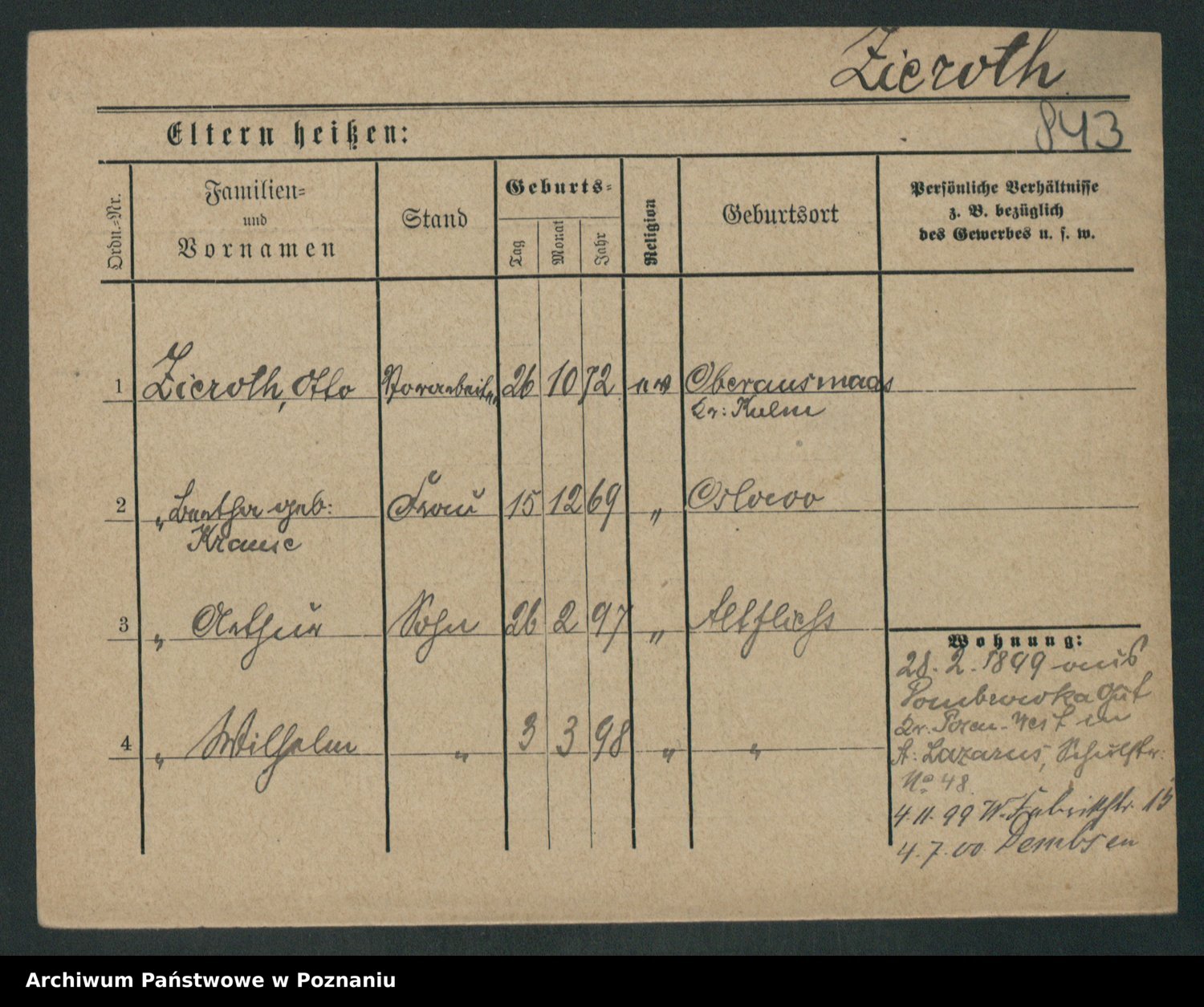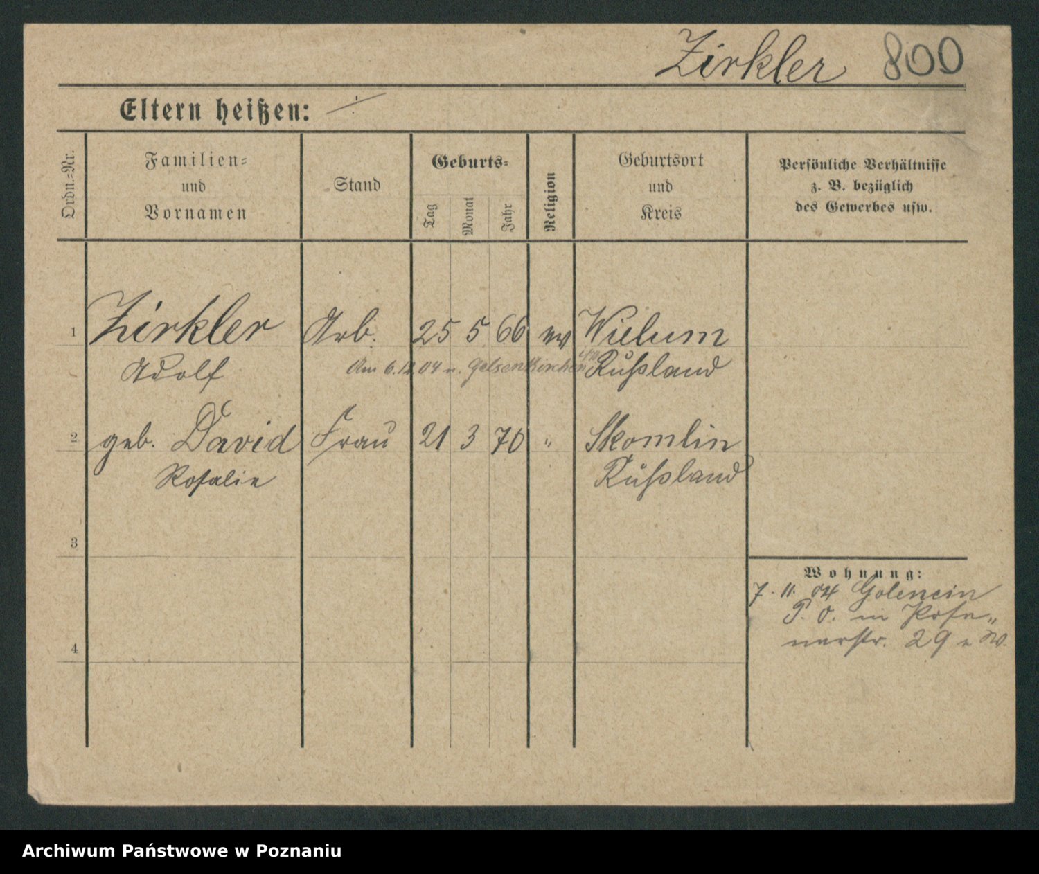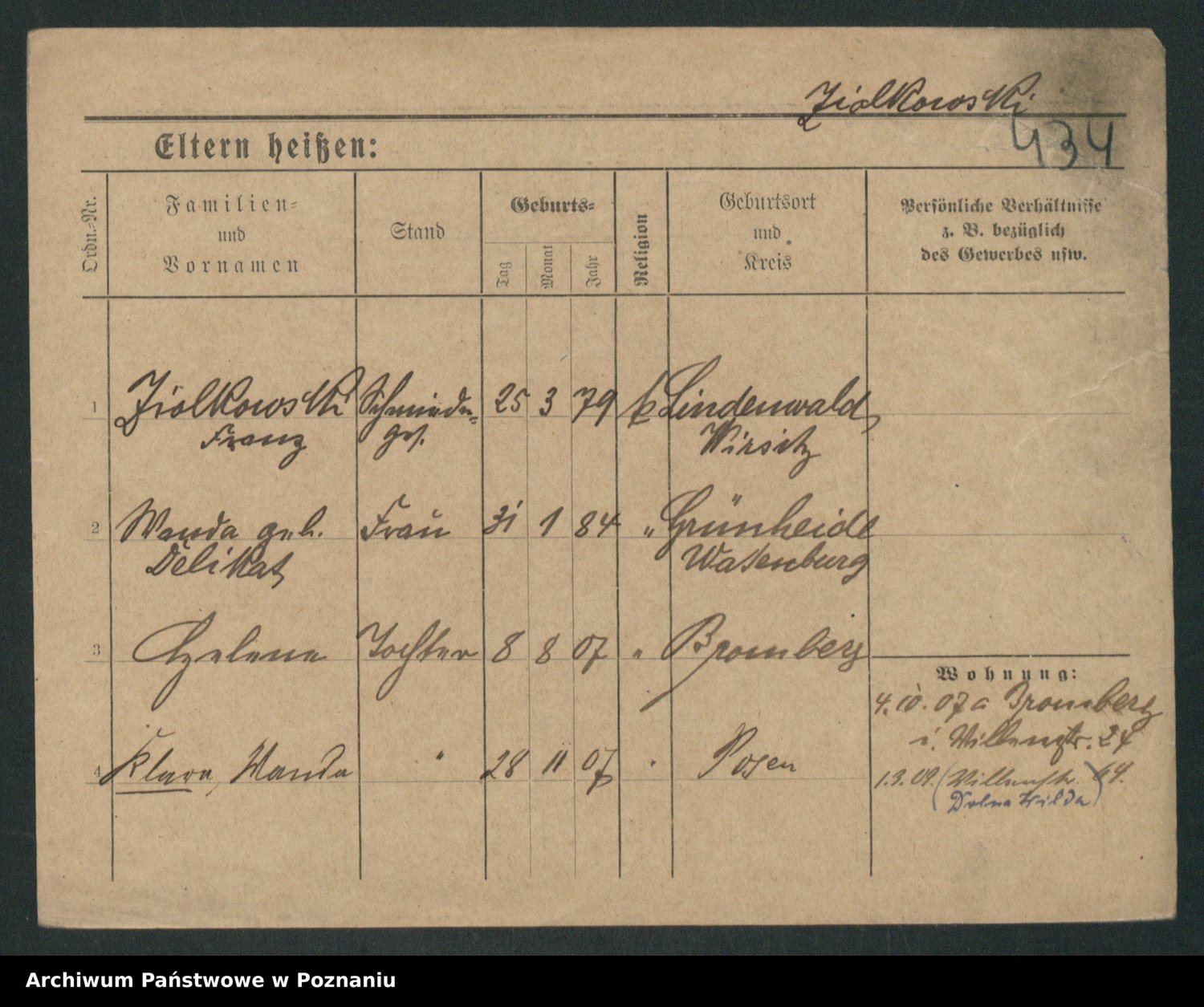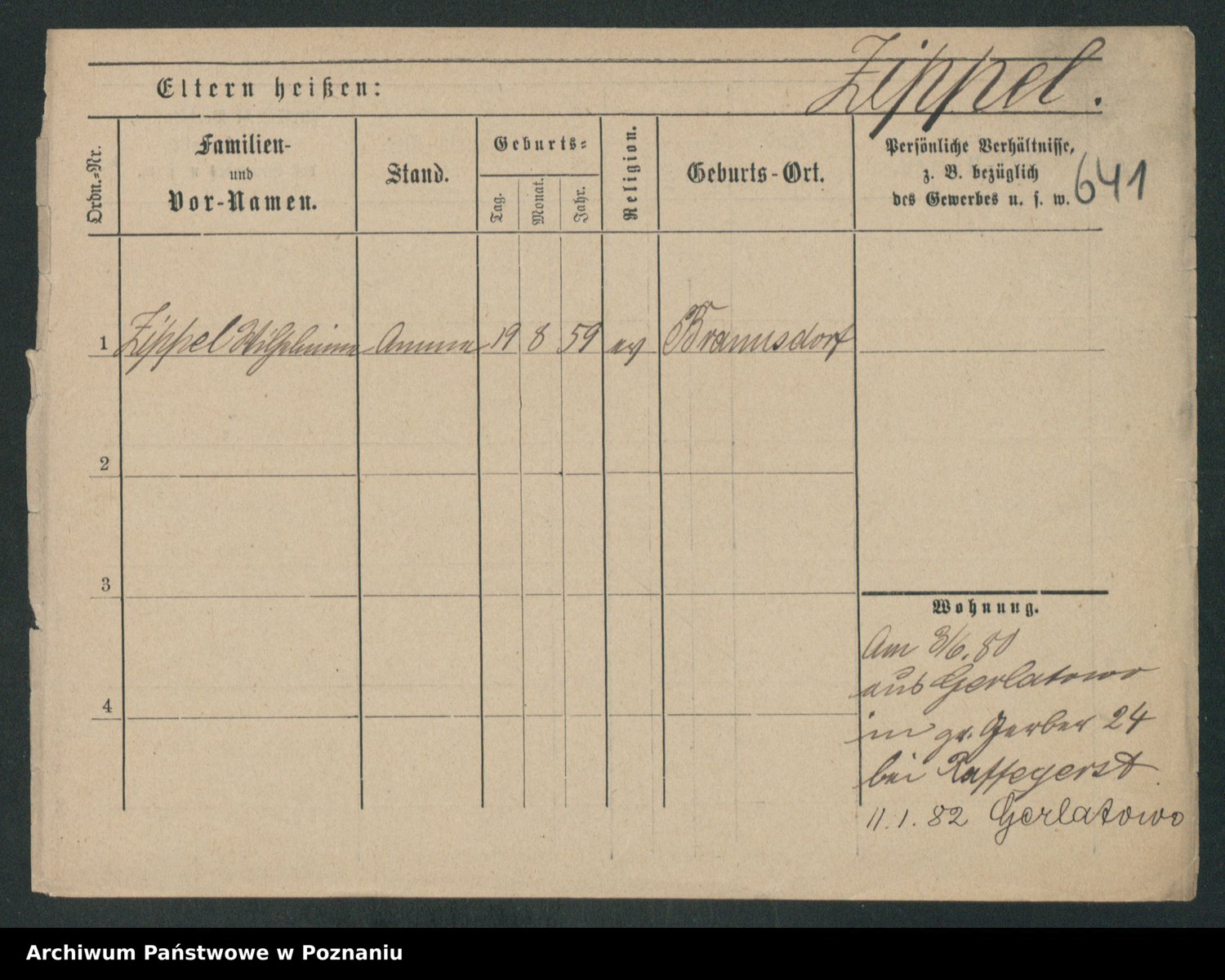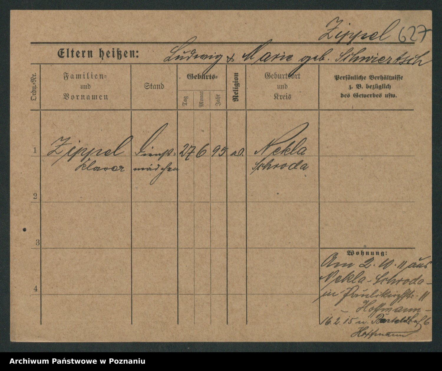 Zieske z.d. Altmann I voto Franzke, Vilhelmine Ida Cäzilie