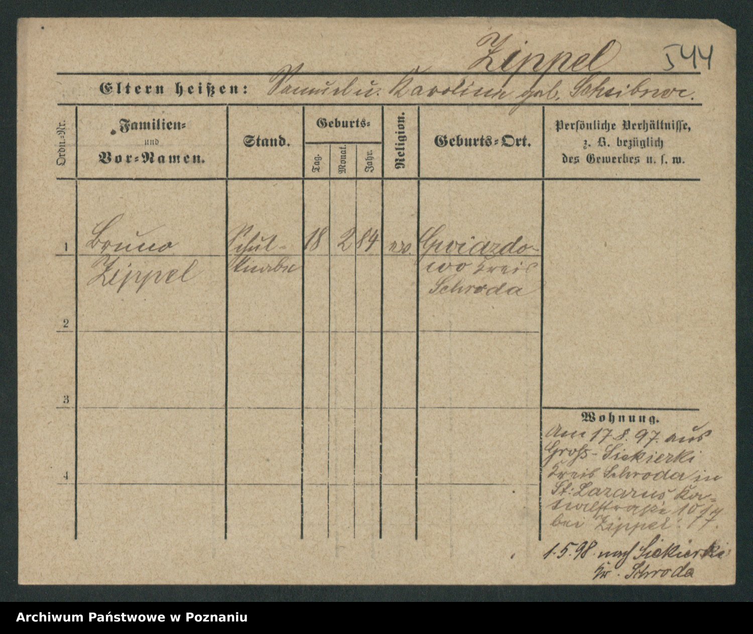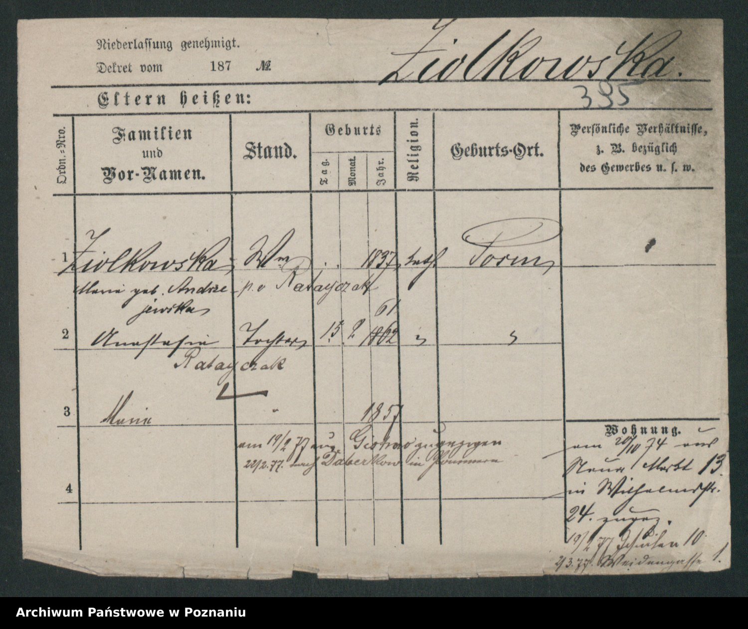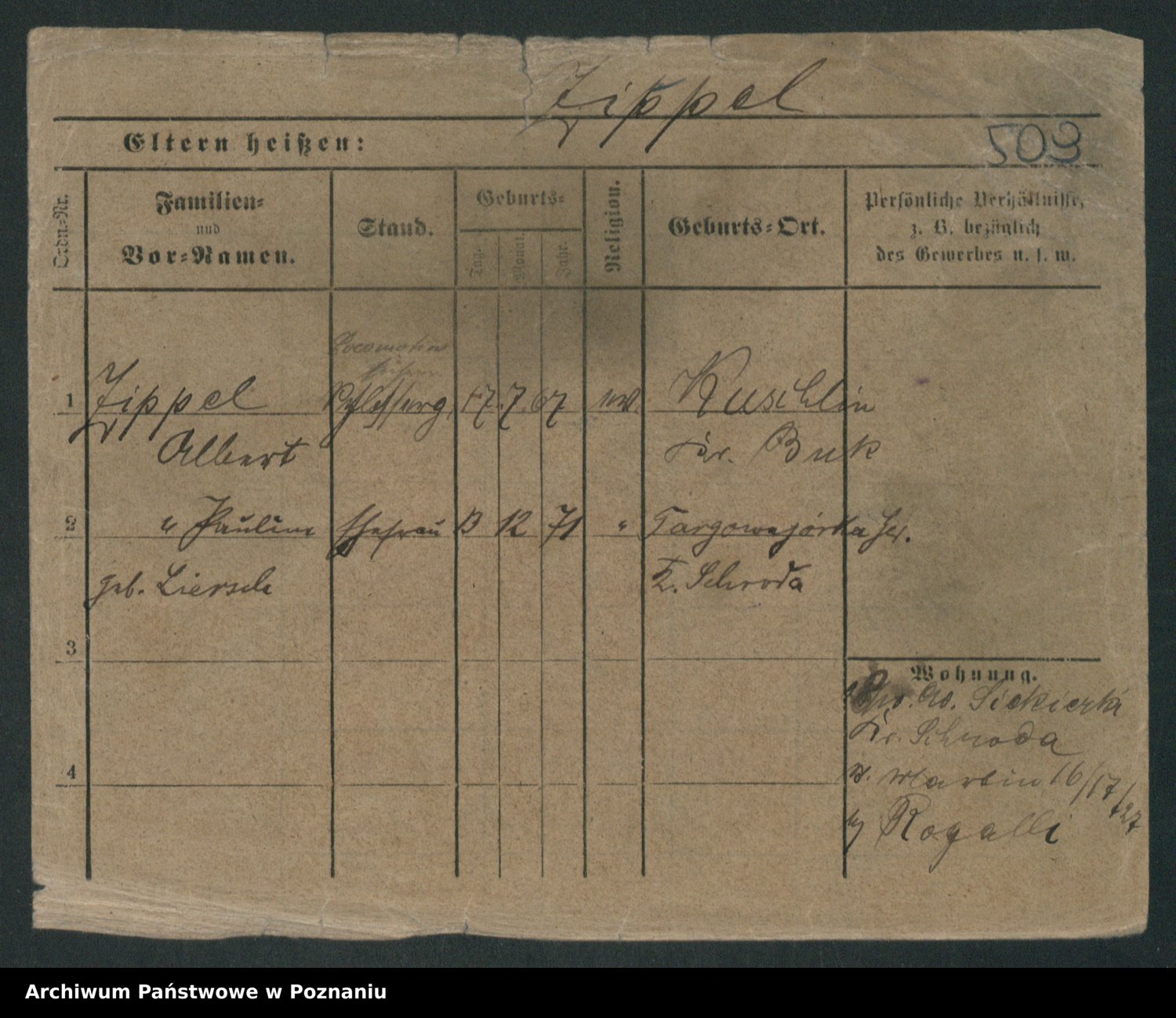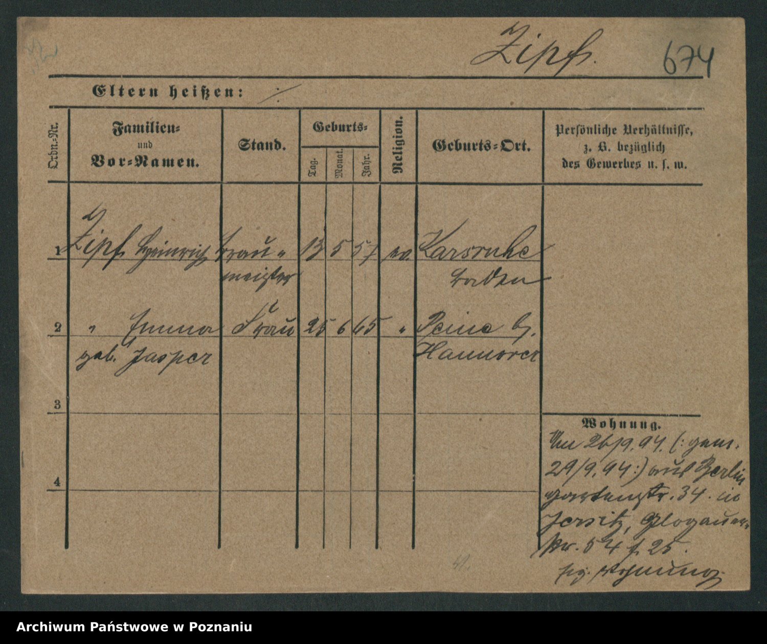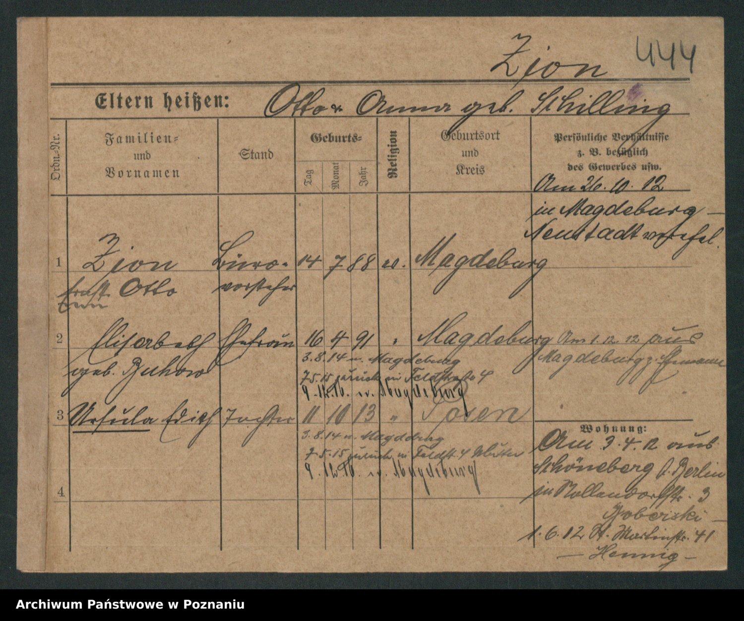 Zieske z.d. Altmann I voto Franzke, Vilhelmine Ida Cäzilie