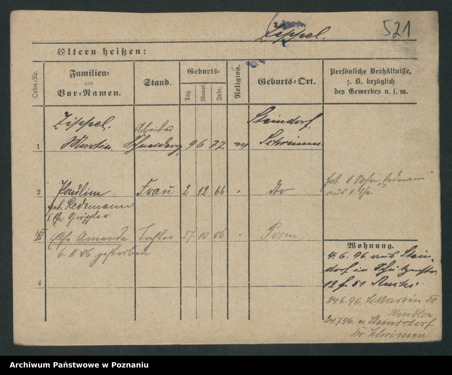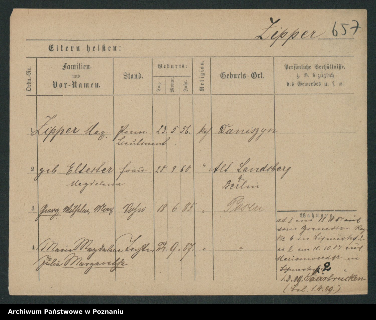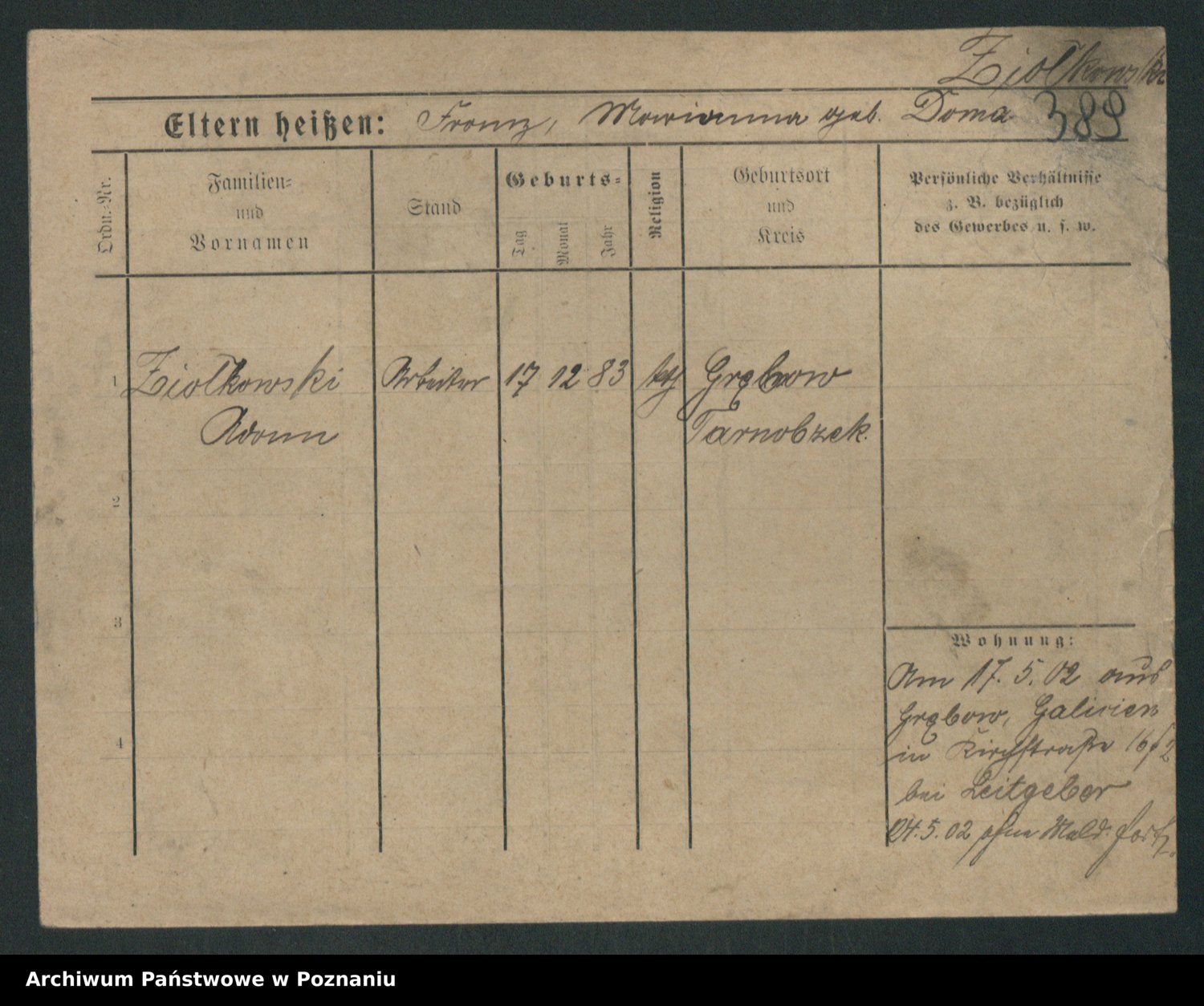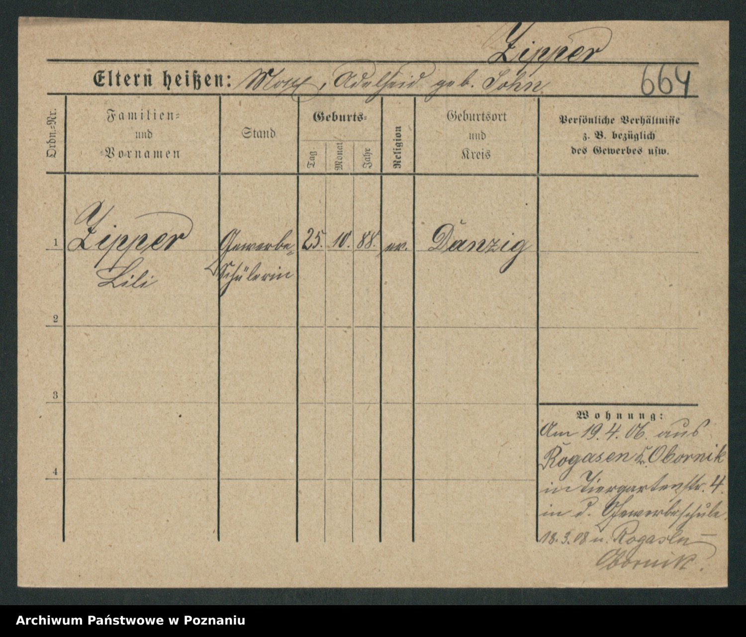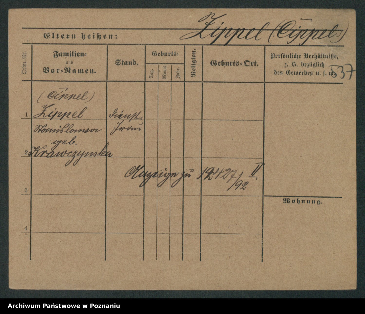 Zieske z.d. Altmann I voto Franzke, Vilhelmine Ida Cäzilie