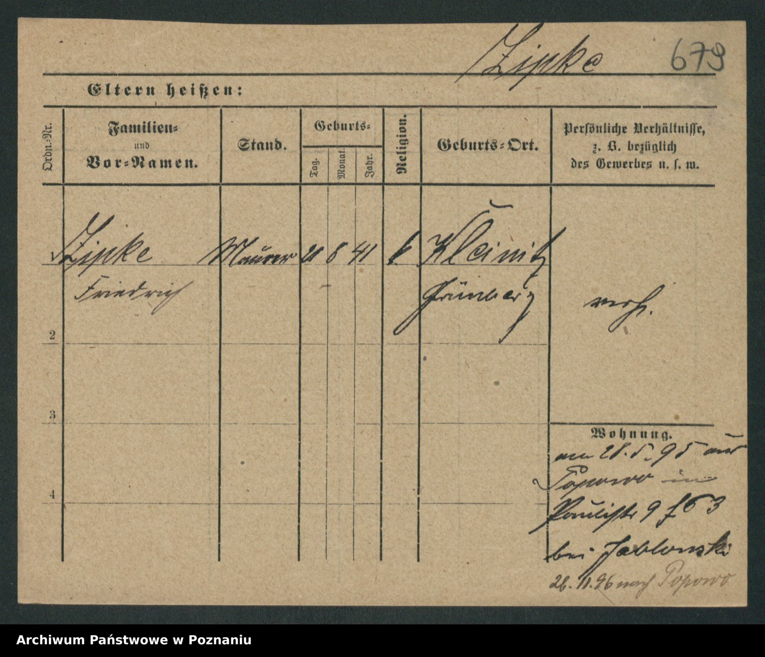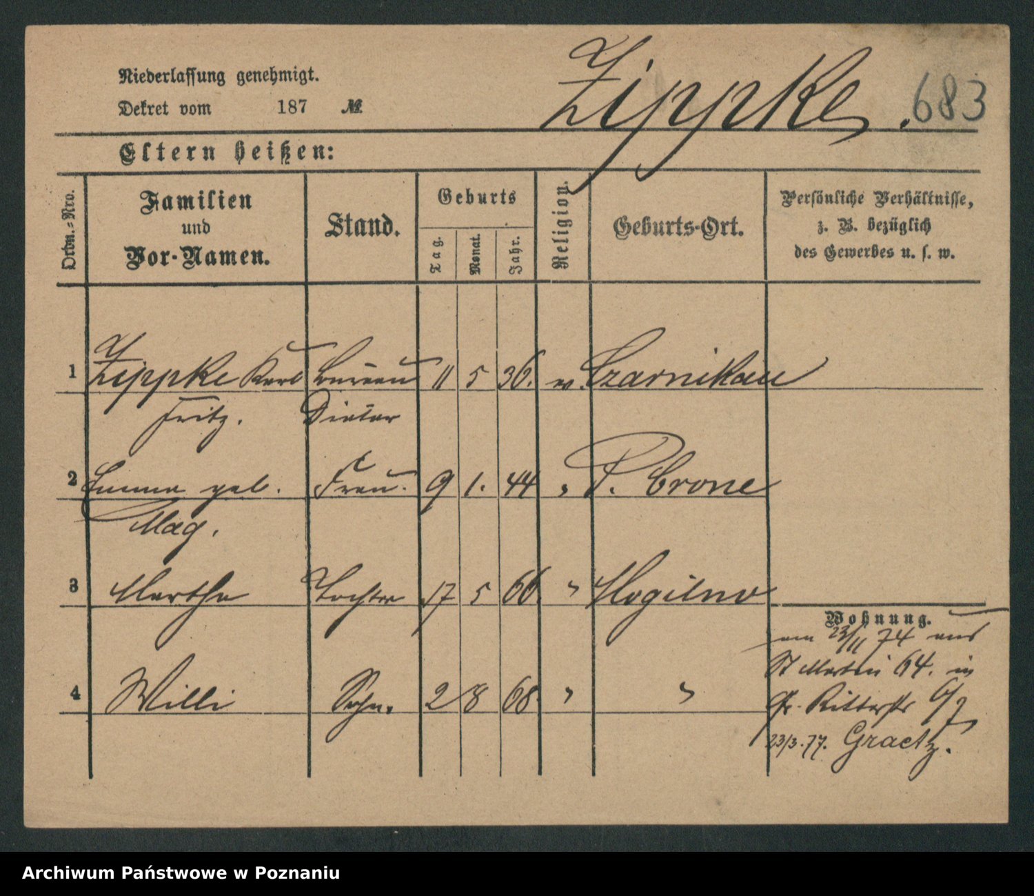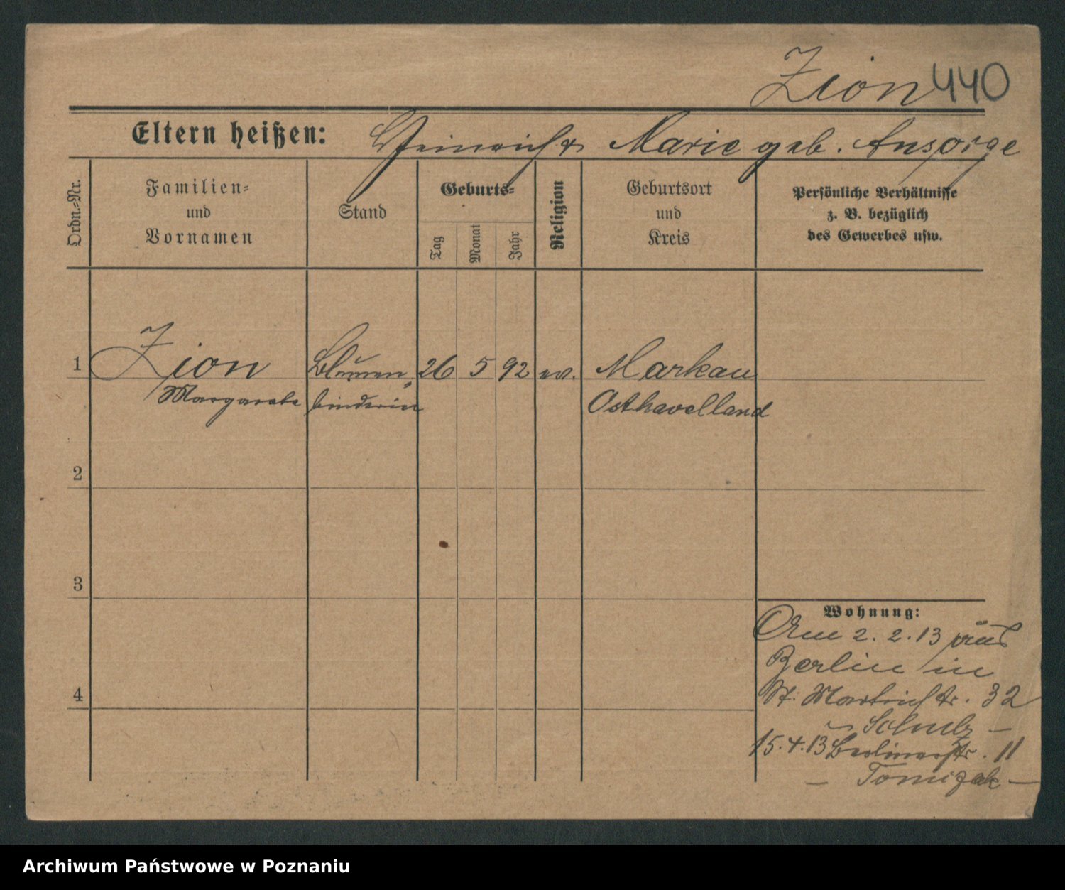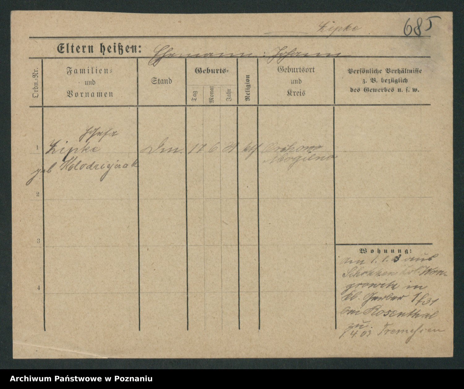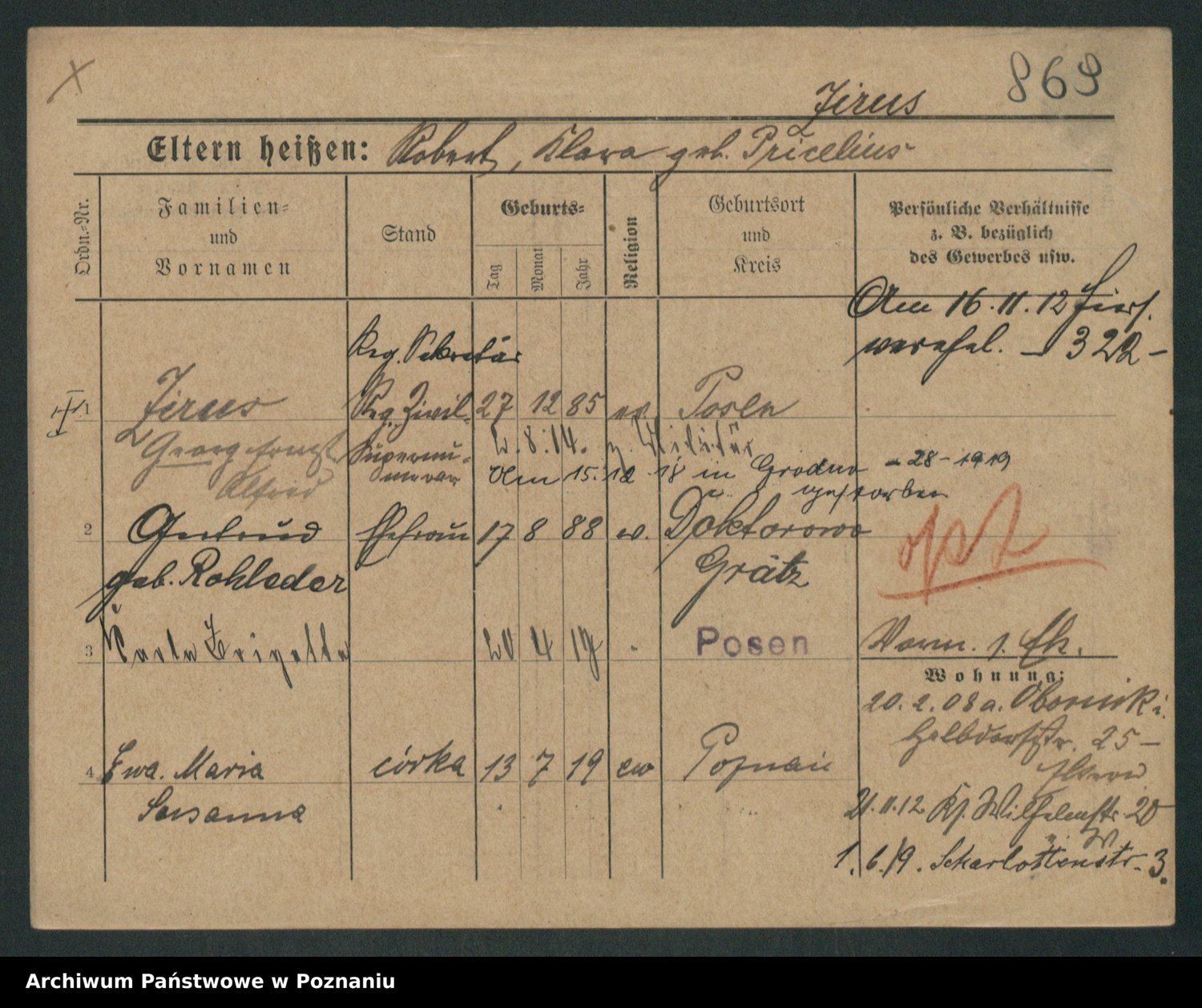 Zieske z.d. Altmann I voto Franzke, Vilhelmine Ida Cäzilie