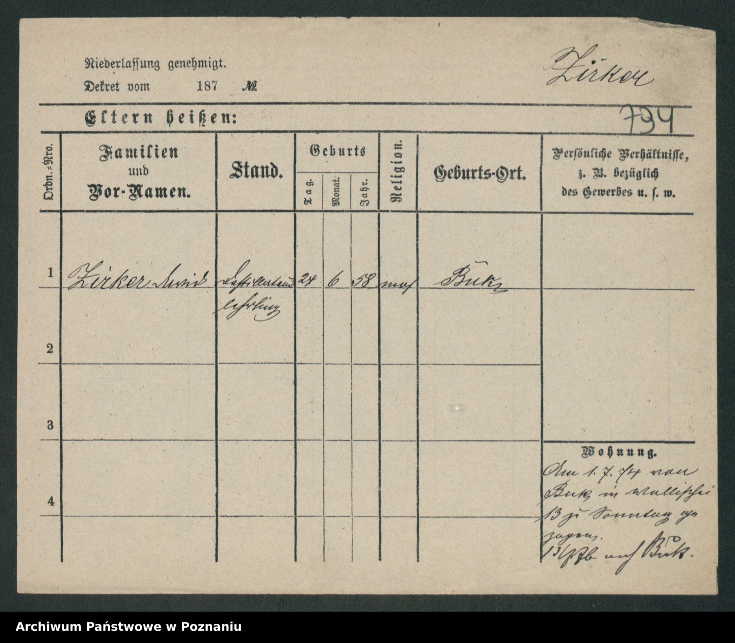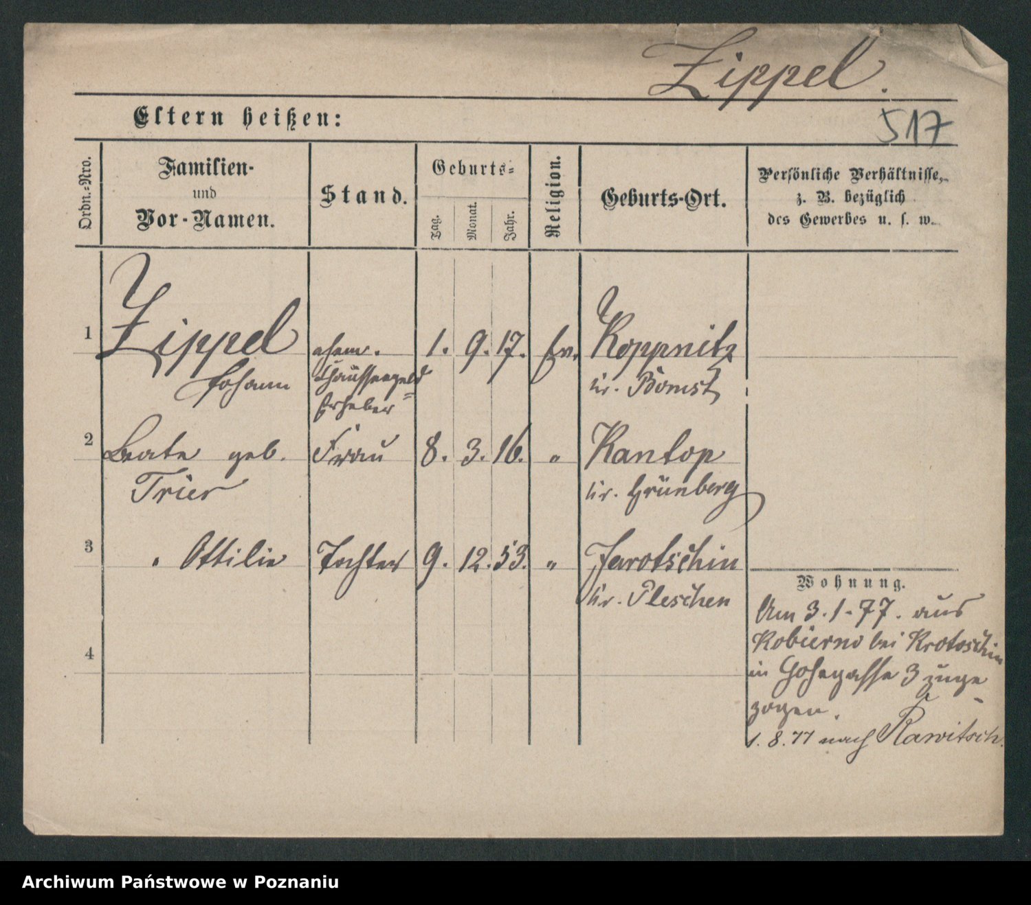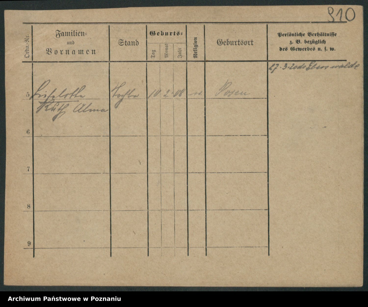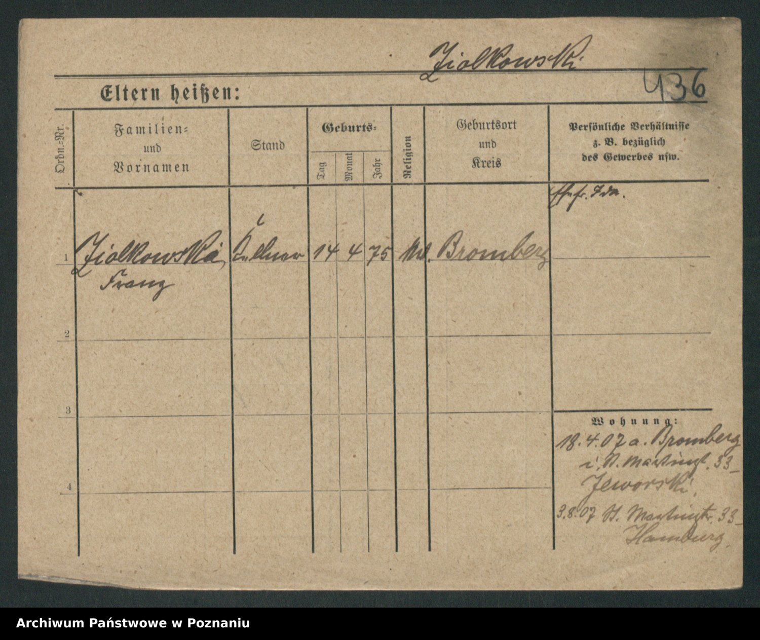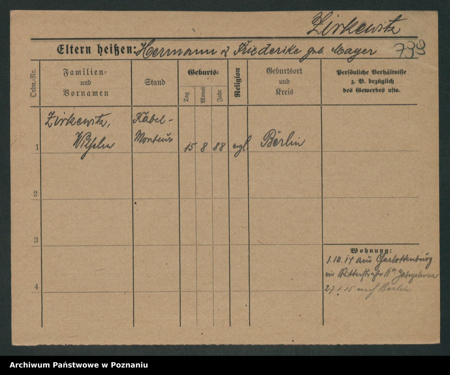 Zieske z.d. Altmann I voto Franzke, Vilhelmine Ida Cäzilie