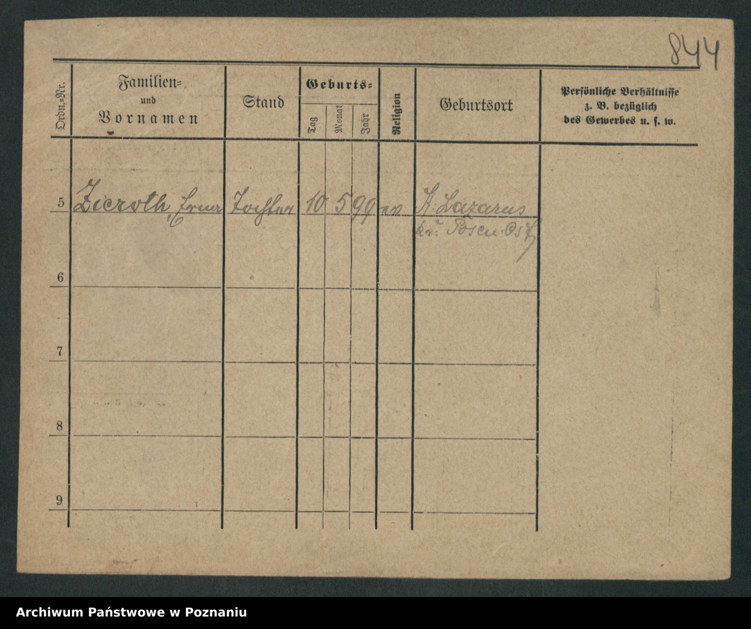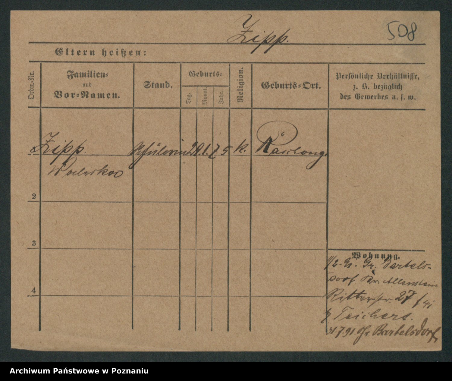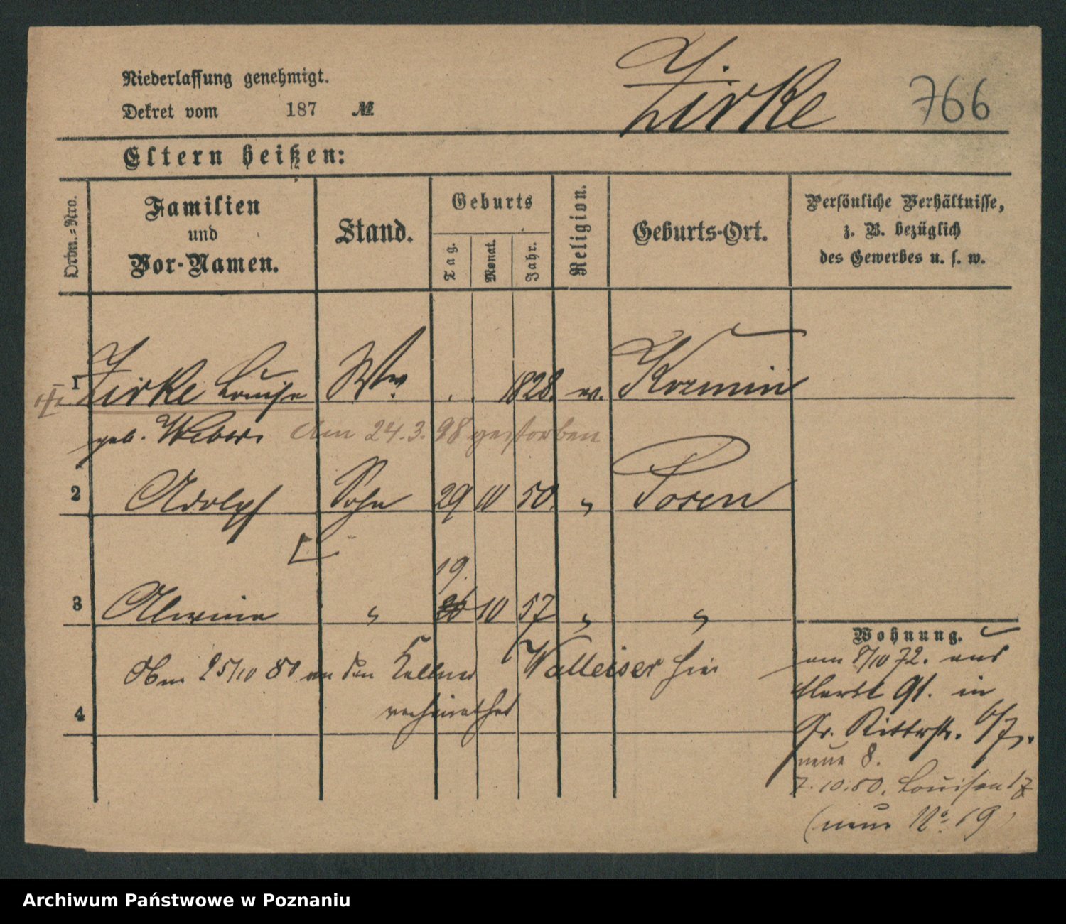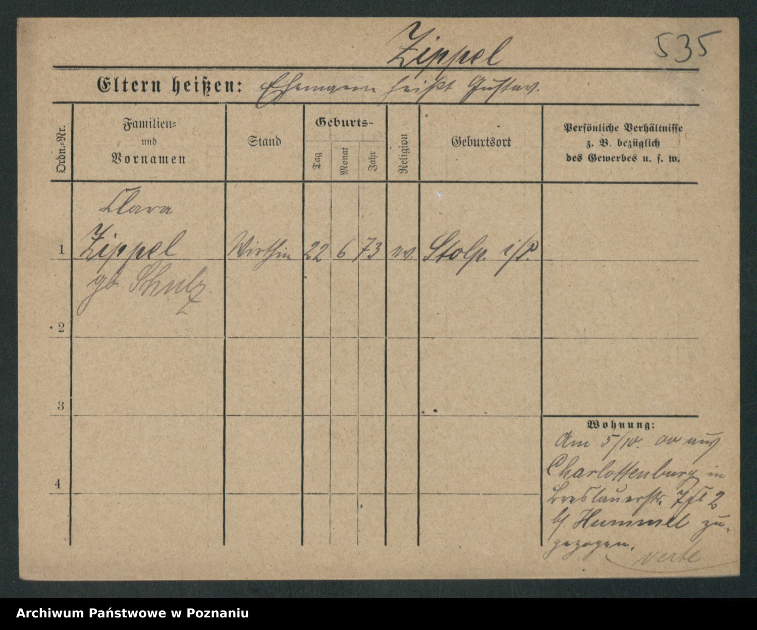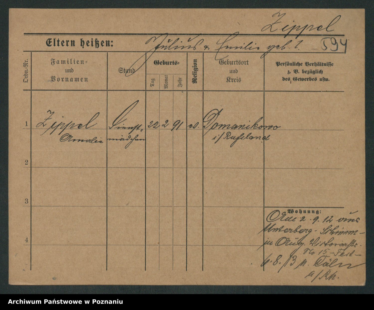 Zieske z.d. Altmann I voto Franzke, Vilhelmine Ida Cäzilie