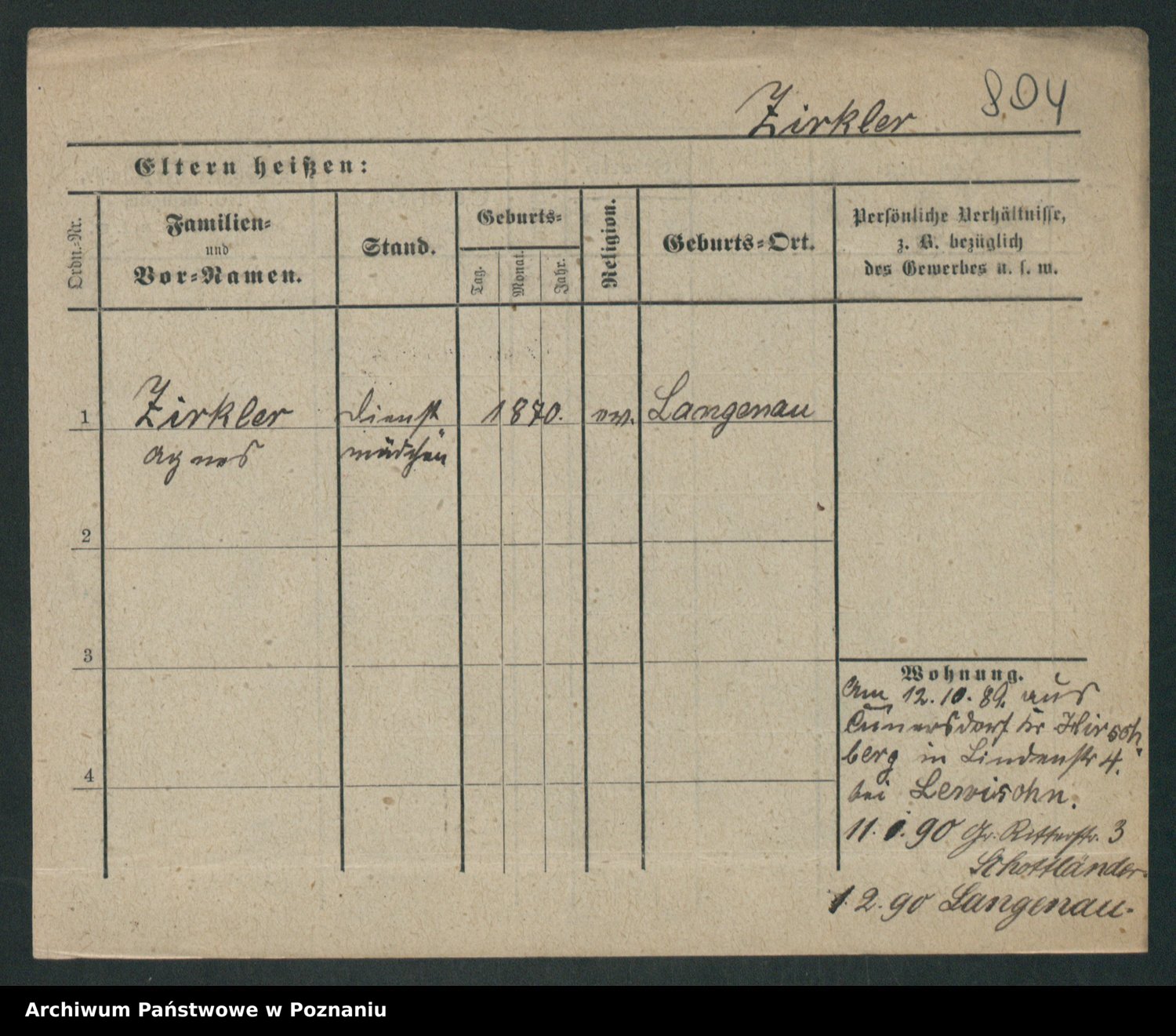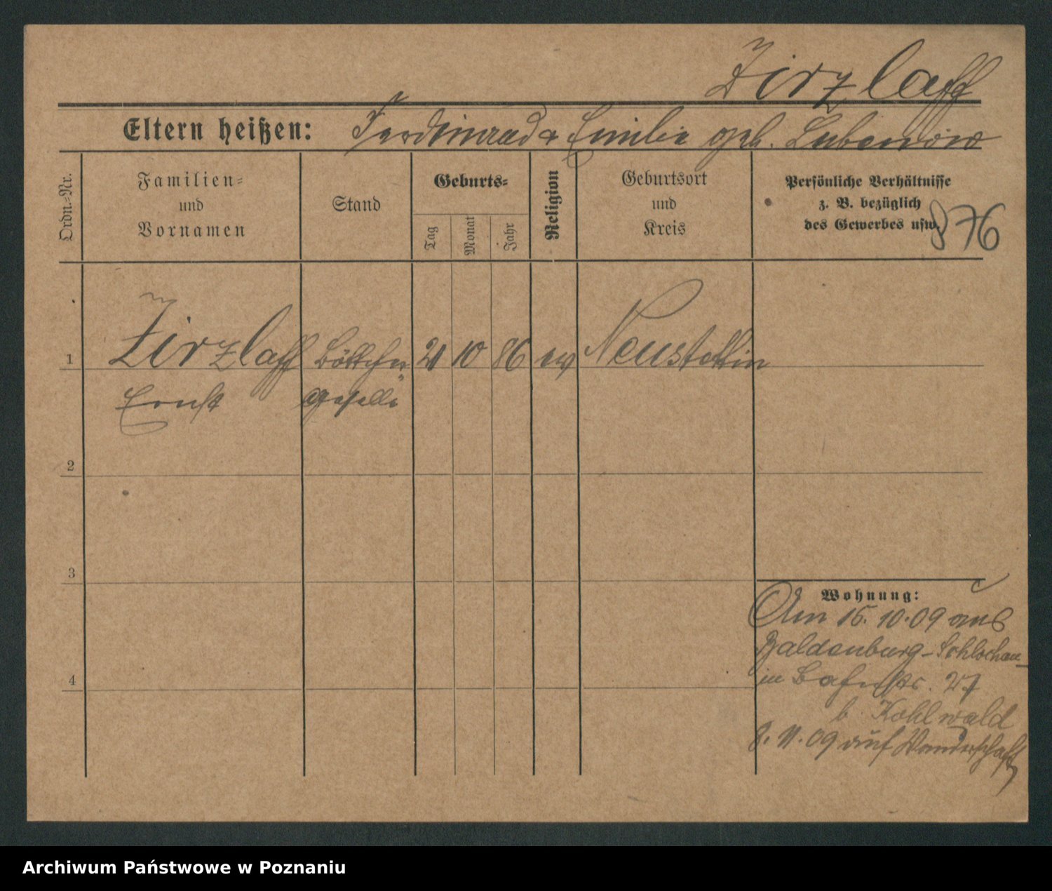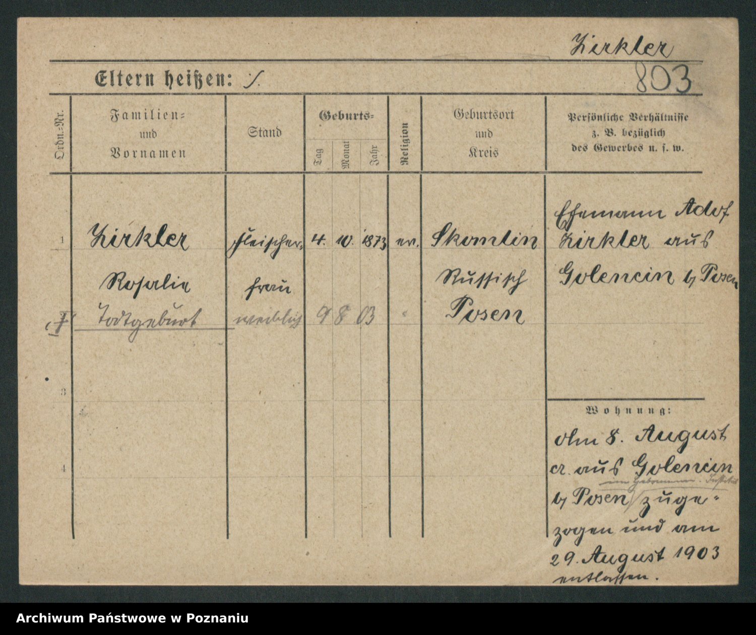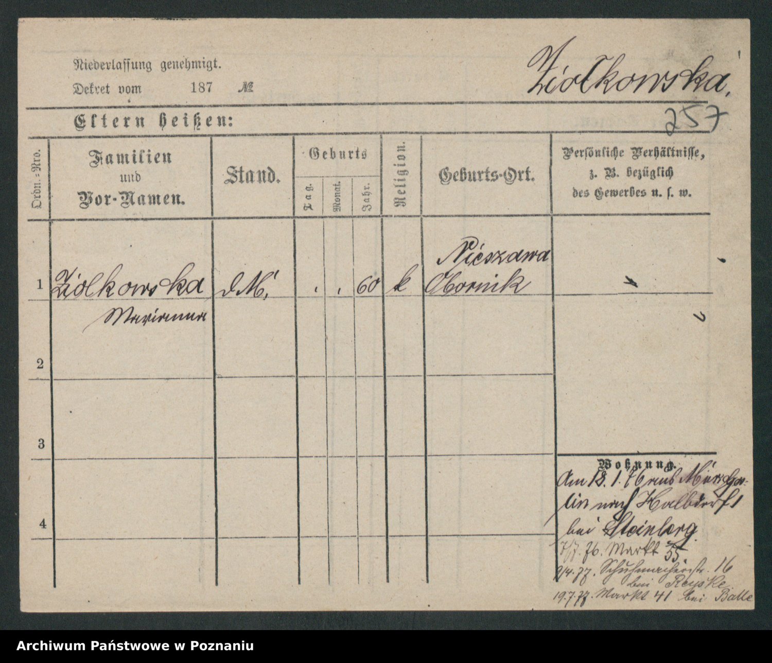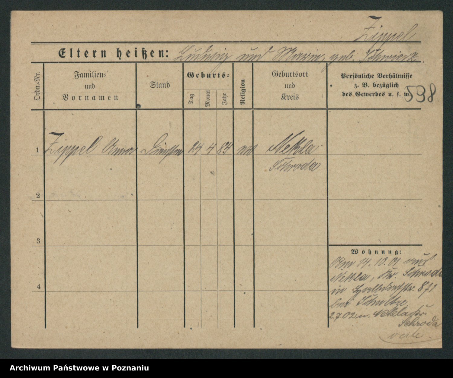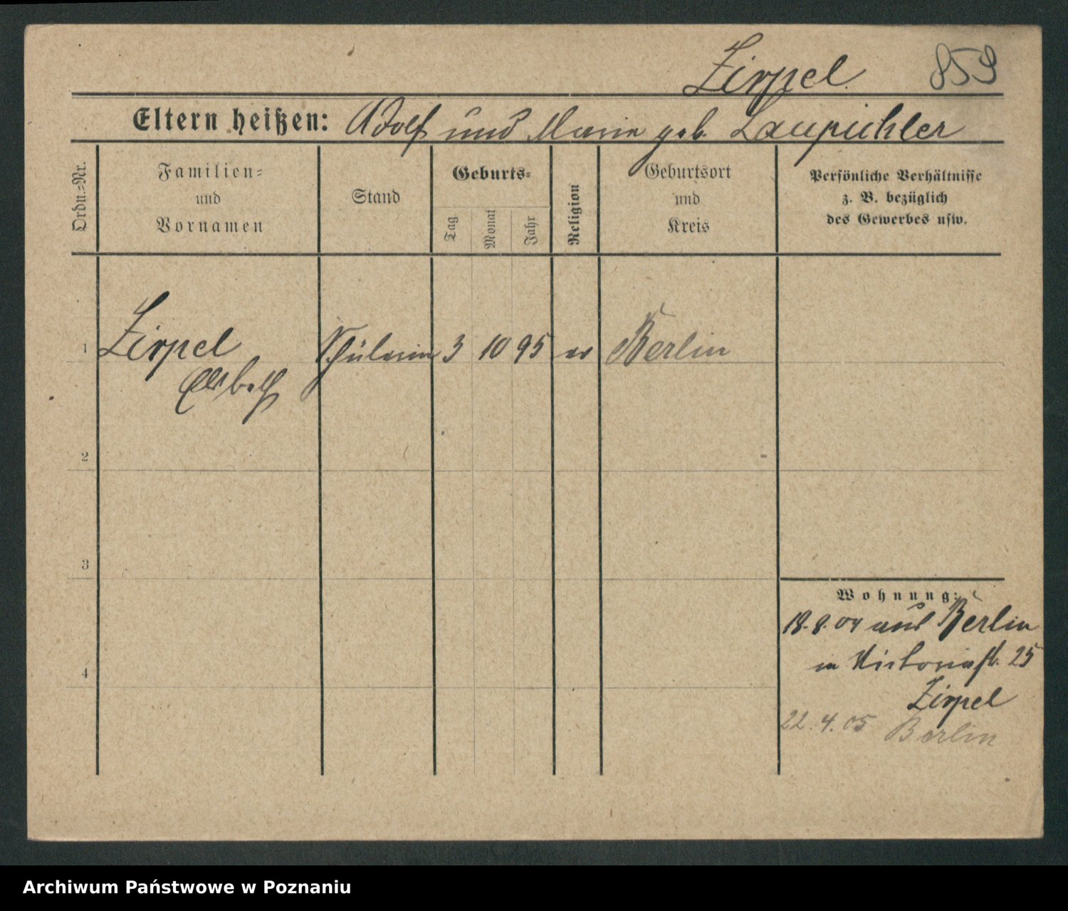 Zieske z.d. Altmann I voto Franzke, Vilhelmine Ida Cäzilie