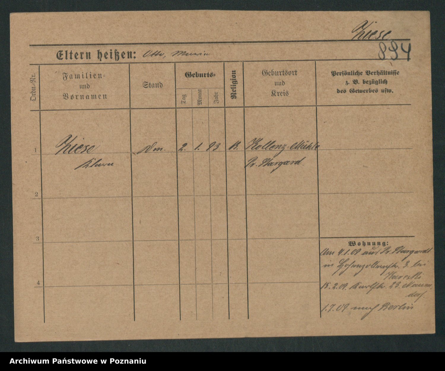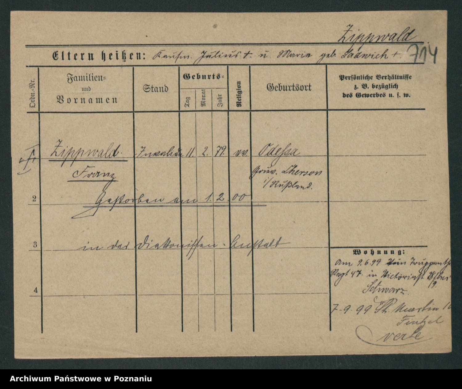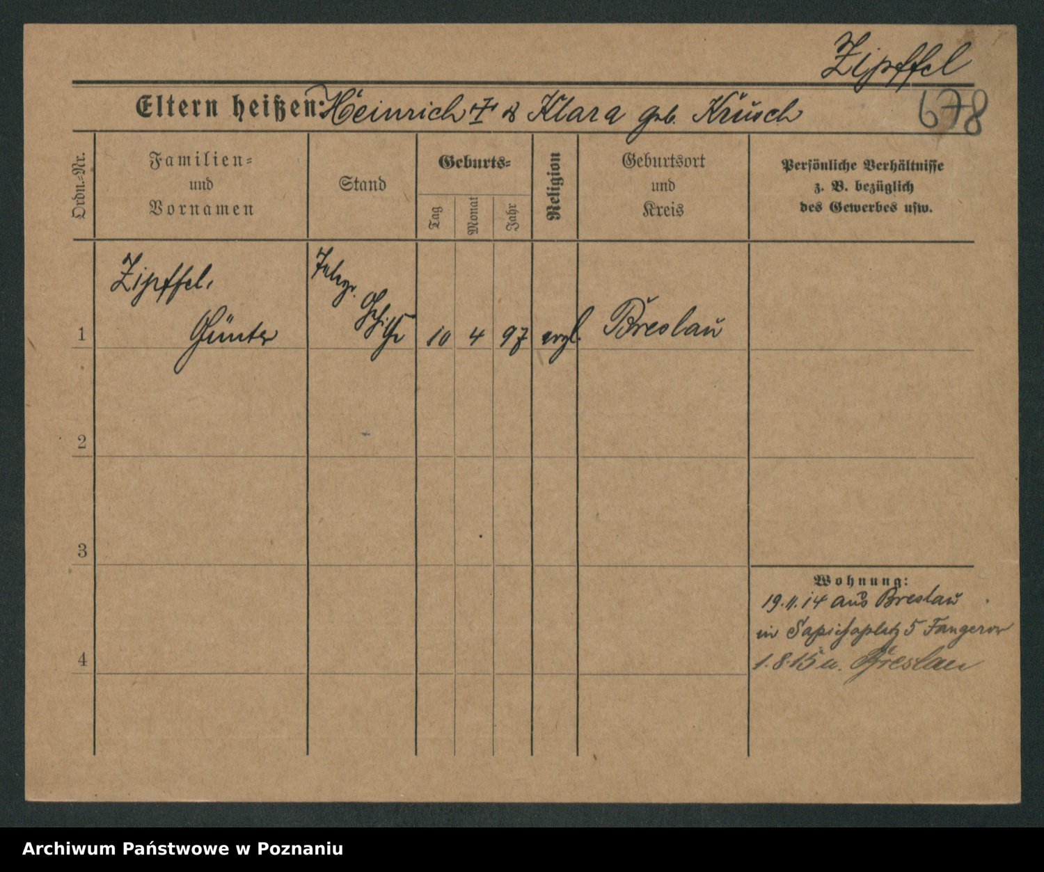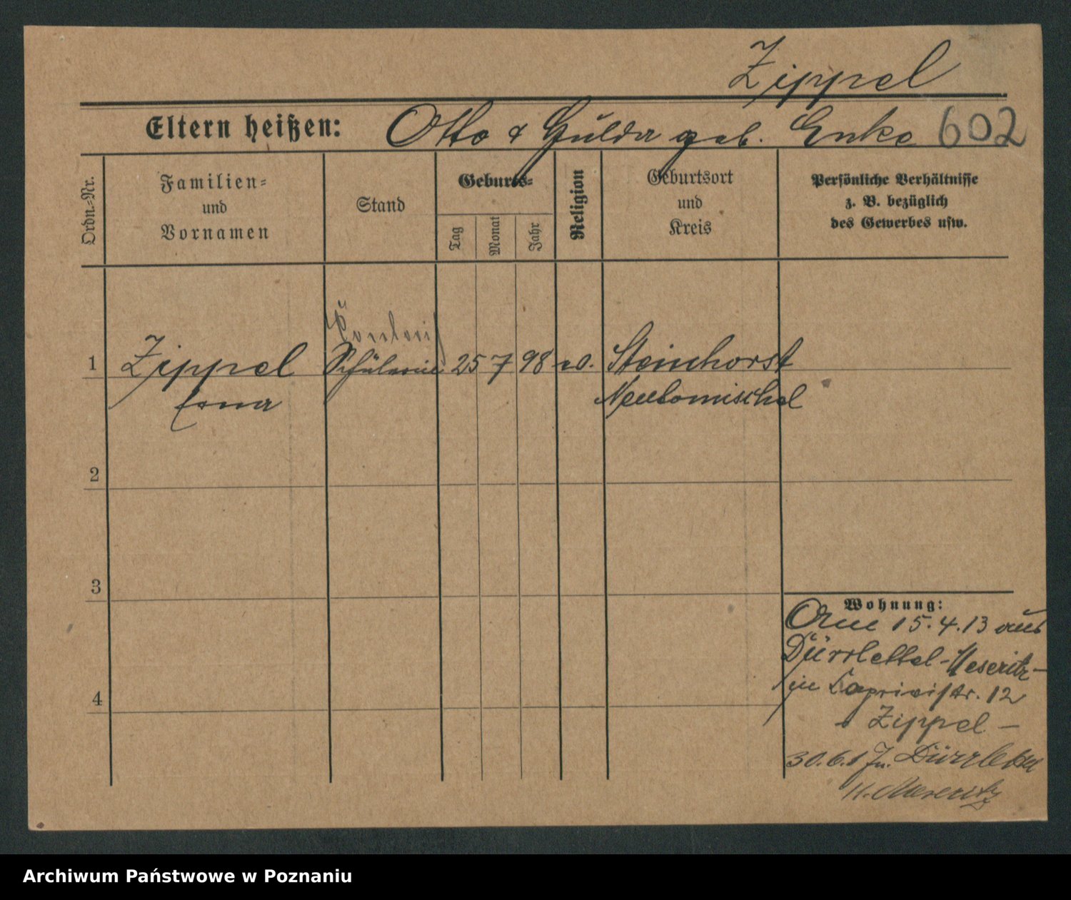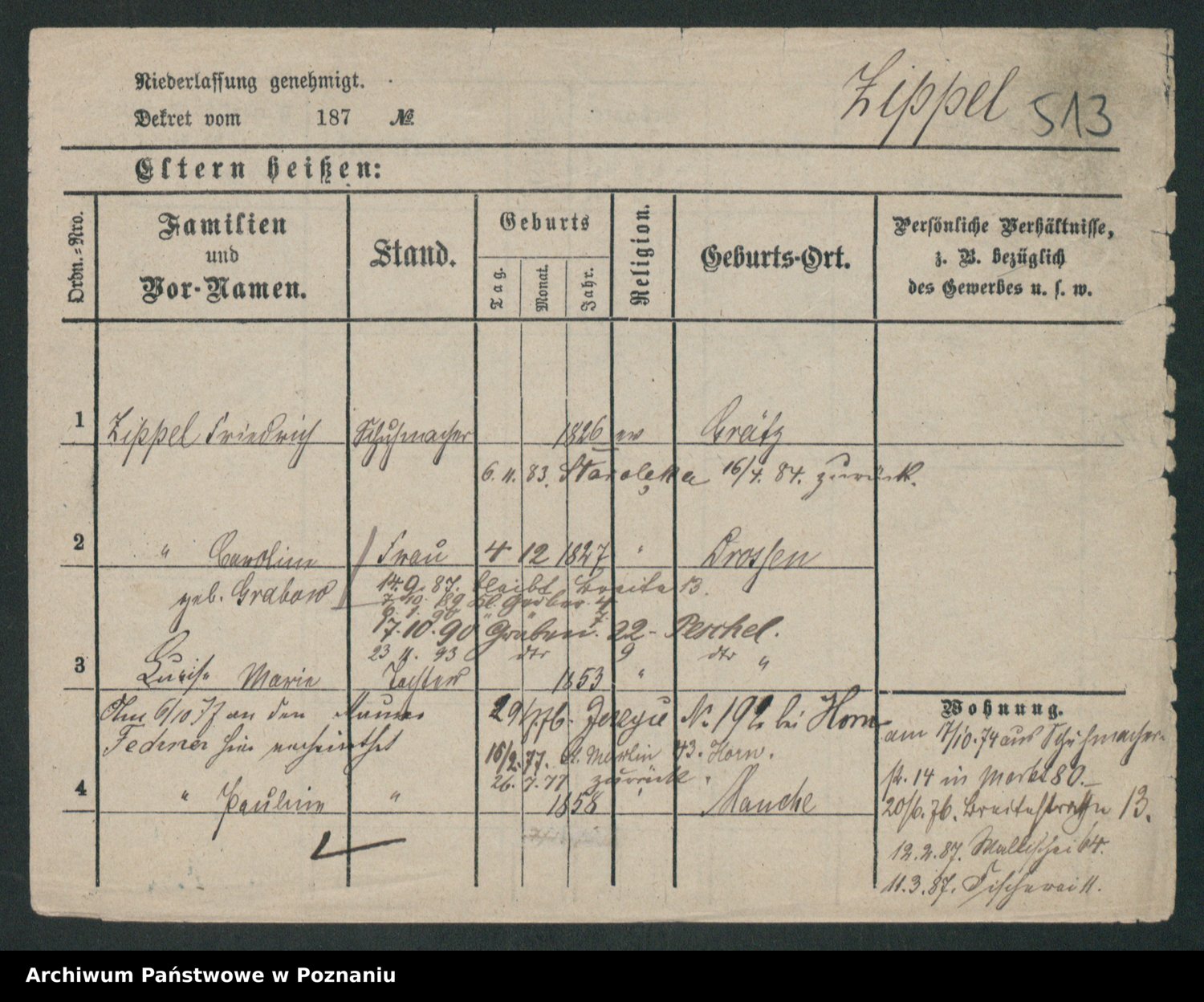 Zieske z.d. Altmann I voto Franzke, Vilhelmine Ida Cäzilie