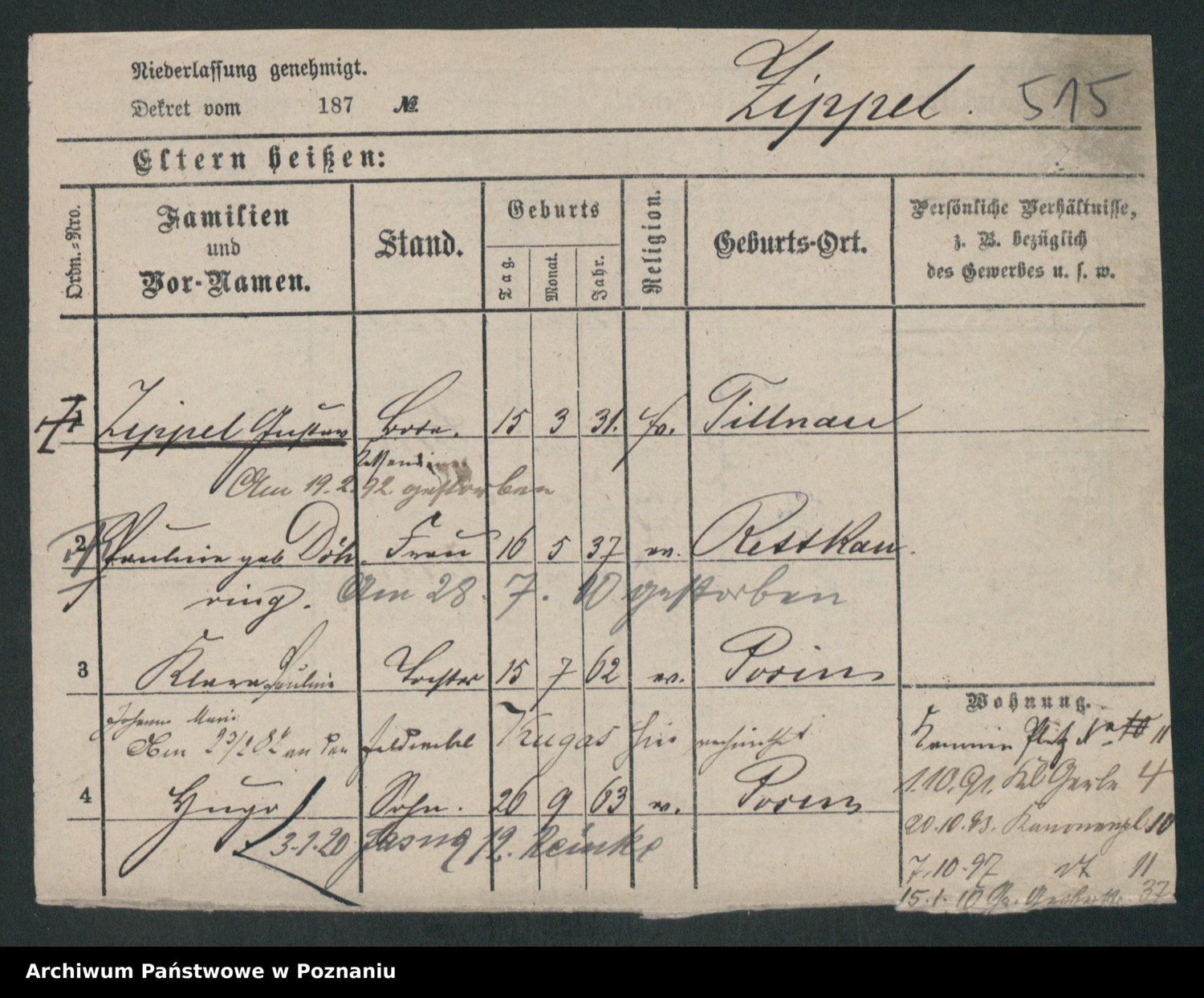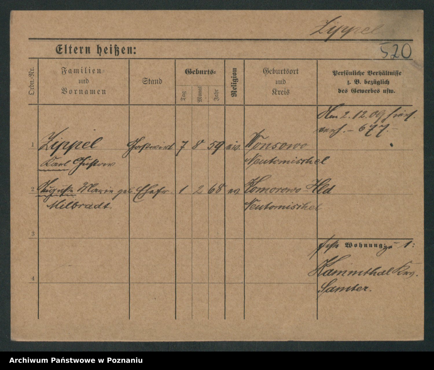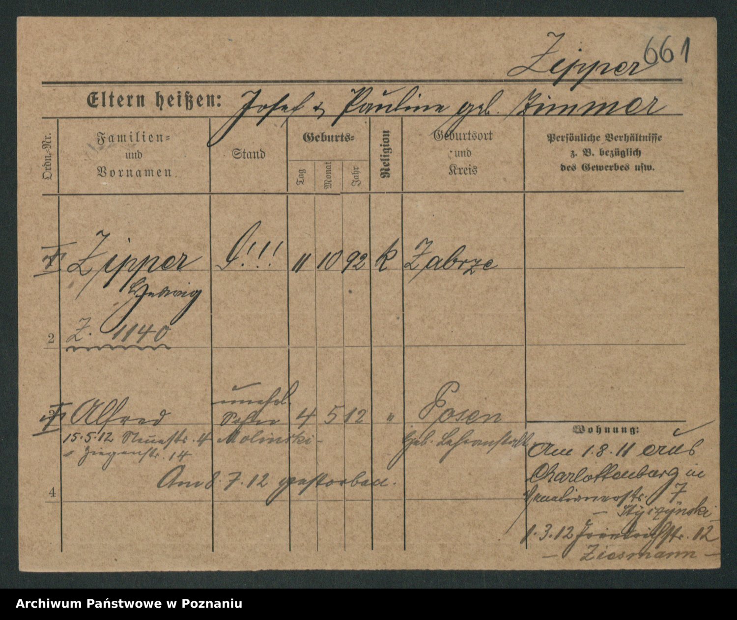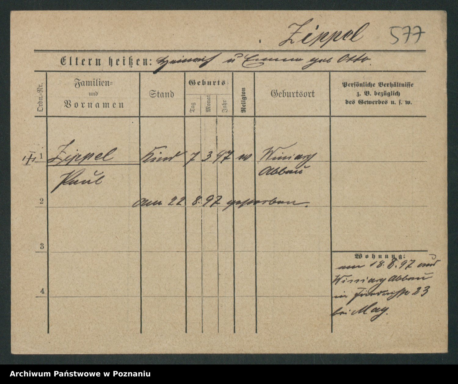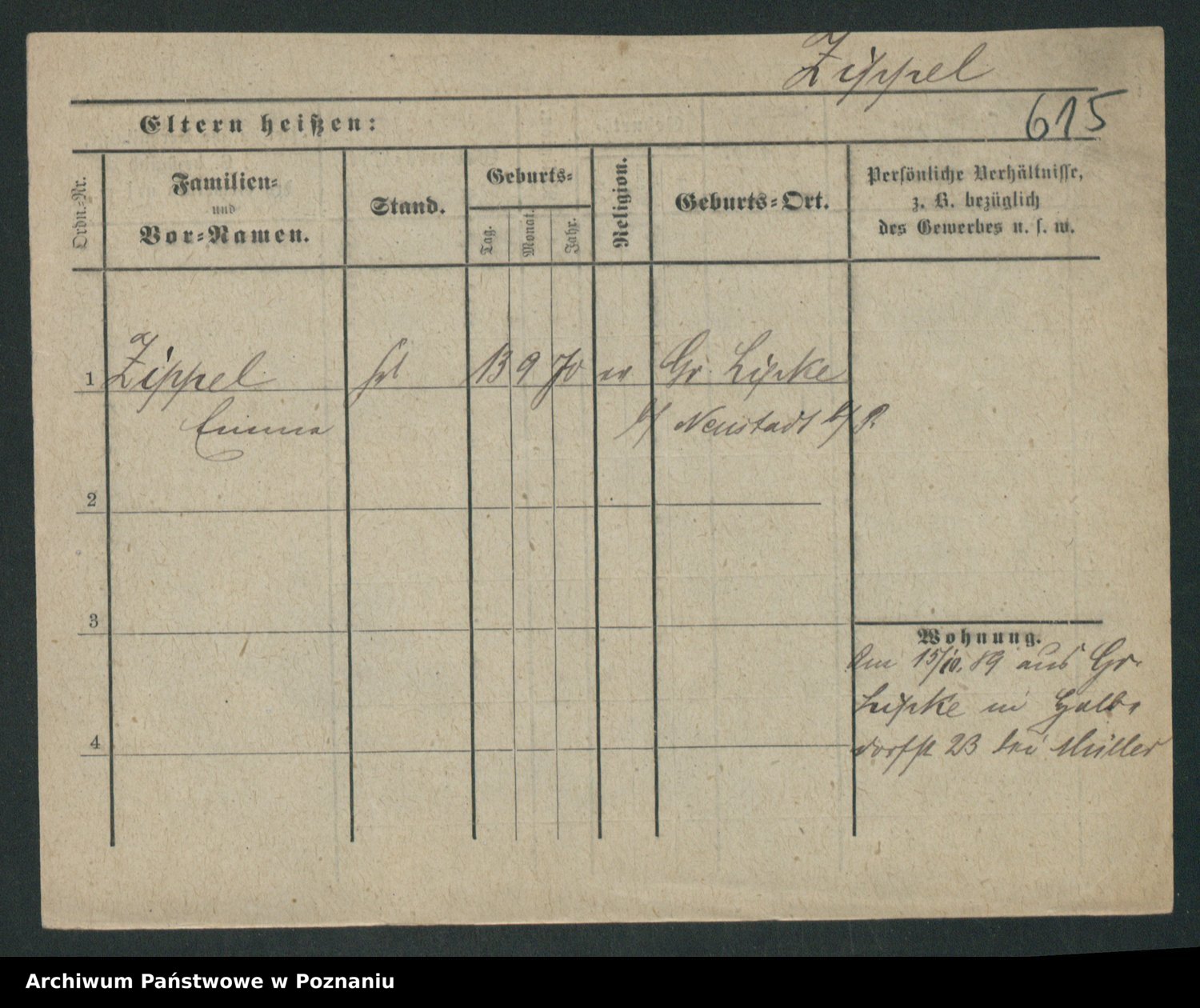 Zieske z.d. Altmann I voto Franzke, Vilhelmine Ida Cäzilie