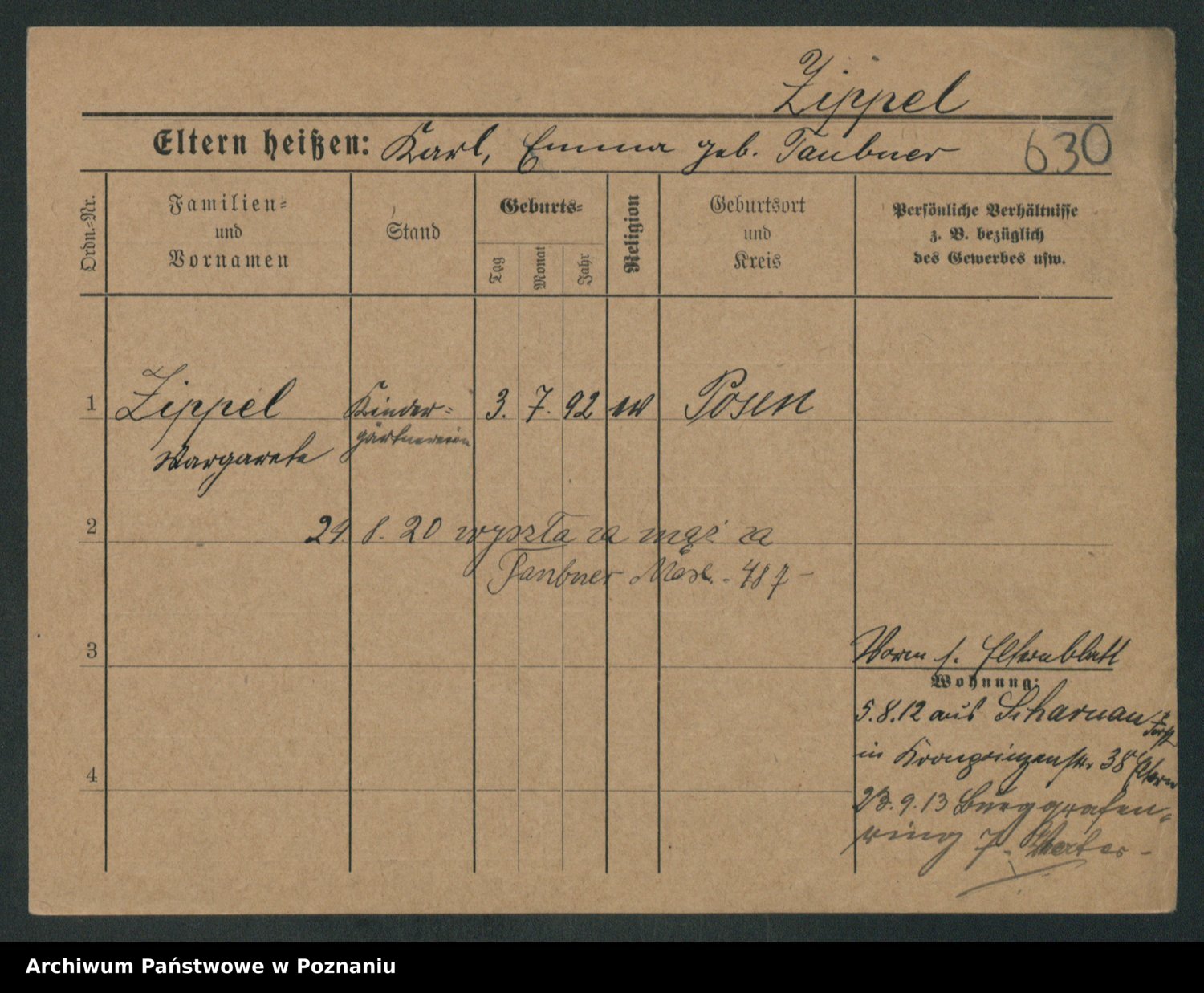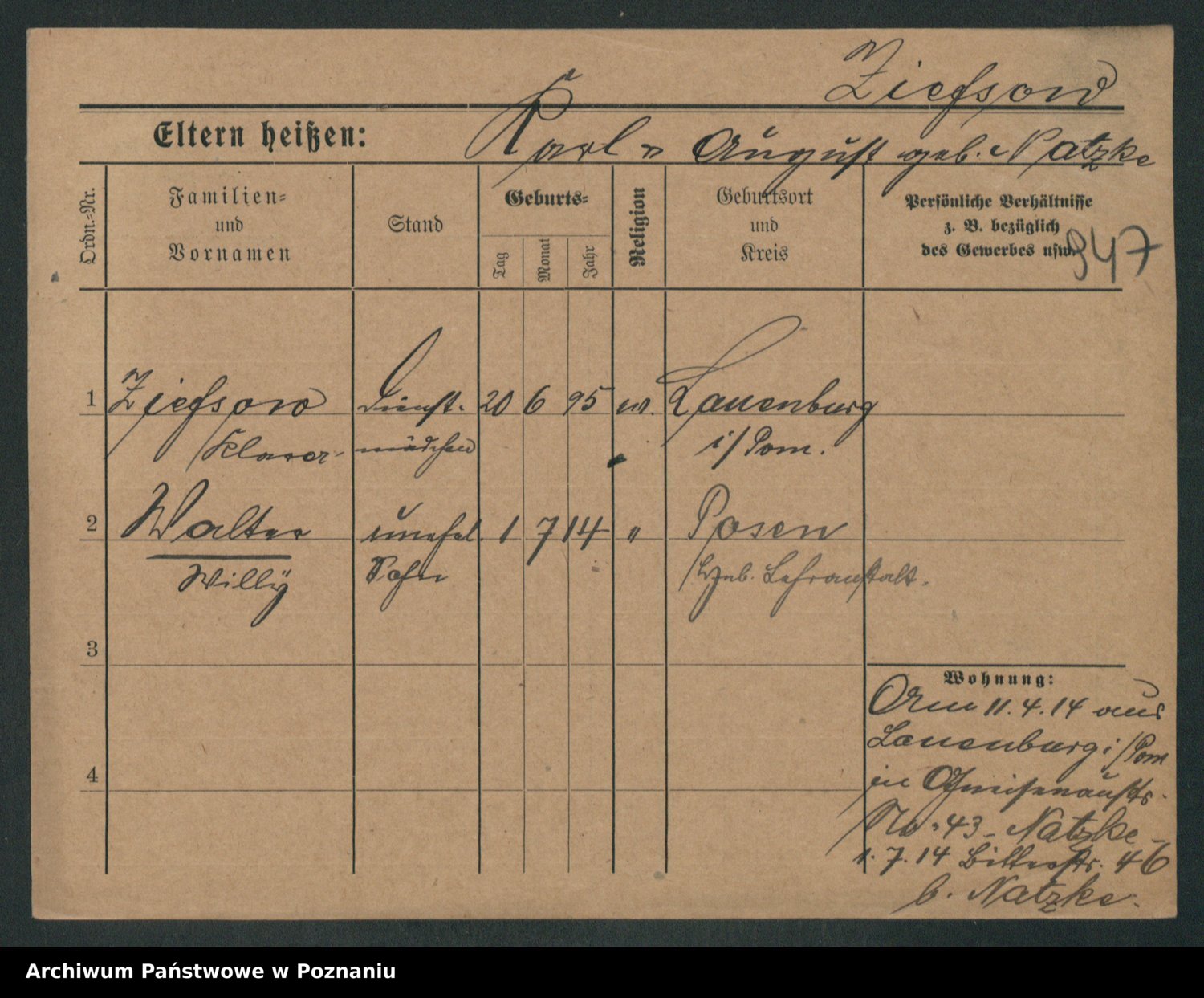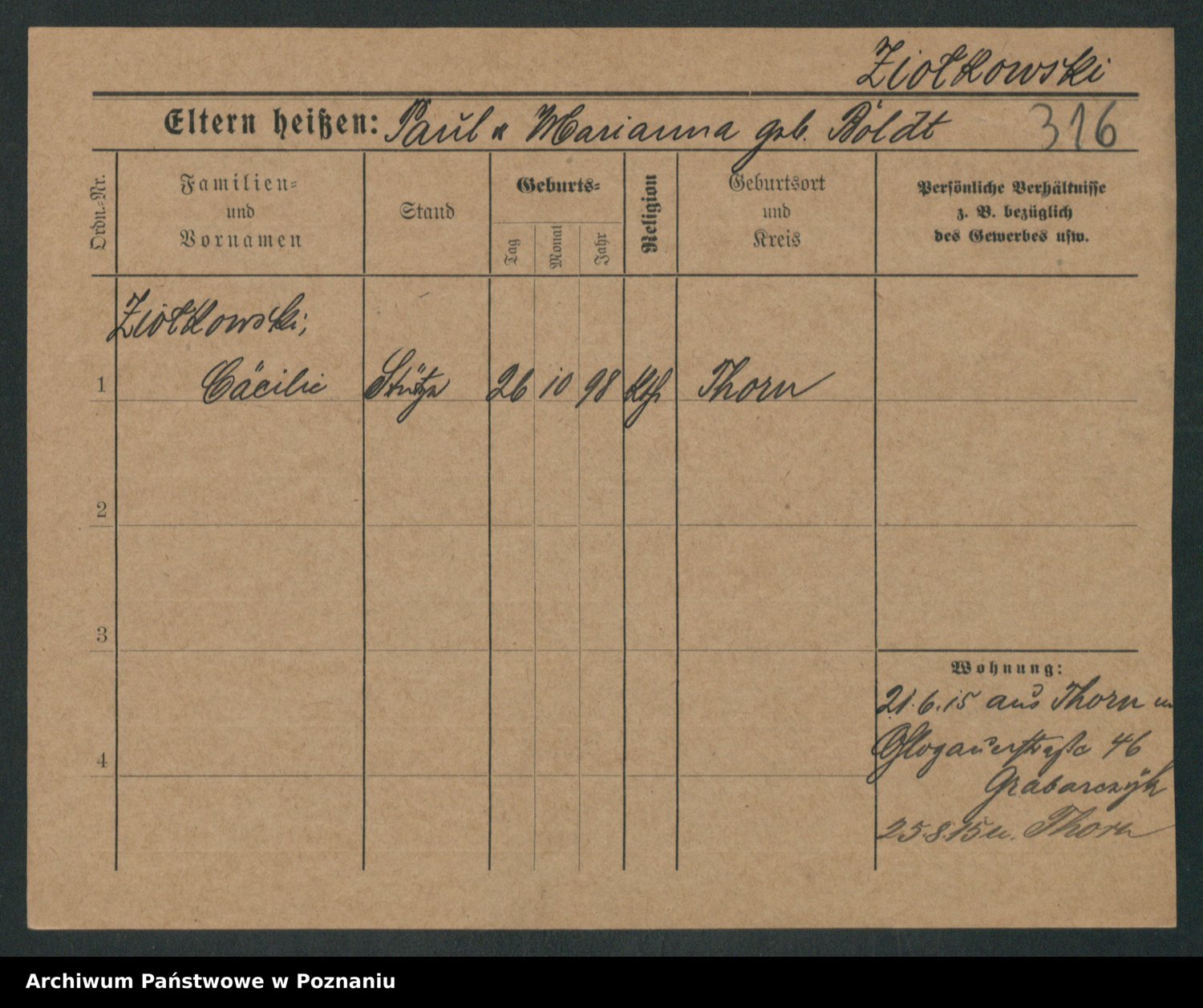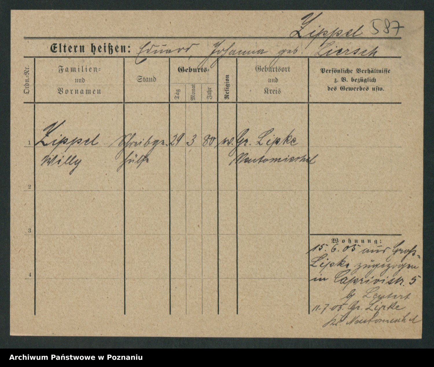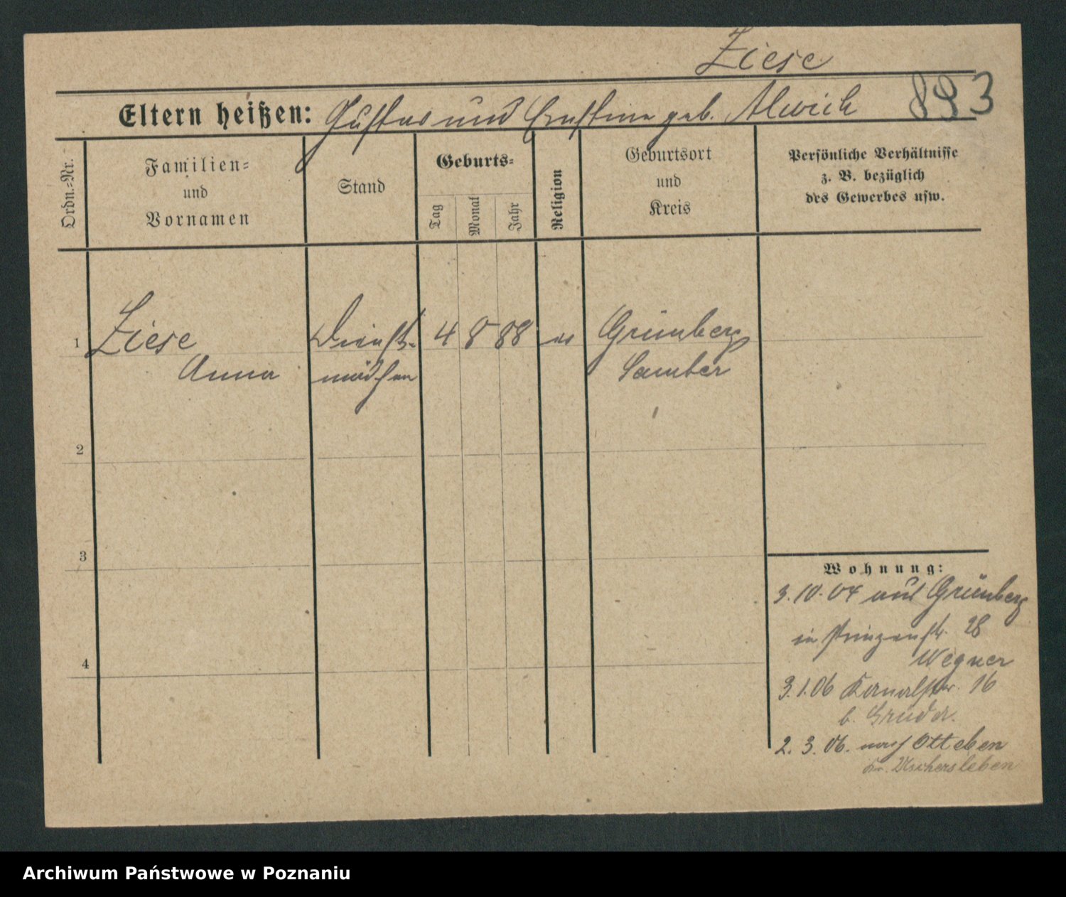 Zieske z.d. Burandt, Lina