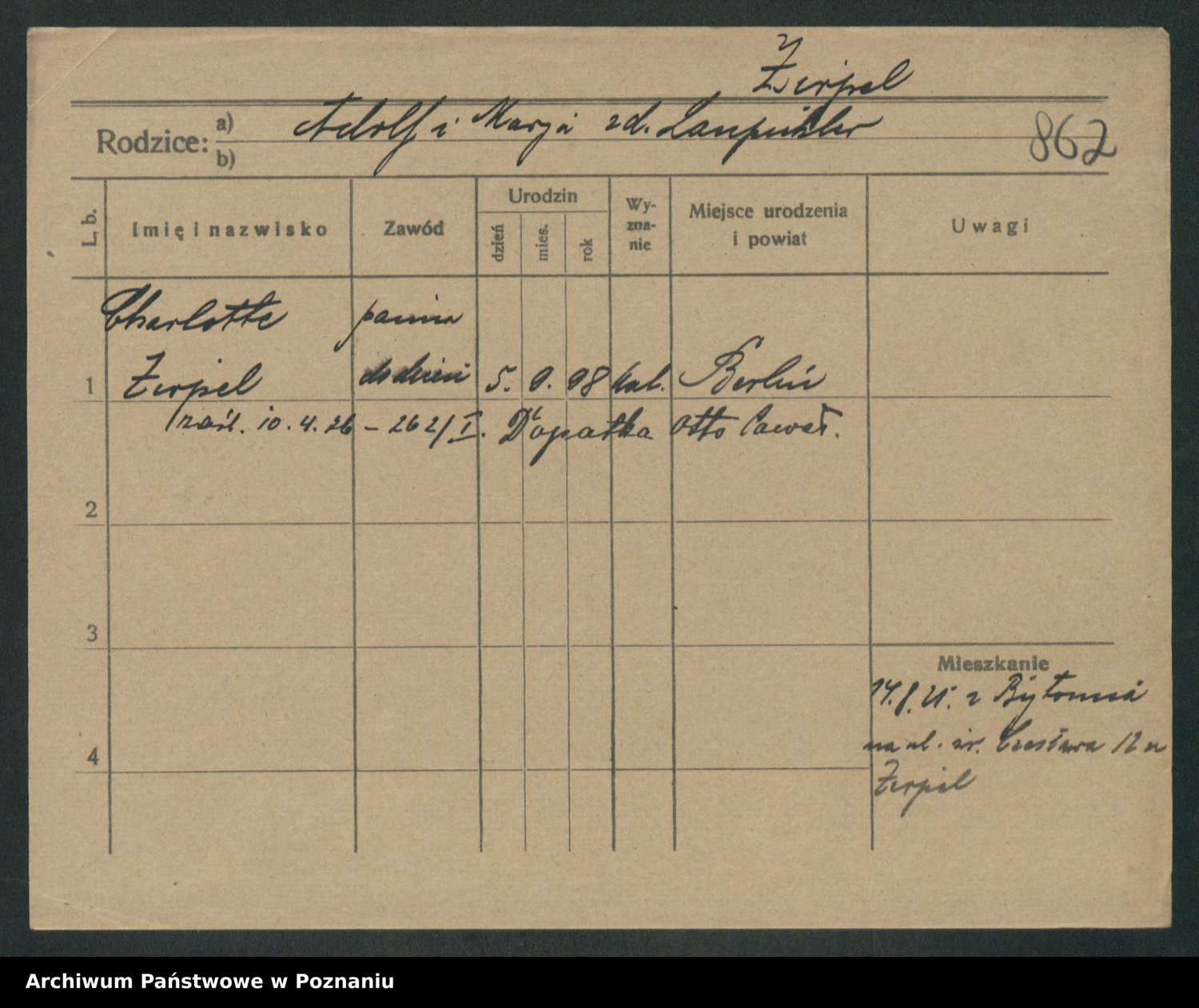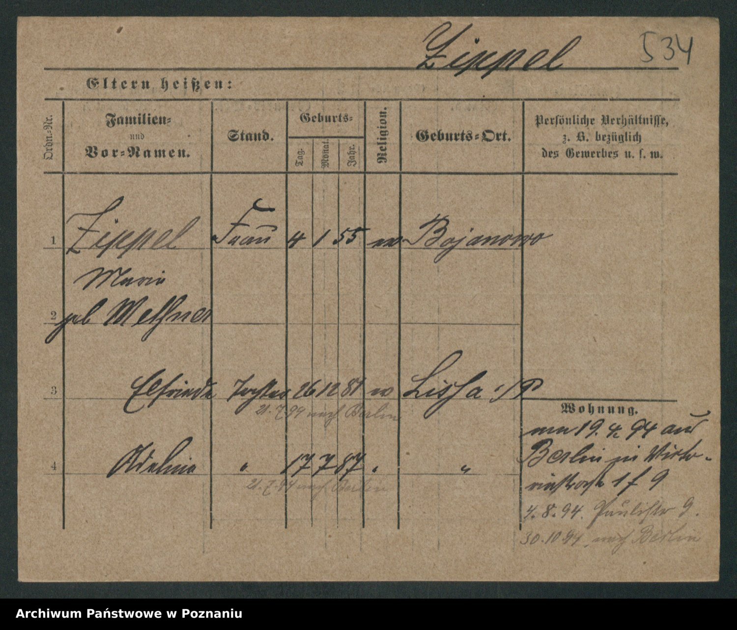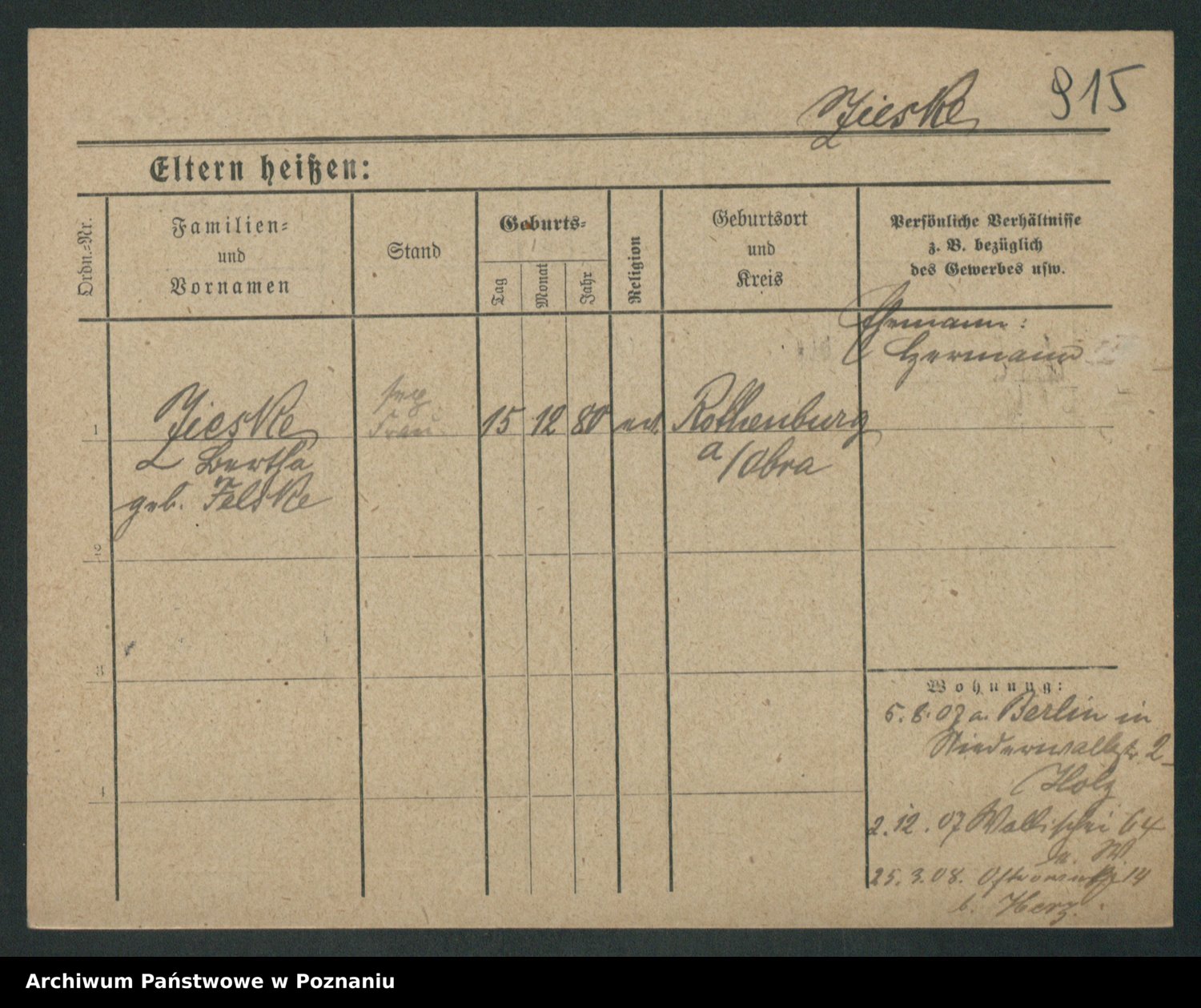 Zieske z.d. Felske, Bertha
